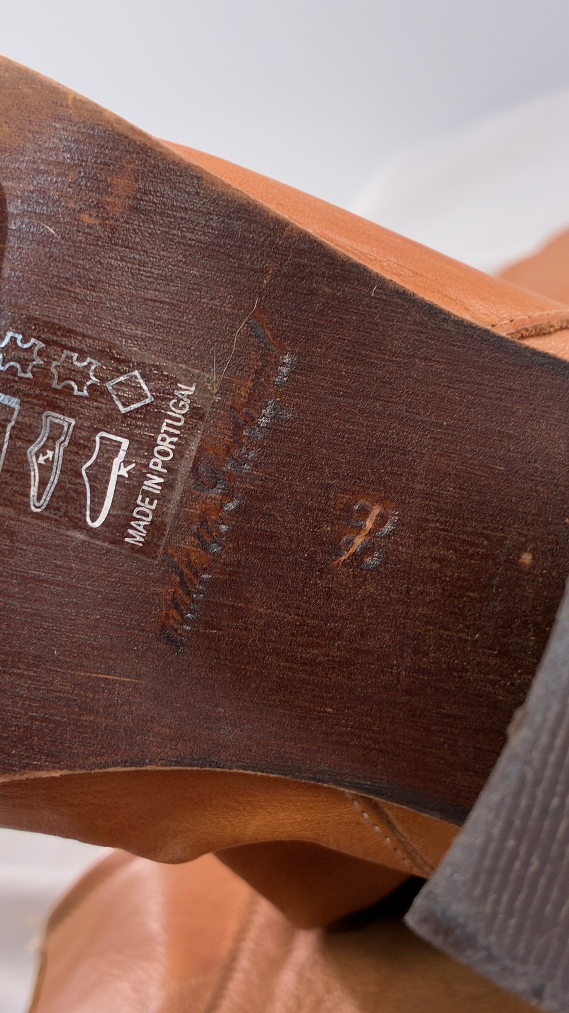 Vintage FREE PEOPLE Elle Tall Round Toe Scrunch Back Leather Boots Made in Portugal (38)