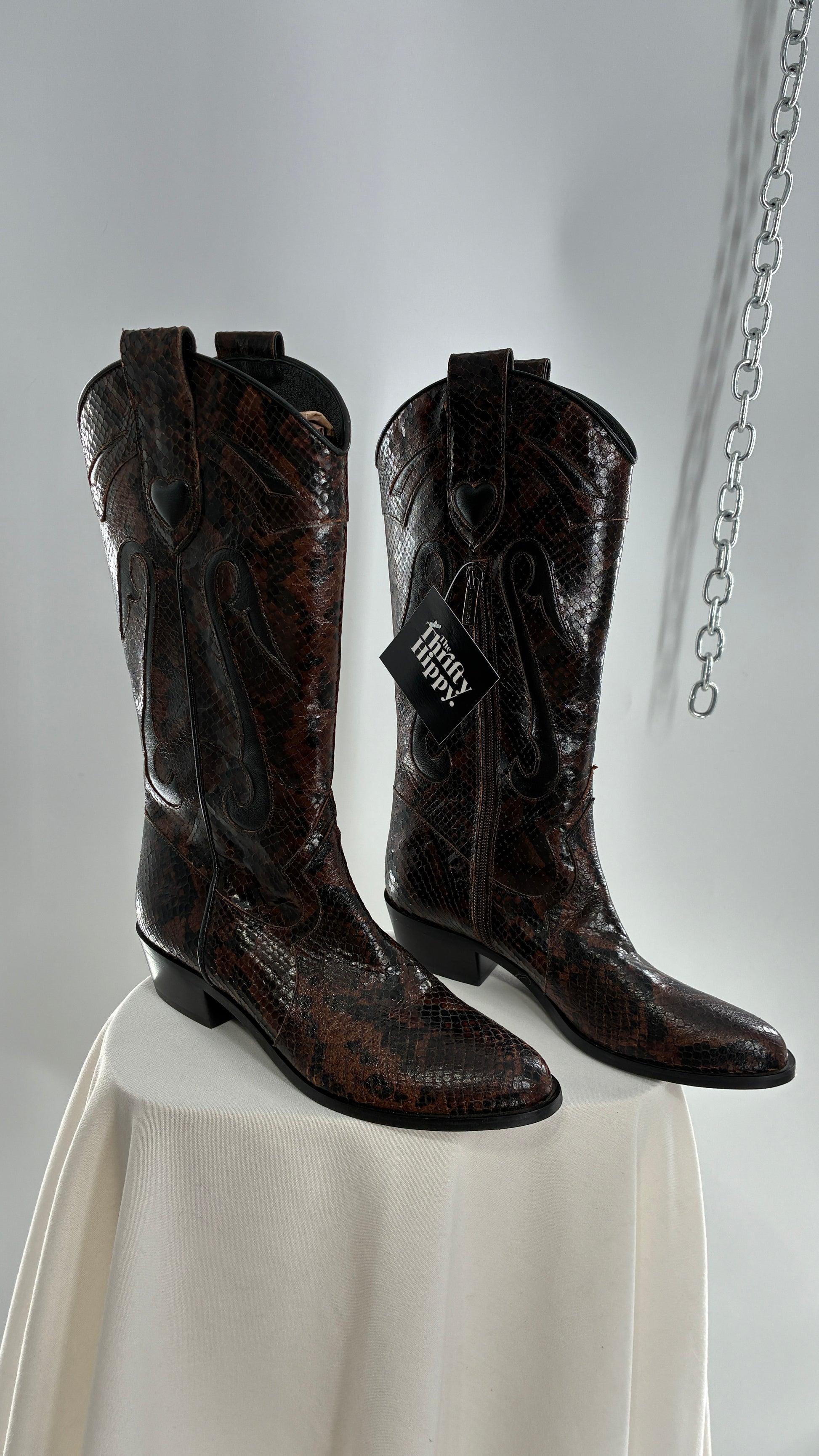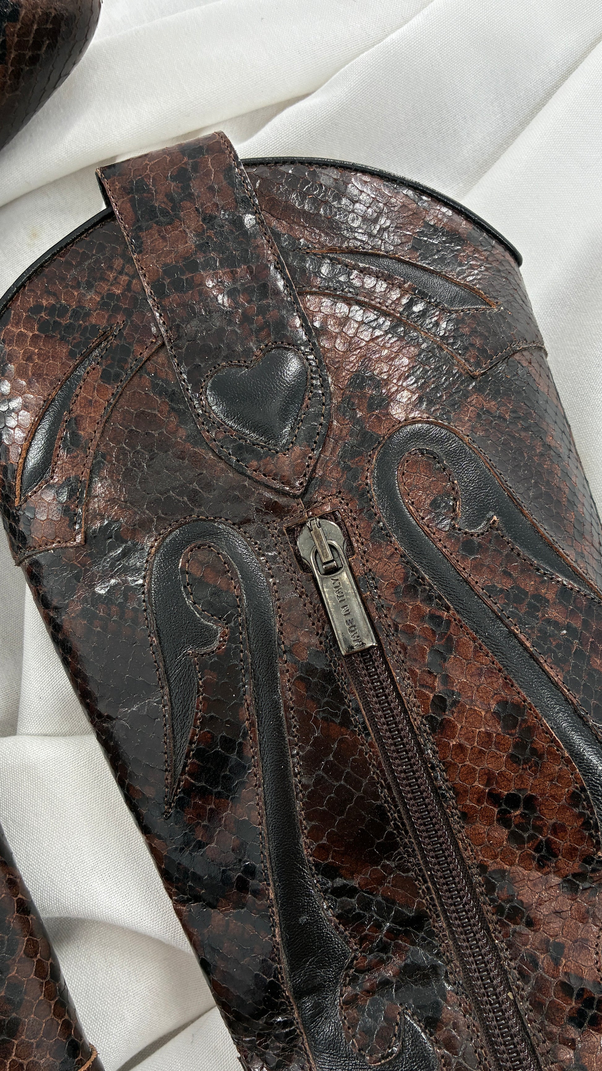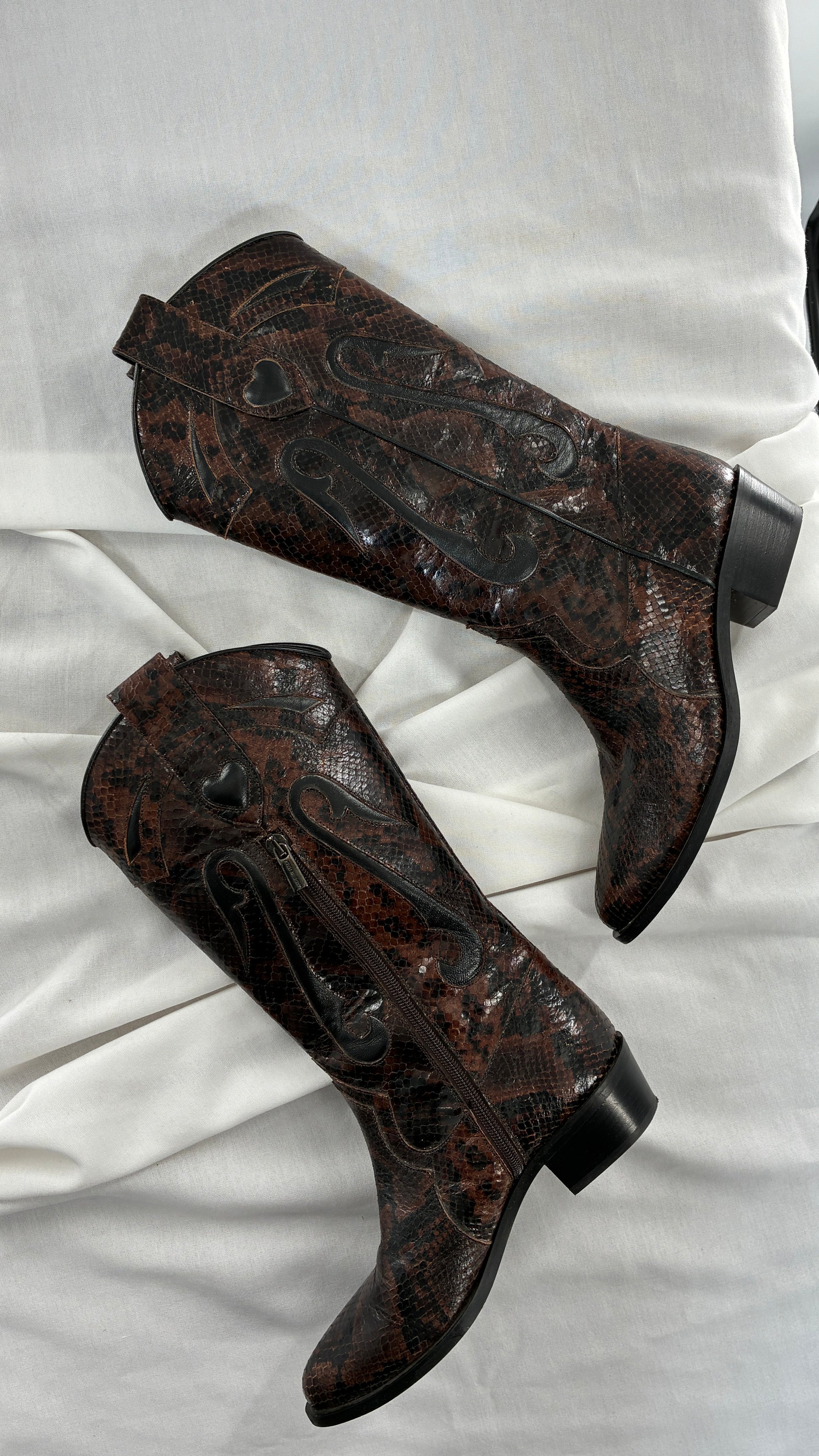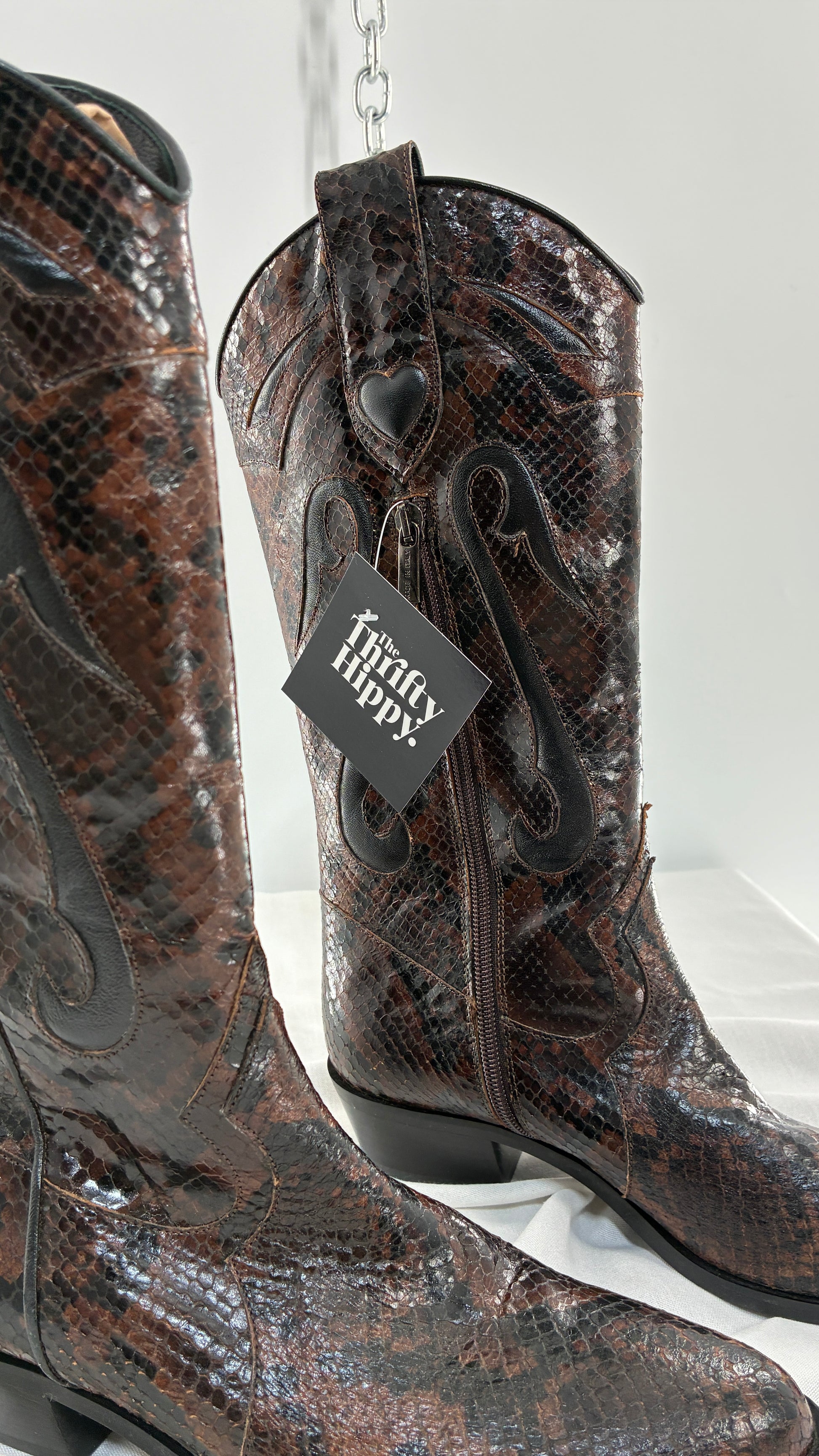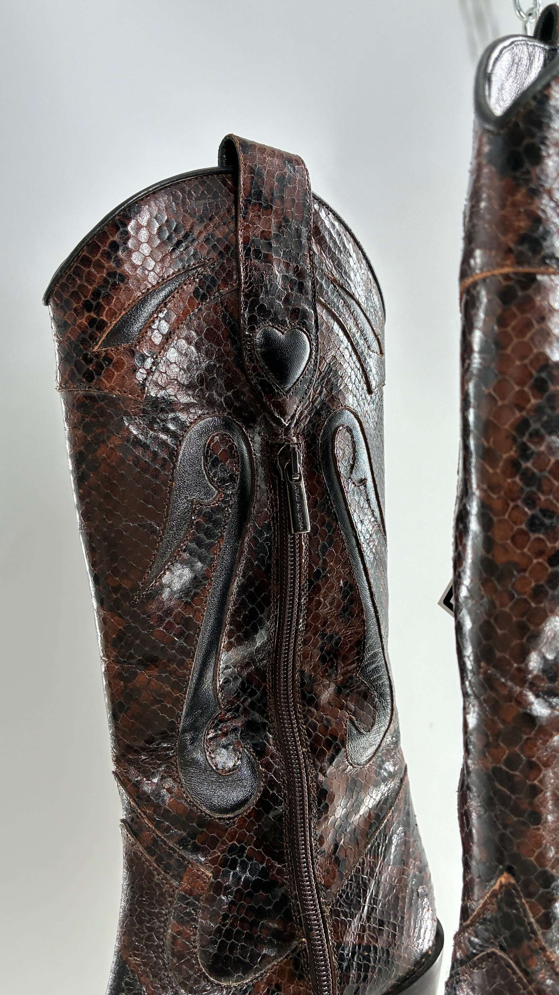Vintage LABLANC Snakeskin Cowboy Boots with Hearts Made in Italy (36)