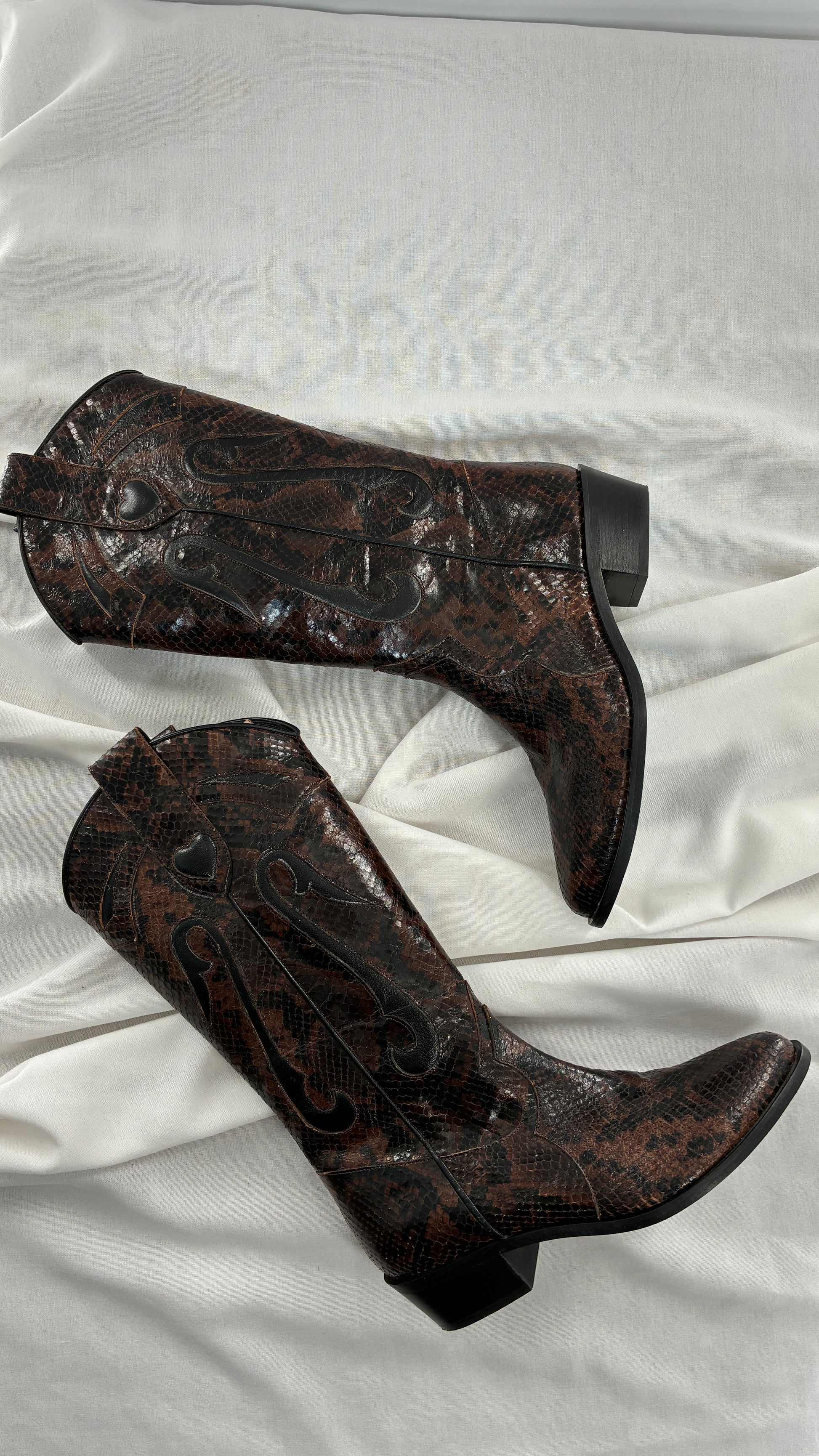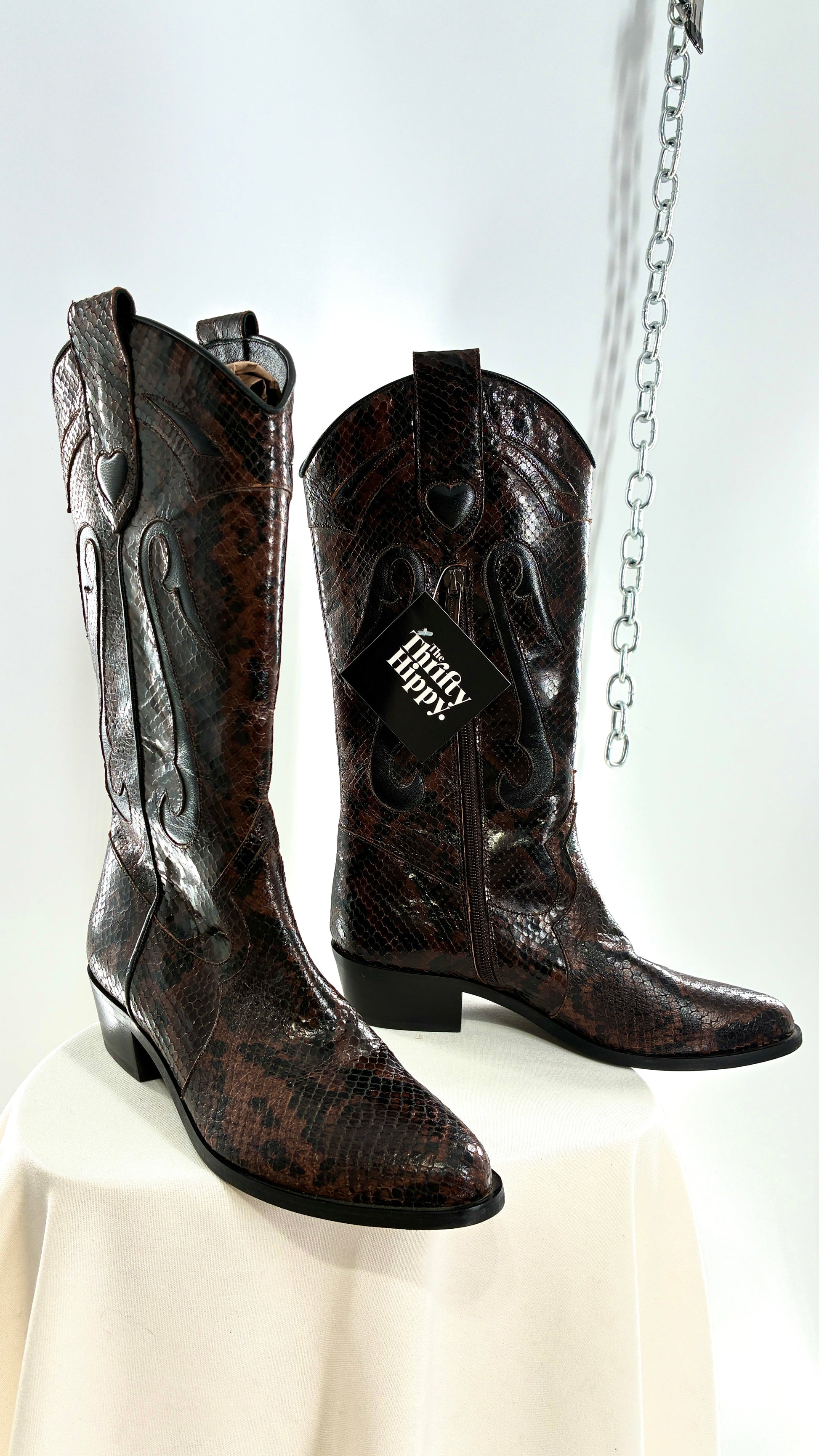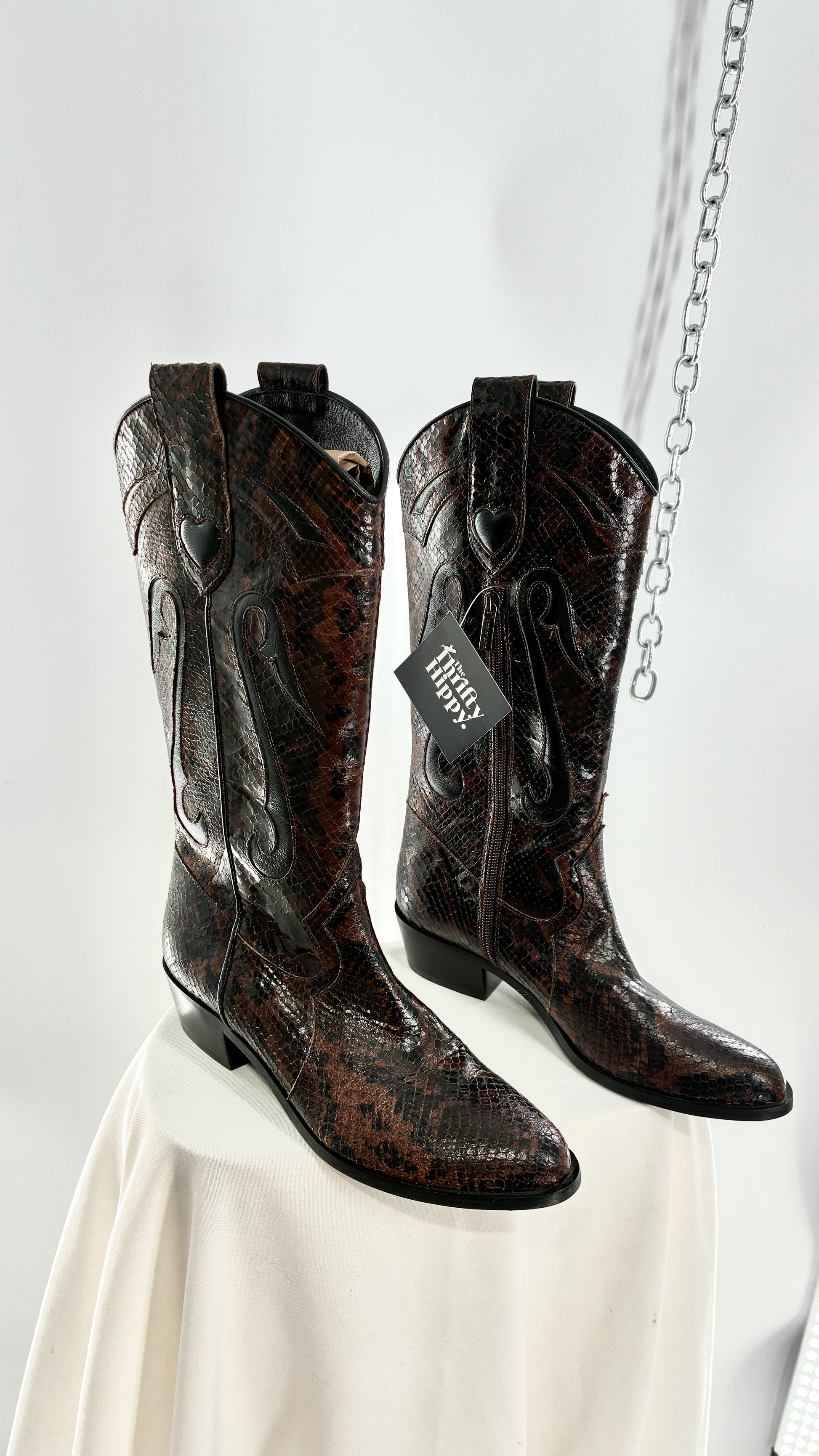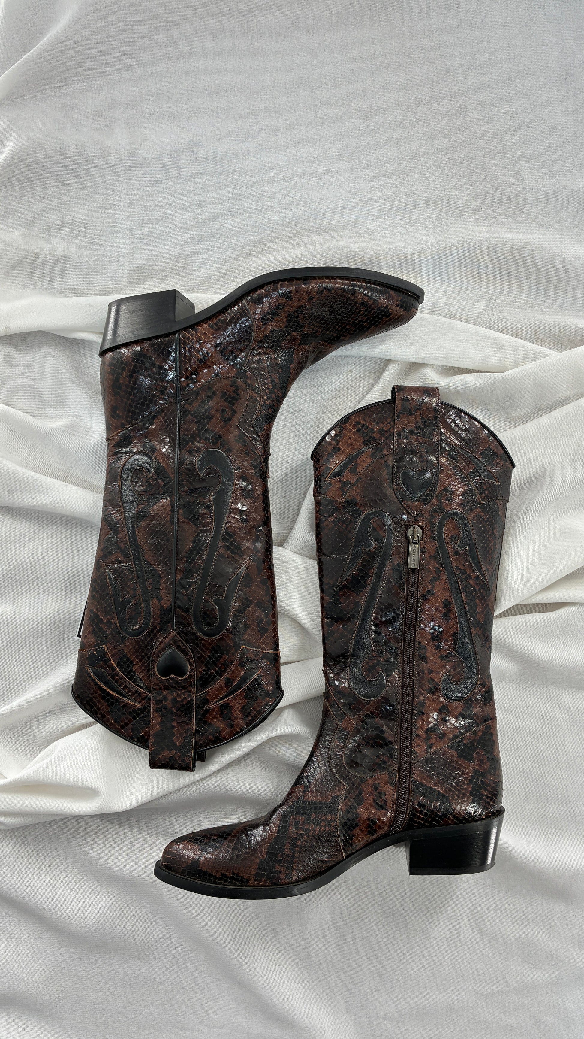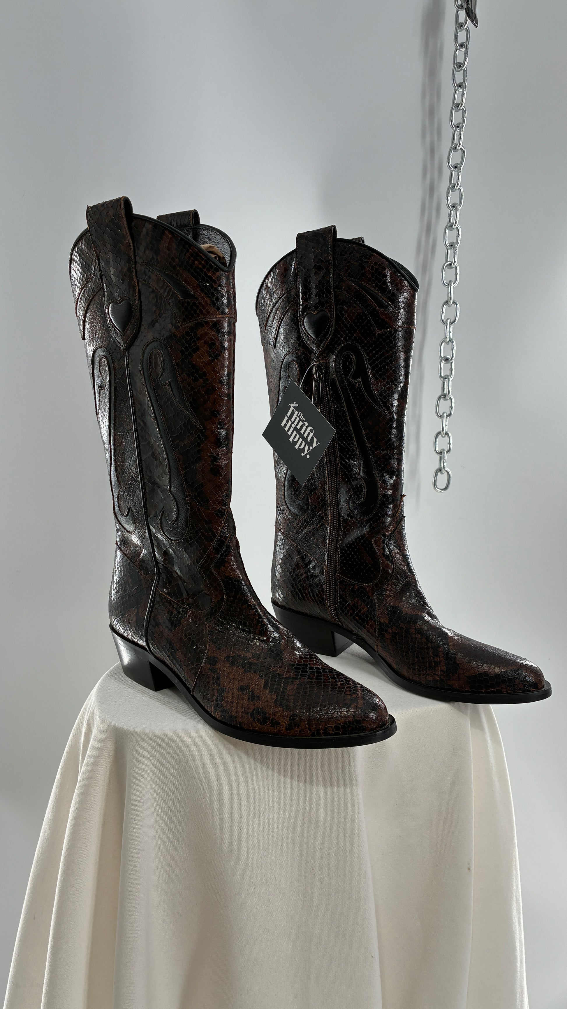 Vintage LABLANC Snakeskin Cowboy Boots with Hearts Made in Italy (36)