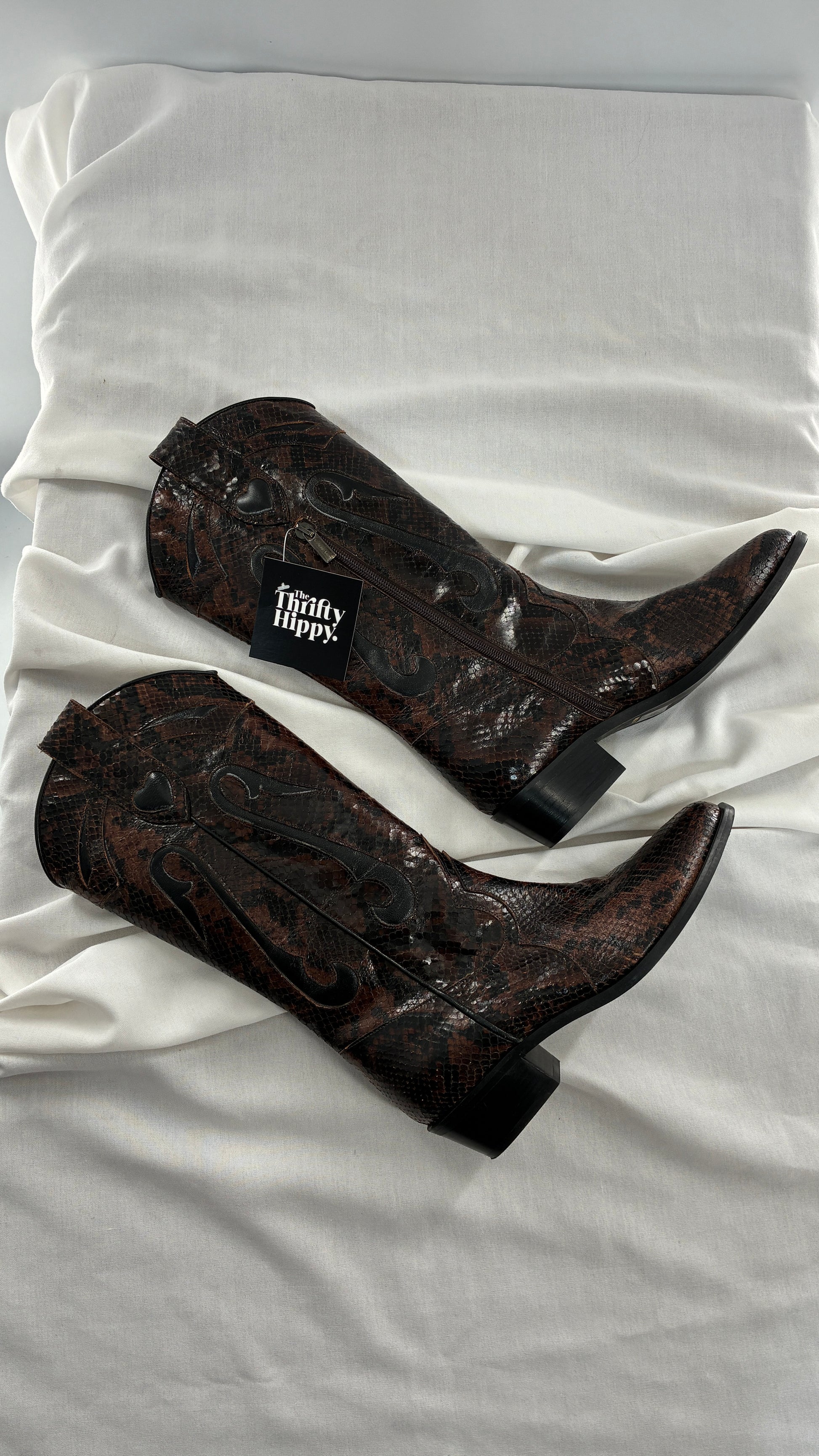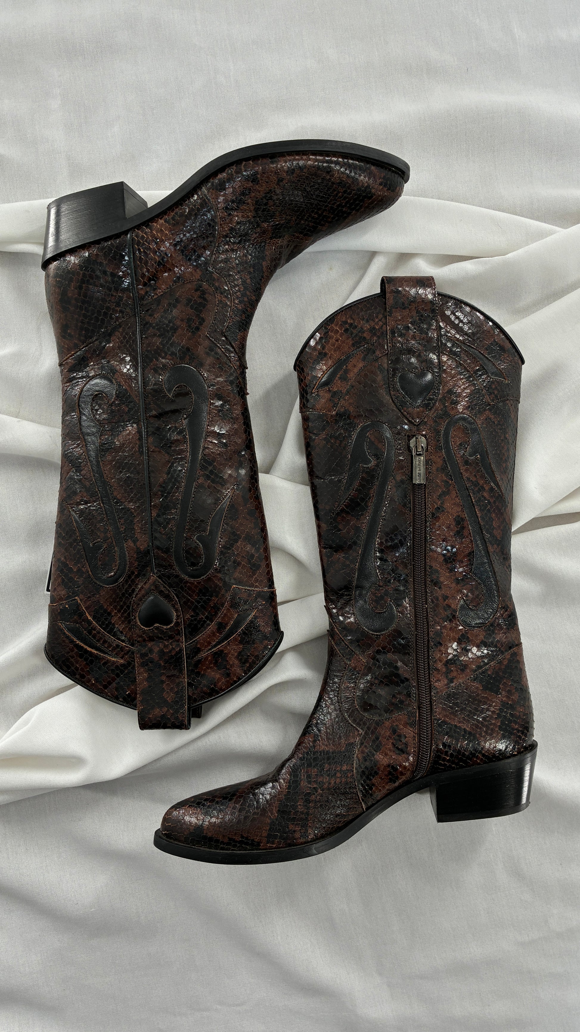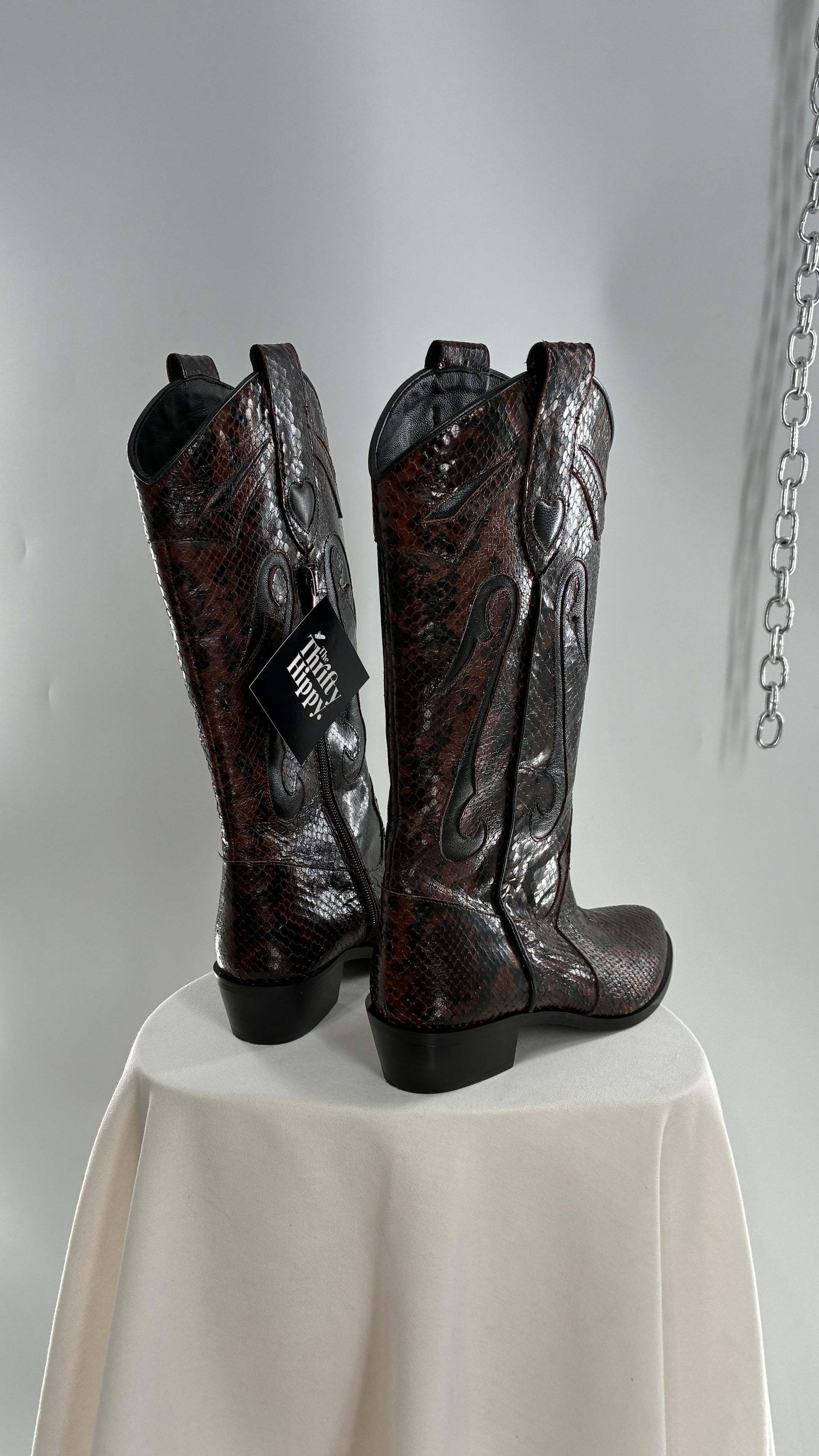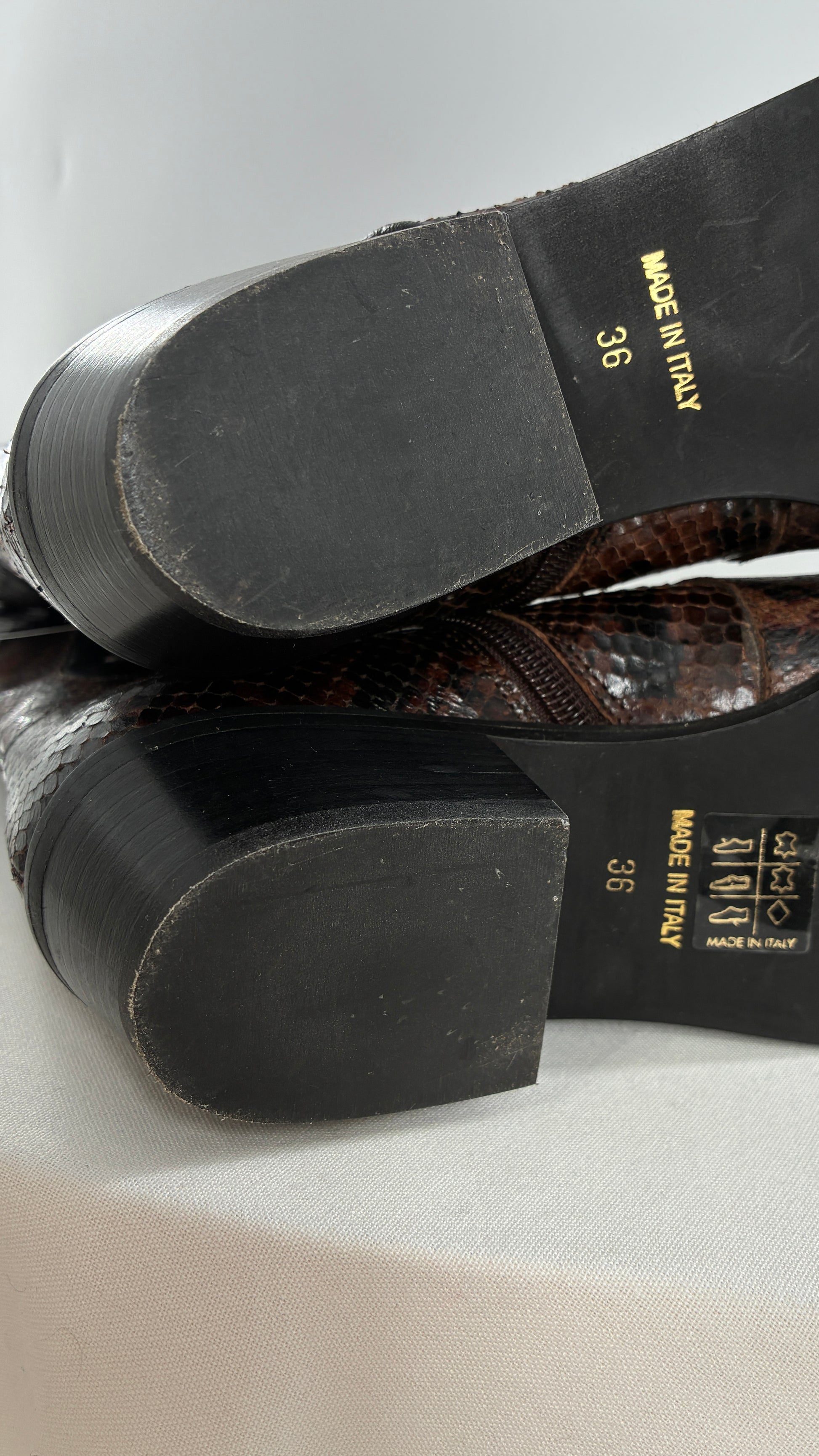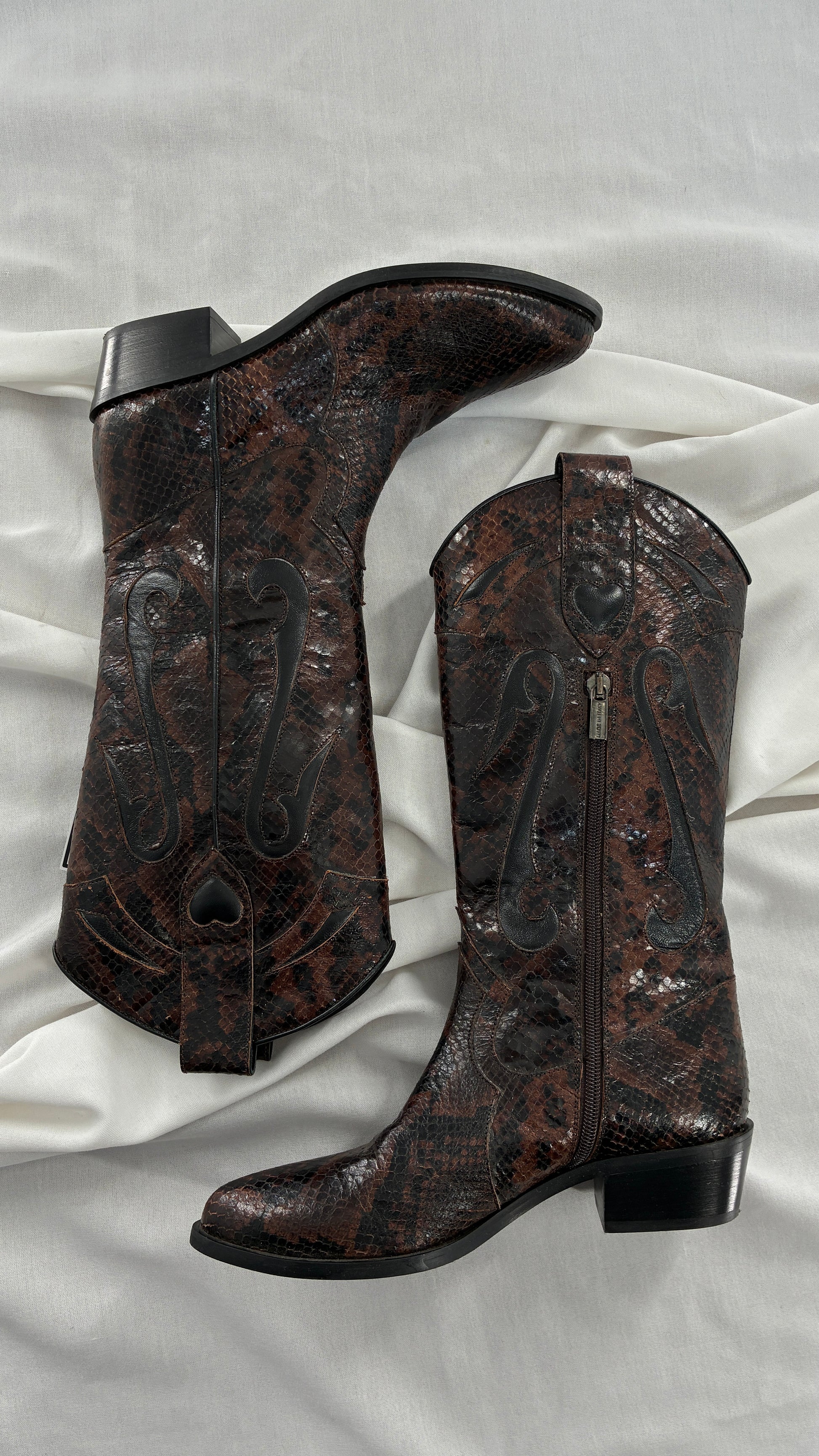 Vintage LABLANC Snakeskin Cowboy Boots with Hearts Made in Italy (36)