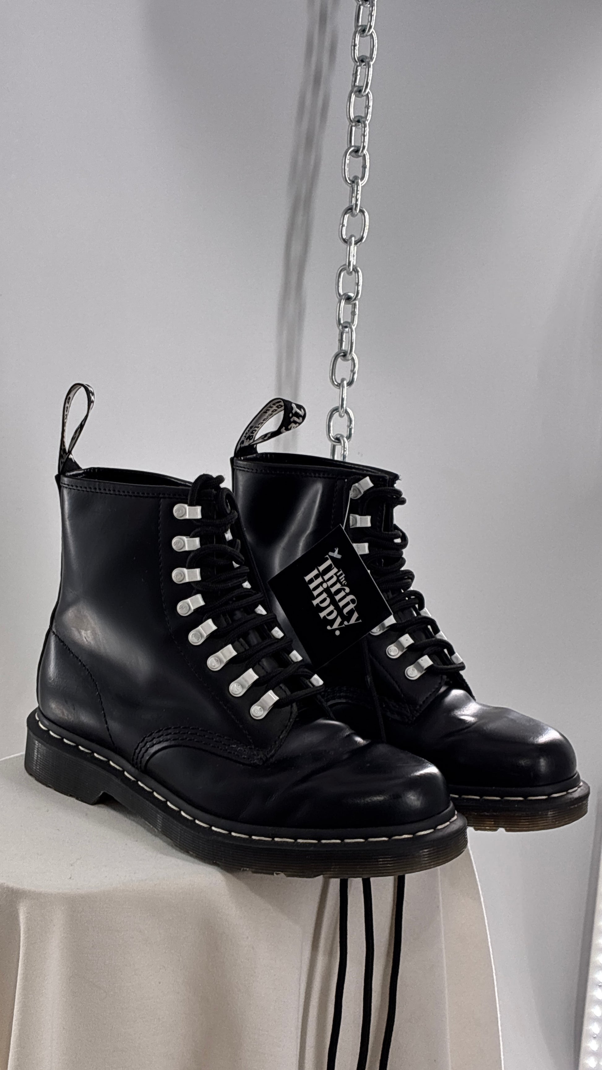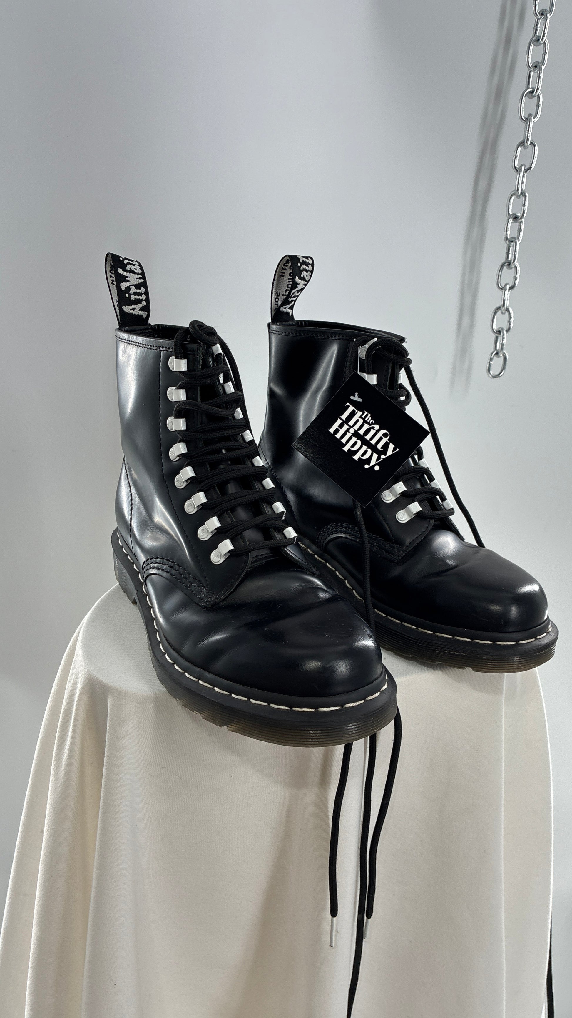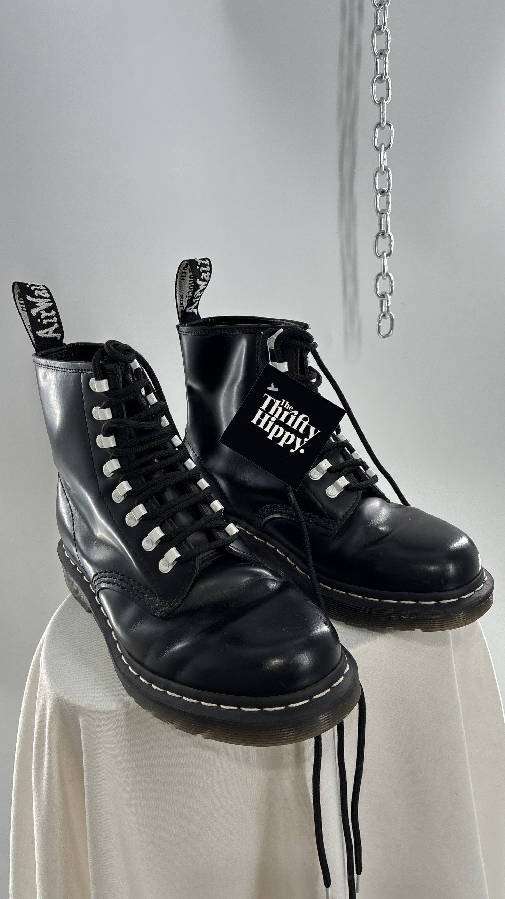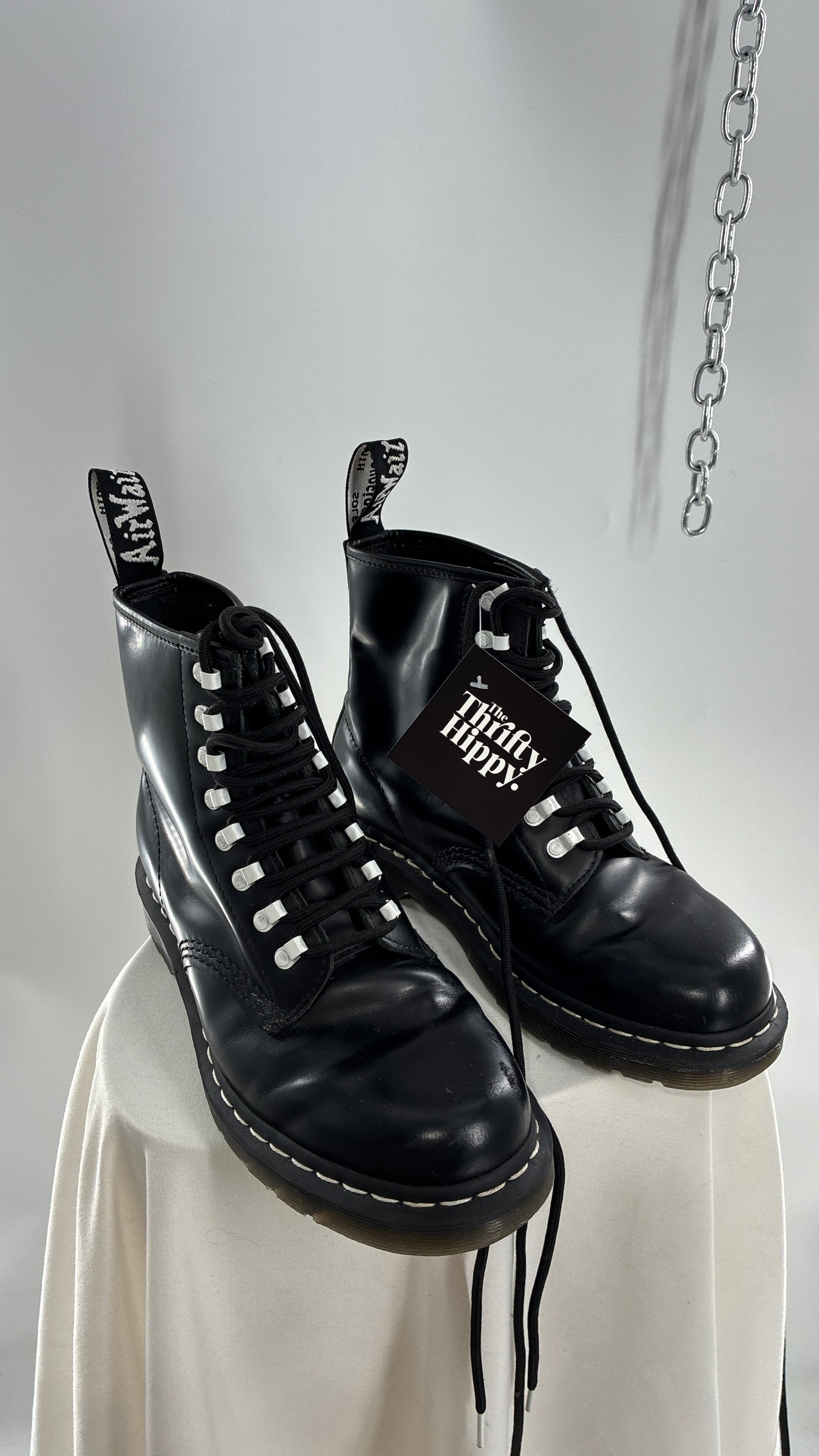 Vintage DR.MARTENS AirWair 1460 DISRUPT Black Patent Leather Boots with White Hardware