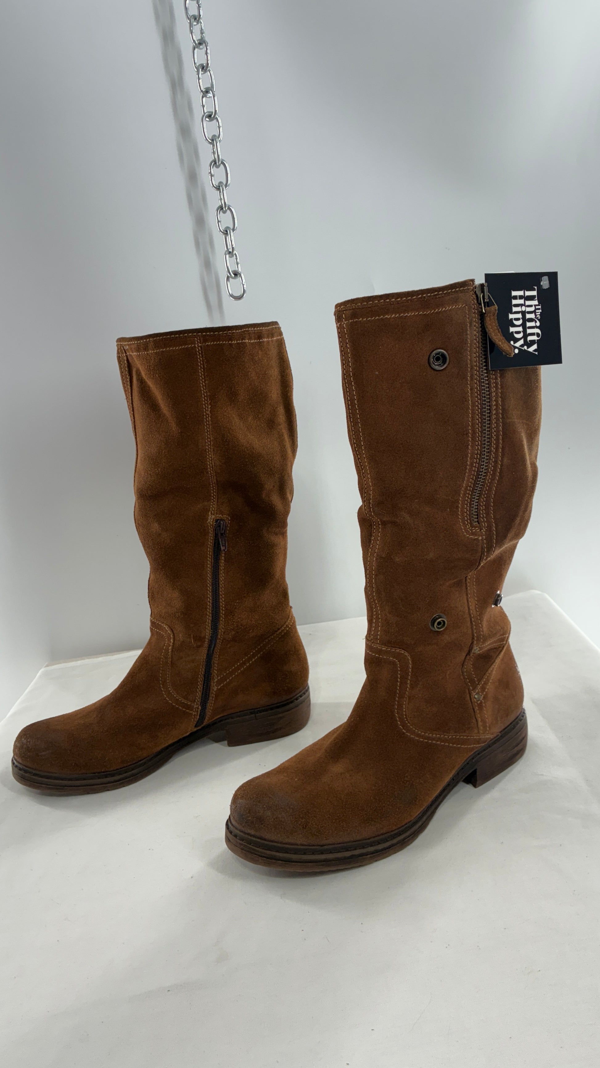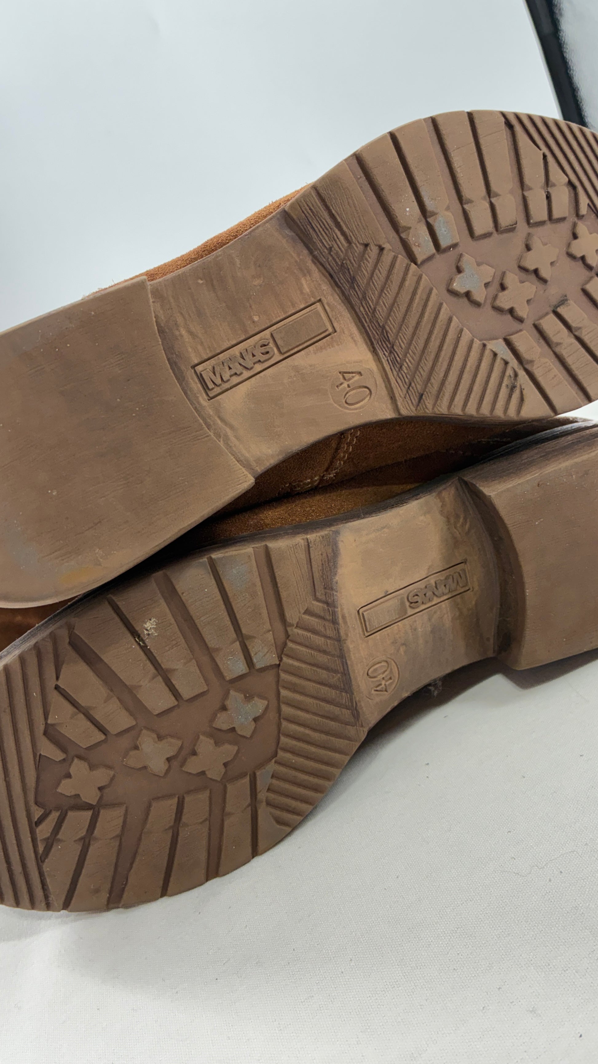 MANAS Brown Suede Leather Combat Style Boots with Fold Over Option (40)