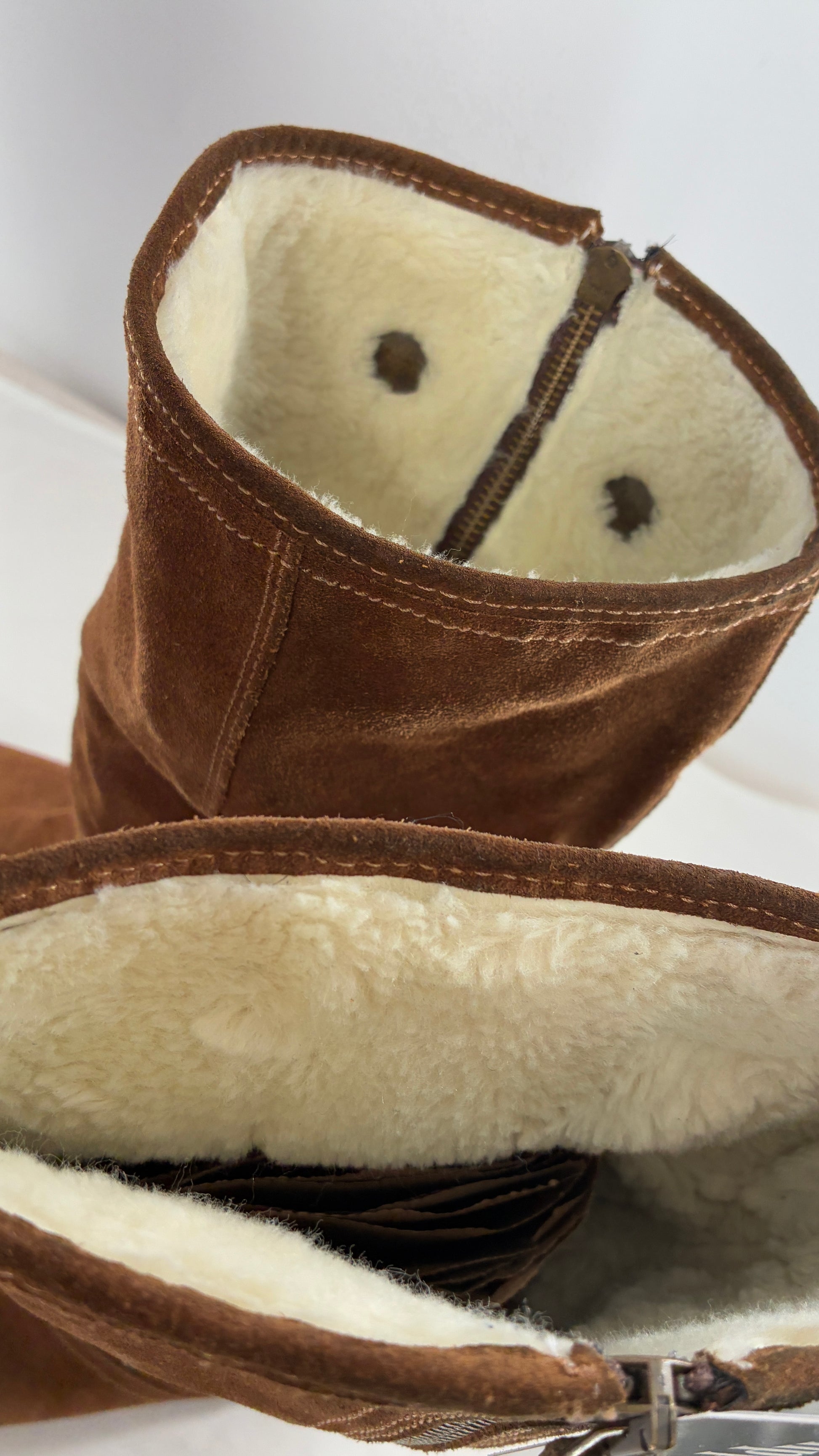 MANAS Brown Suede Leather Combat Style Boots with Fold Over Option