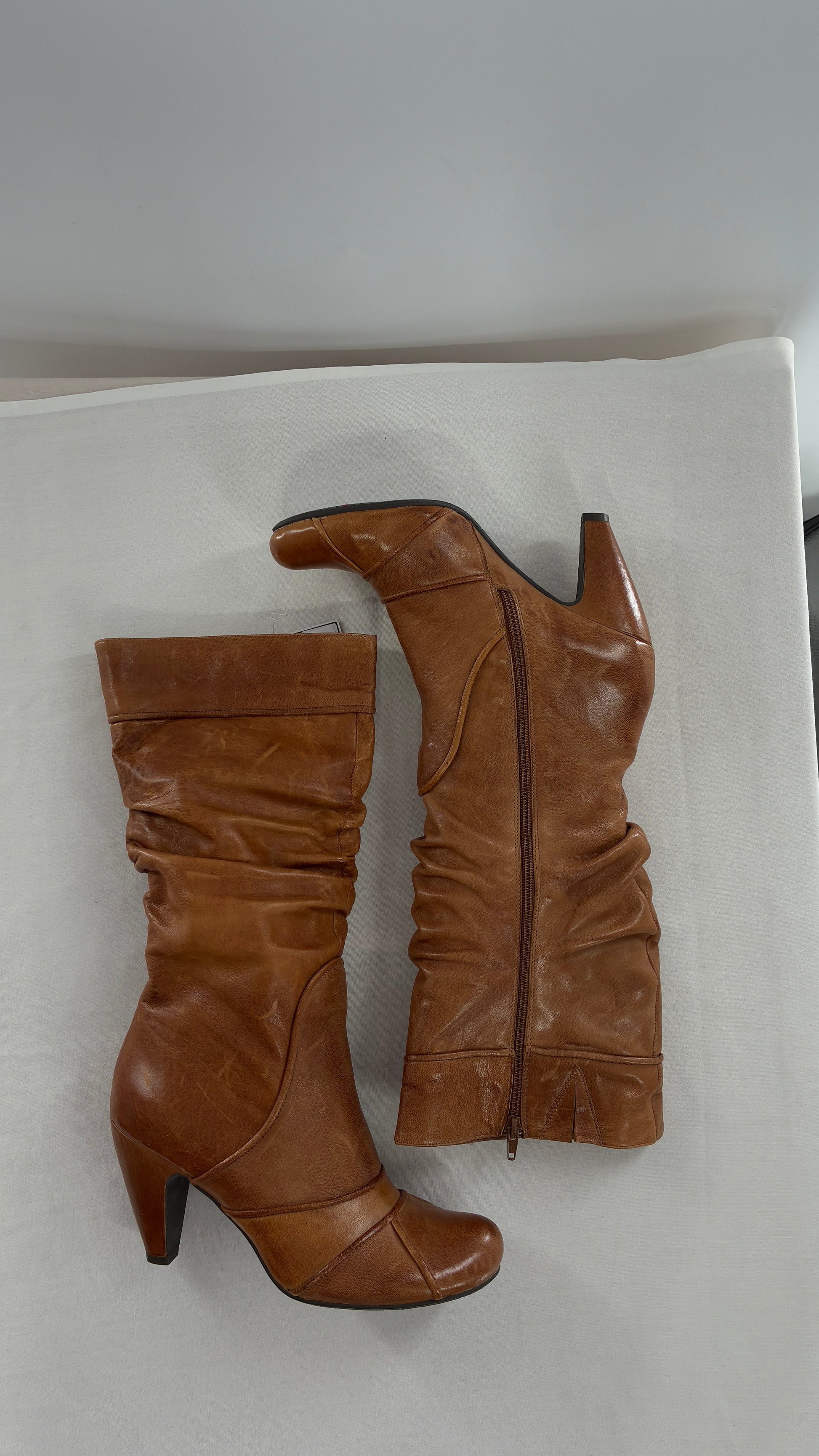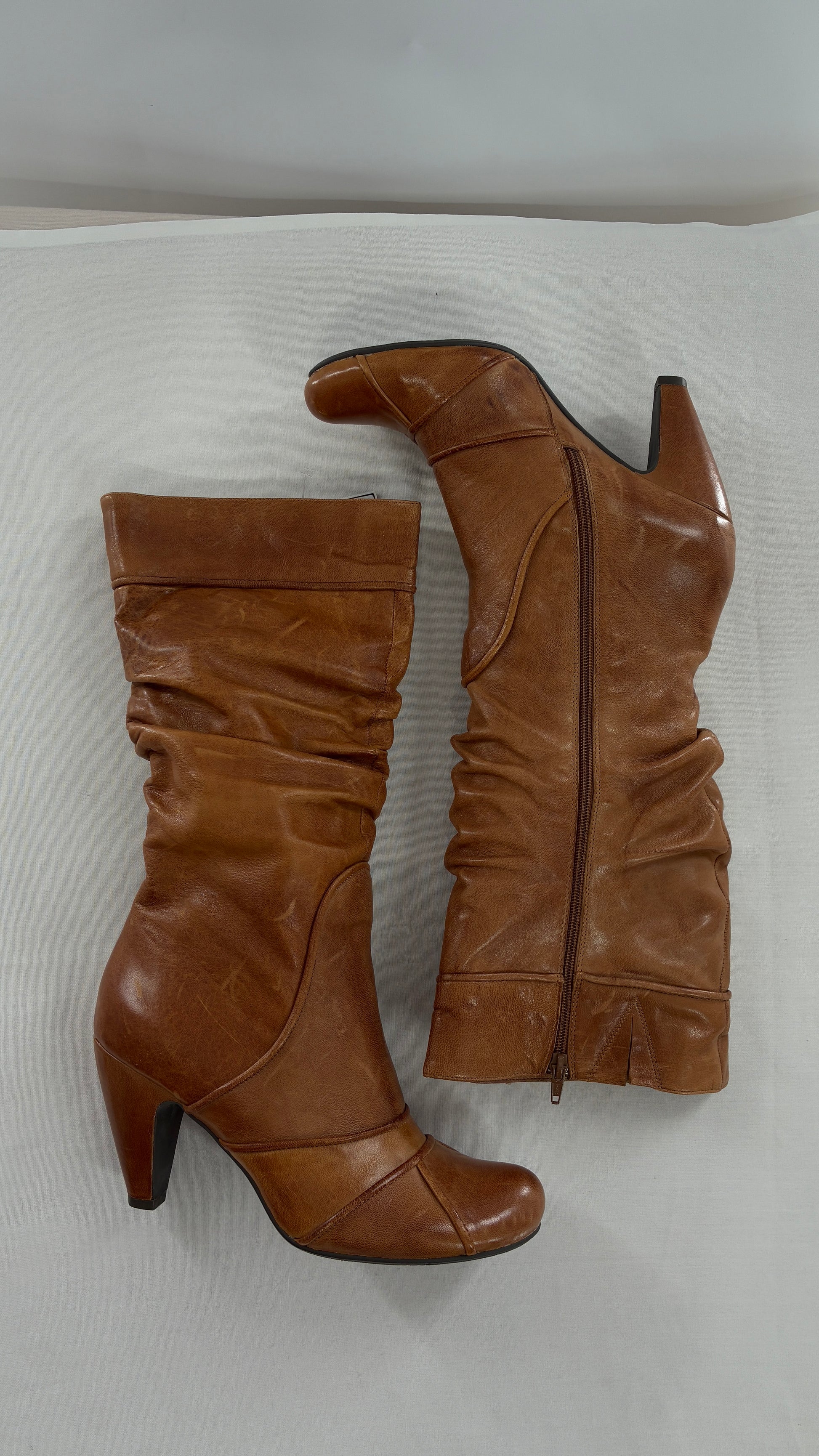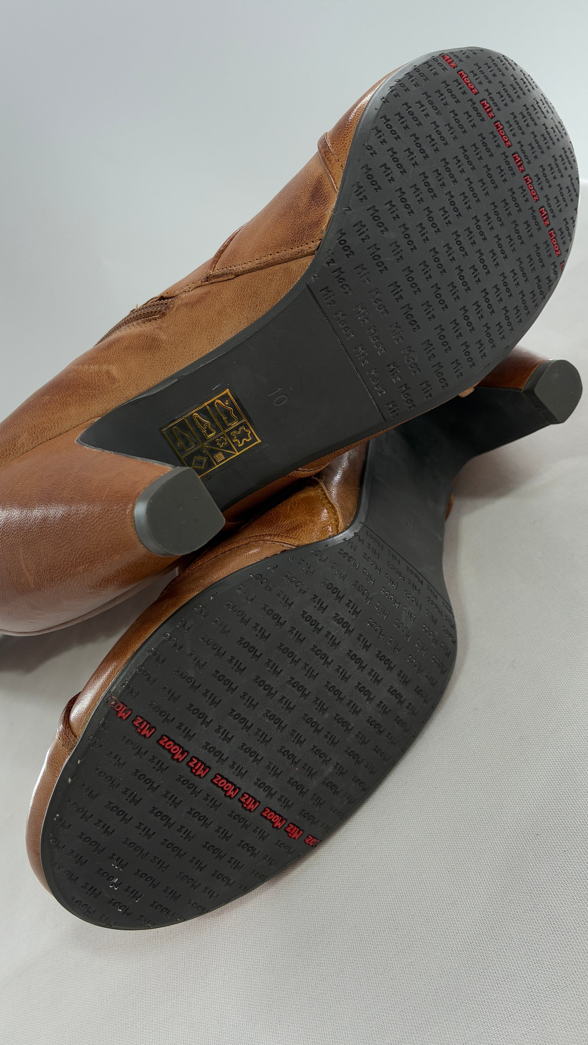 MIZ MOOZ Brown Leather Stacked Round Toe Boot (10)