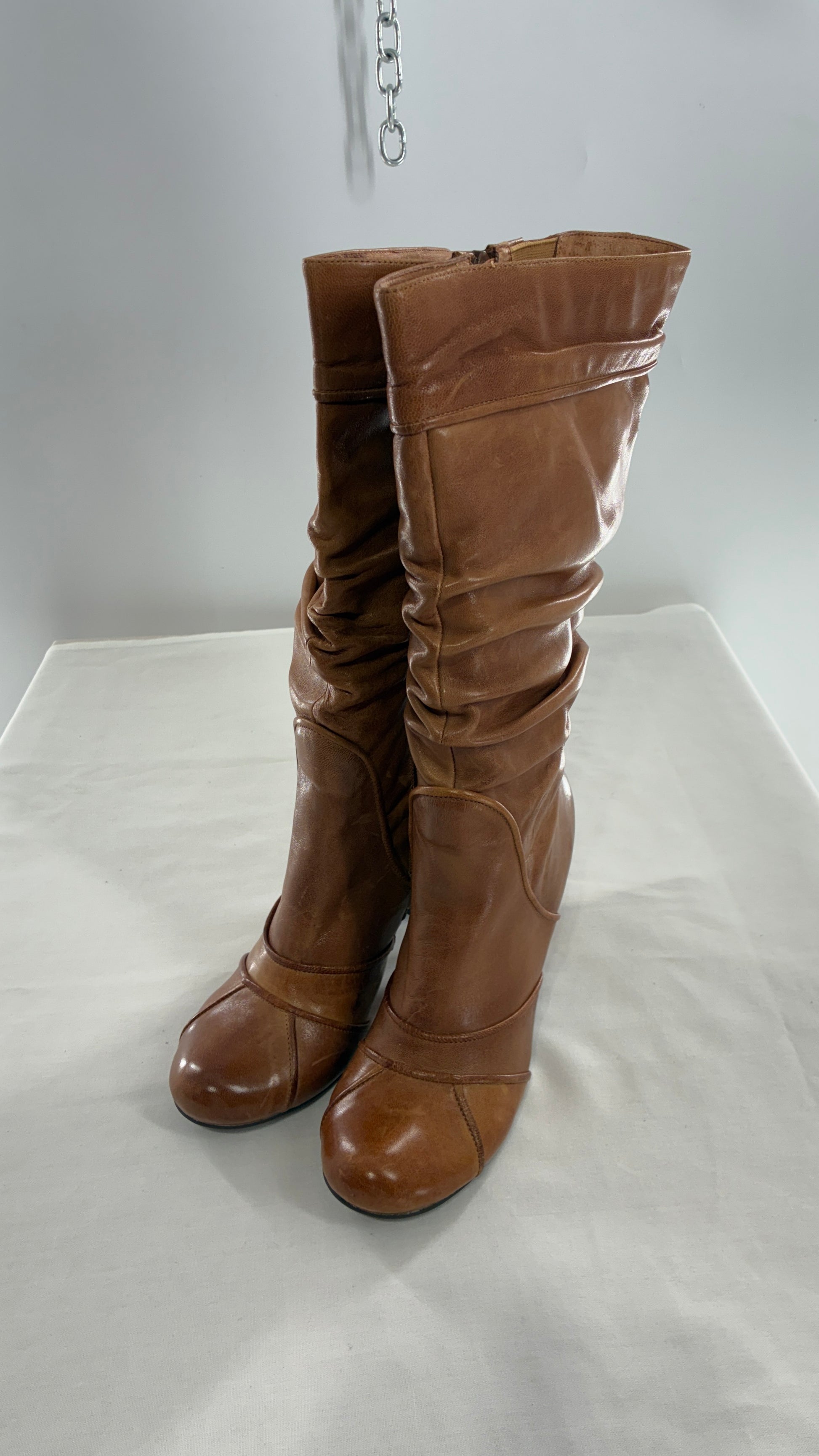 MIZ MOOZ Brown Leather Stacked Round Toe Boot