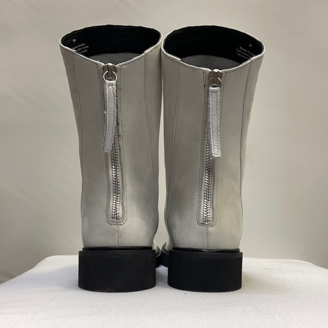This boot’s clean cut, futuristic silhouette with a slouchy feel makes them equally as easy to dress up as they are to dress down. Made of the softest leather, this piece will most likely become your go-to🤍 (Free People 38)