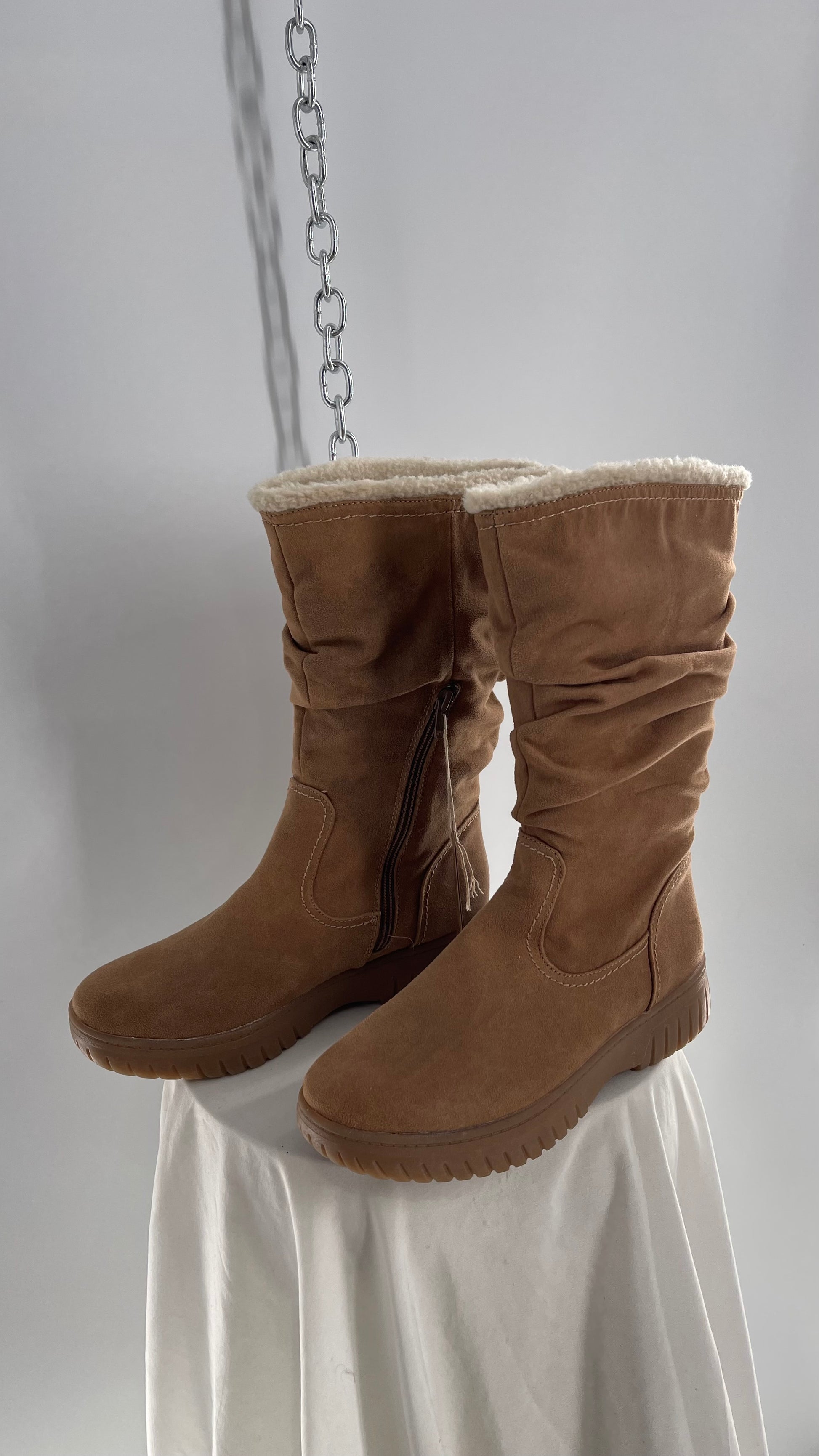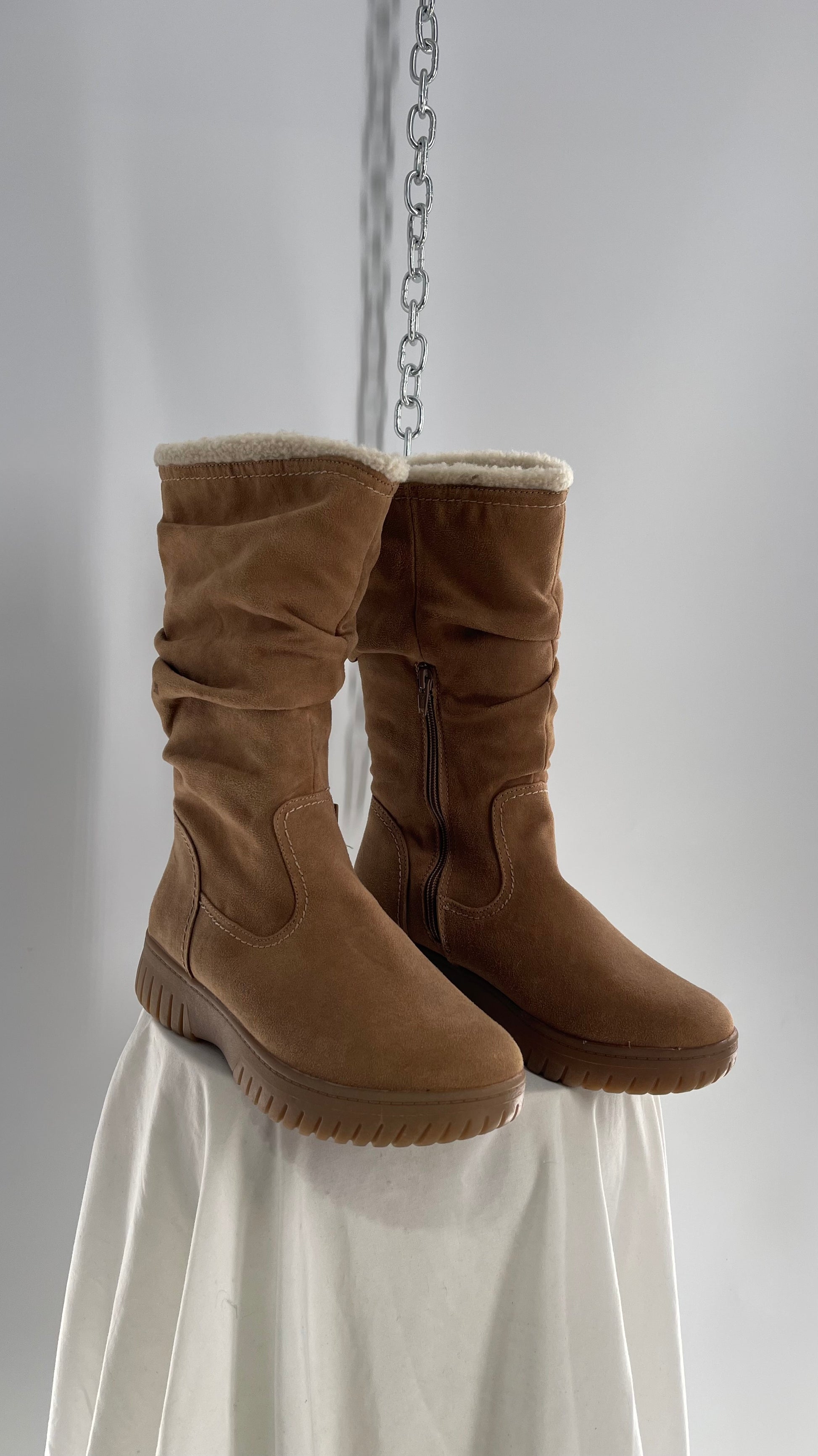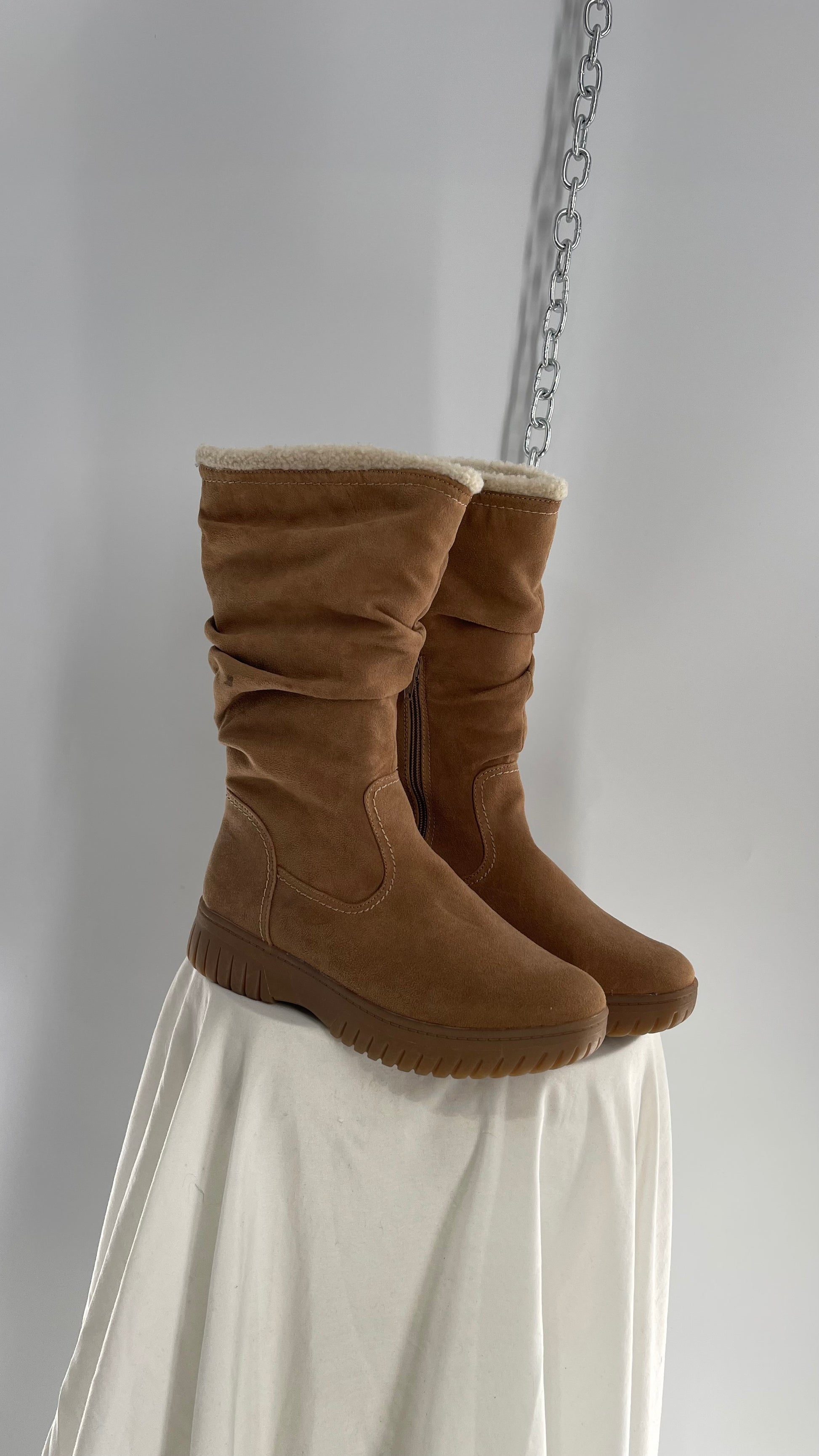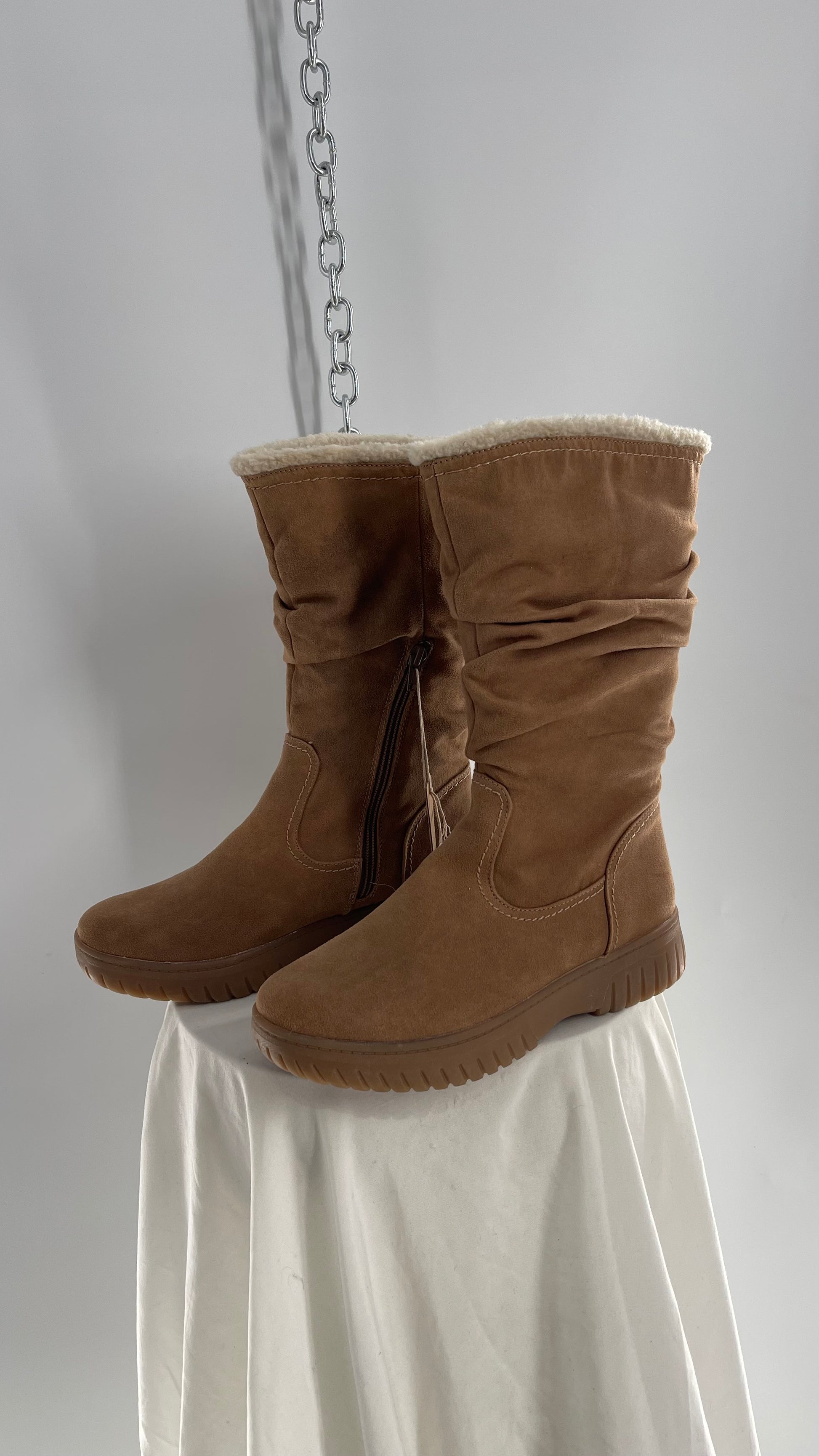 White Mountain Stacked/Ruched Brown Suede Leather Boots with Sherpa Lining and Tags Attached (8.5)