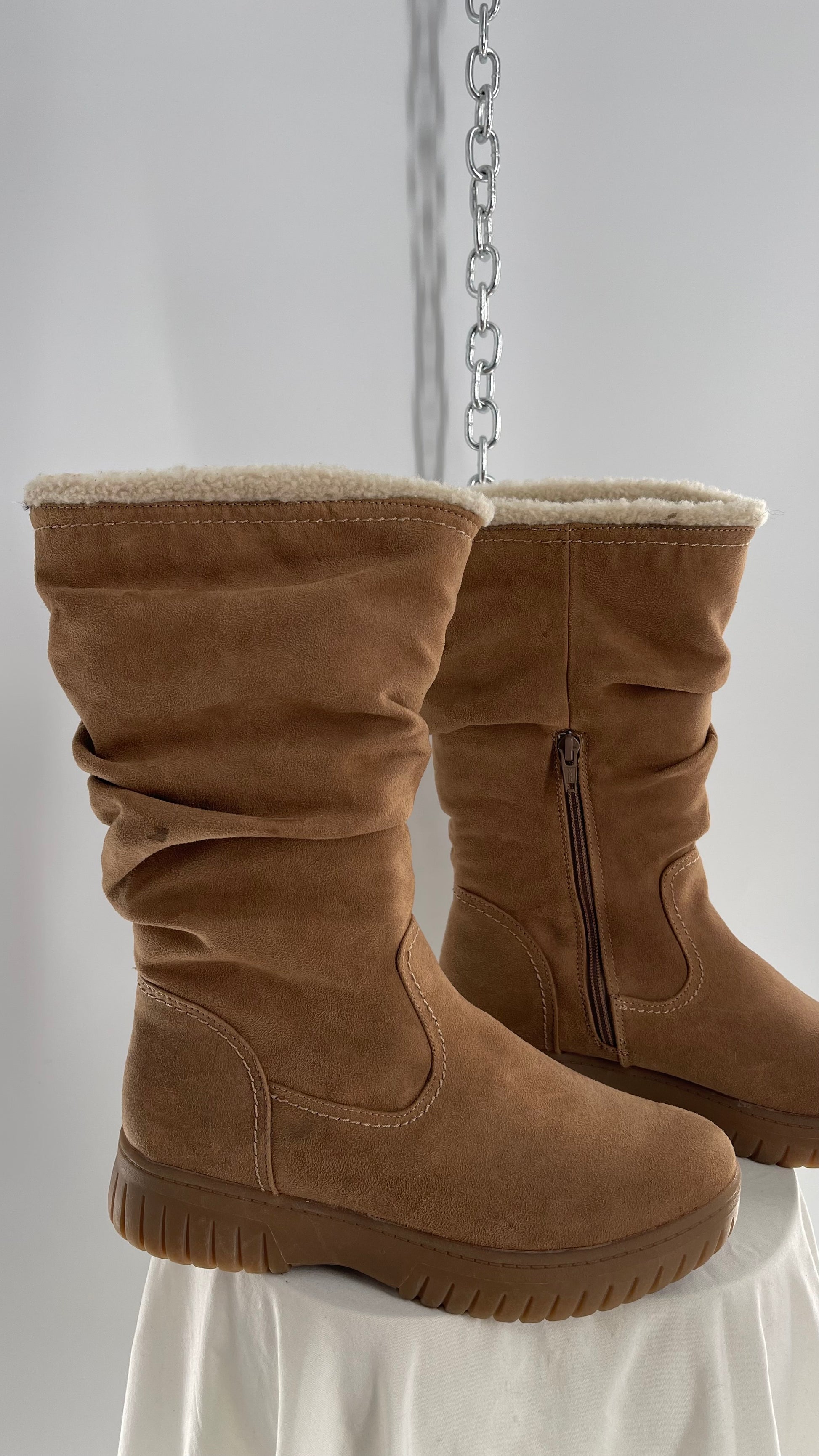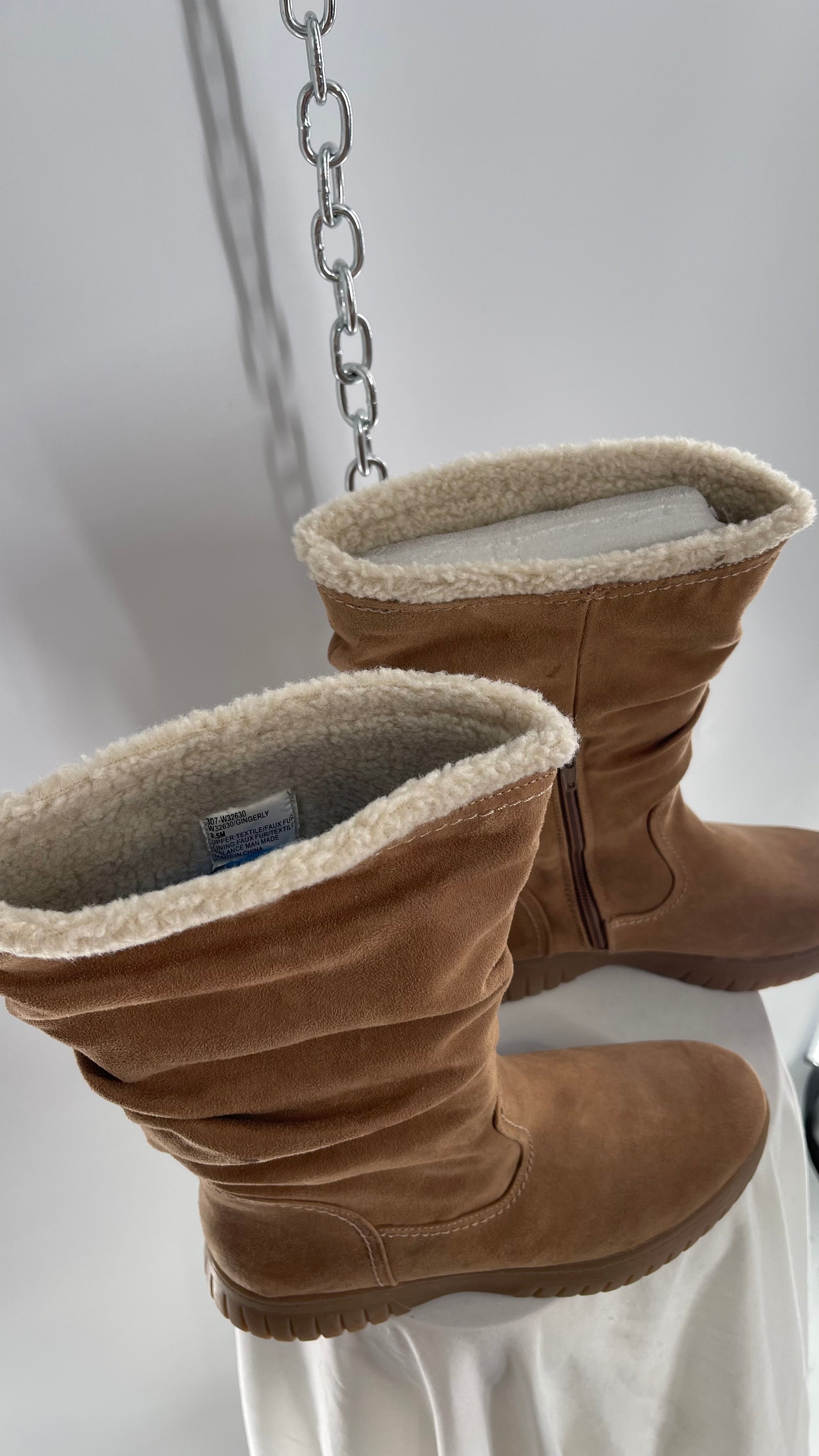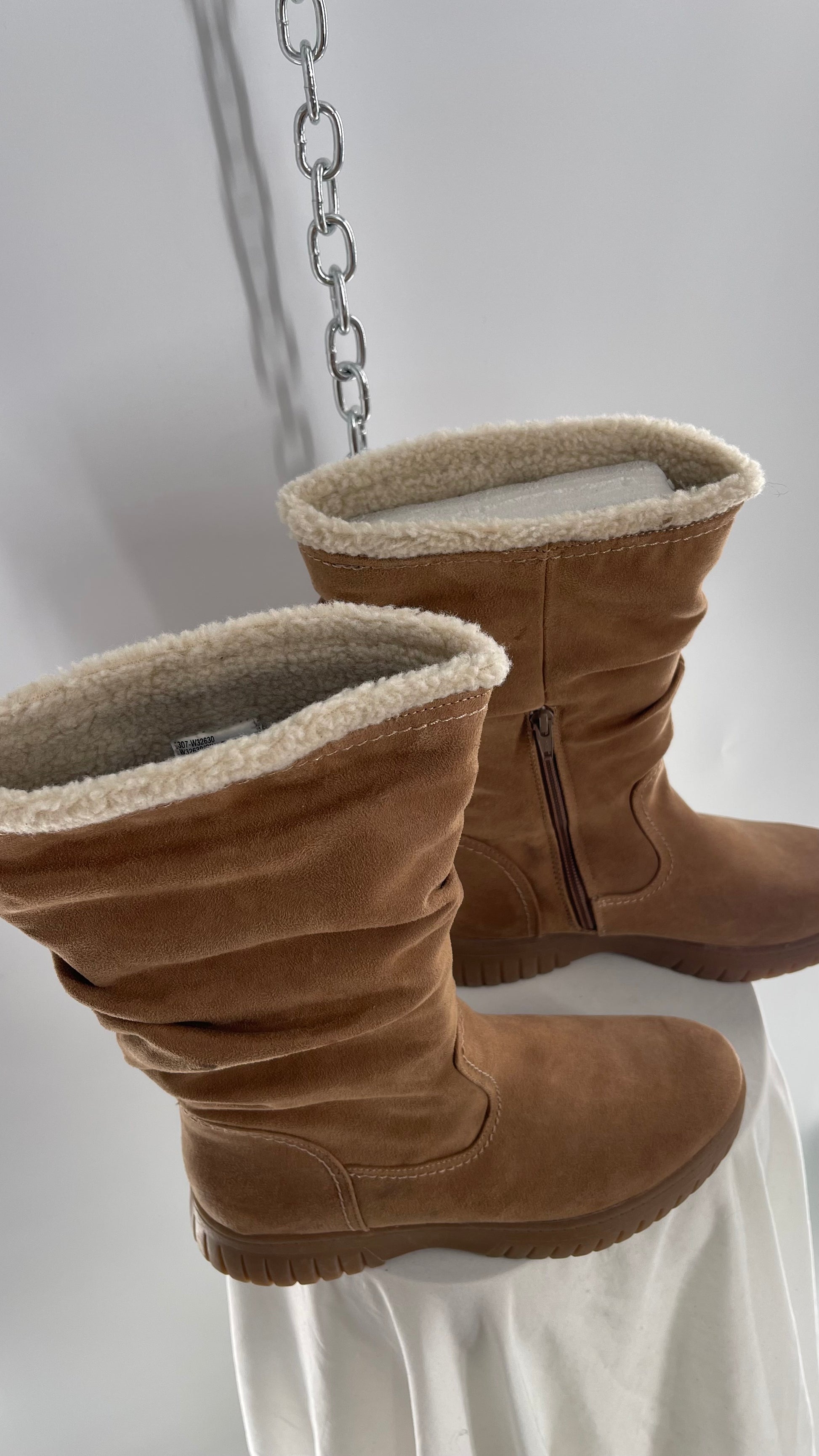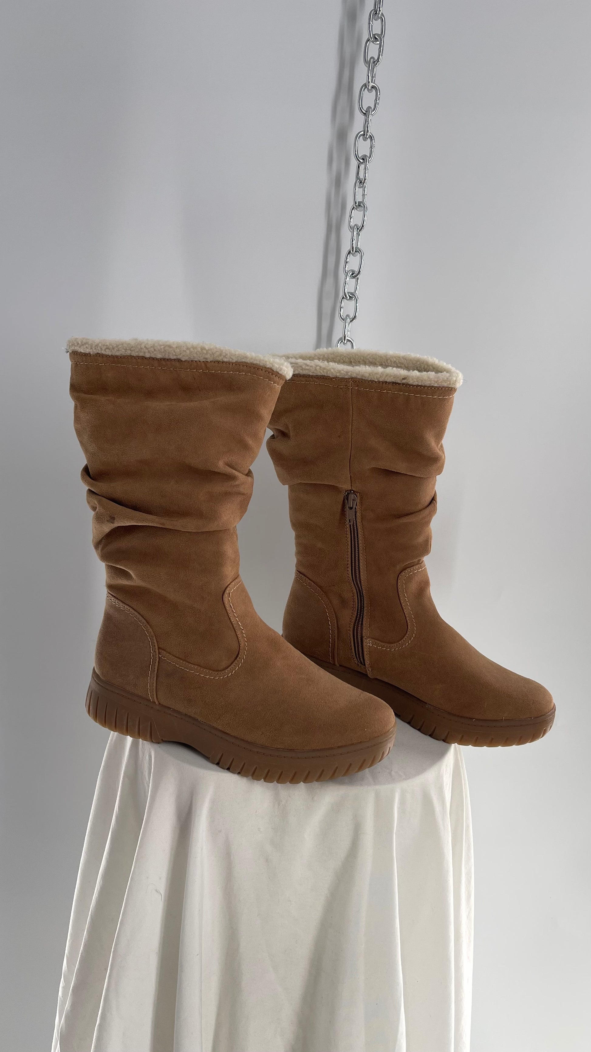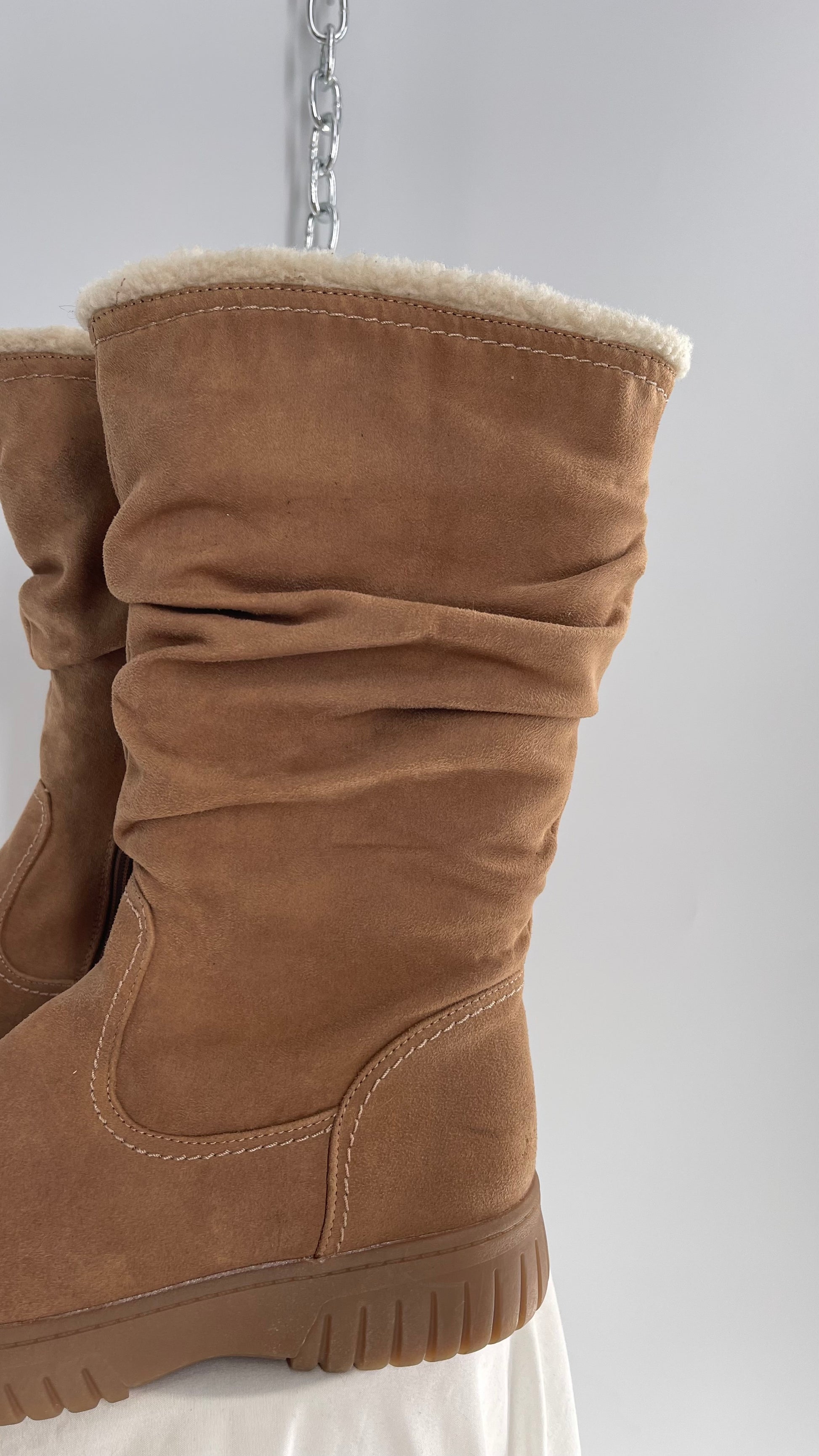 White Mountain Stacked/Ruched Brown Suede Leather Boots with Sherpa Lining and Tags Attached (8.5)