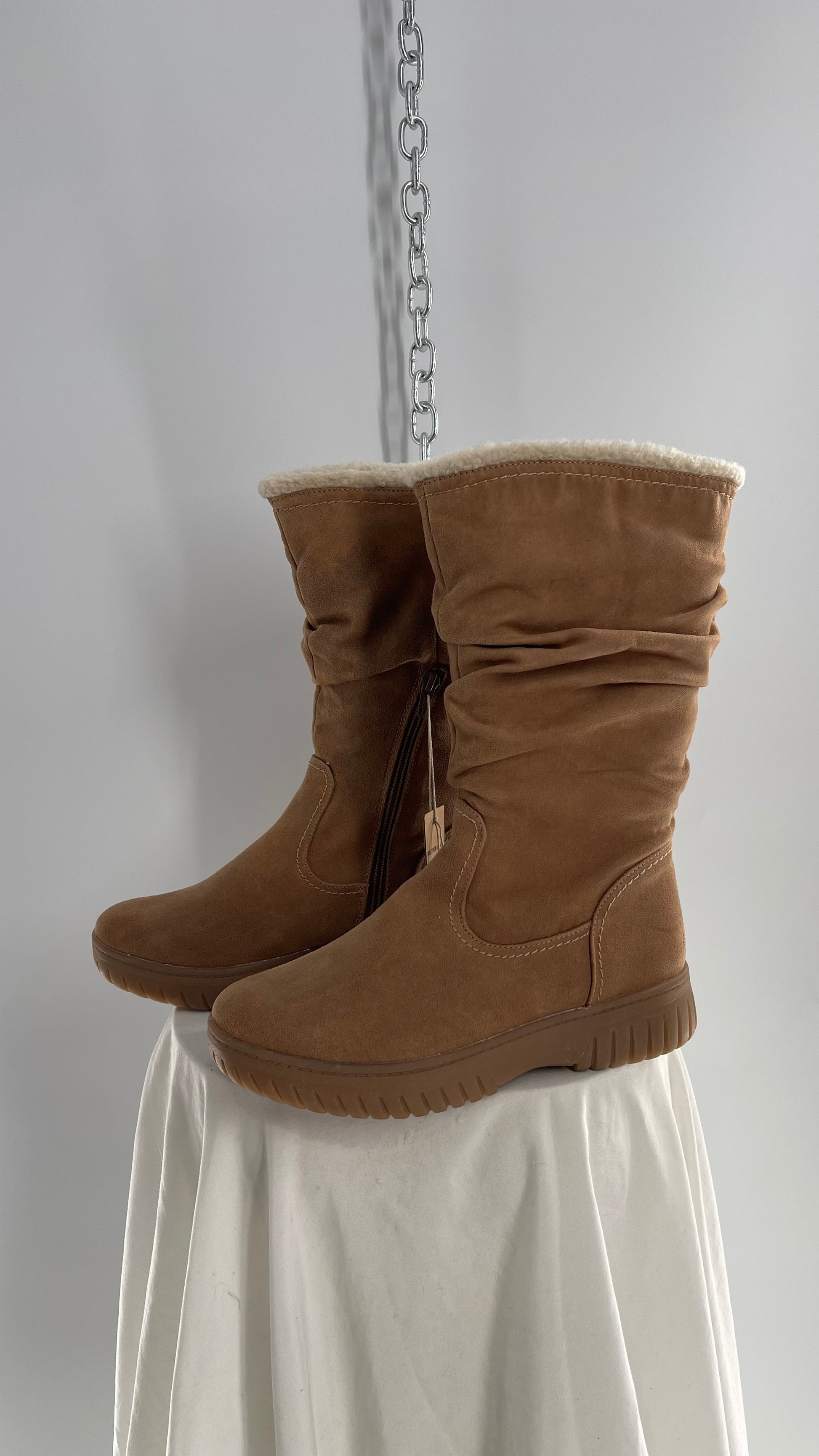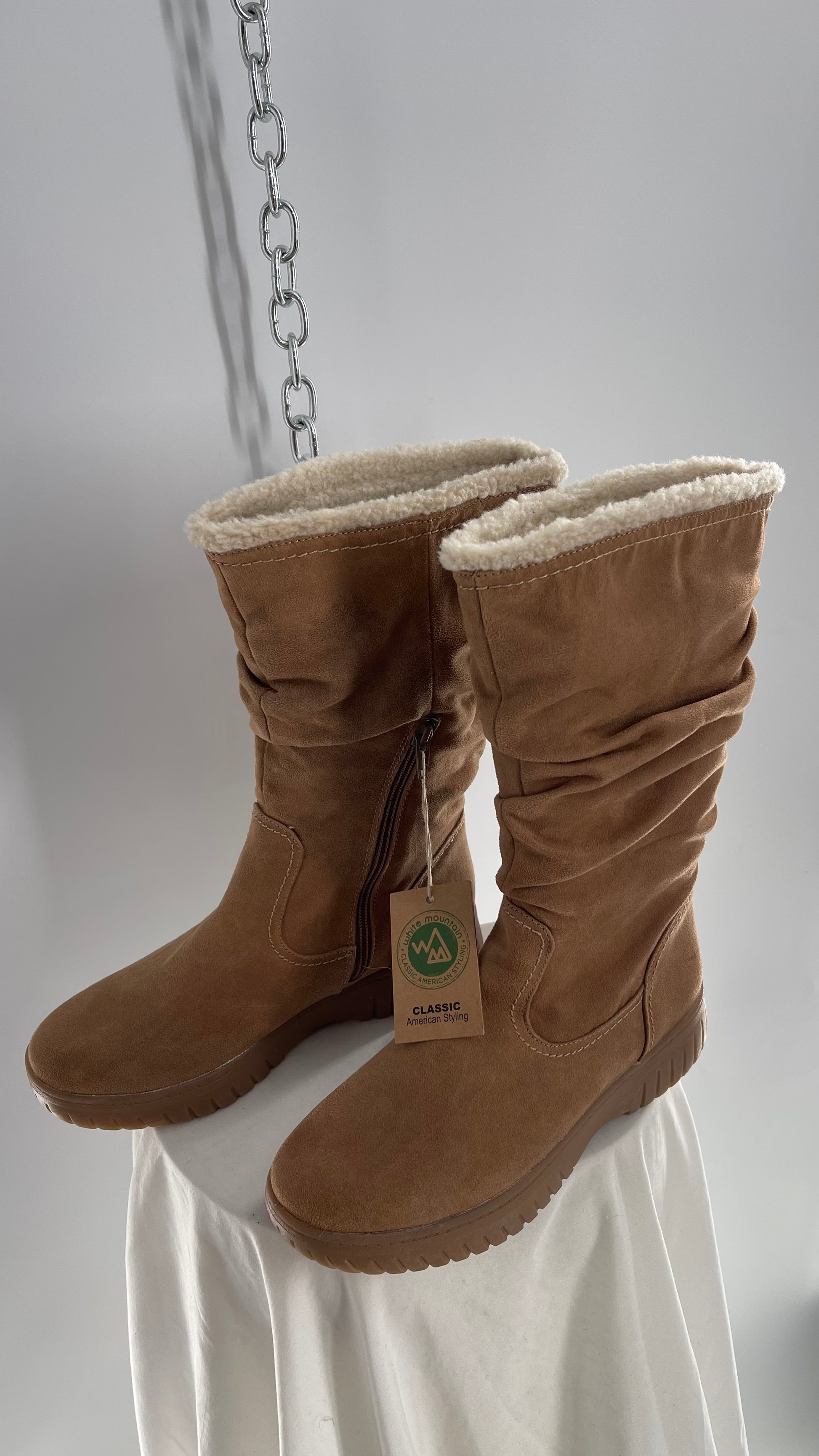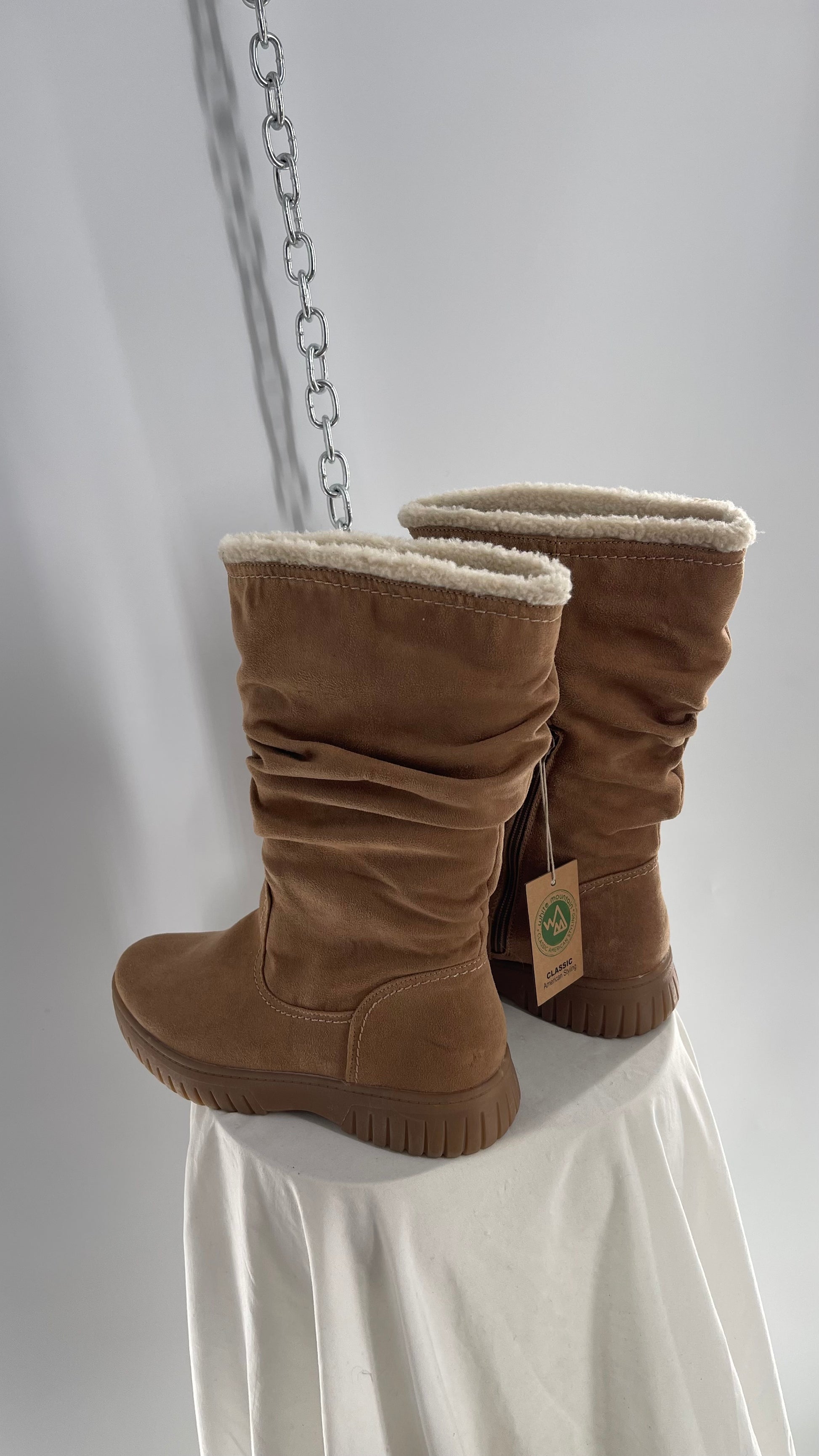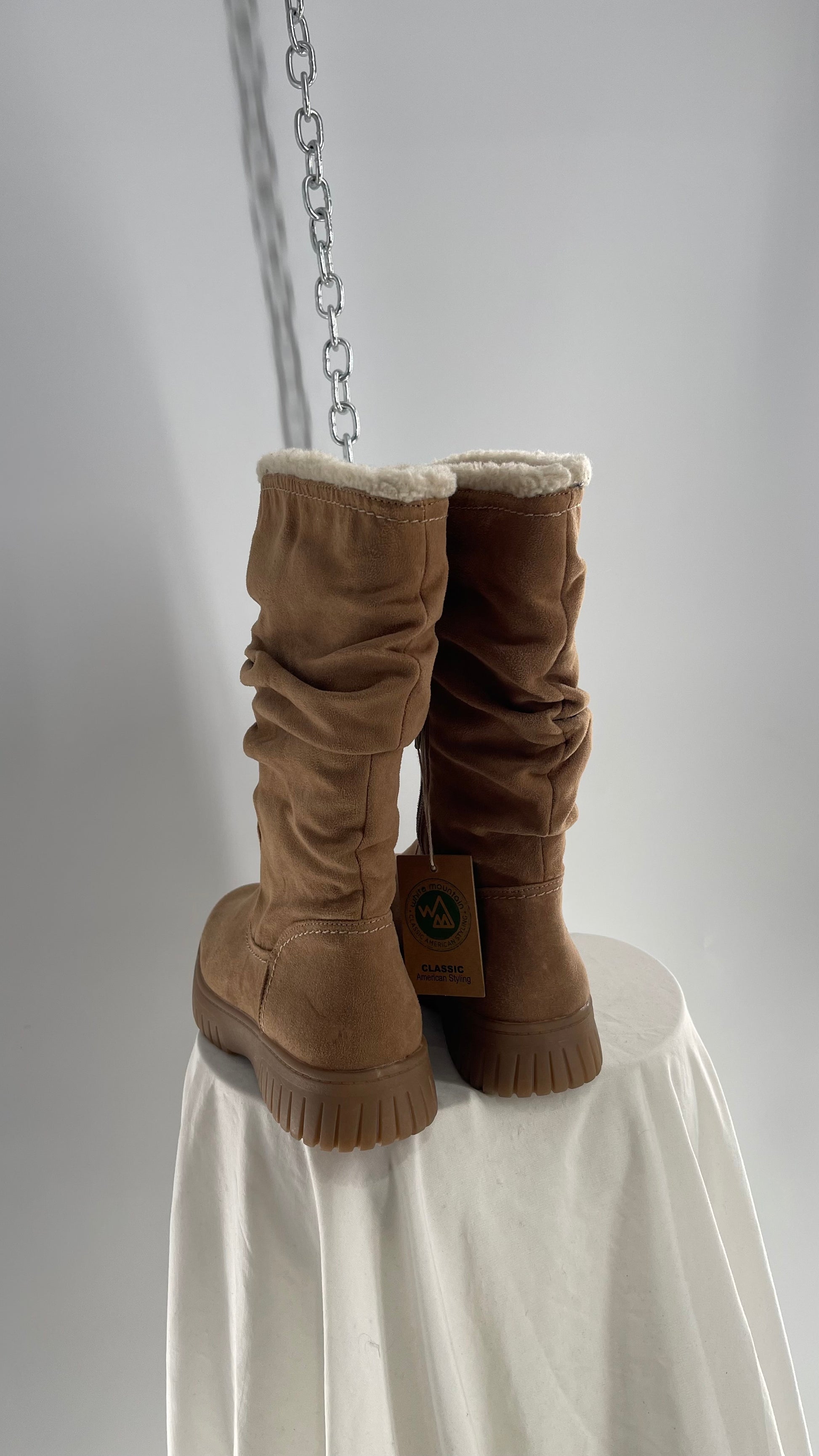 White Mountain Stacked/Ruched Brown Suede Leather Boots with Sherpa Lining and Tags Attached