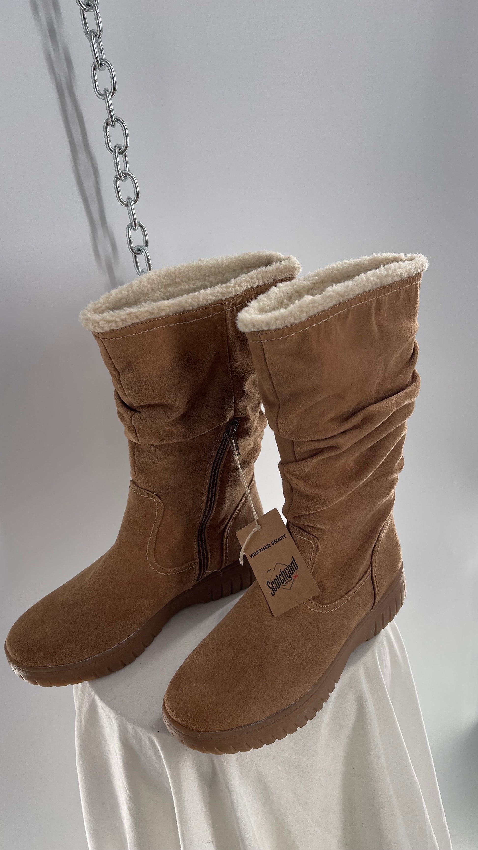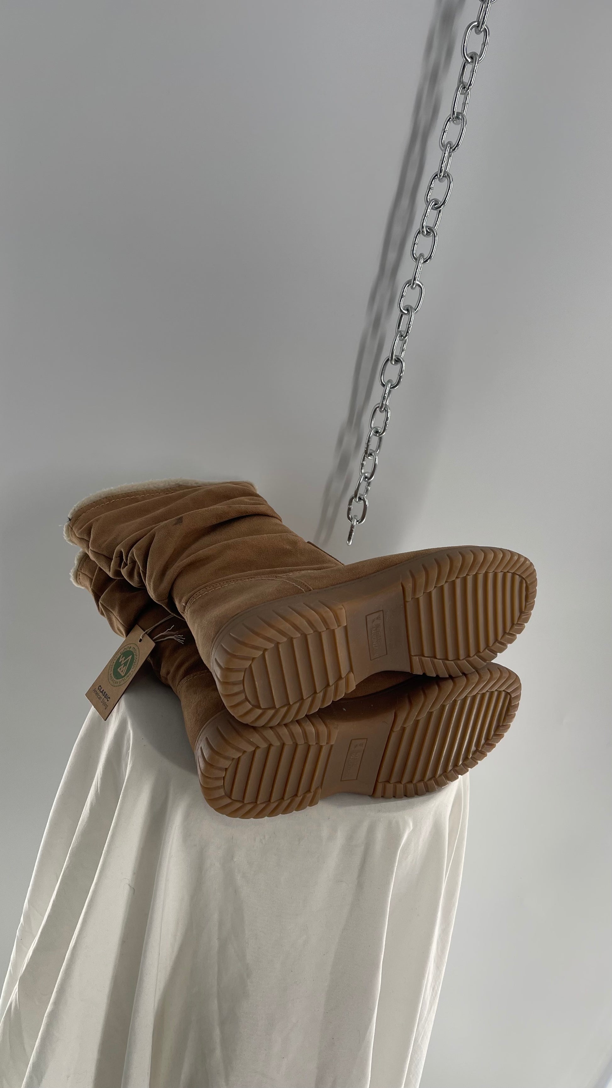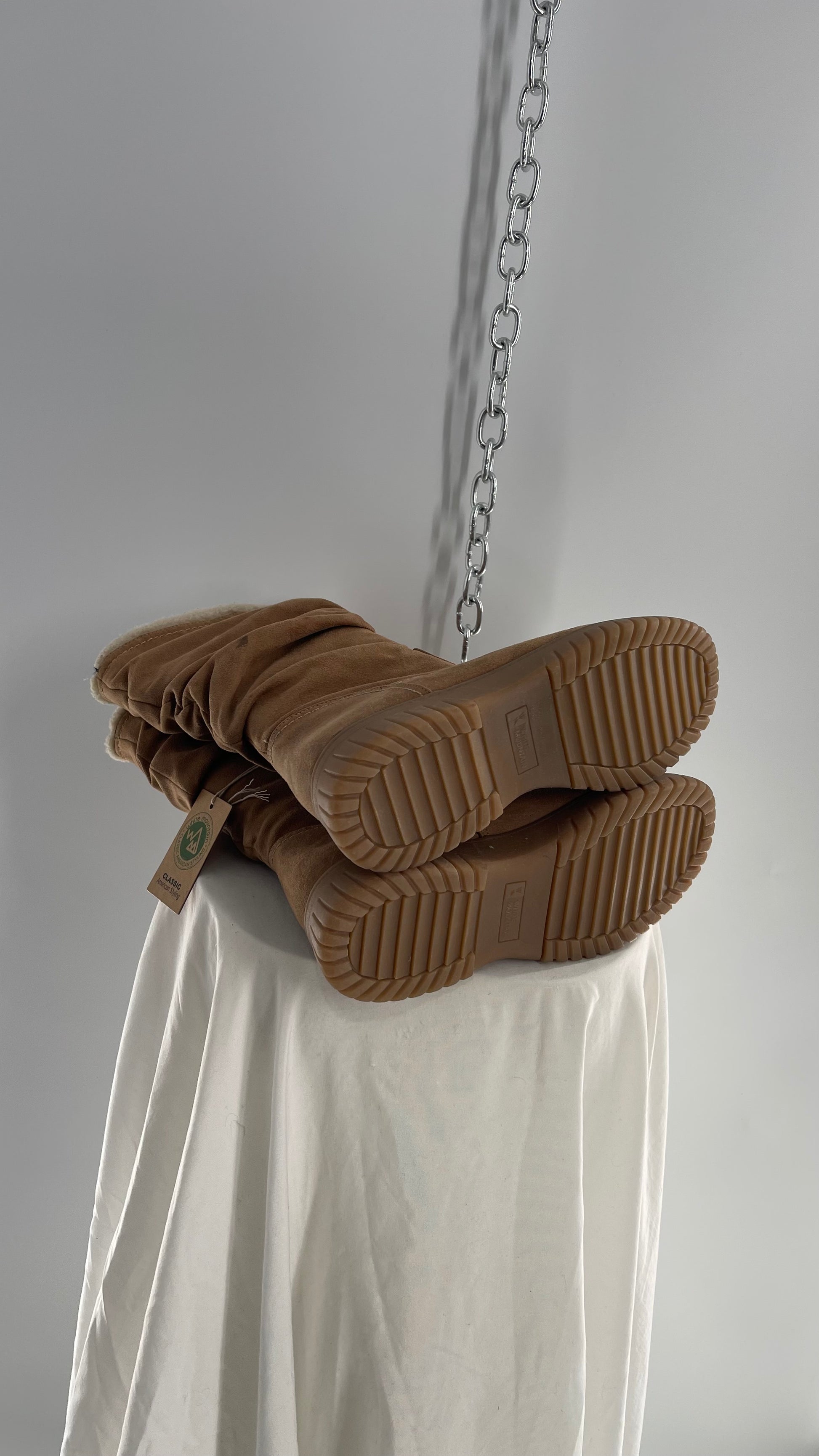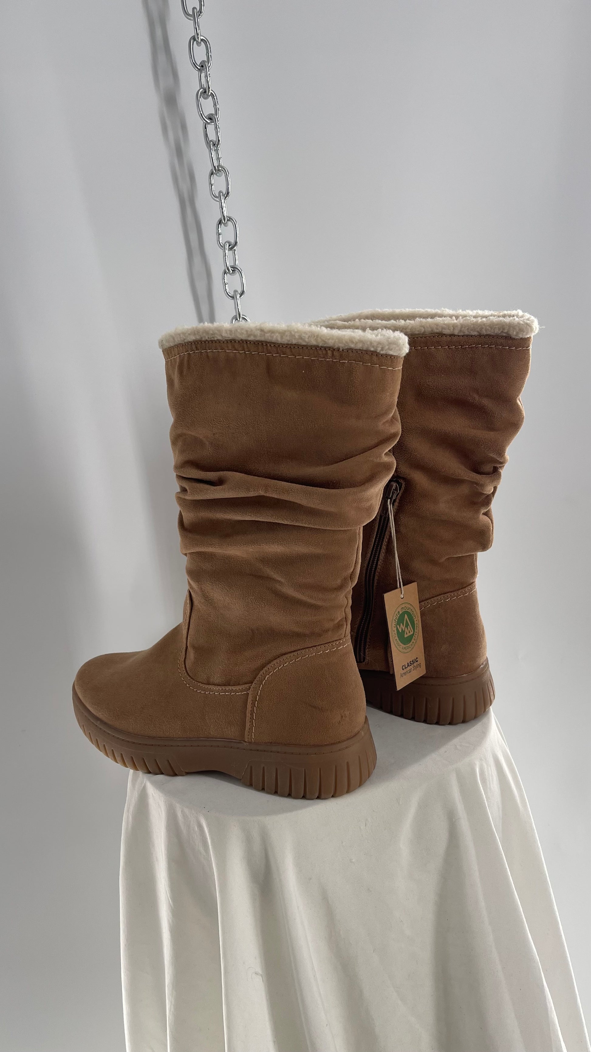 White Mountain Stacked/Ruched Brown Suede Leather Boots with Sherpa Lining and Tags Attached