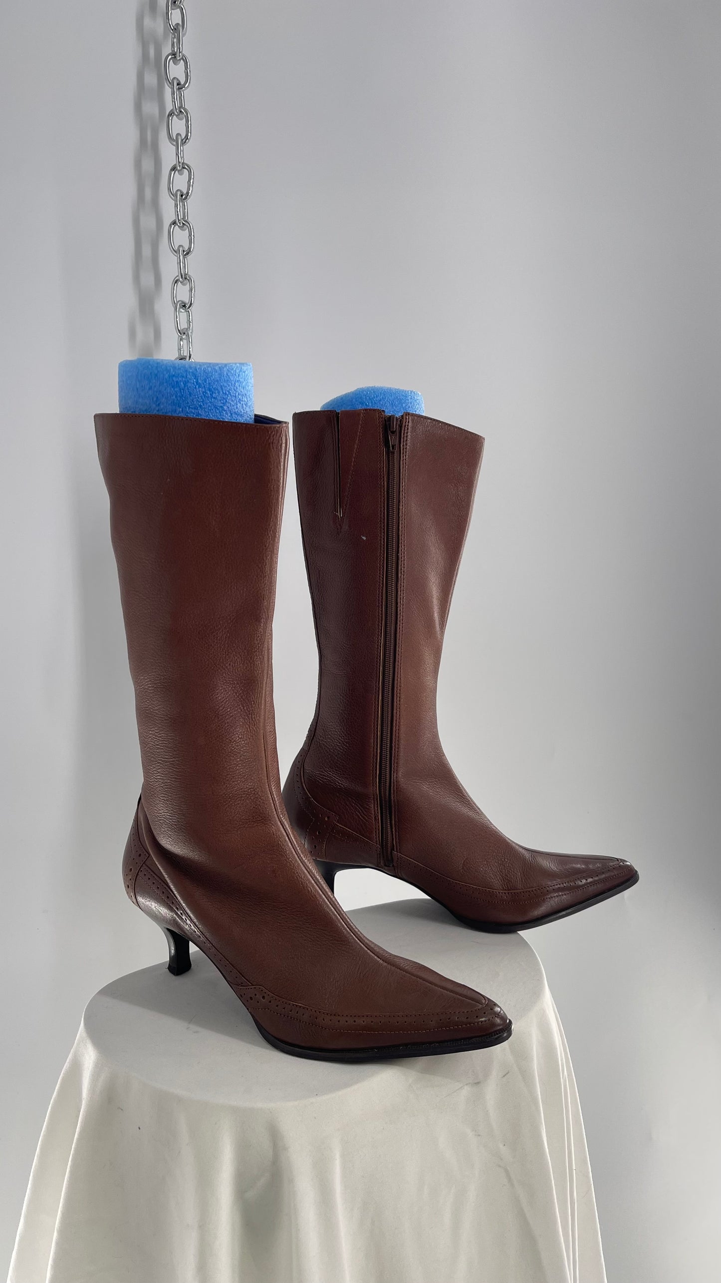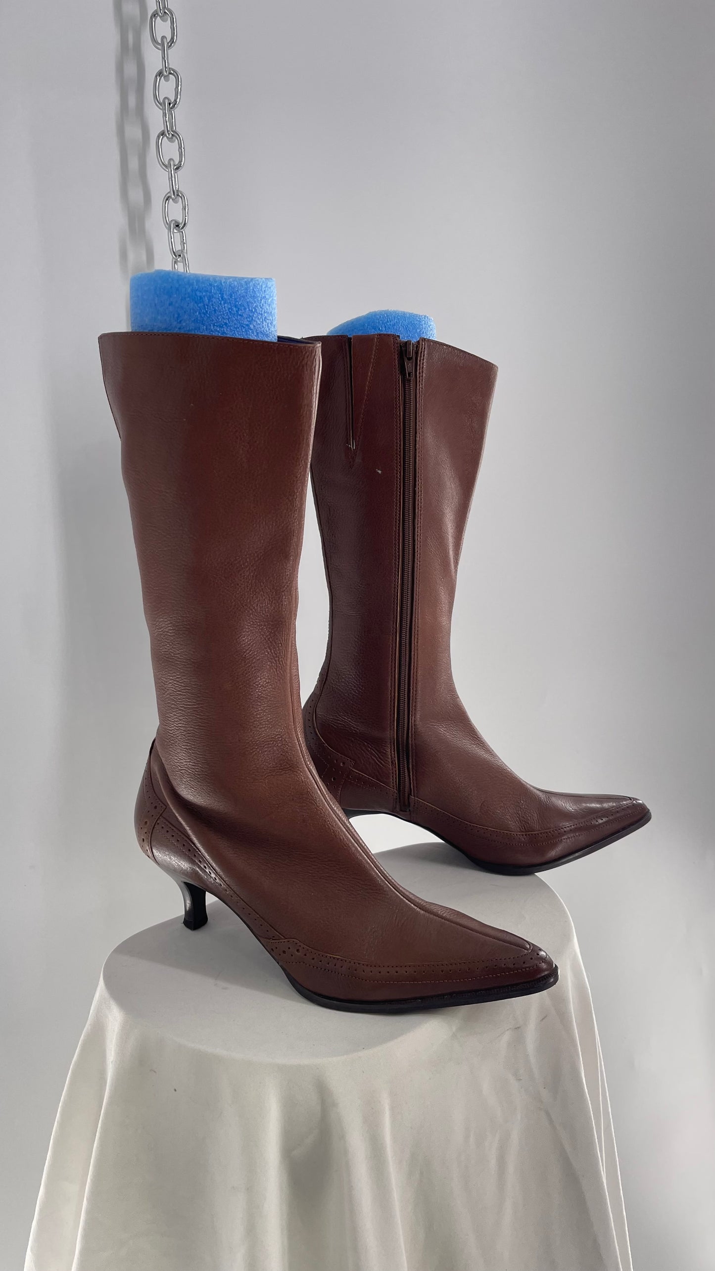 Vintage LOFT Brown Leather Pointed Toe Kitten Heel Boots (7.5)