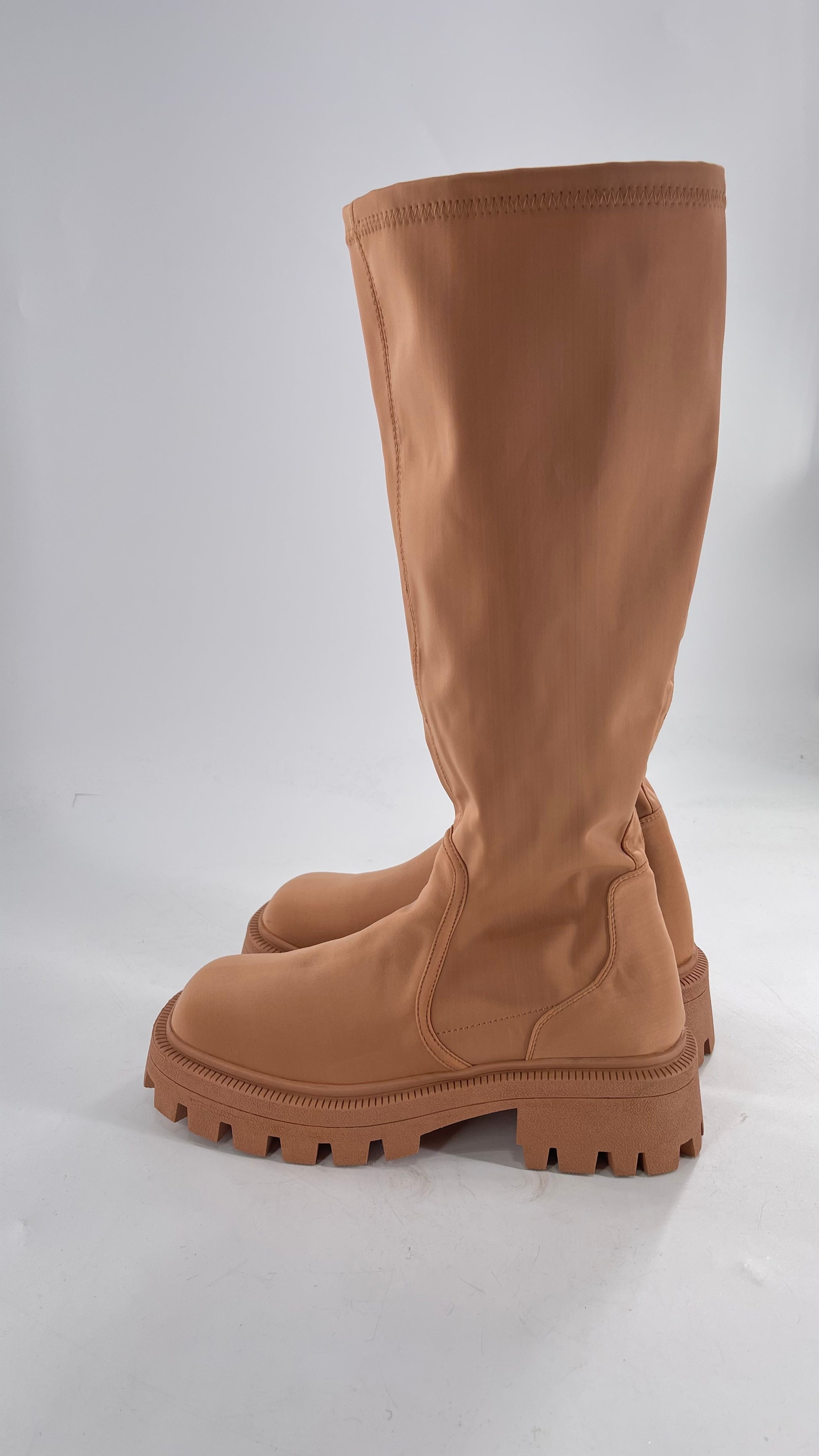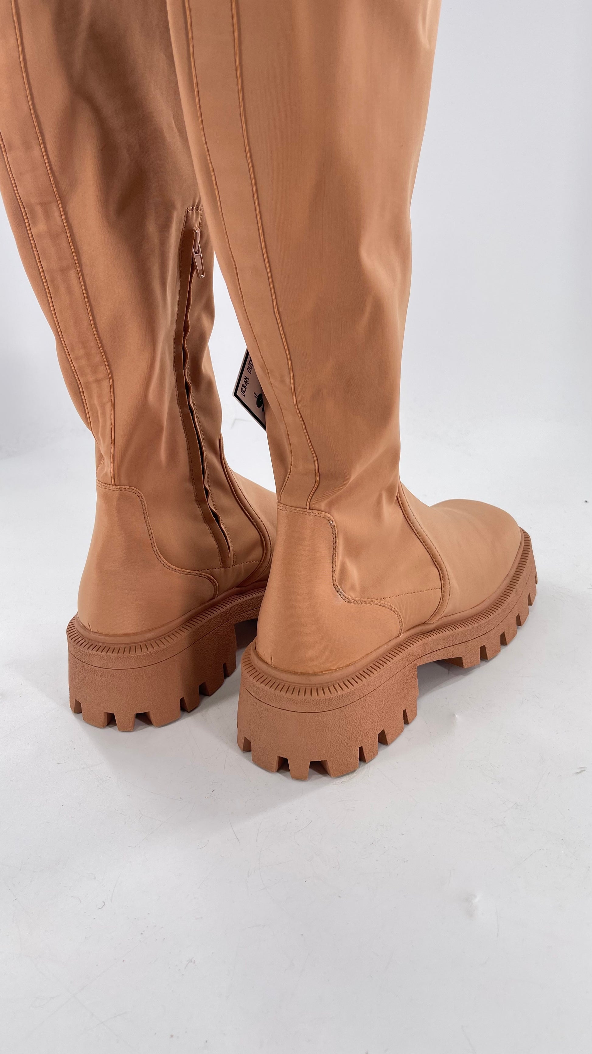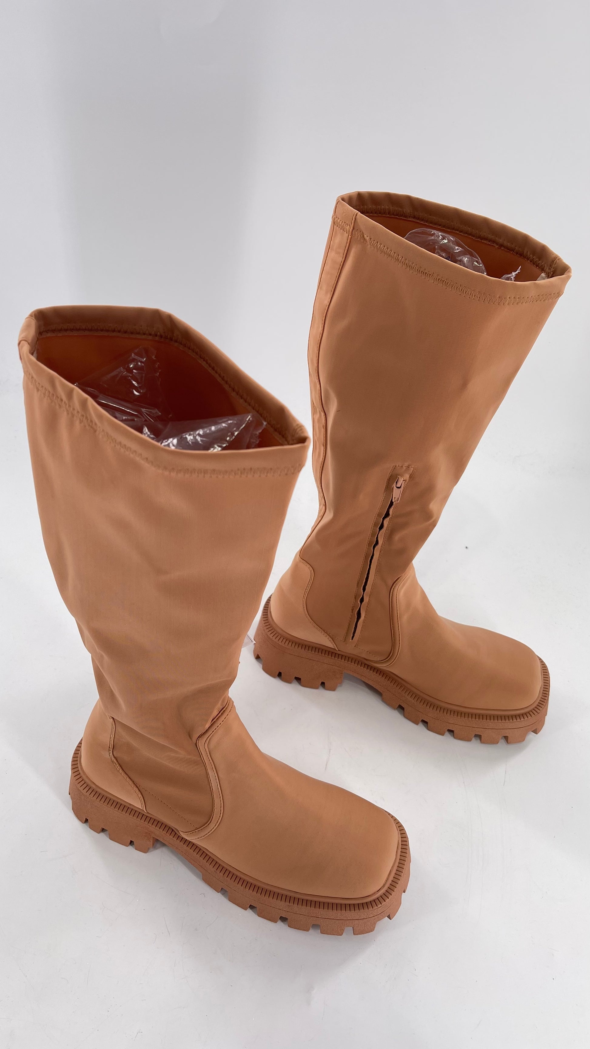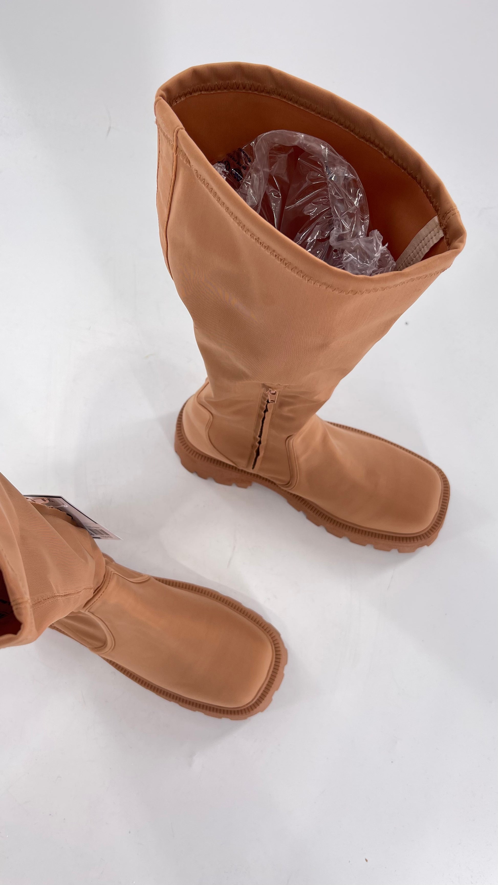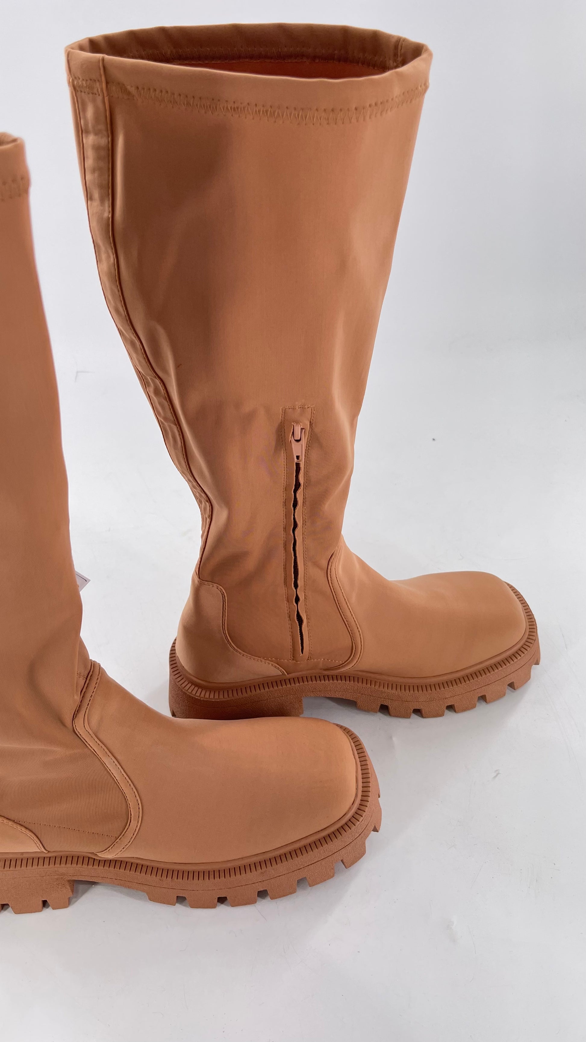 Urban Outfitters Tan Knee High Square Toe Sock Boot (8)