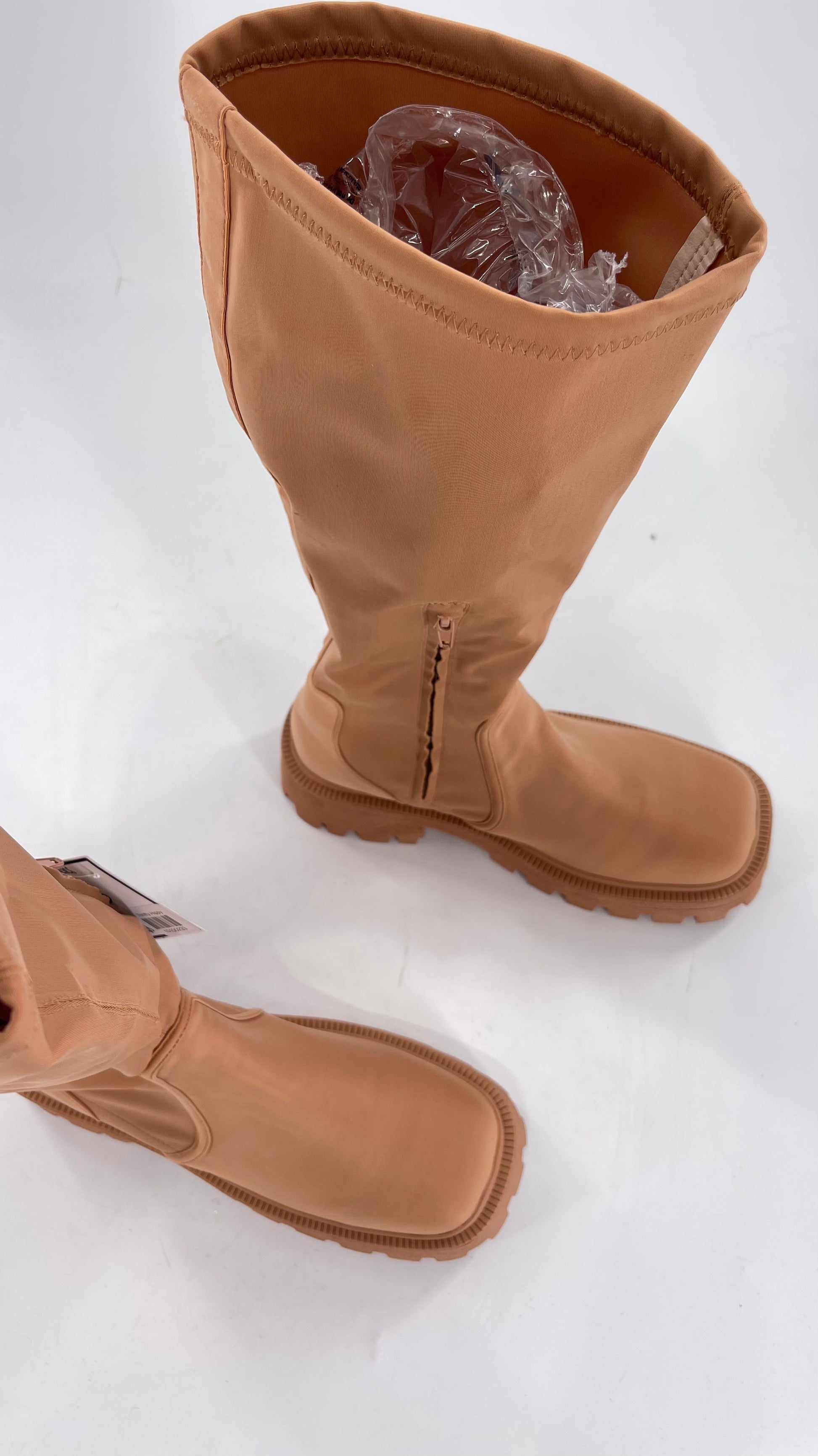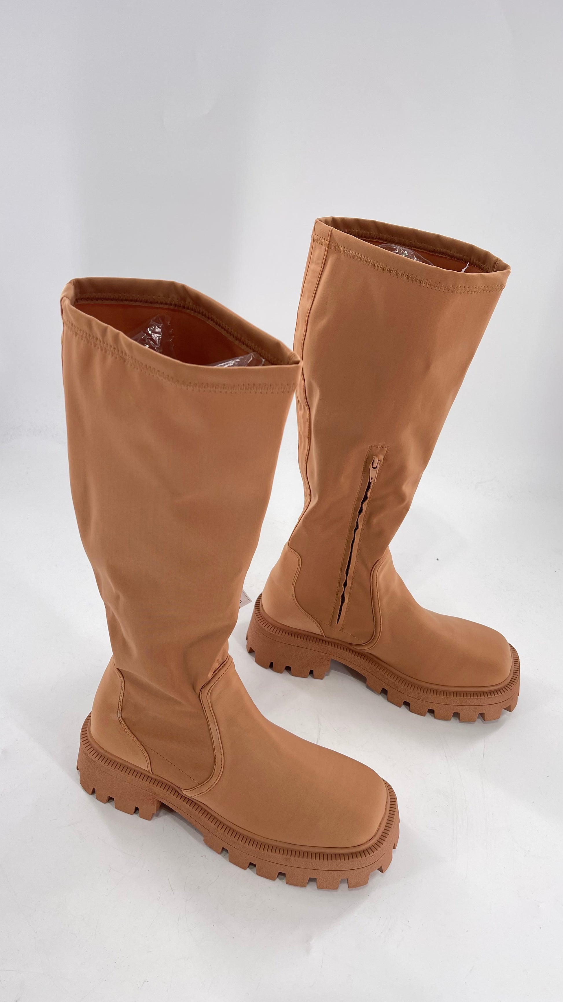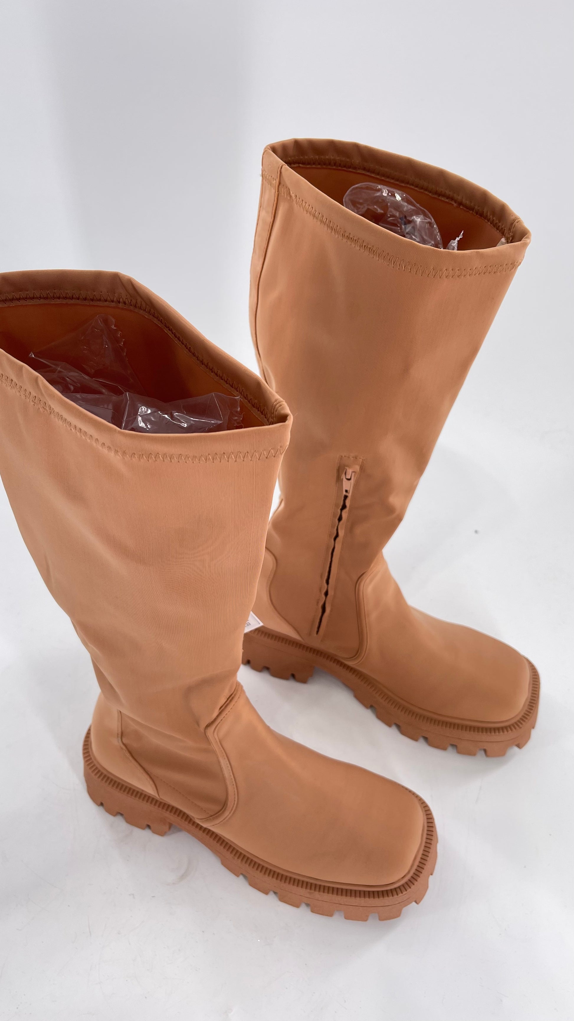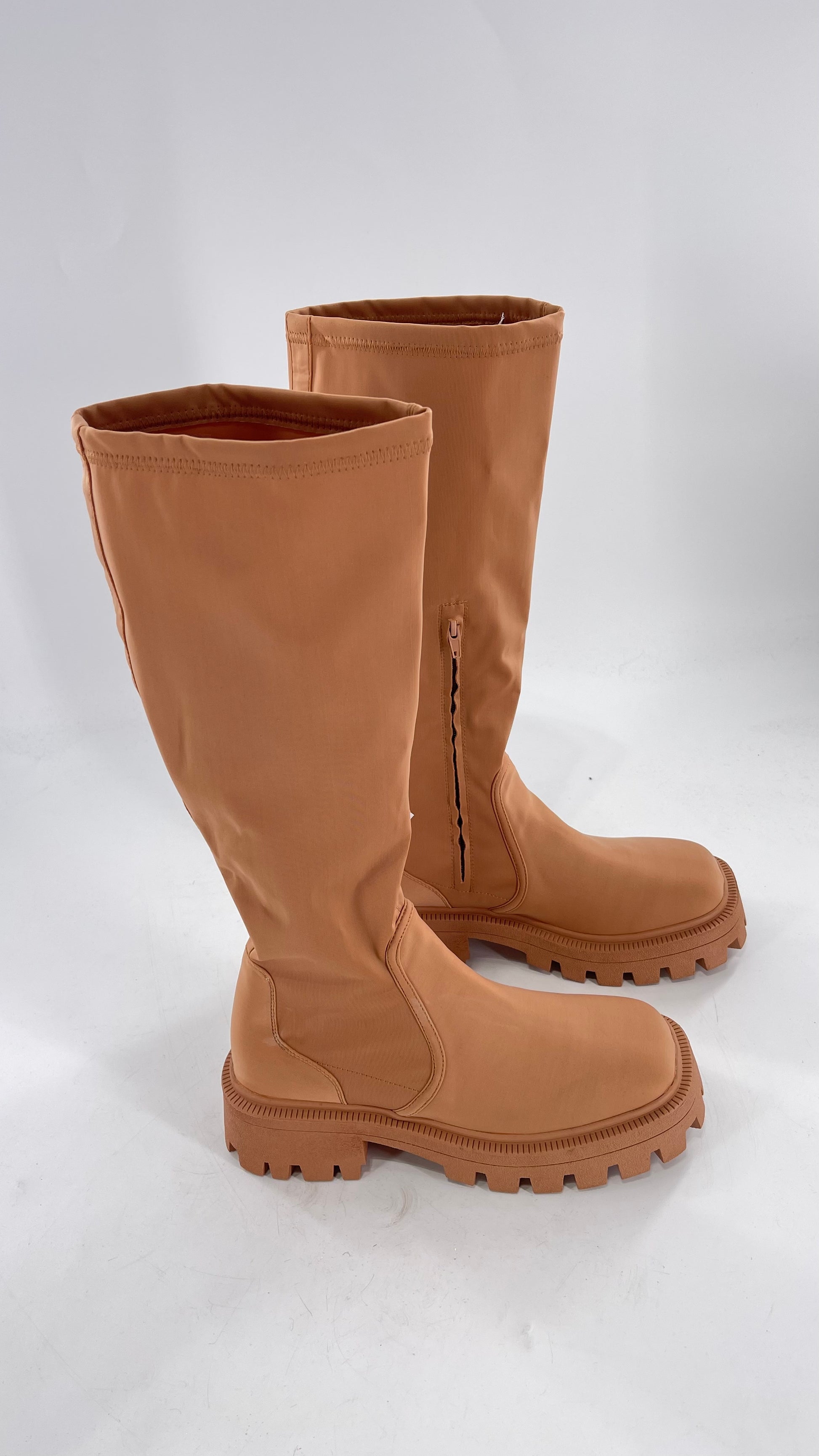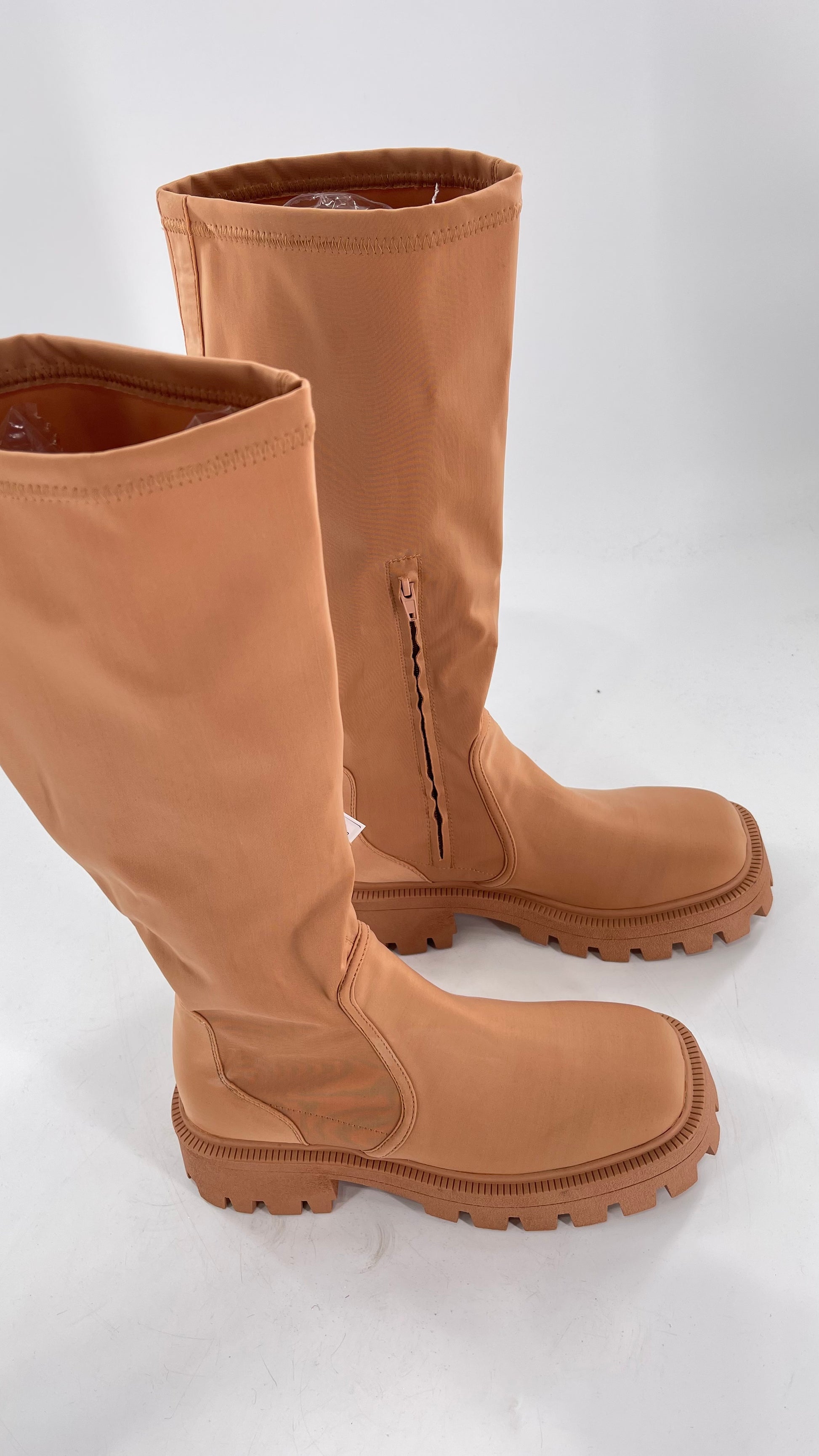 Urban Outfitters Tan Knee High Square Toe Sock Boot (8)