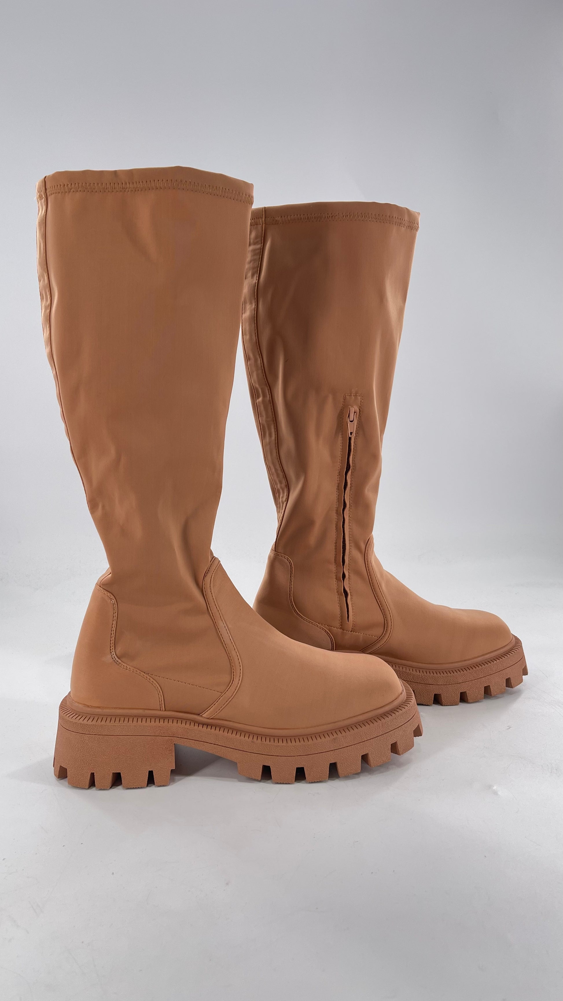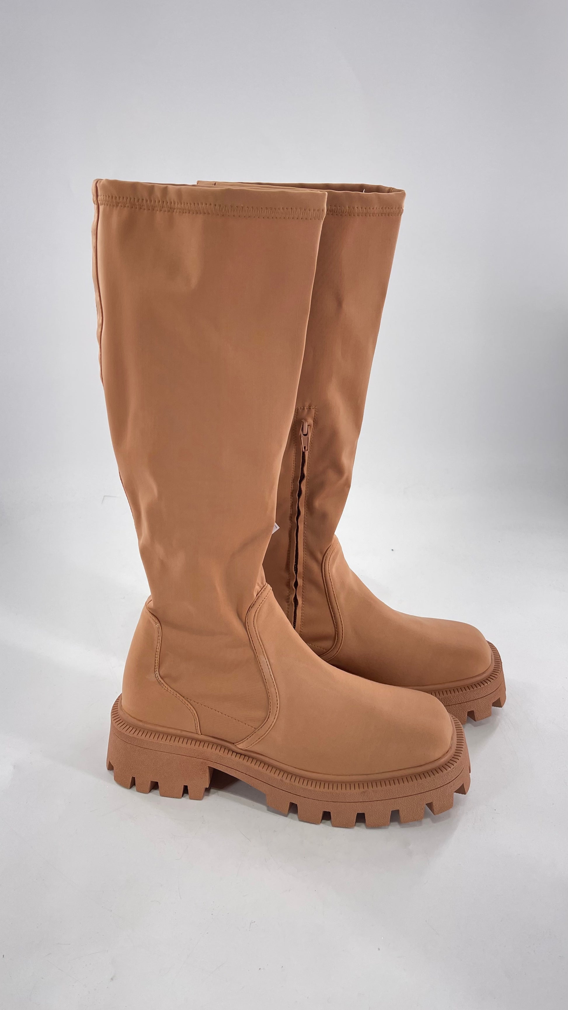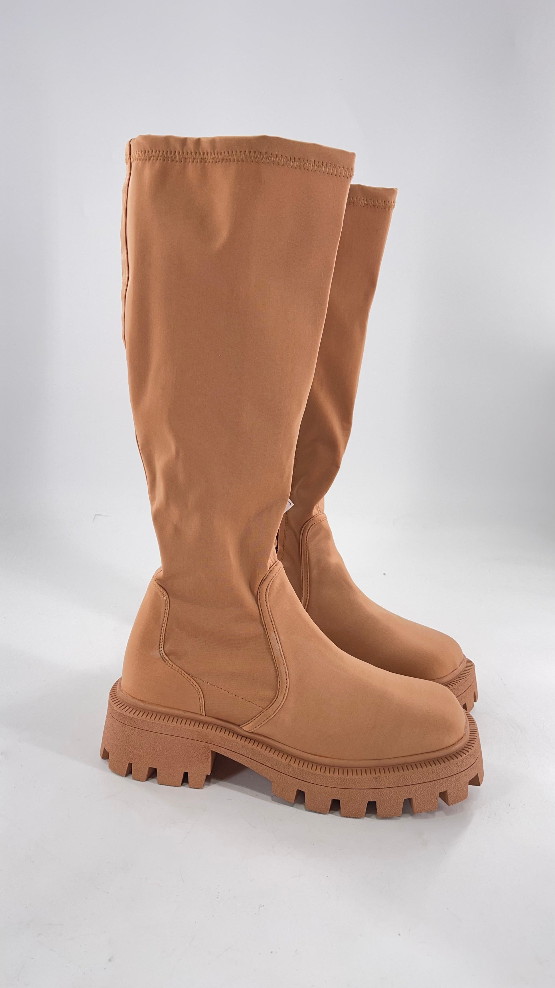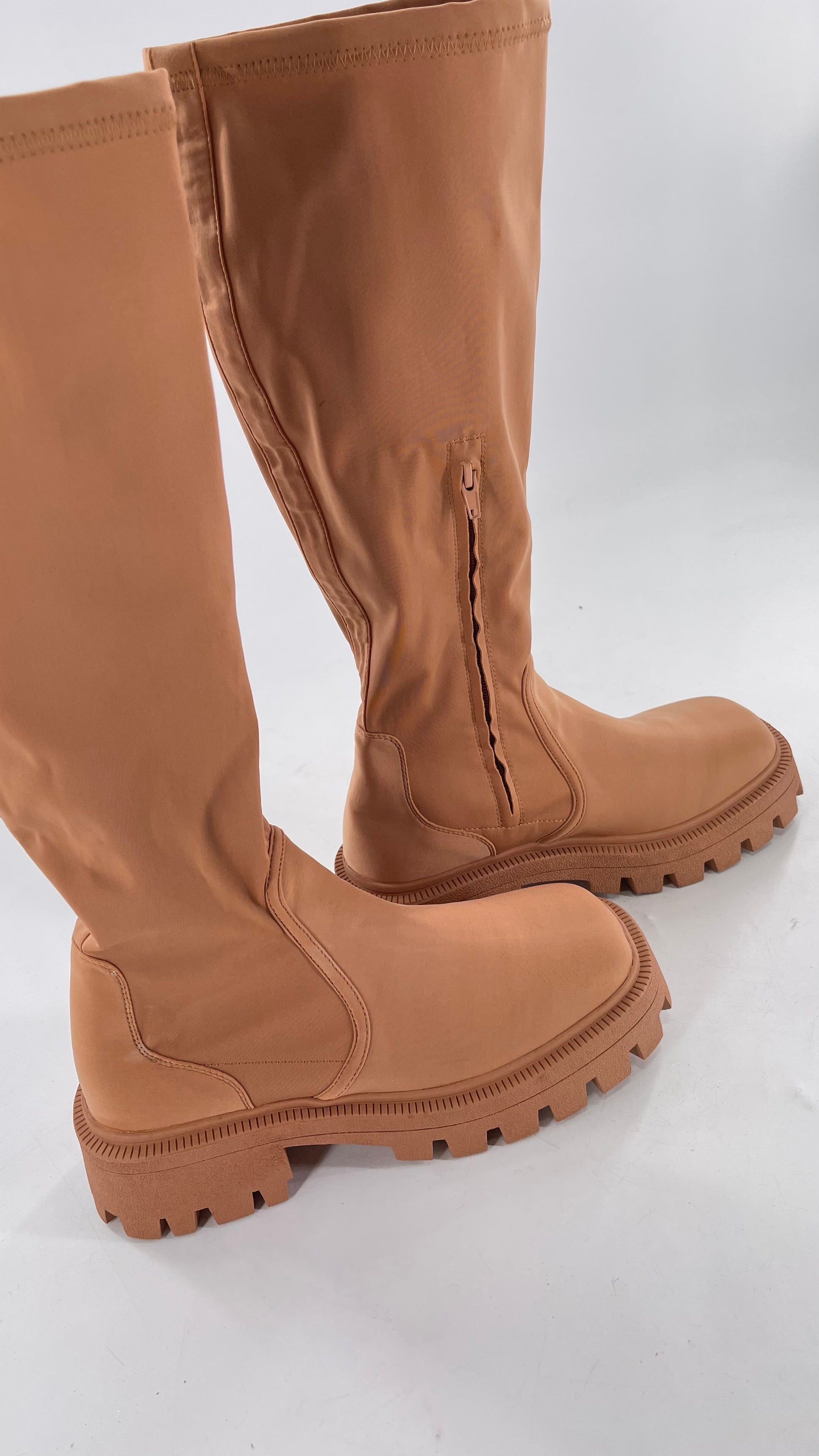 Urban Outfitters Tan Knee High Square Toe Sock Boot (8)