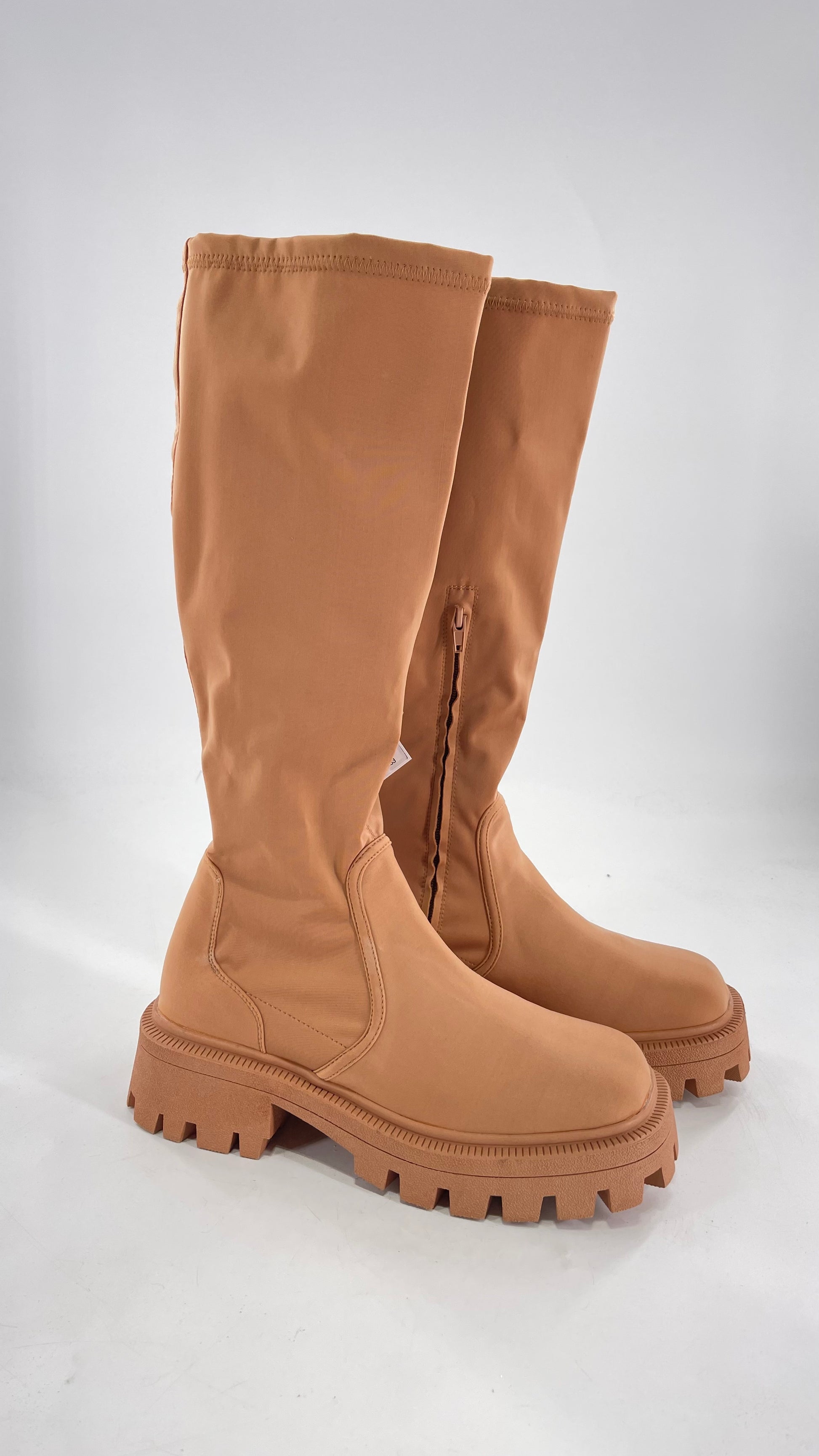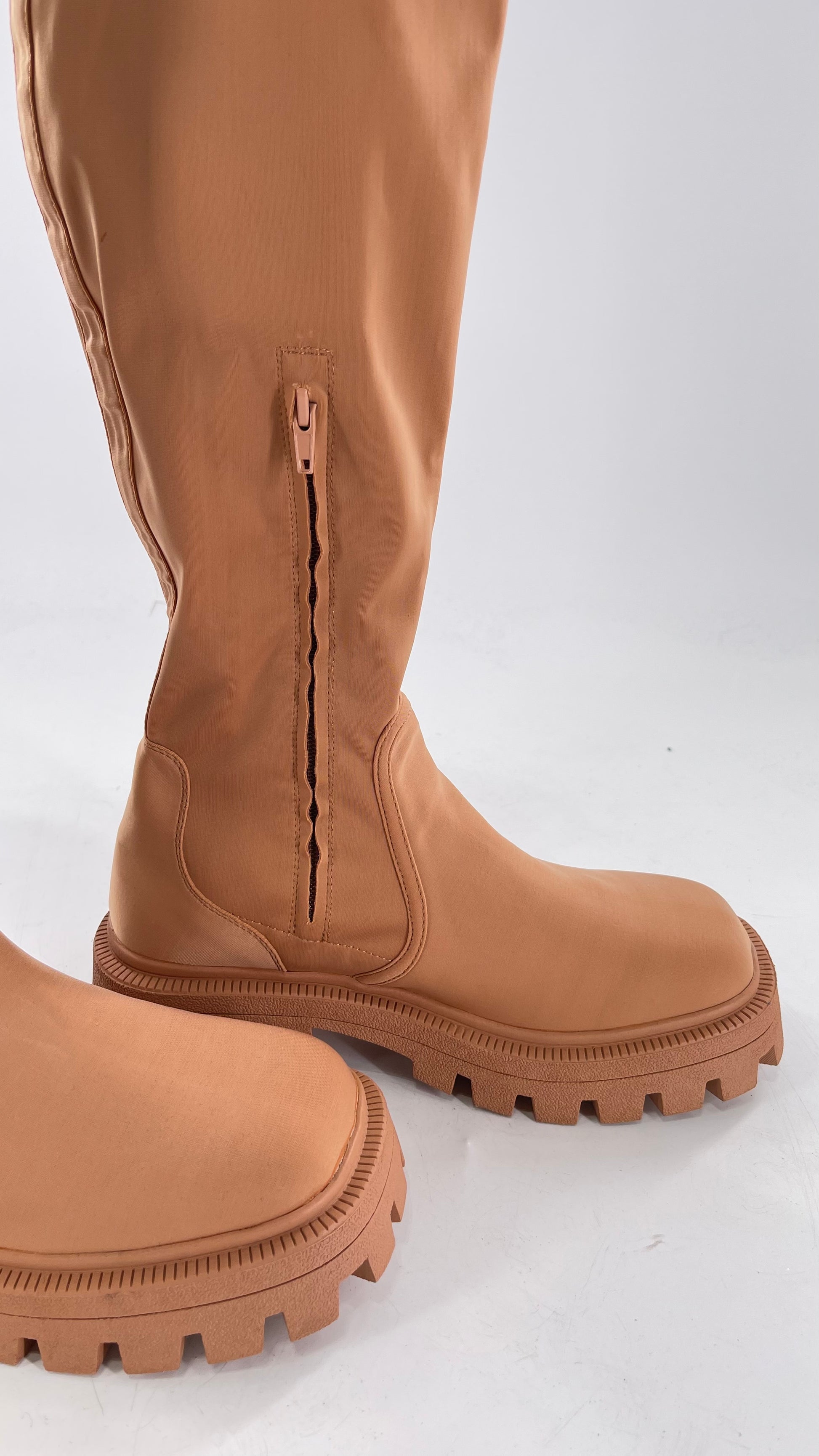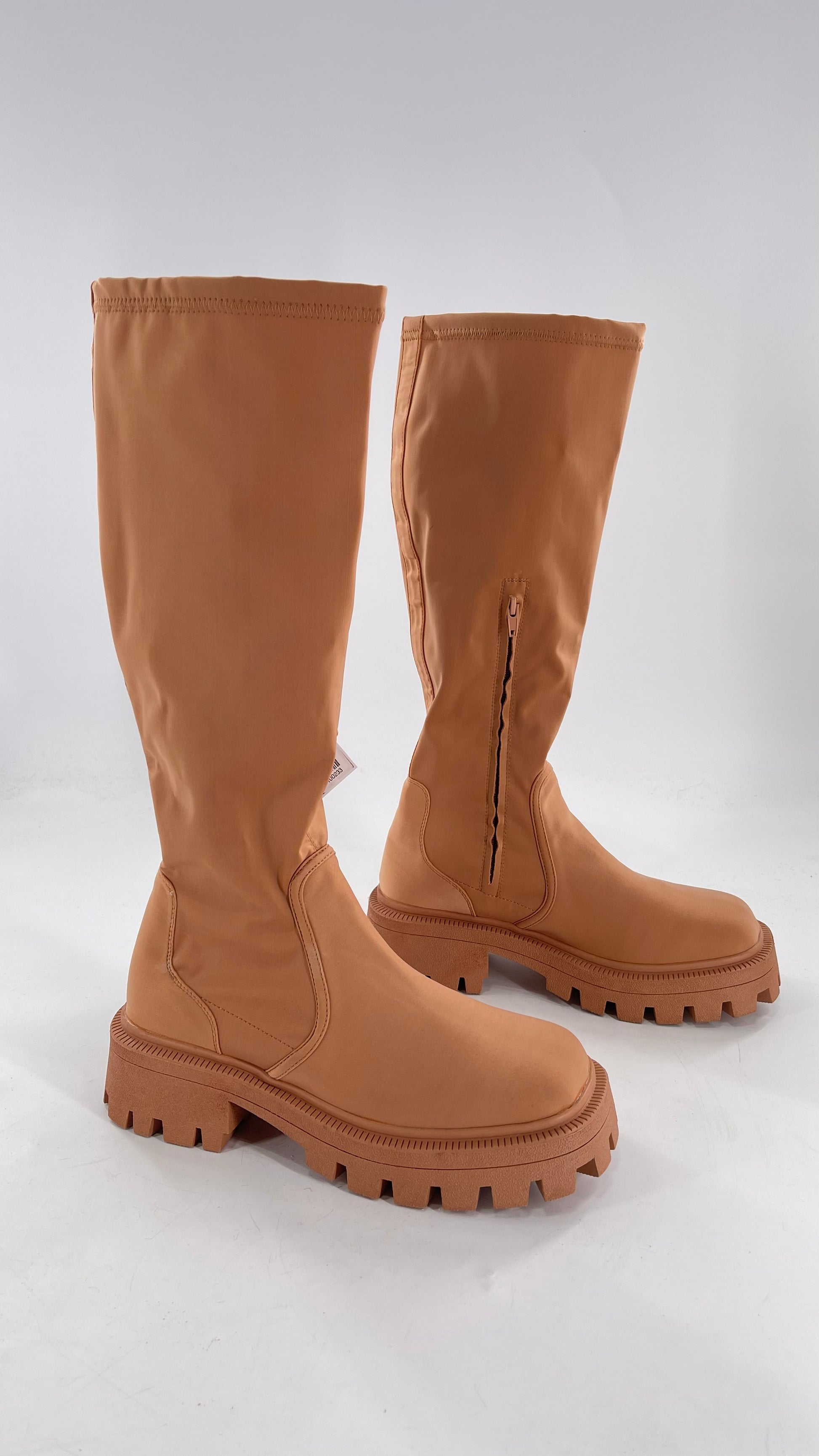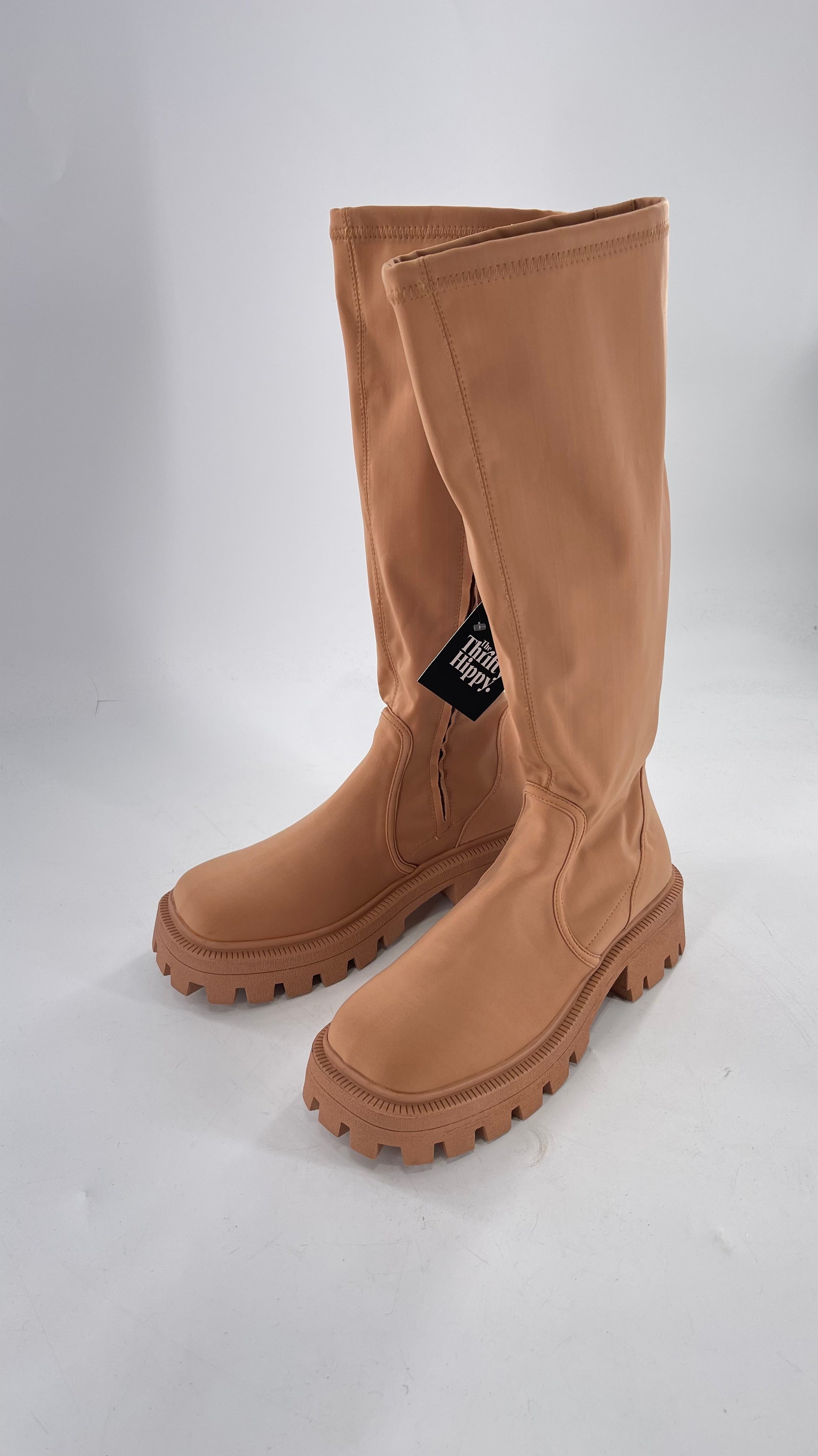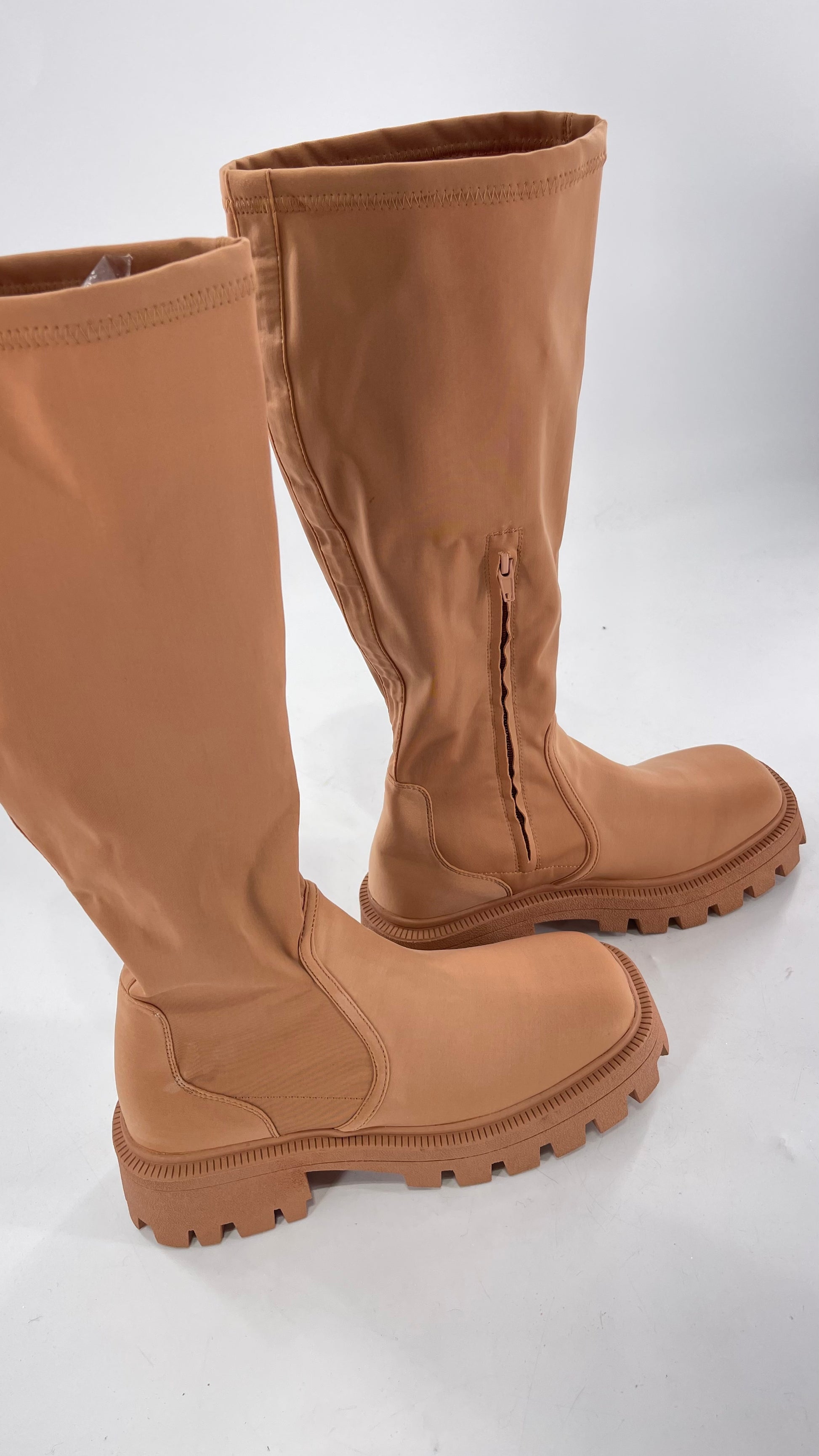 Urban Outfitters Tan Knee High Square Toe Sock Boot (8)