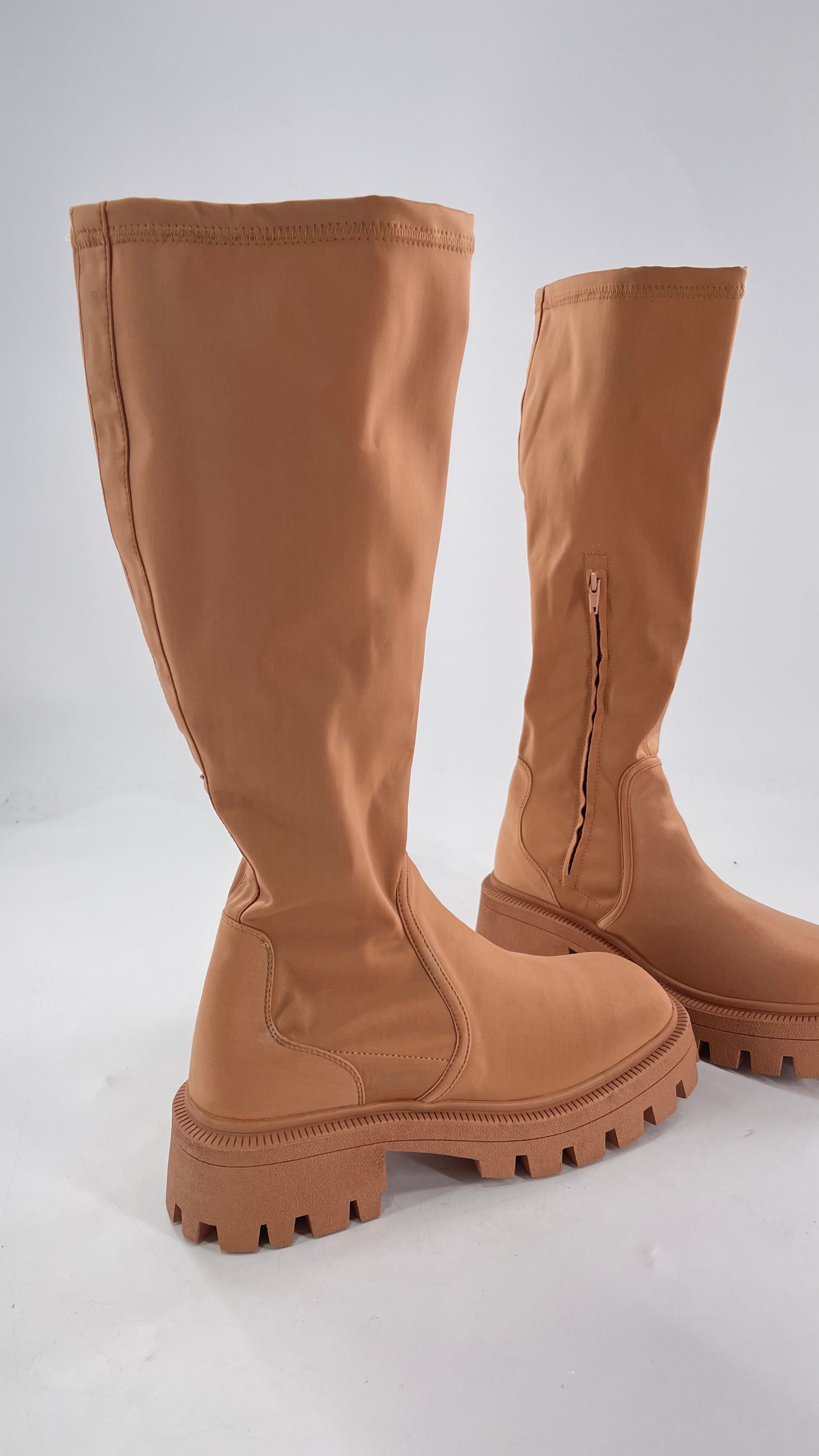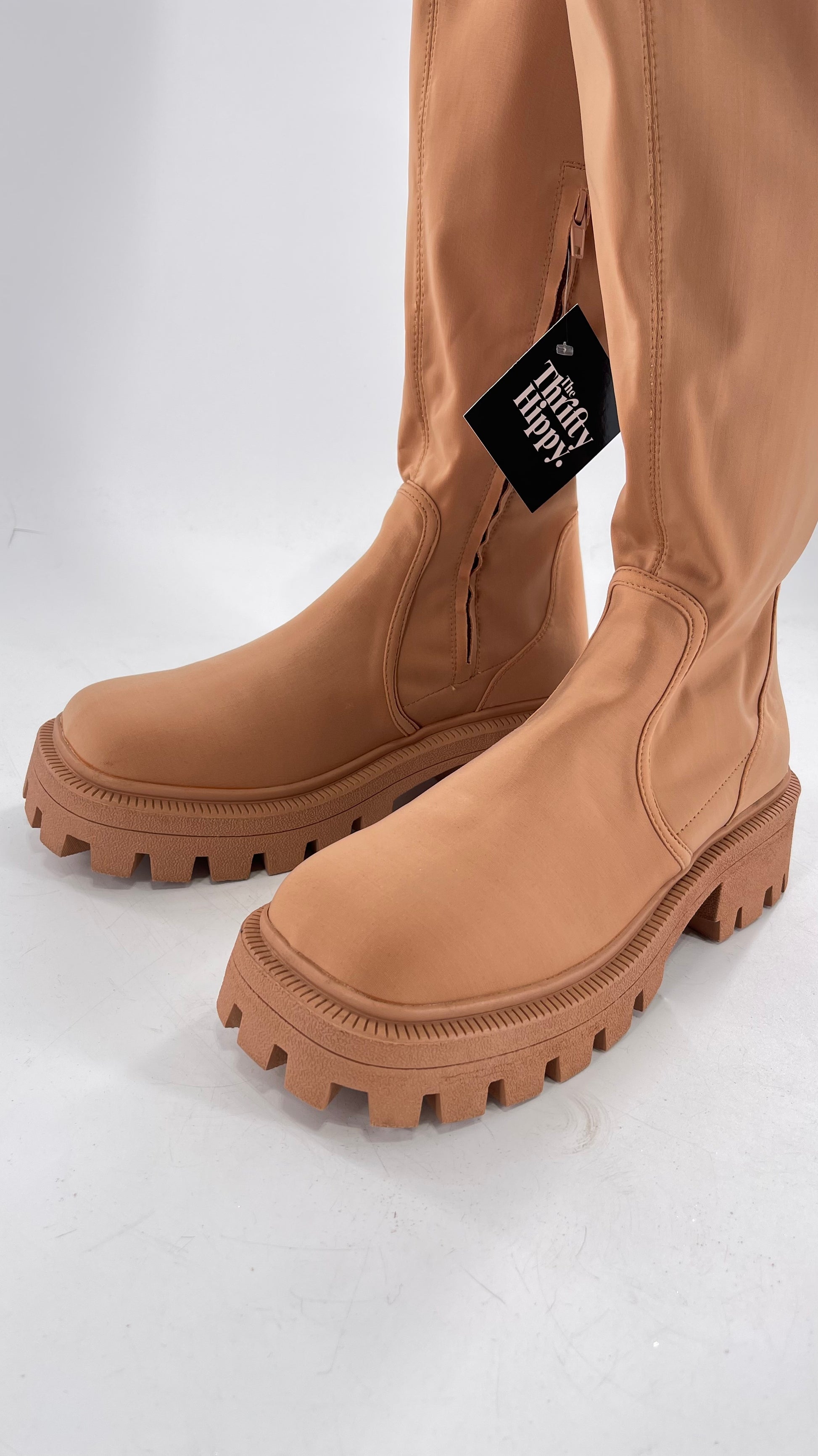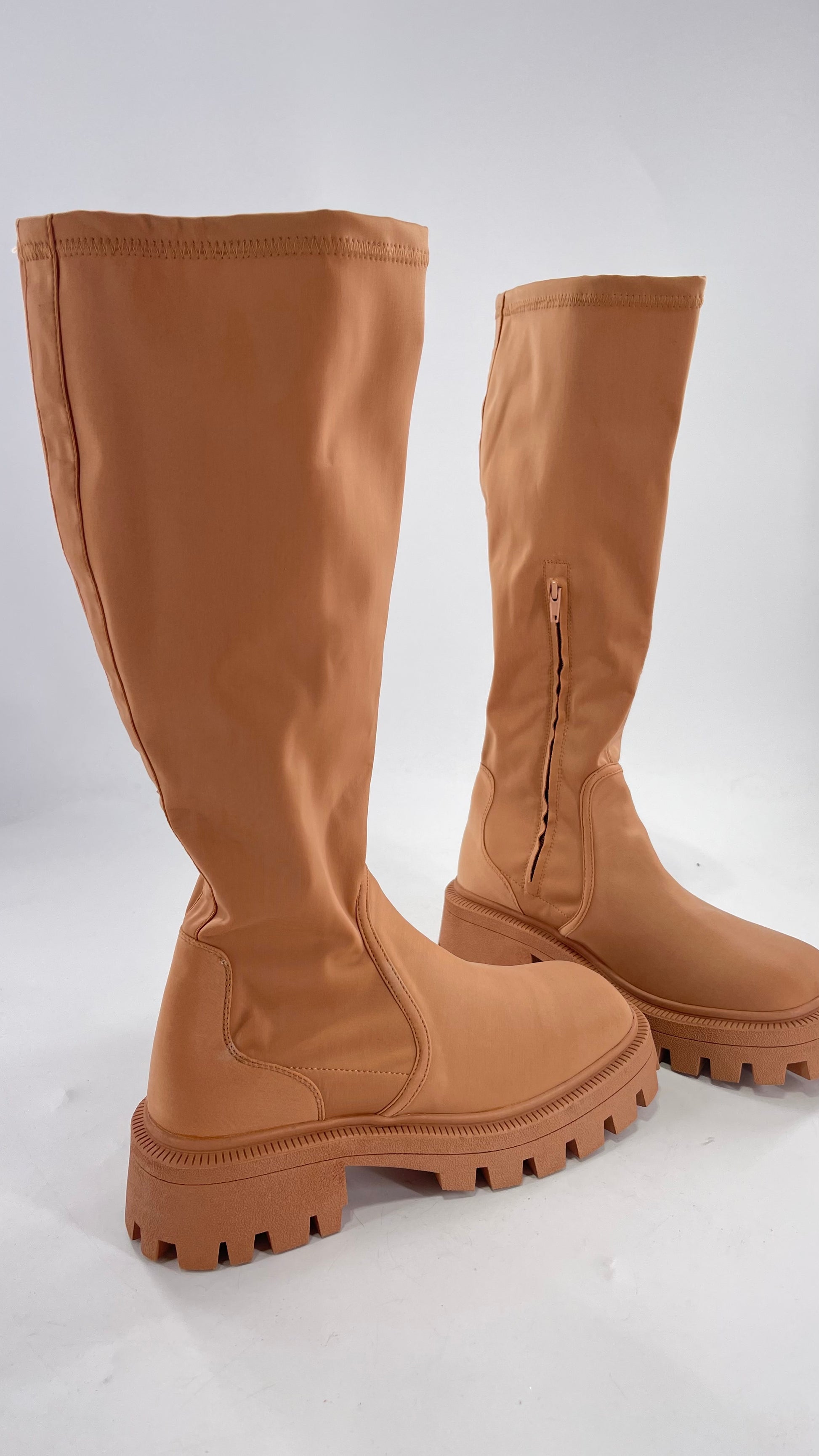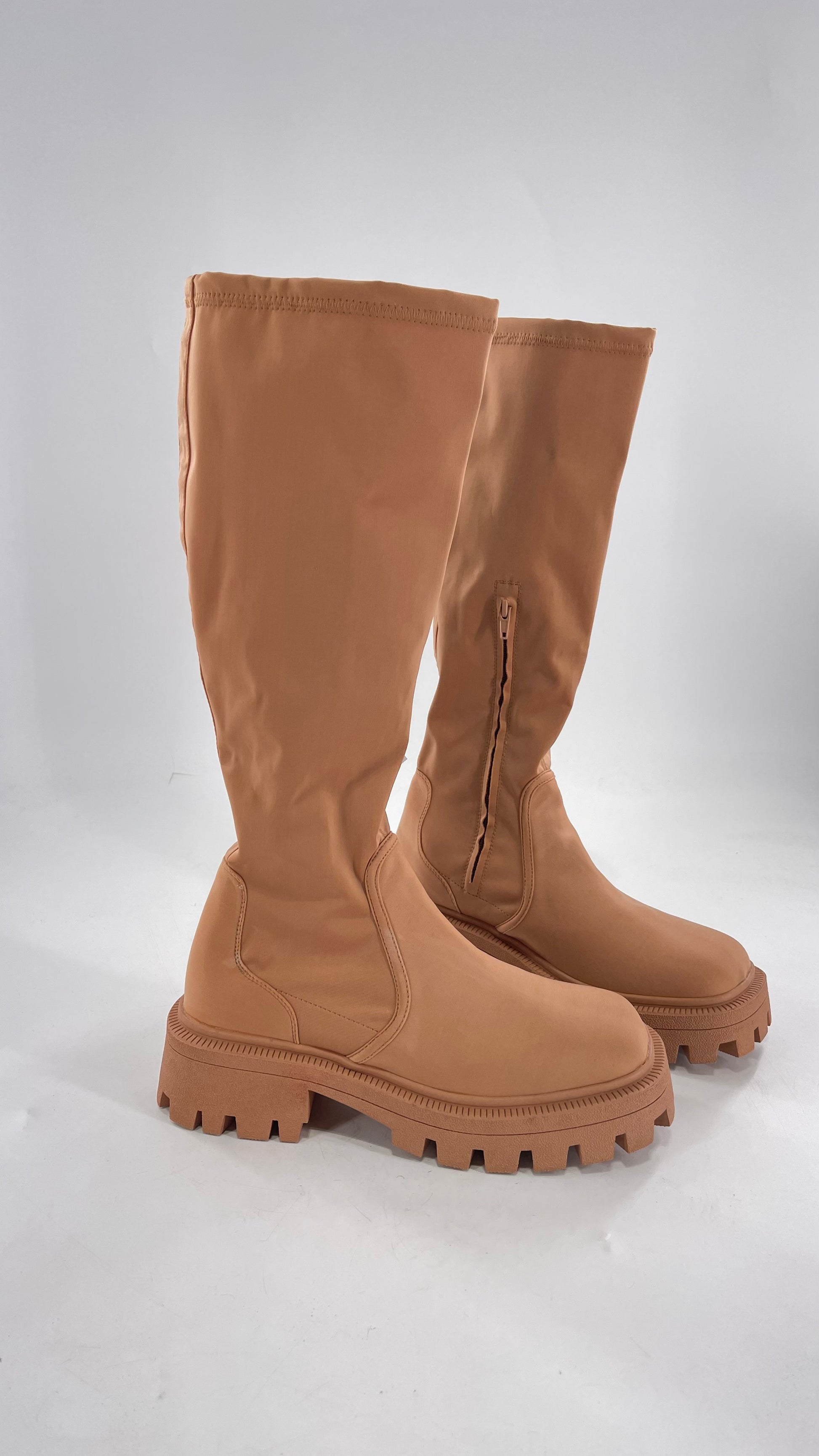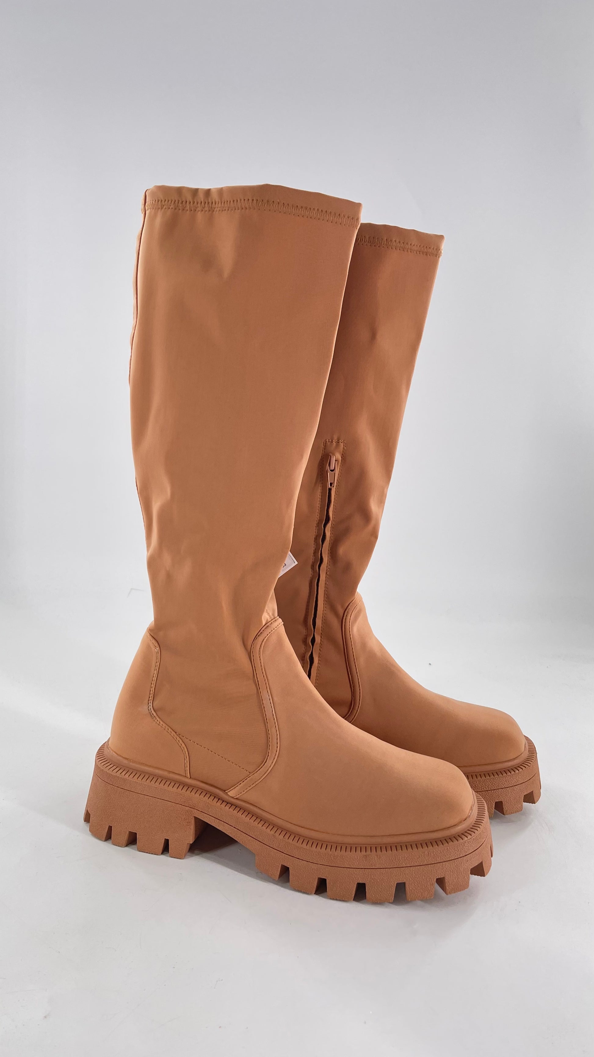 Urban Outfitters Tan Knee High Square Toe Sock Boot (8)