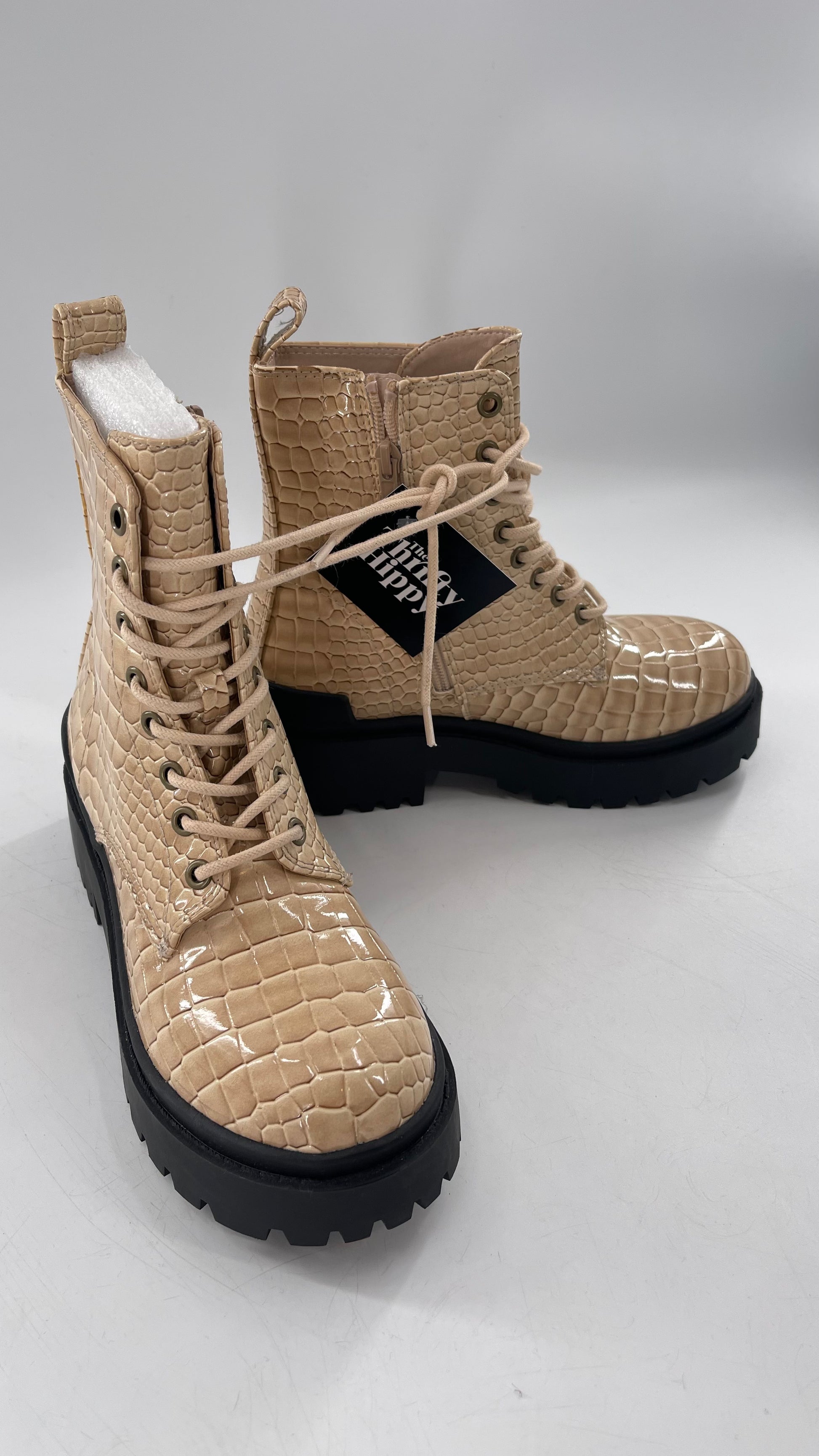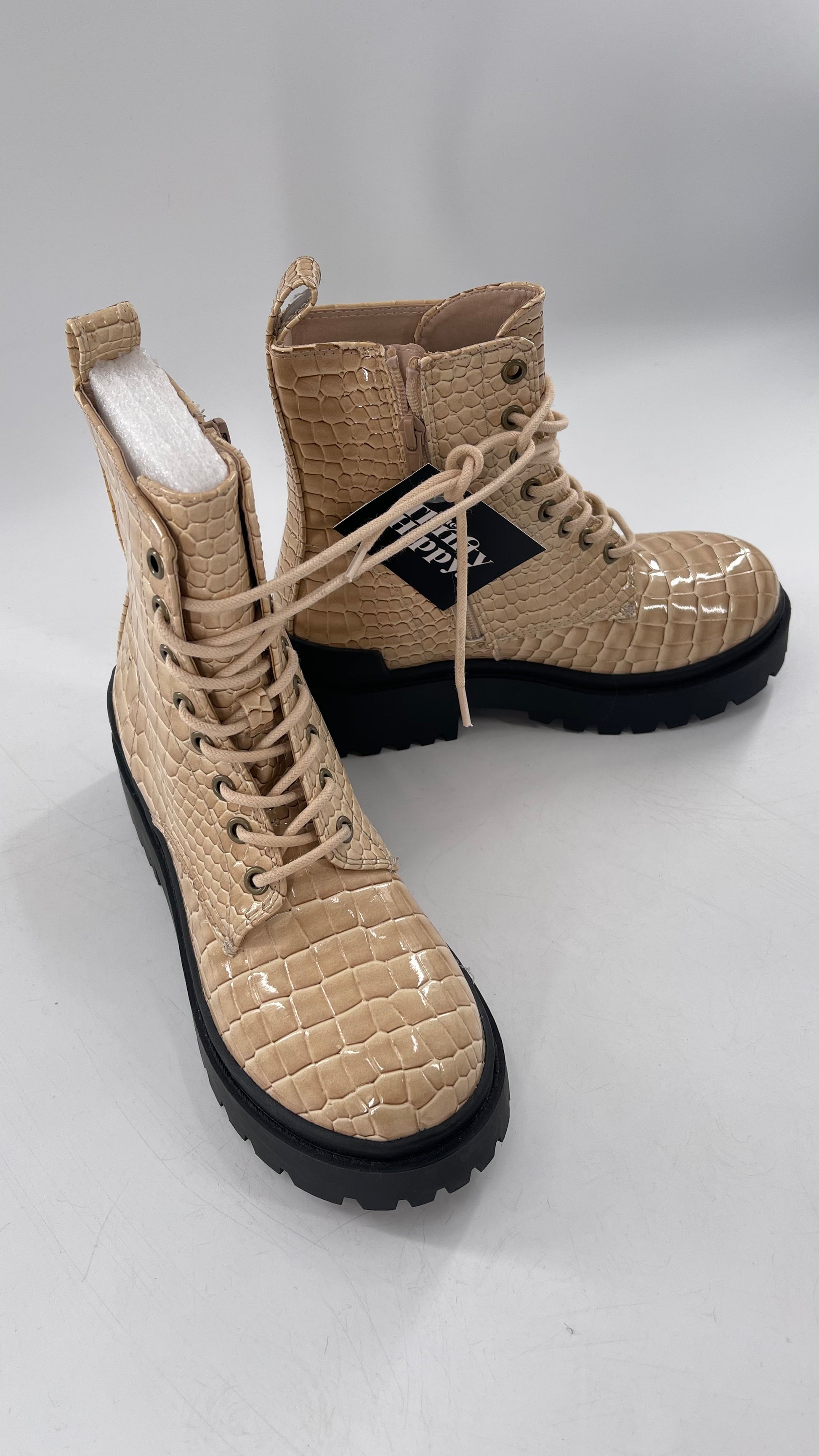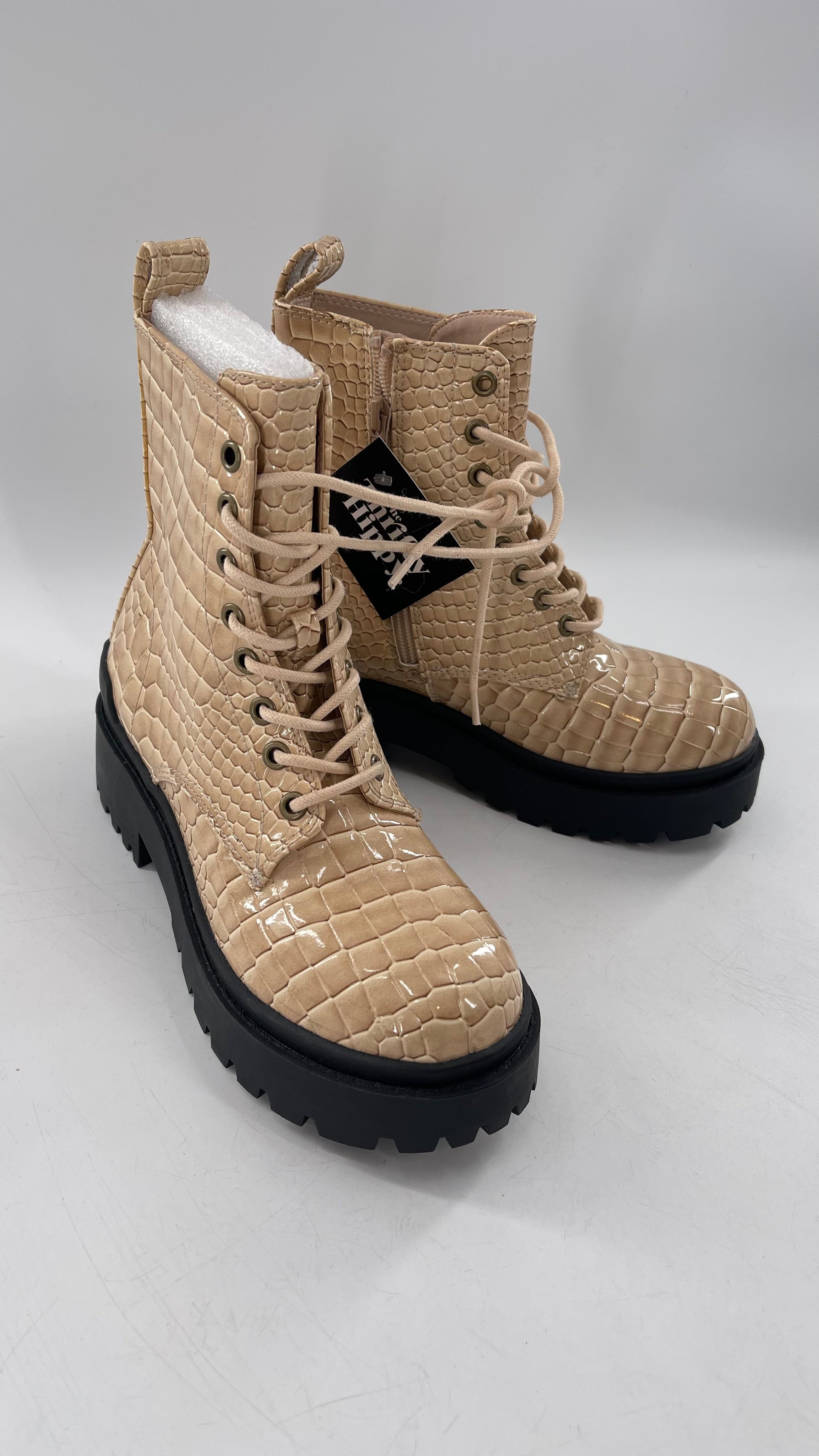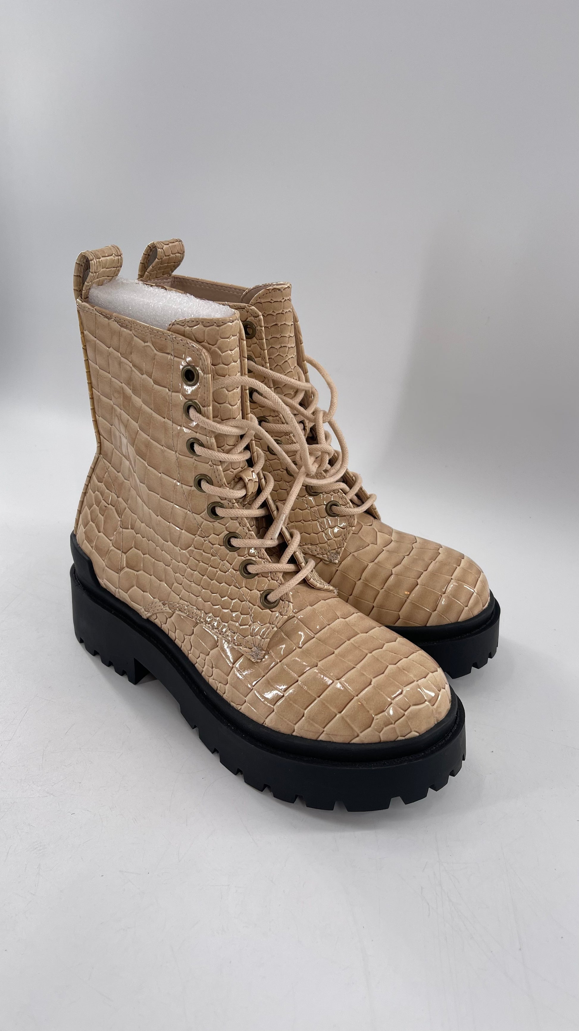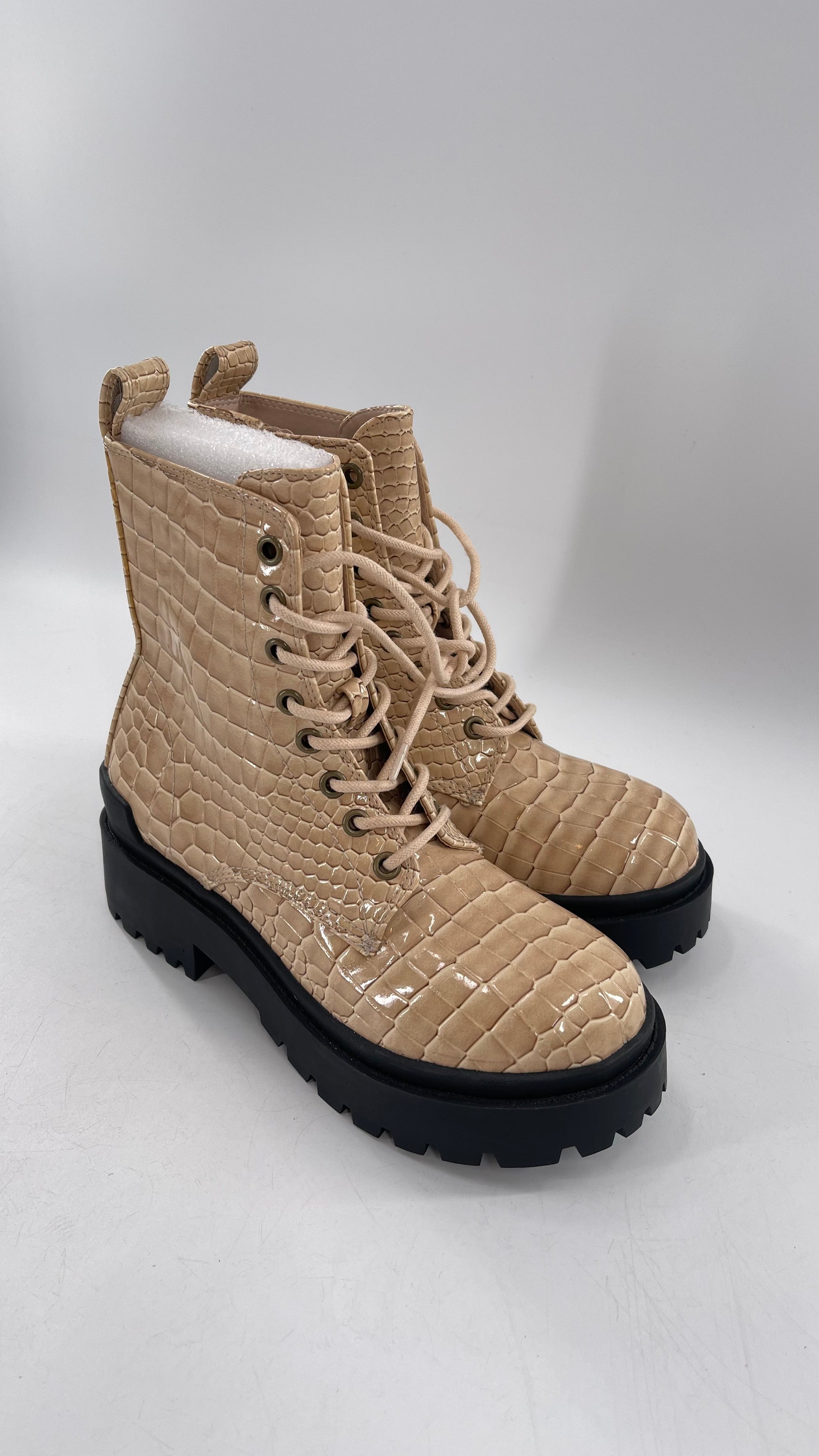 Urban Outfitters Beige Crocodile Embossed Combat Boots(7)