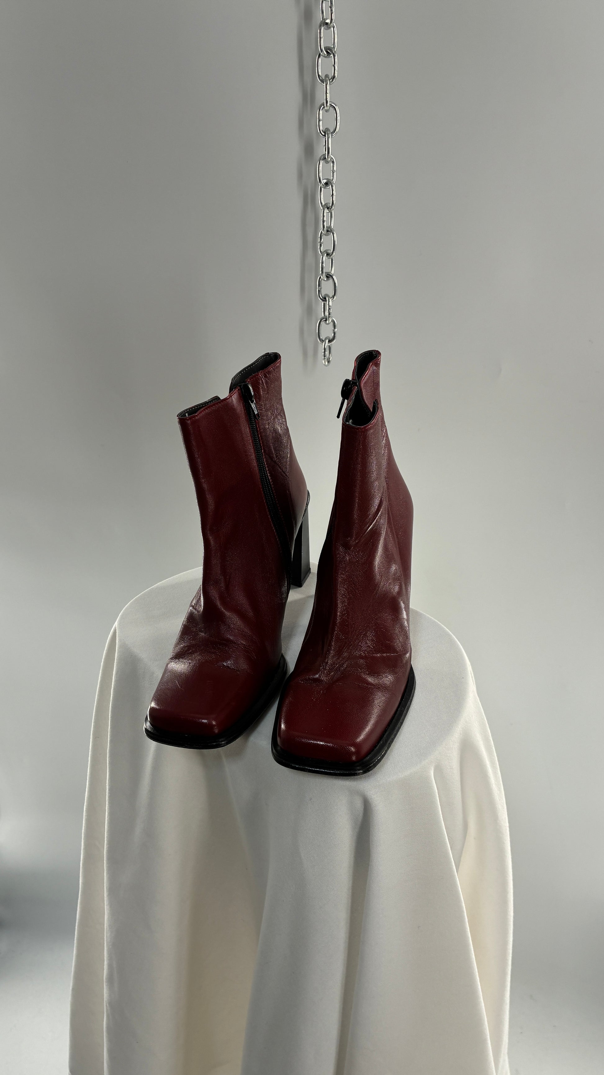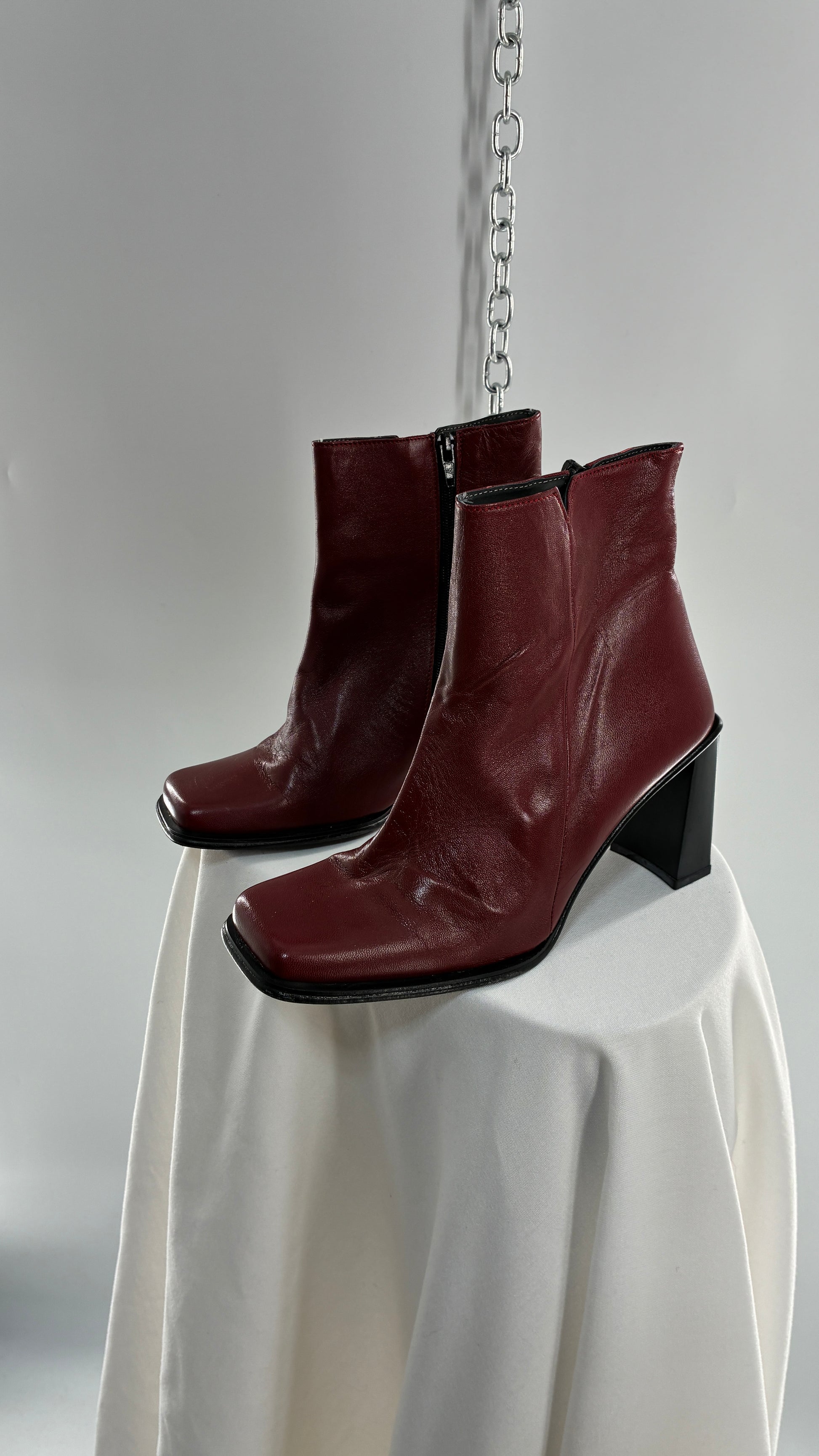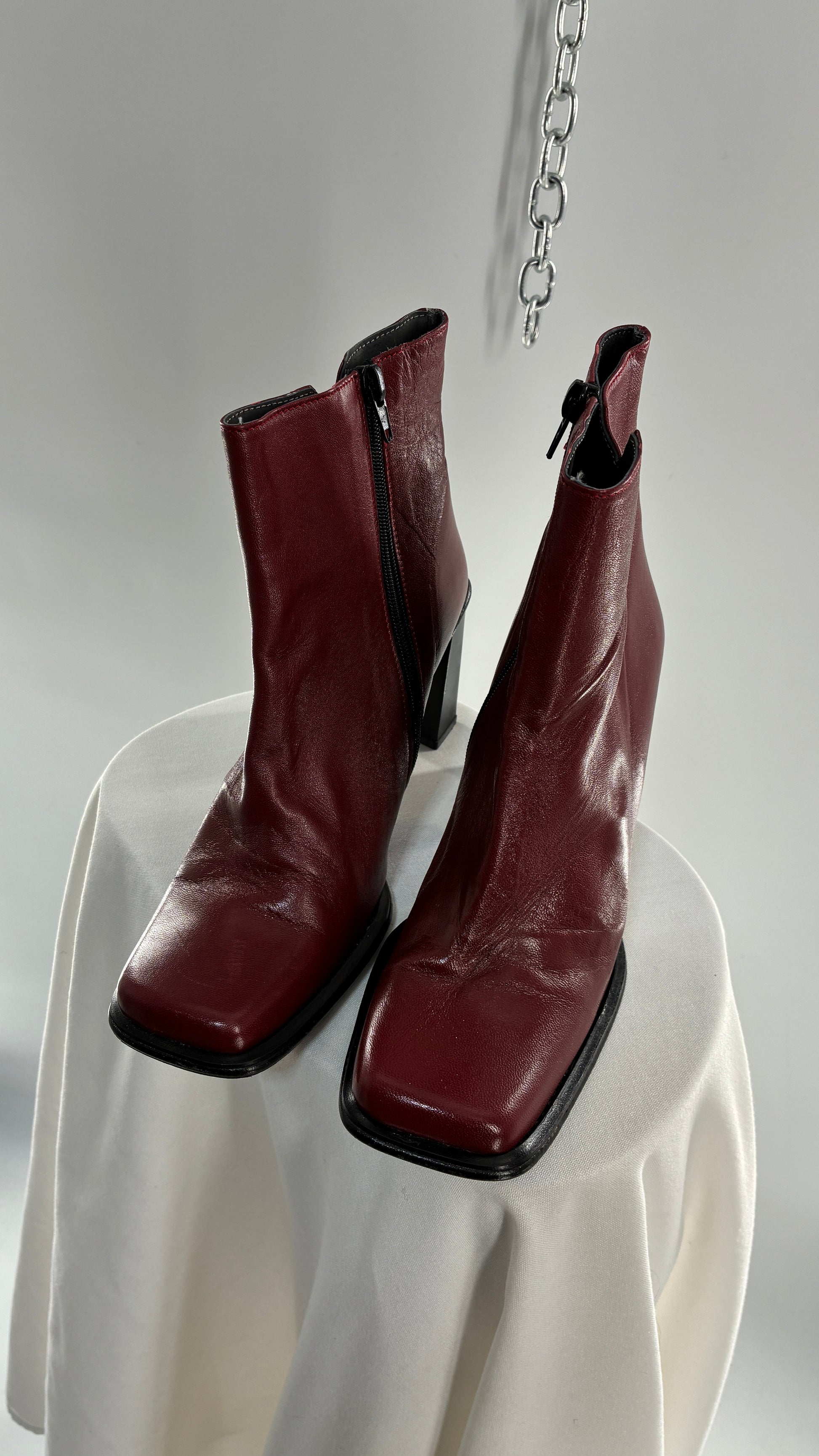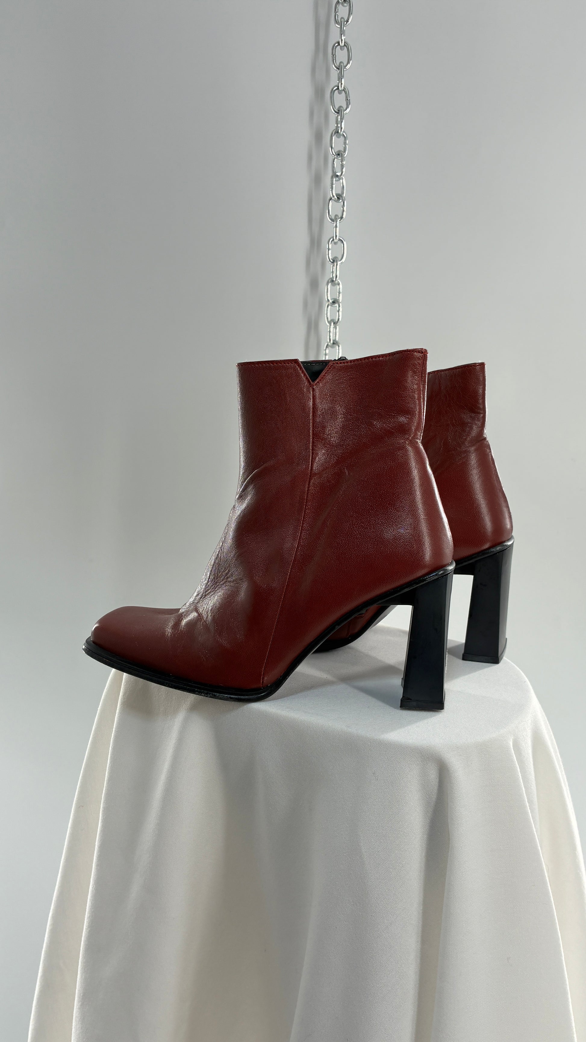 Vintage APARATUS BOOTS Red Genuine Leather Square Toe, Square Heel Boots