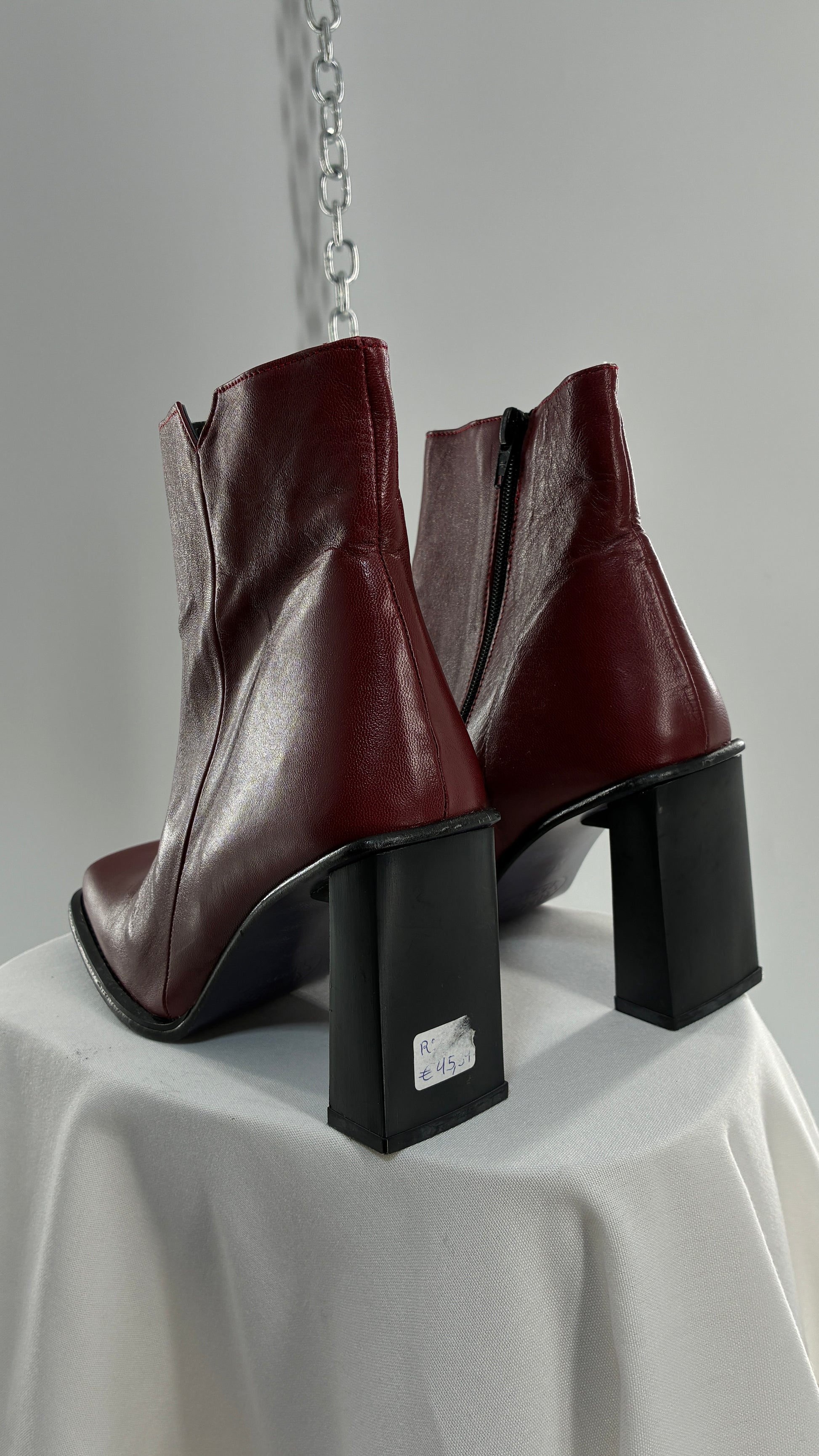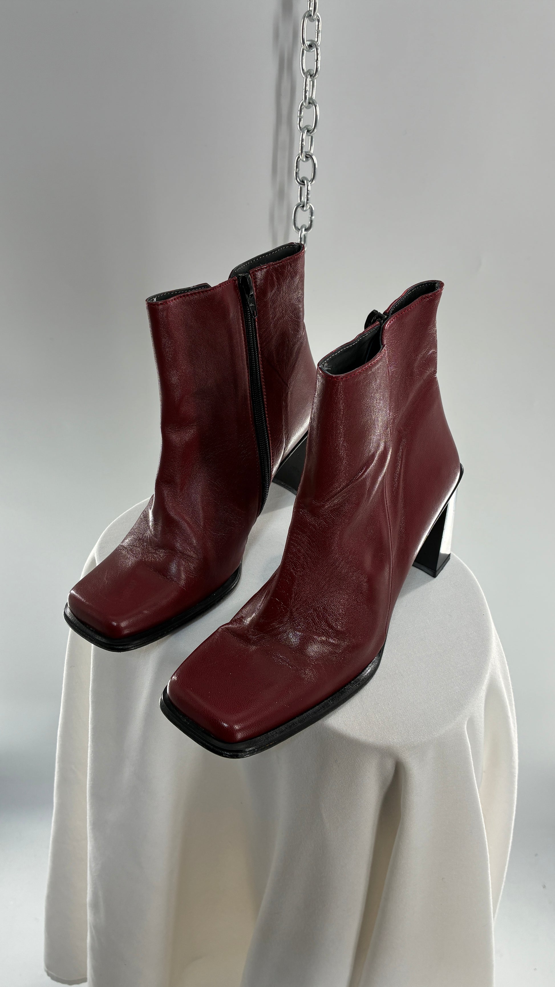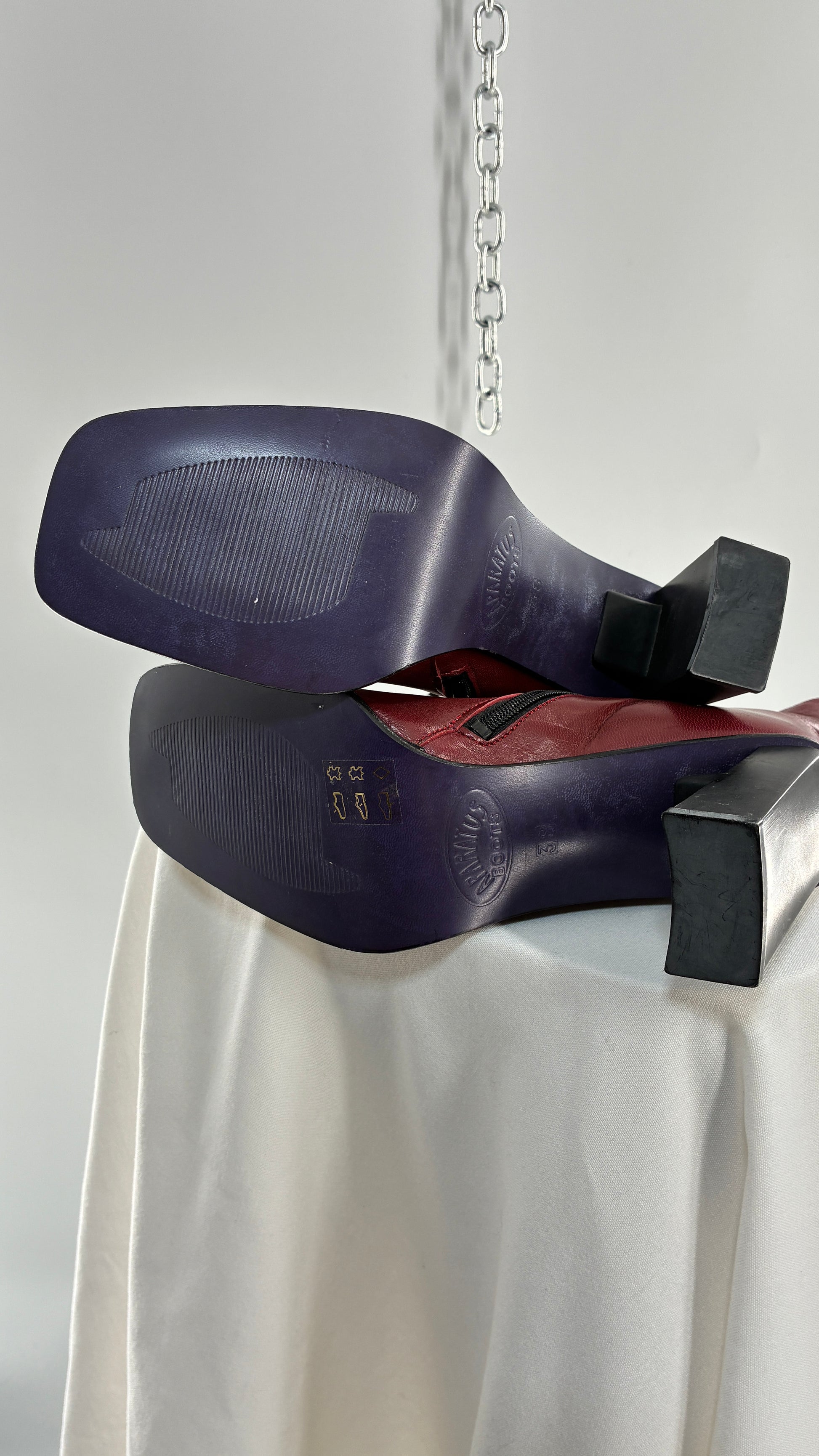 Vintage APARATUS BOOTS Red Genuine Leather Square Toe, Square Heel Boots with Purple Sole (38)