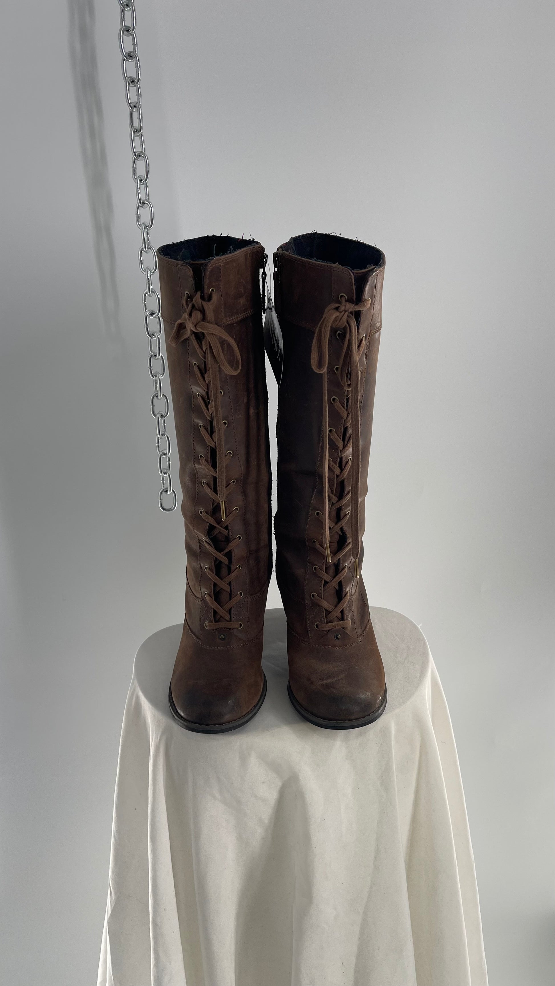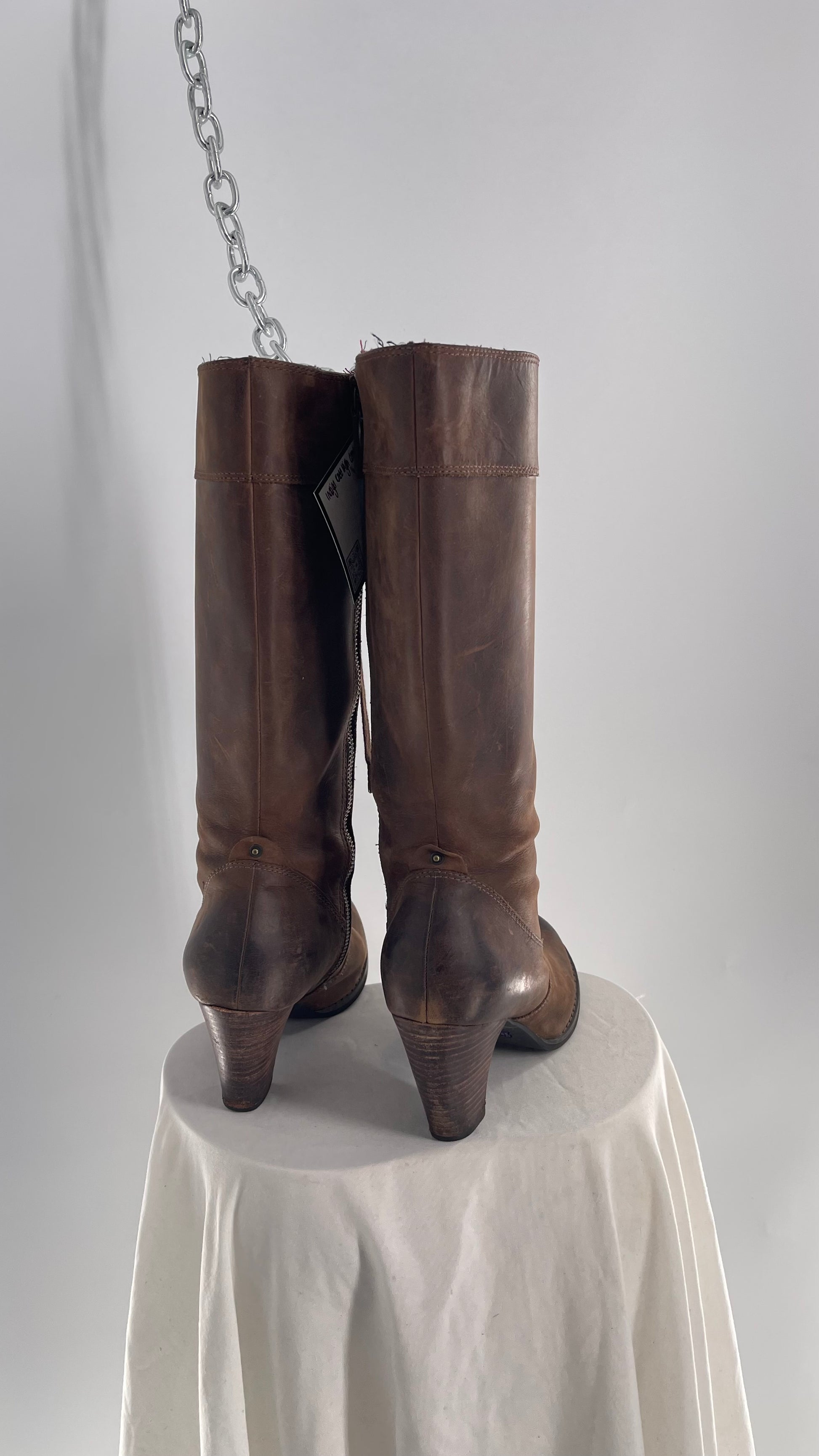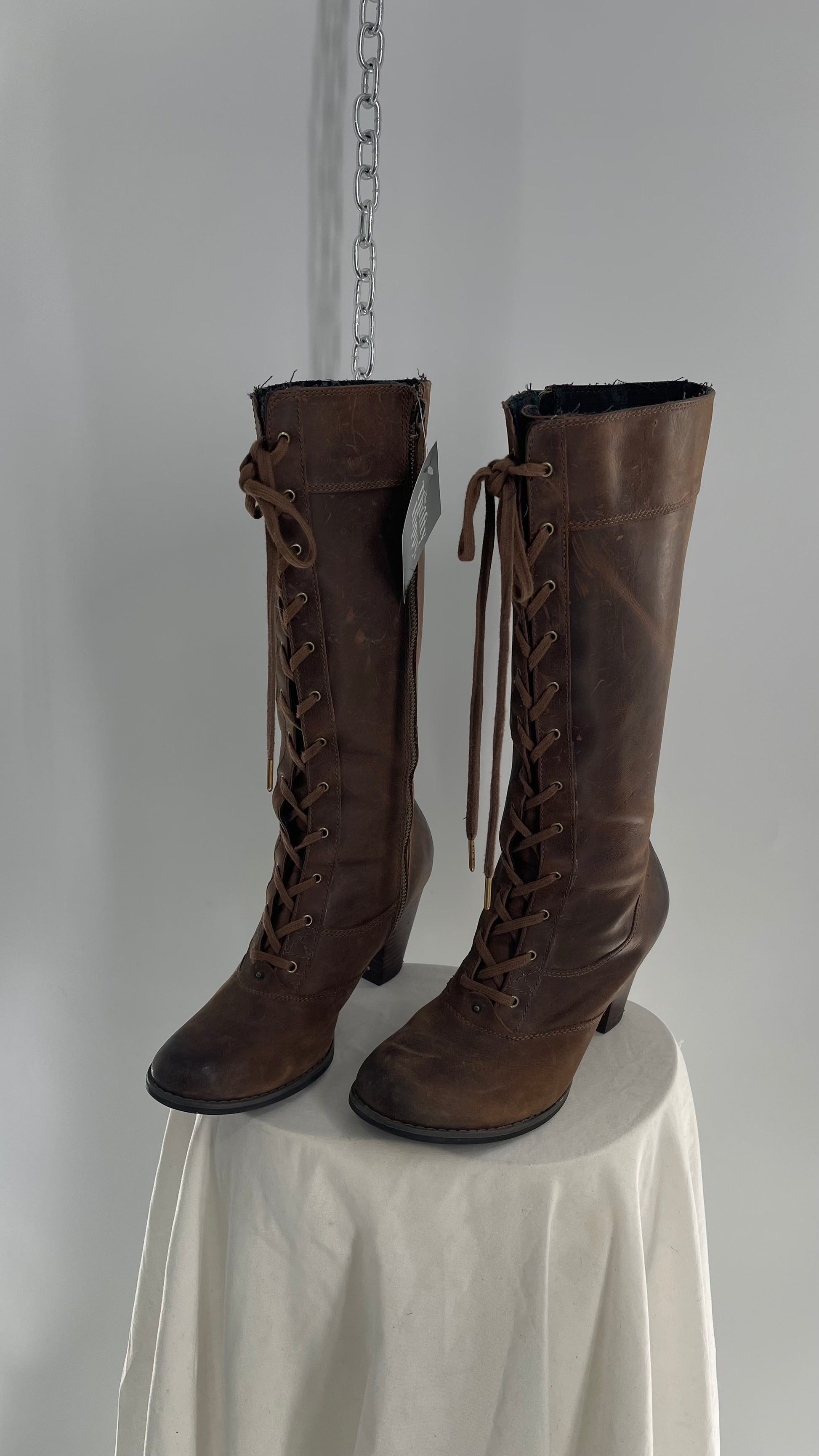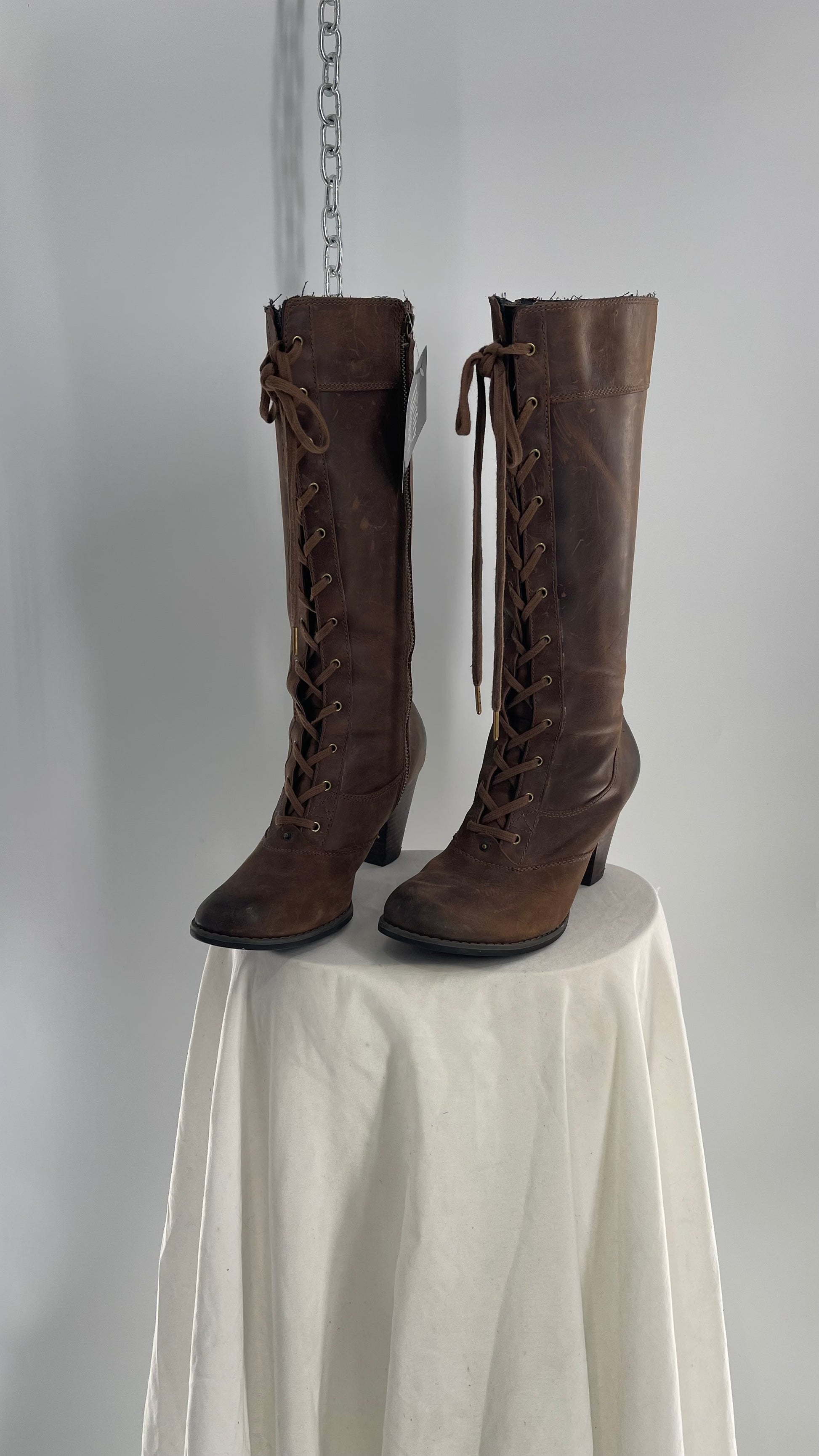 Vintage Indigo Genuine Leather Brown Knee High Combat Boots(6.5)