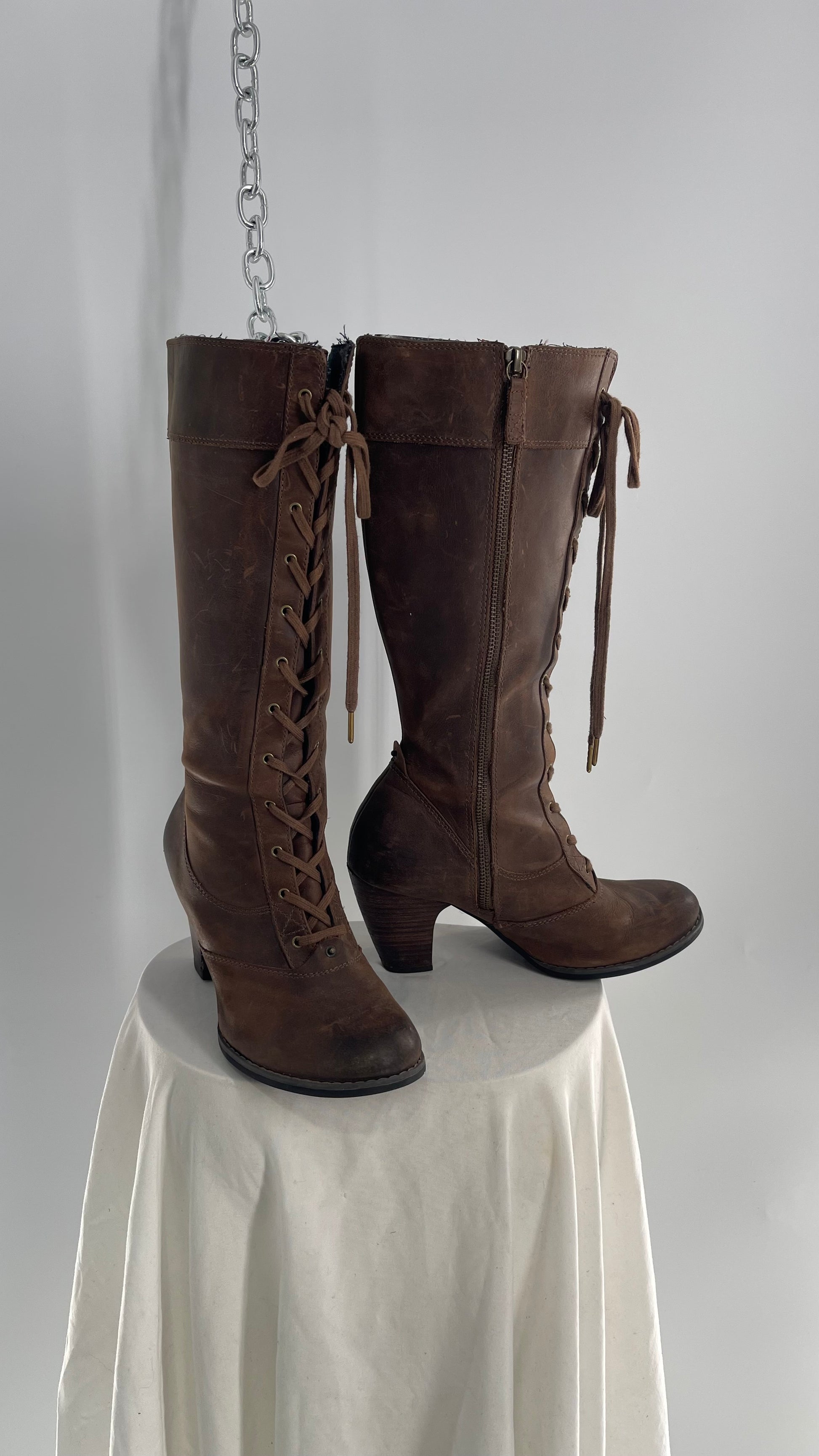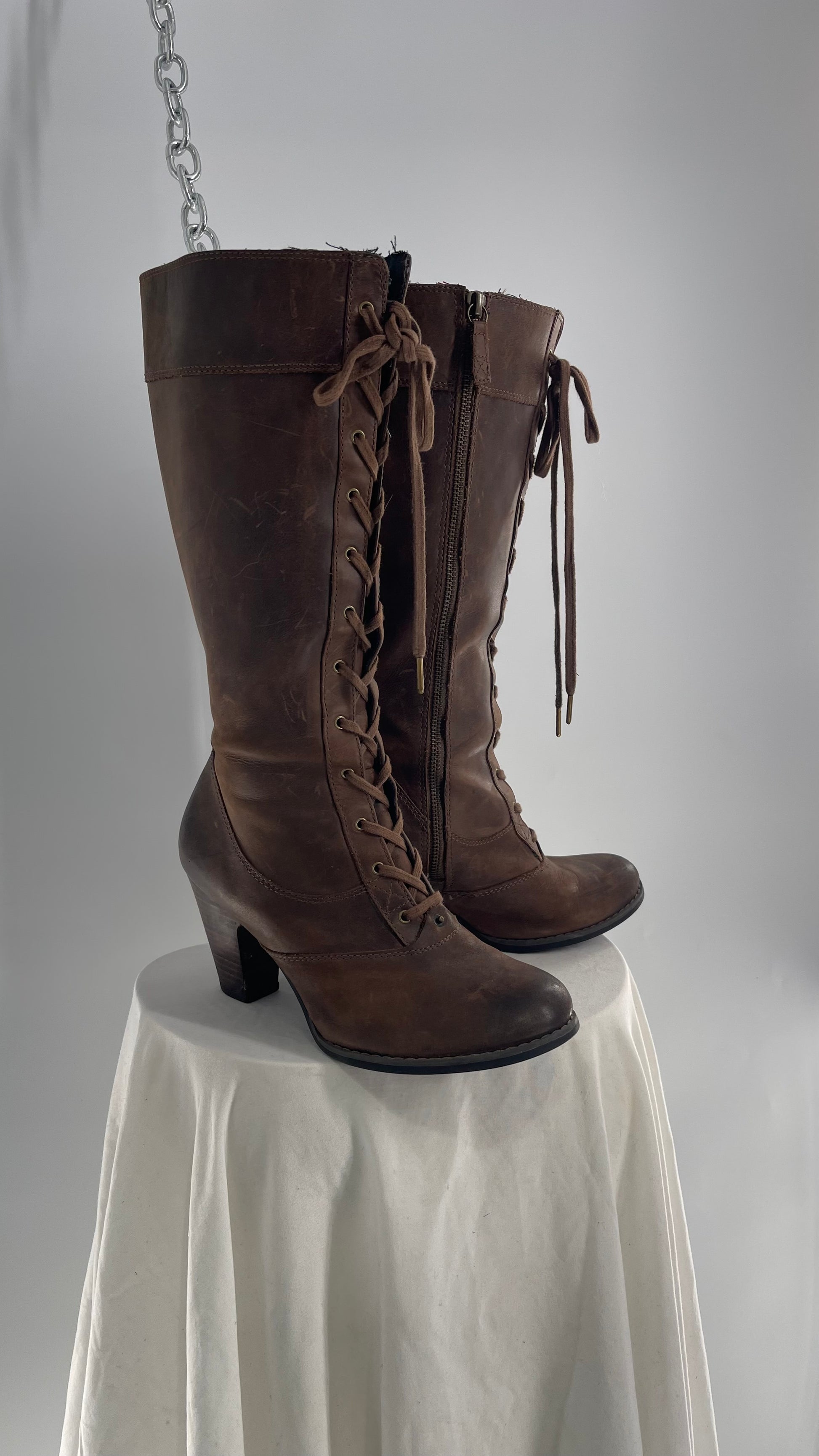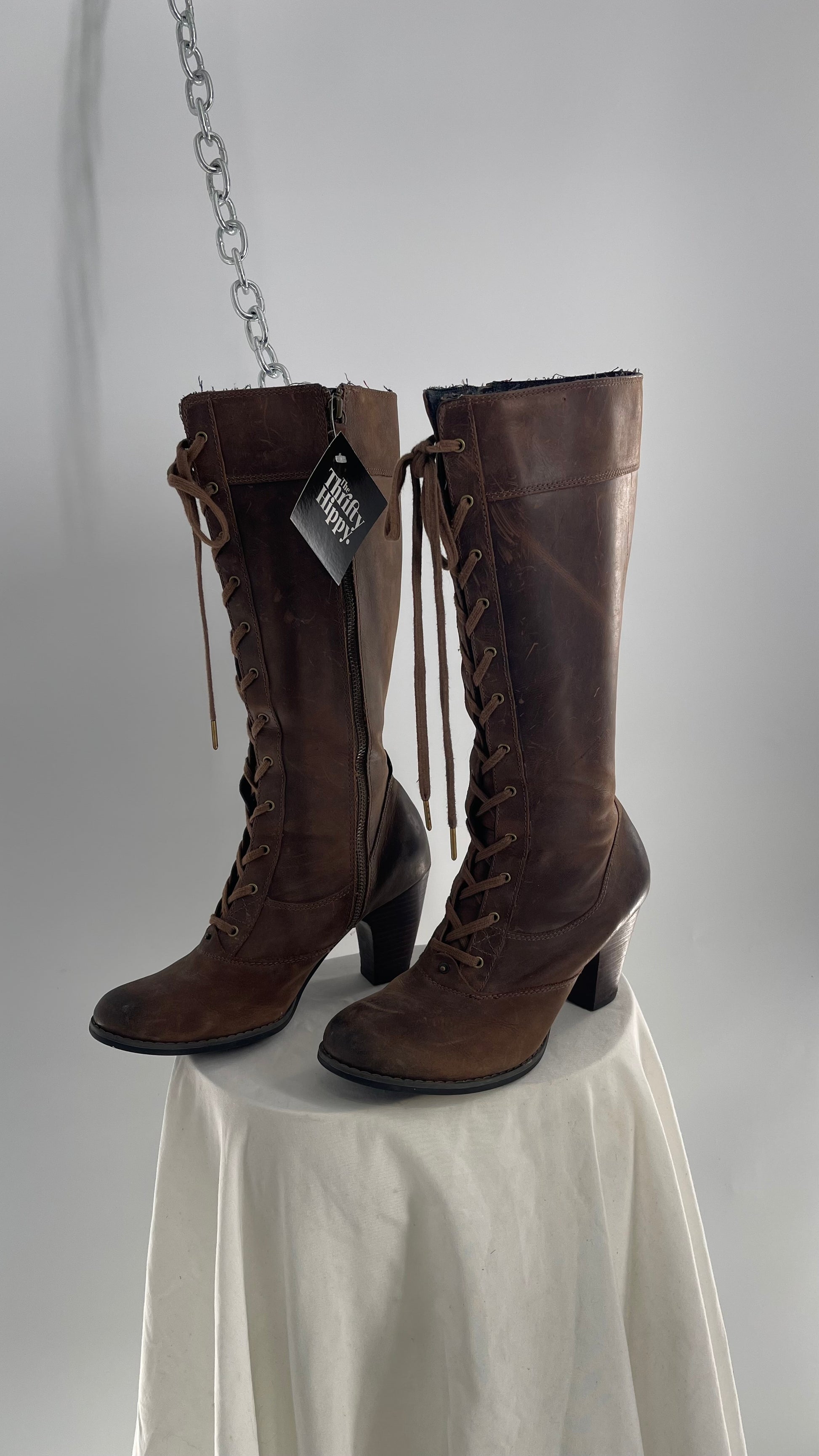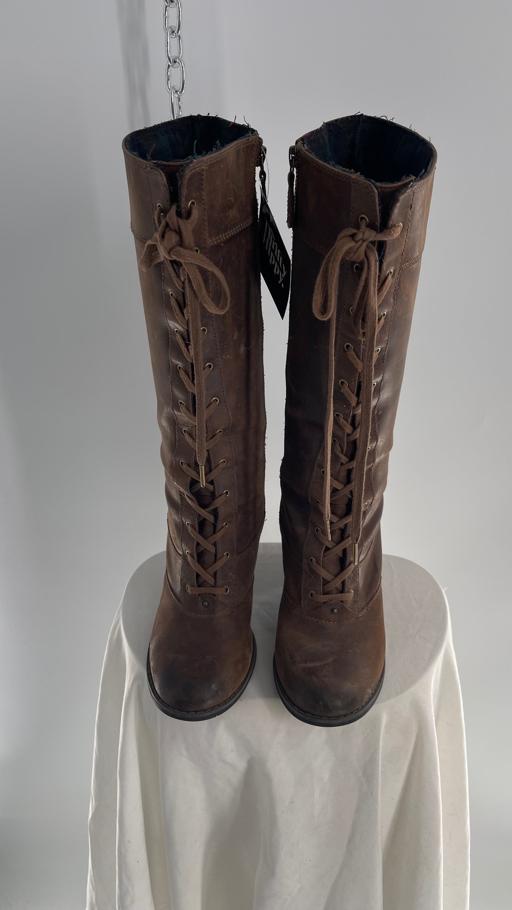 Vintage Indigo Genuine Leather Brown Knee High Combat Boots(6.5)