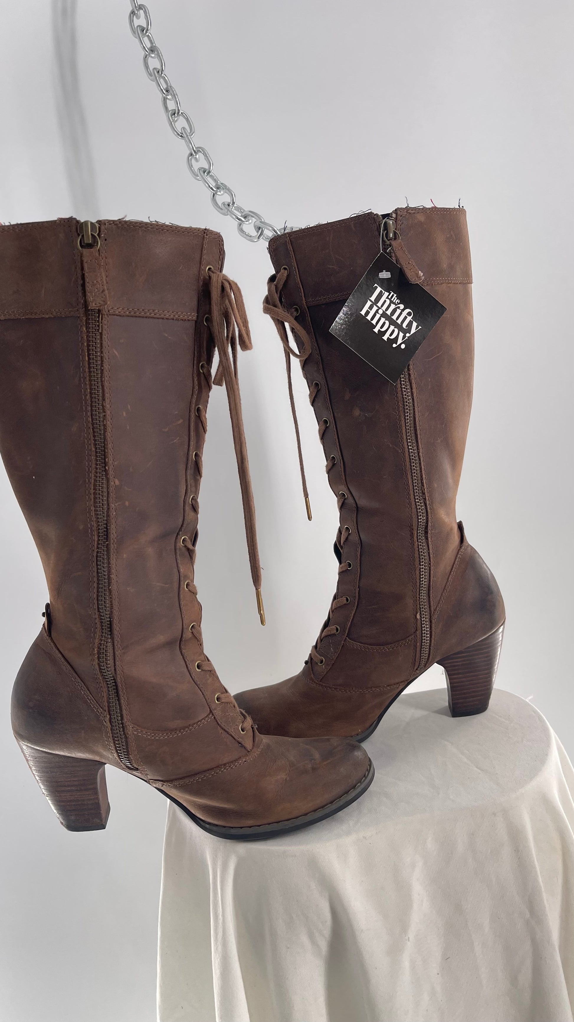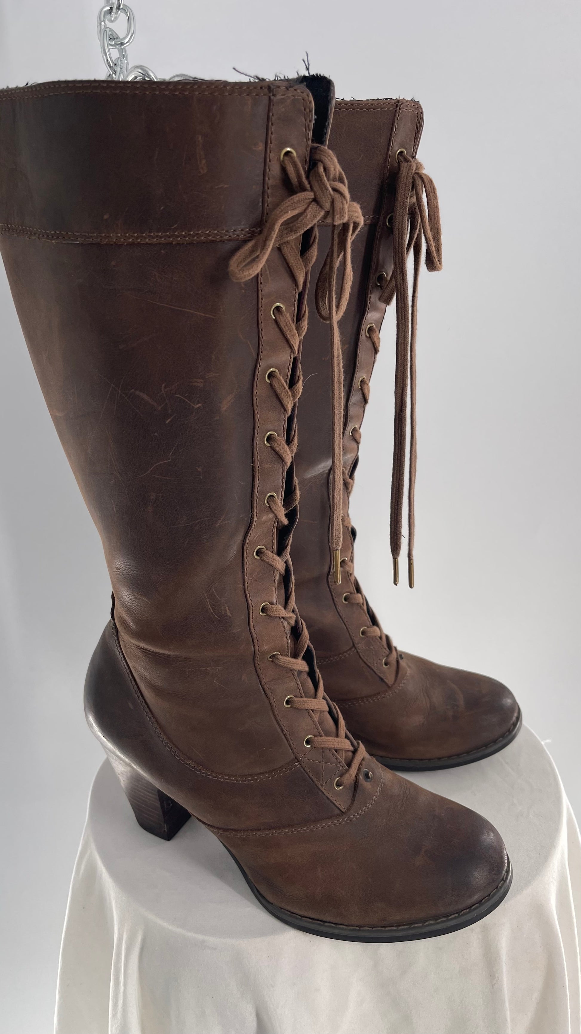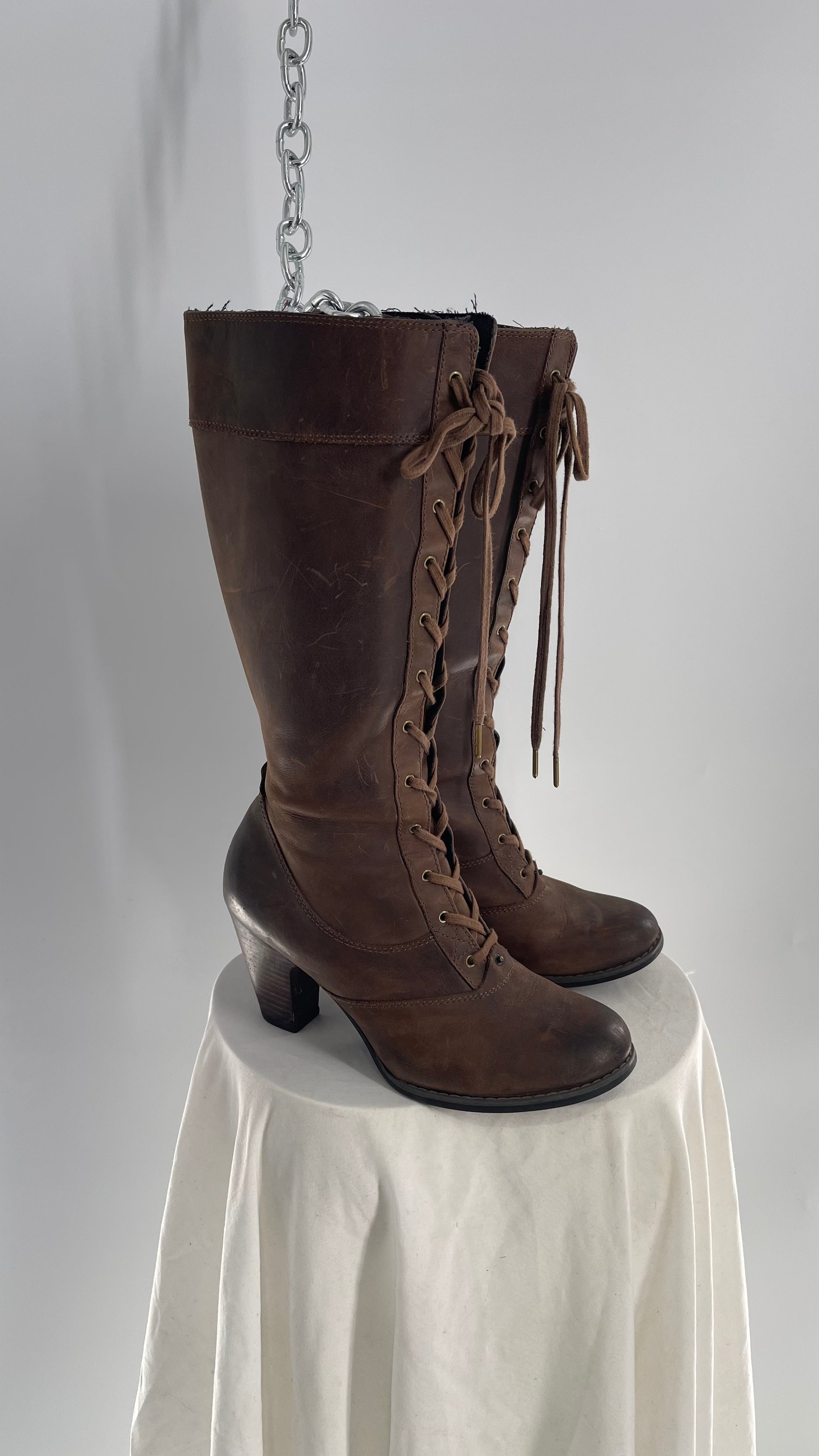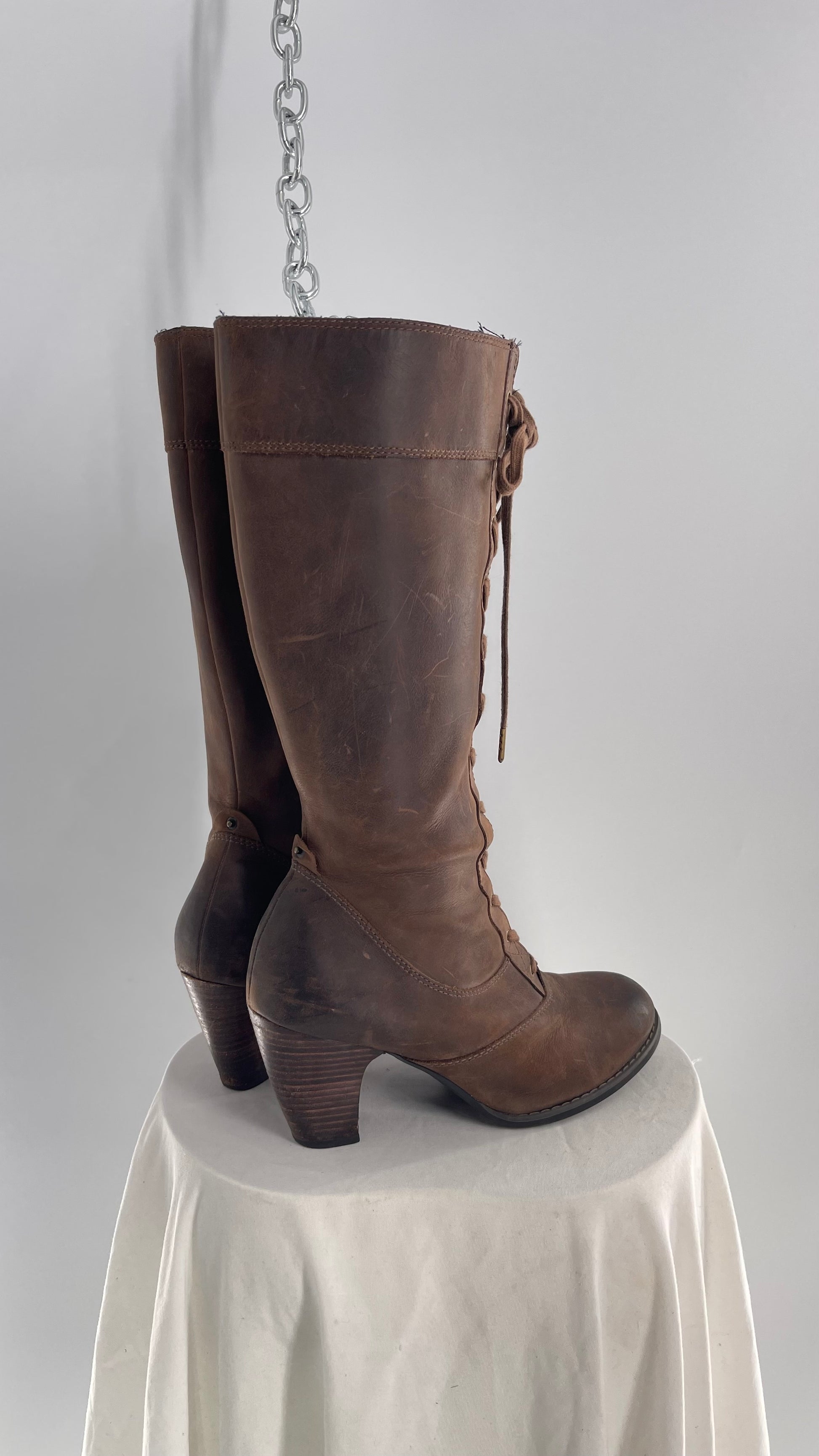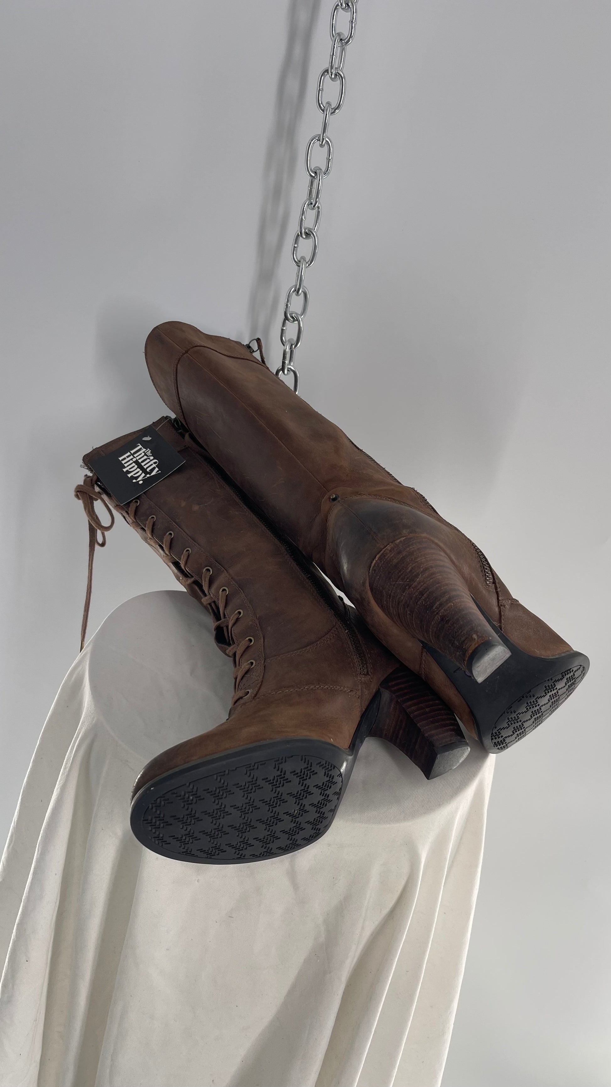 Vintage Indigo Genuine Leather Brown Knee High Combat Boots(6.5)