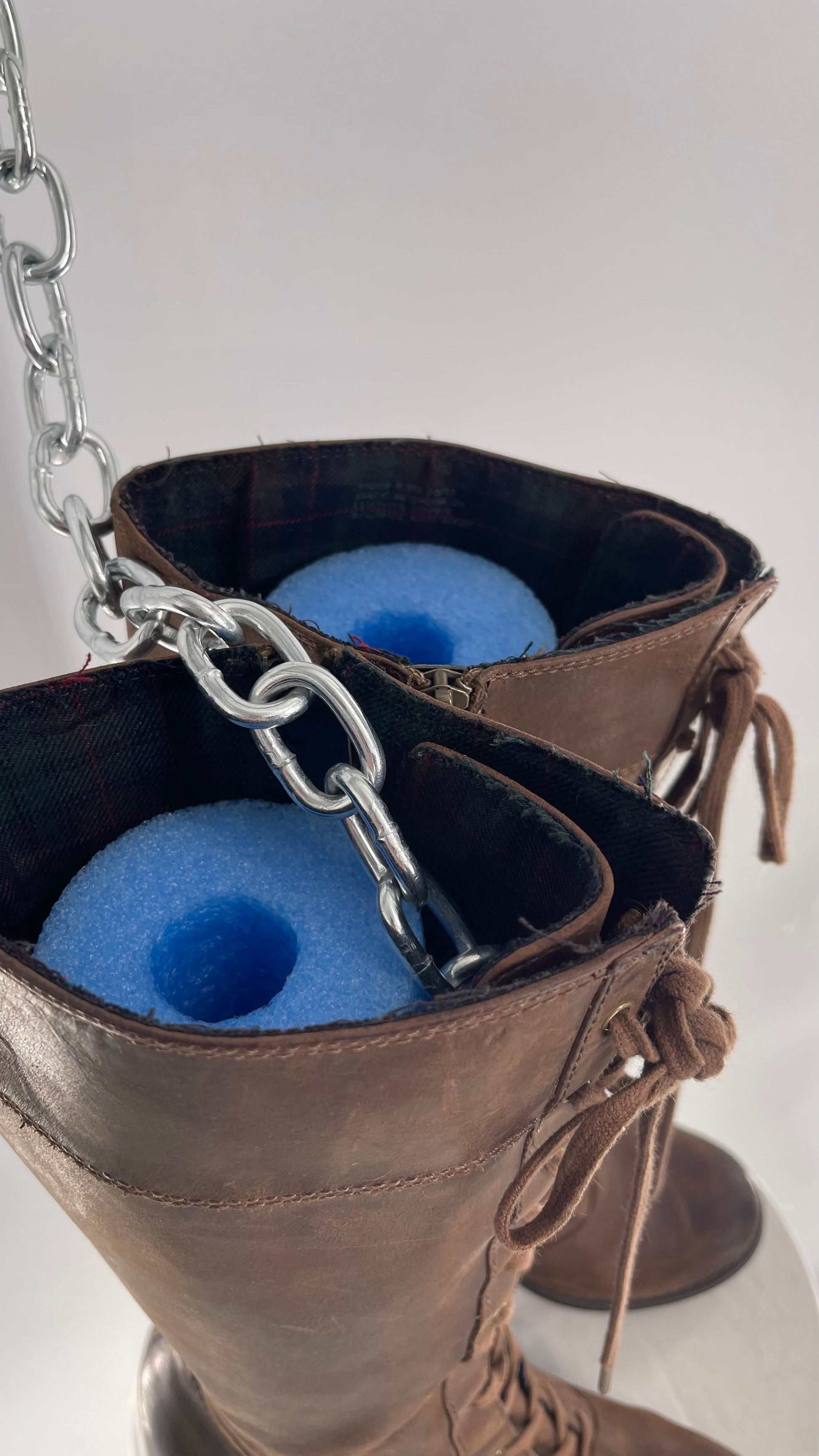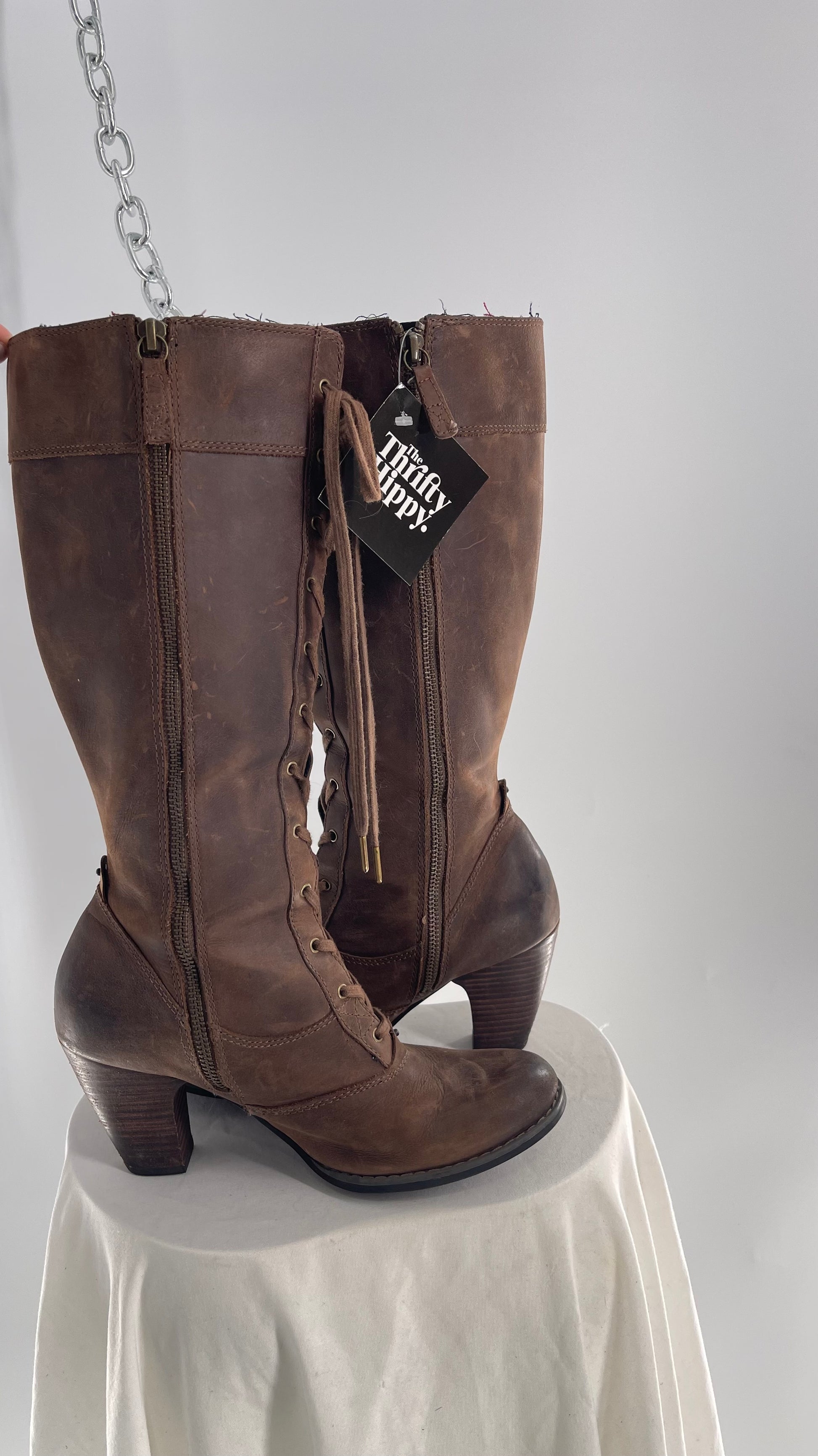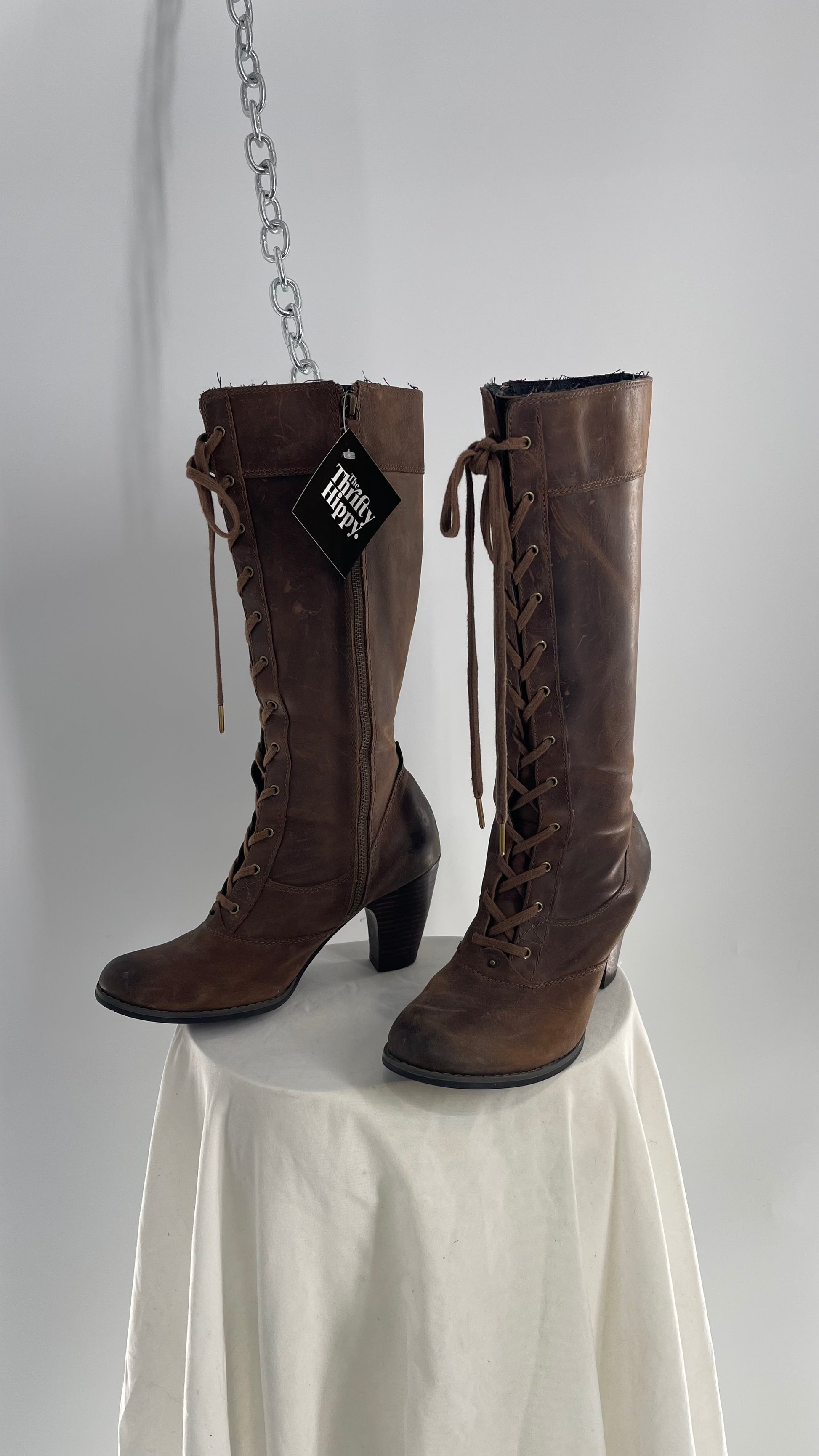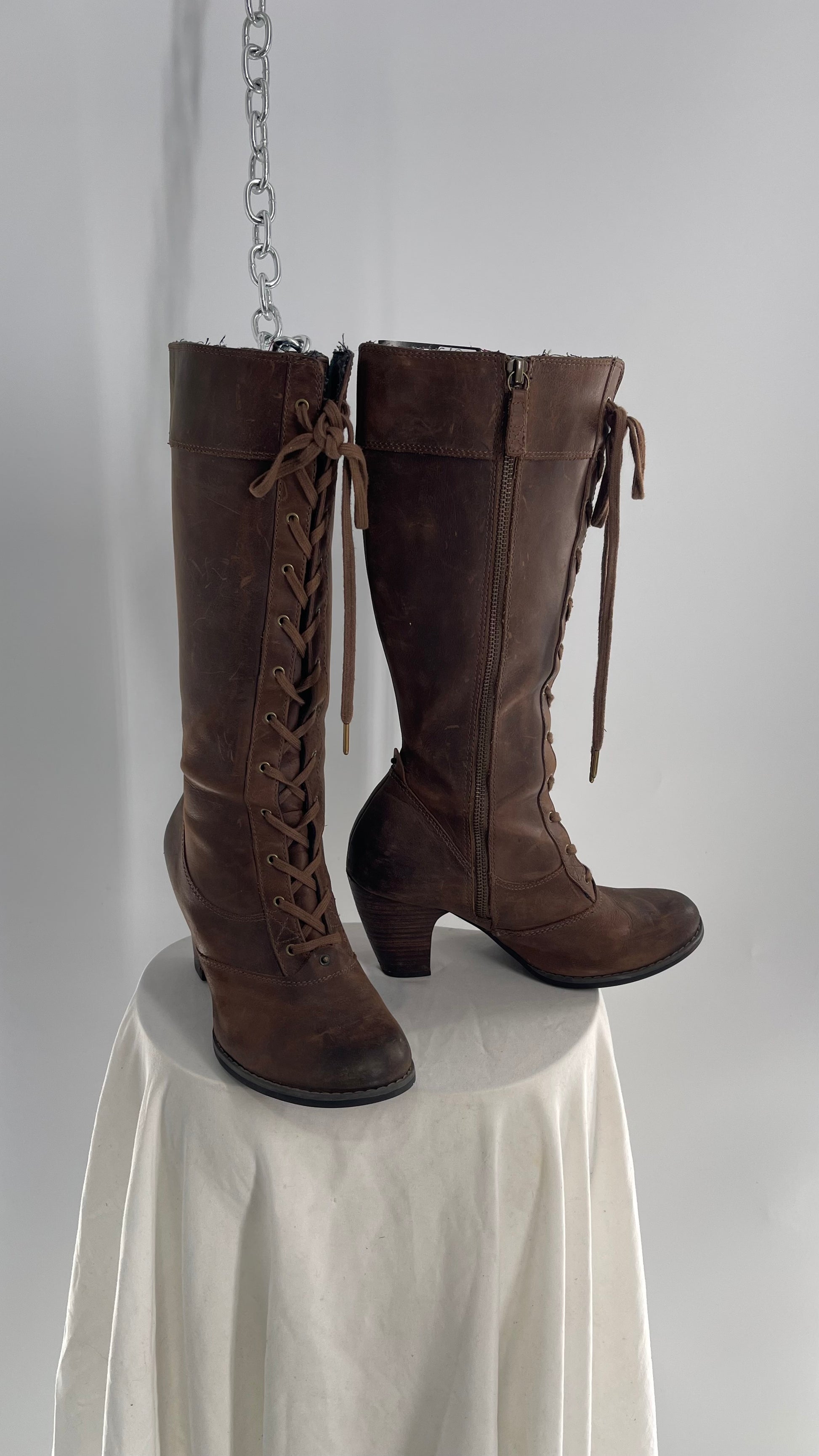 Vintage Indigo Genuine Leather Brown Knee High Combat Boots(6.5)