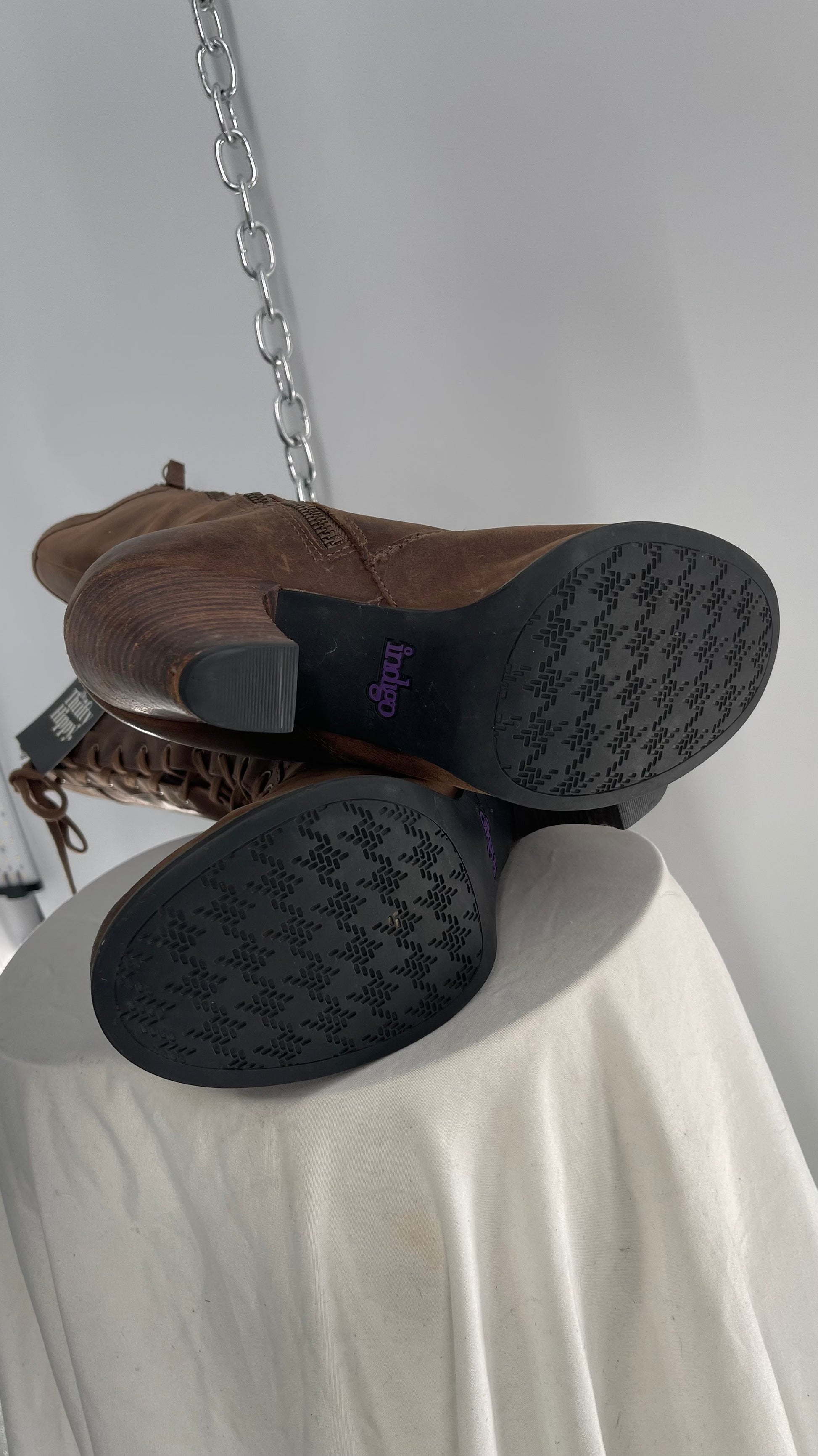 Indigo Genuine Leather Brown Knee High Combat Boots(6.5)