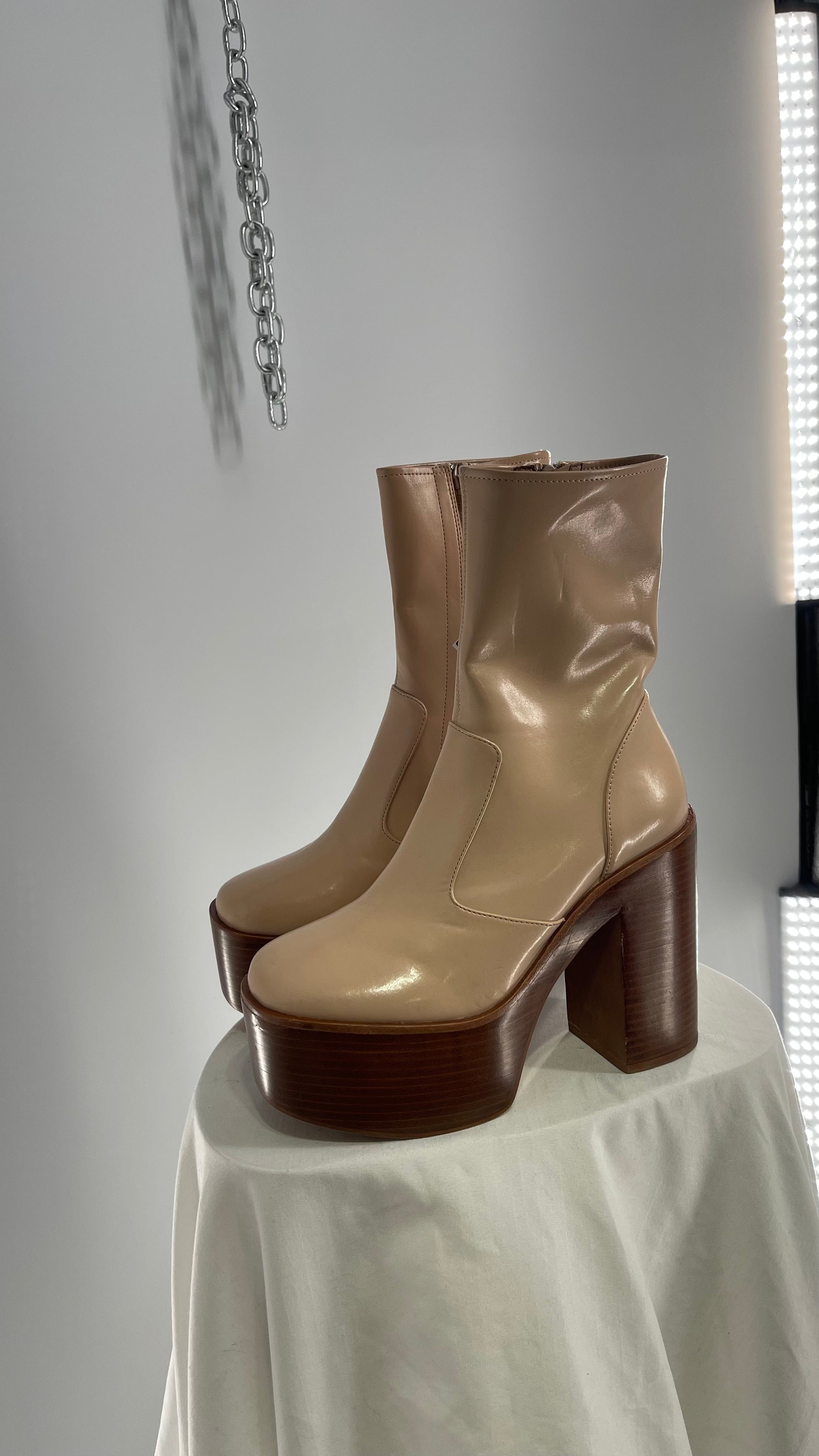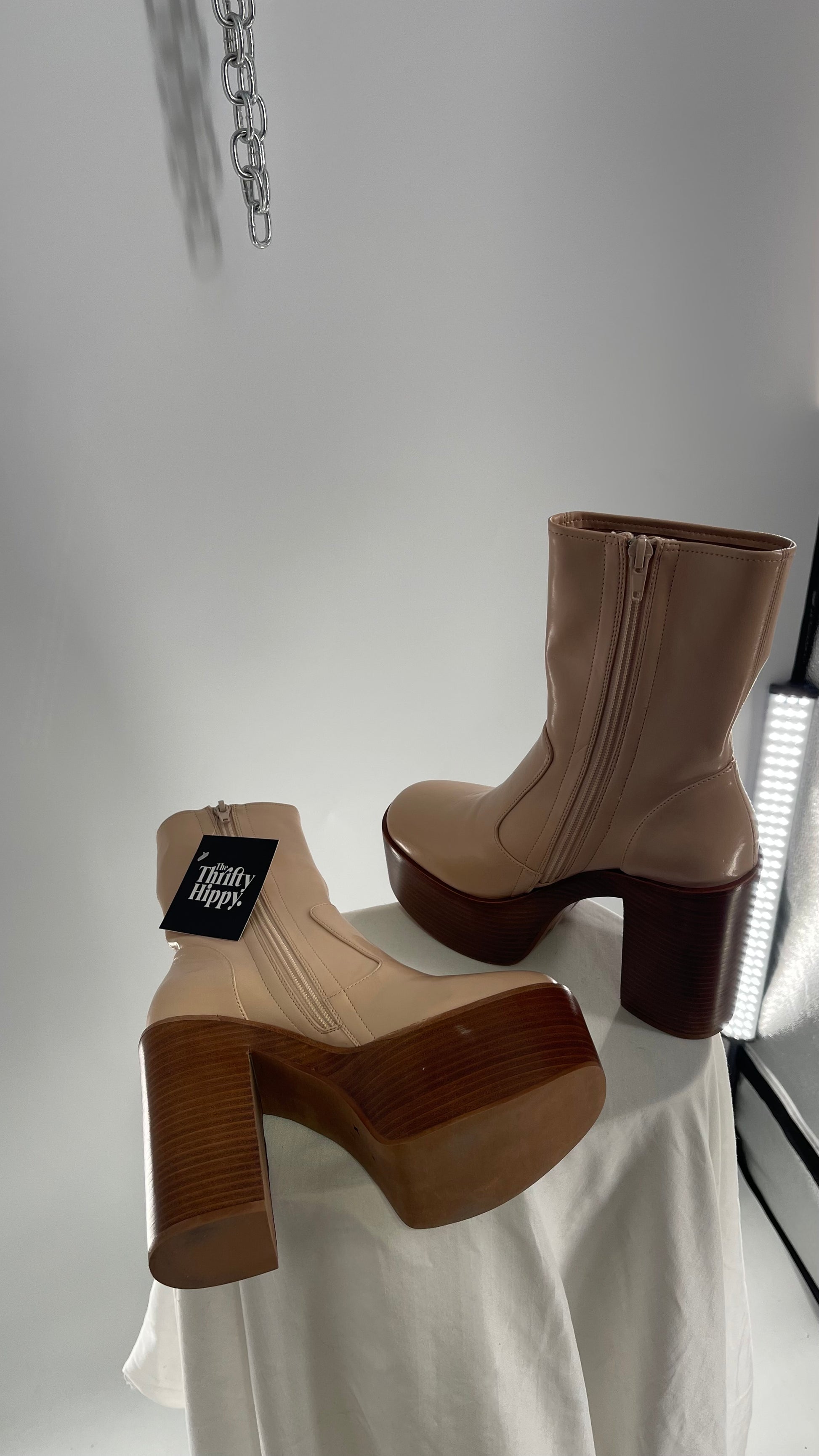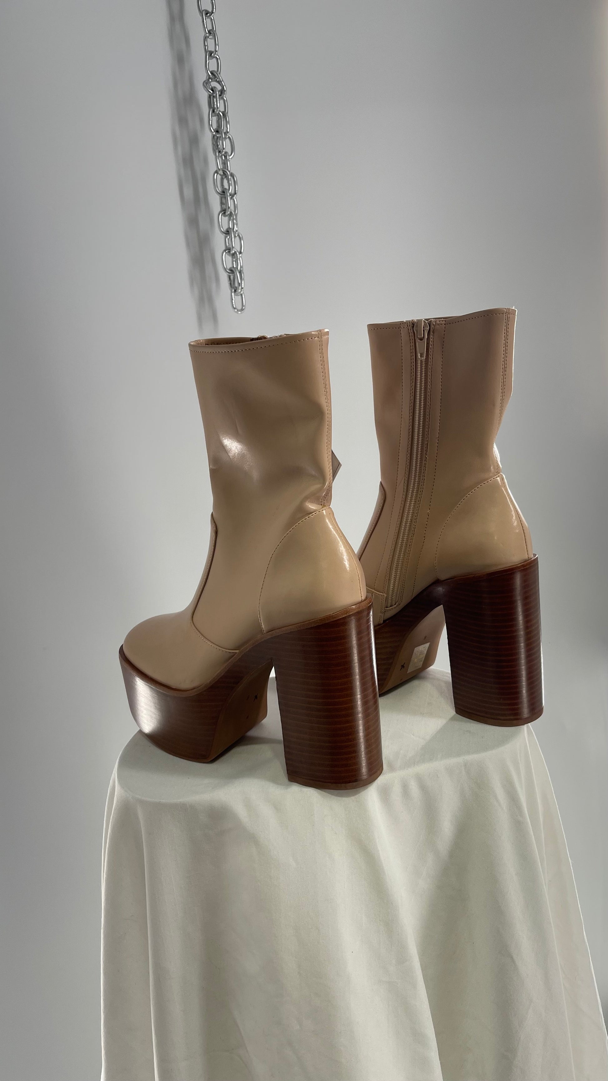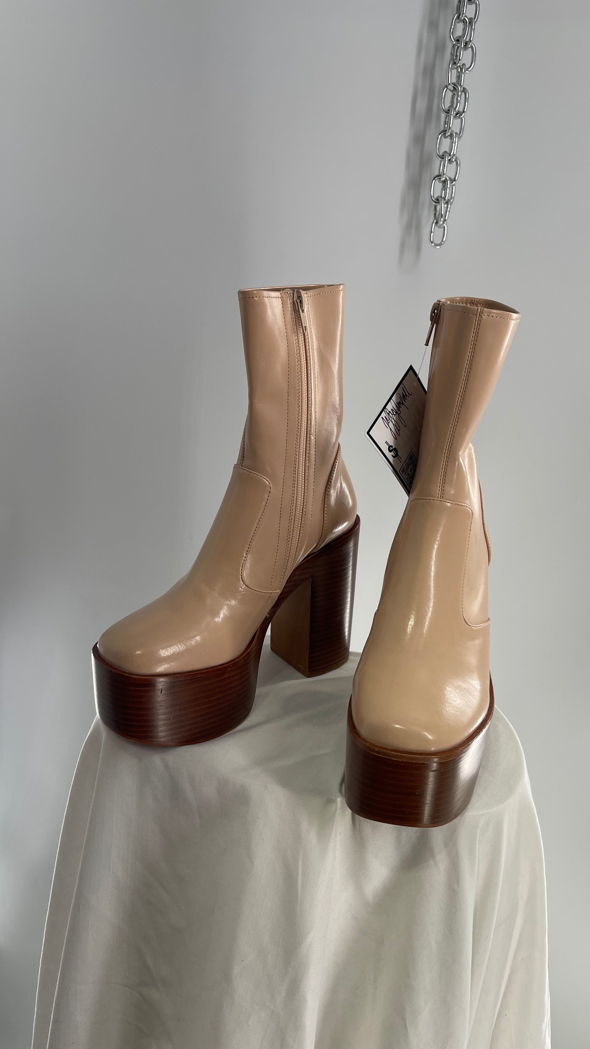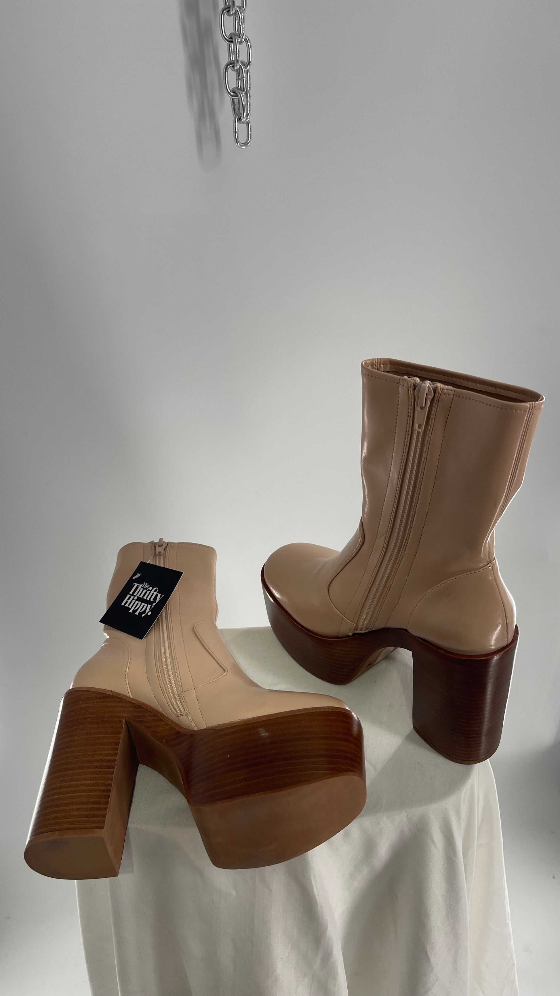 Jeffrey Campbell Mexique Beige Boot with Platform And Chunky Wooden Heel