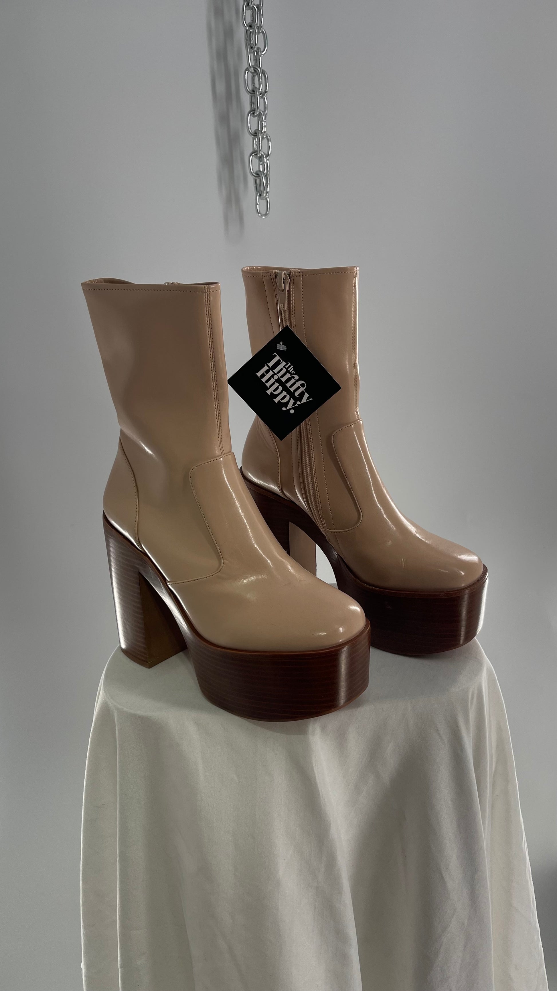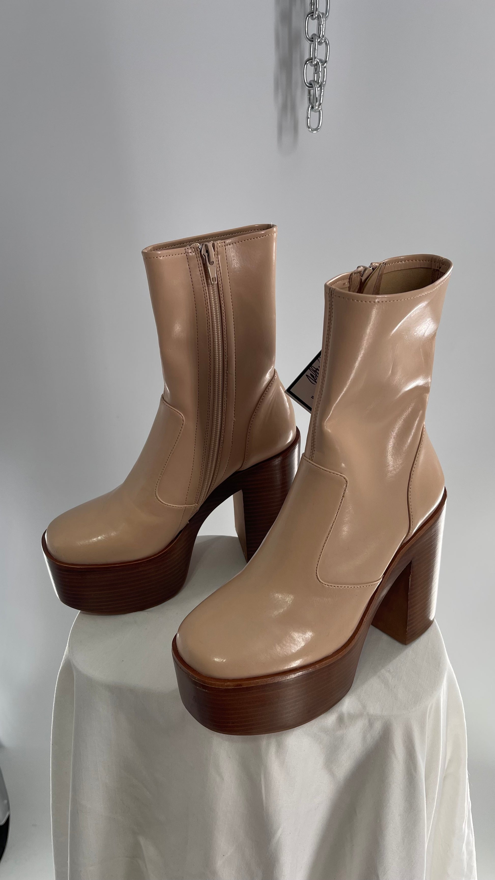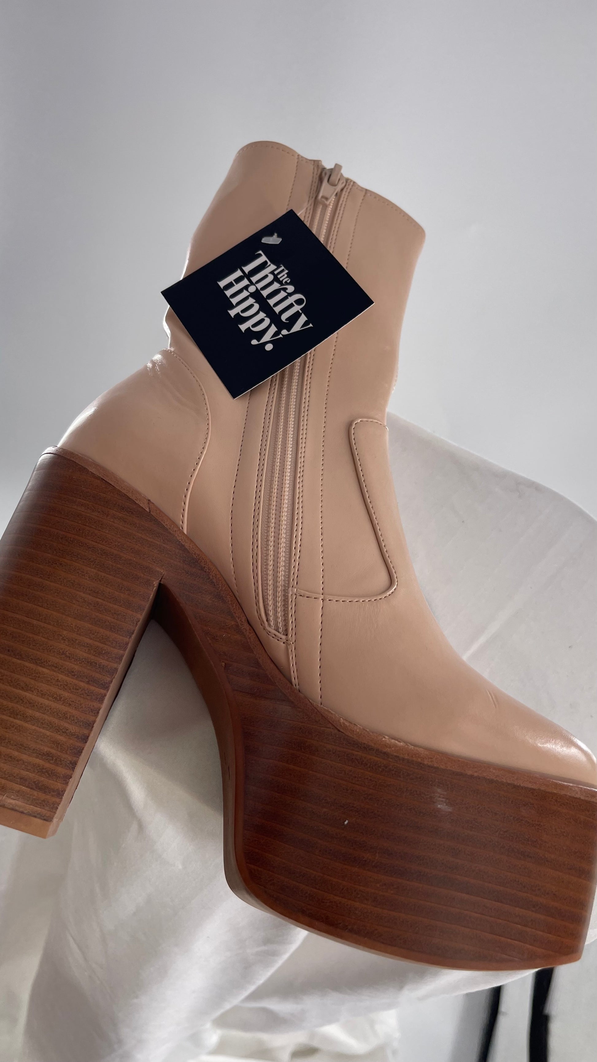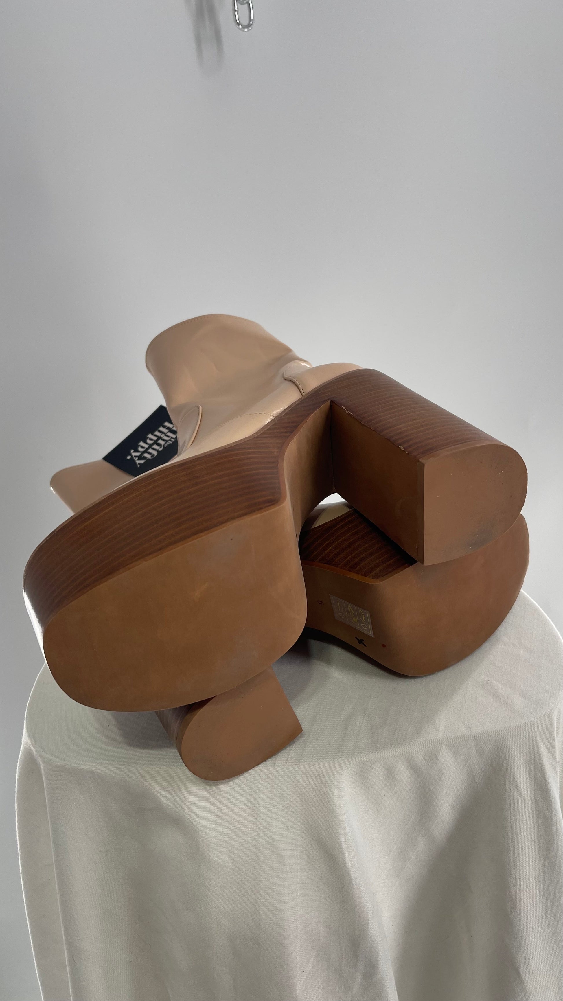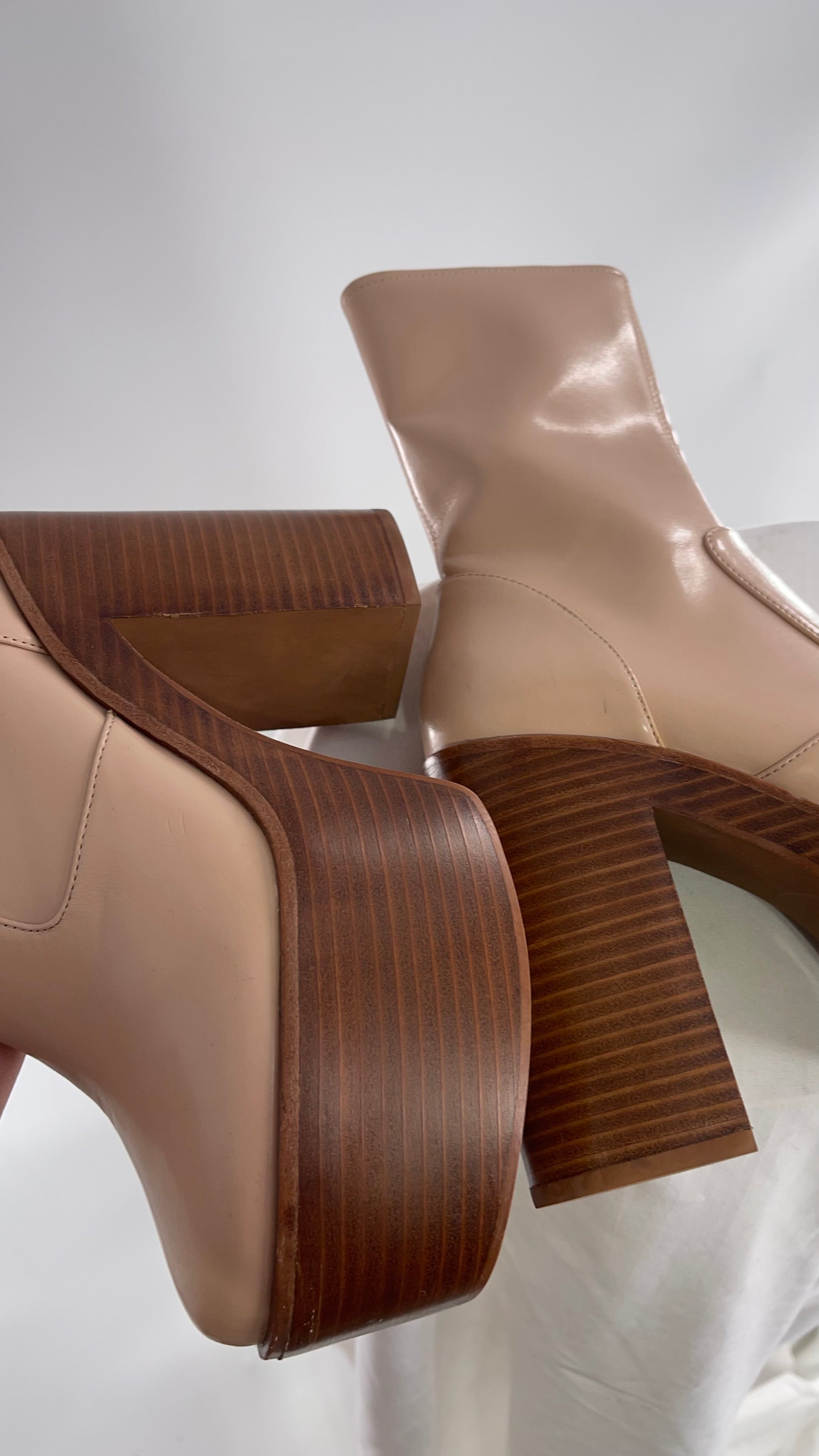 Jeffrey Campbell Mexique Beige Boot with Platform And Chunky Wooden Heel