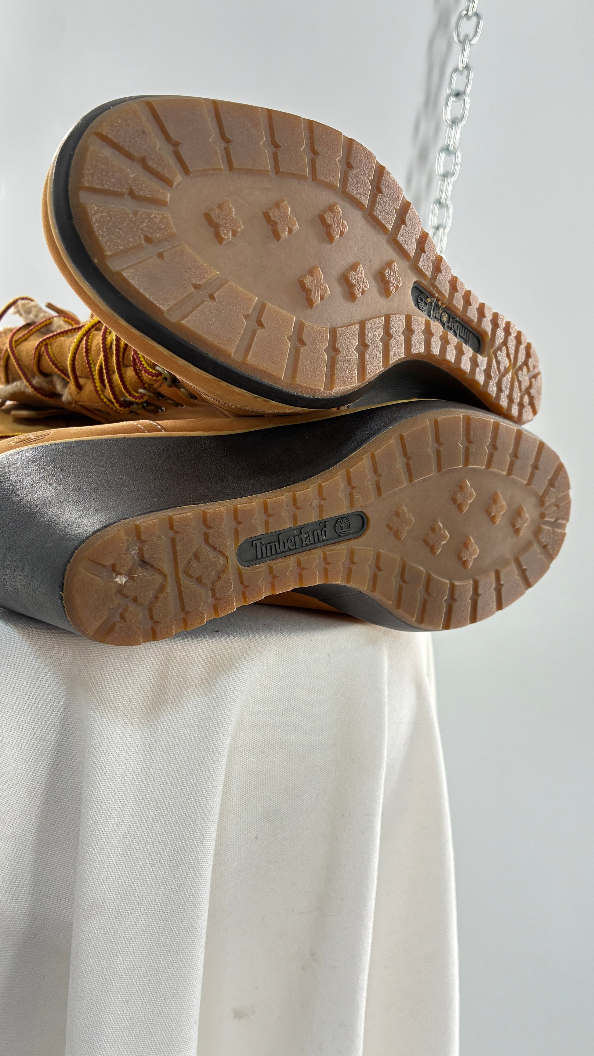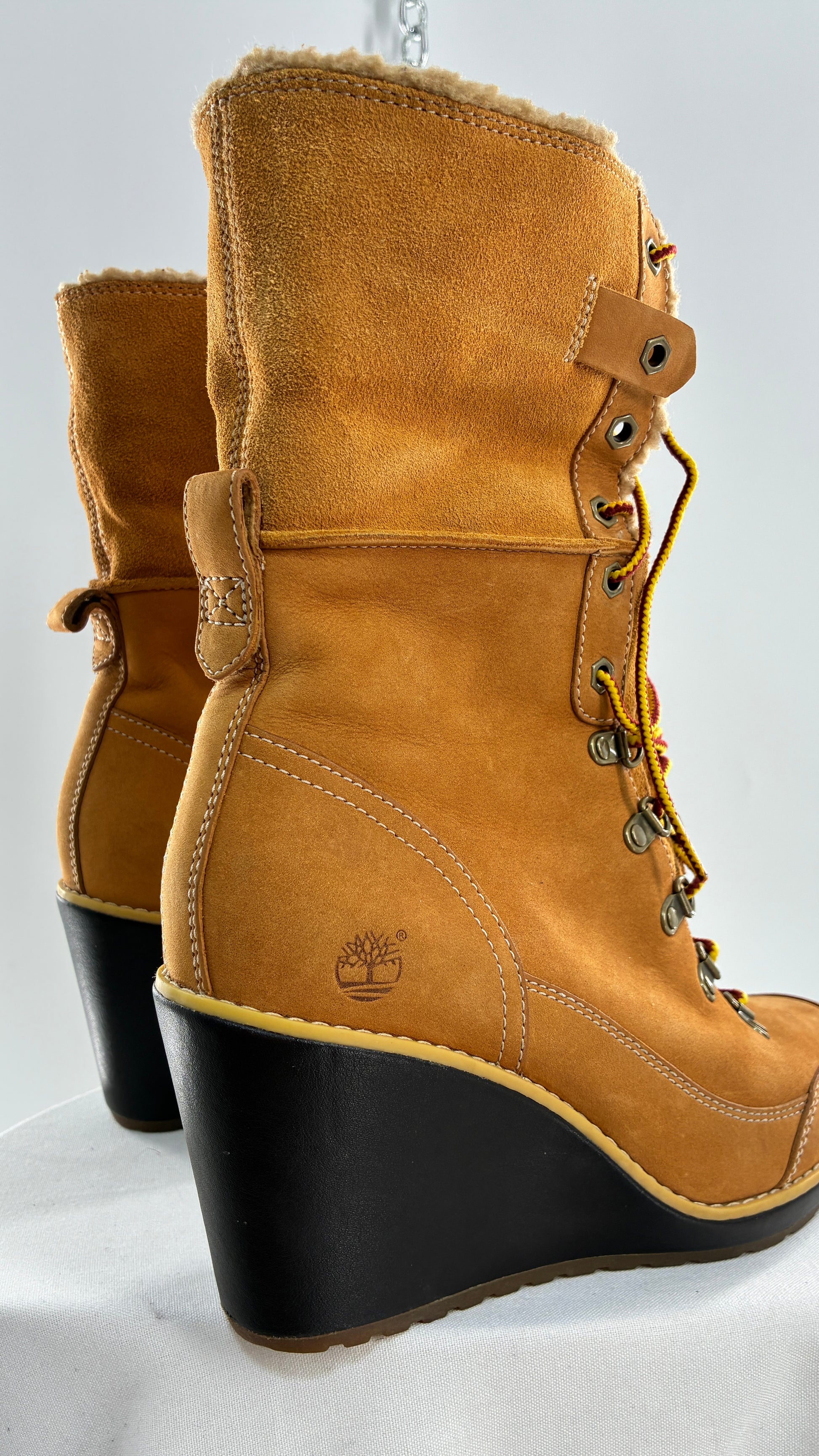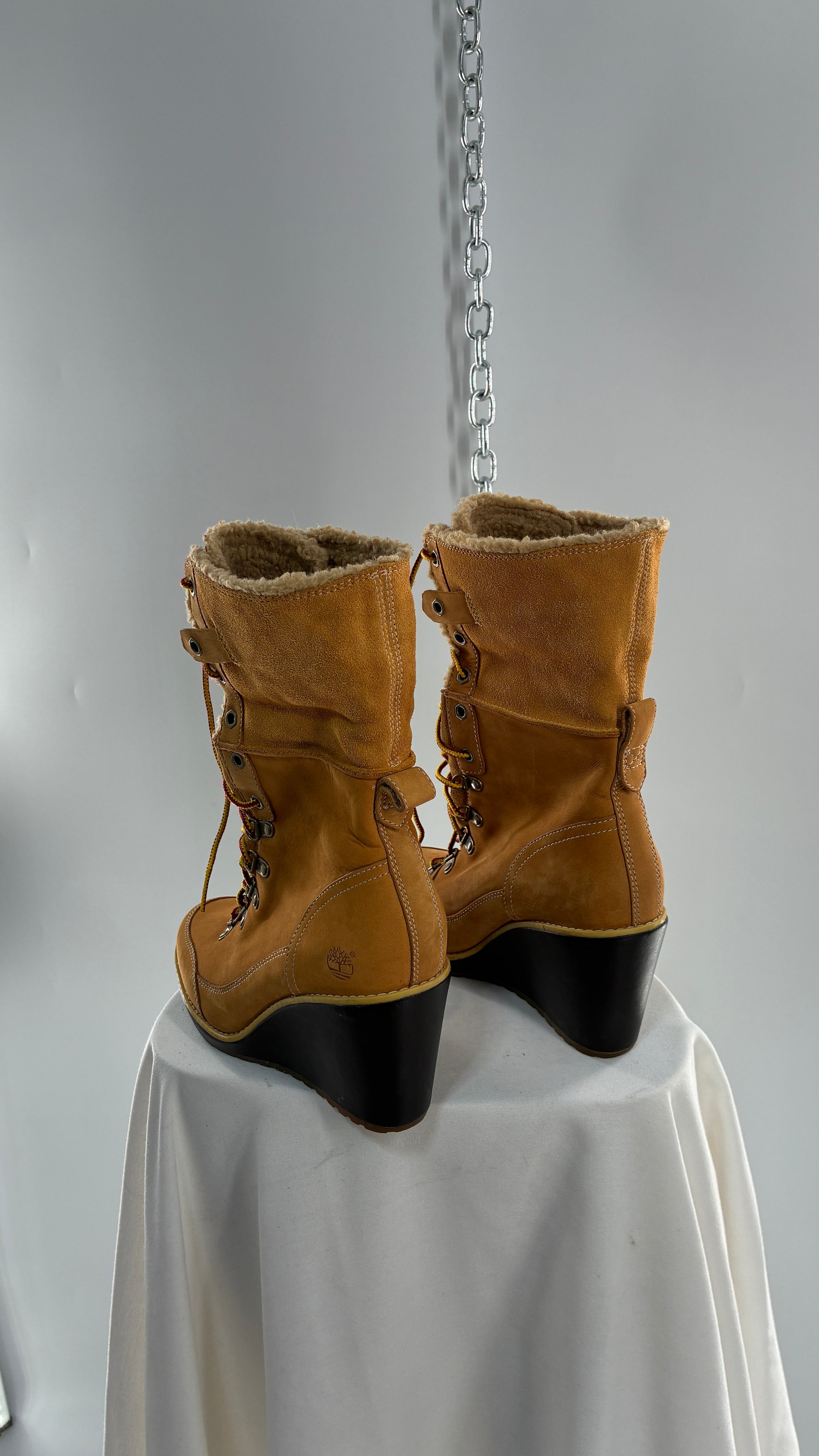 Vintage TIMBERLAND Wedge Boots Suede Leather Tie Up Heels (7.5)
