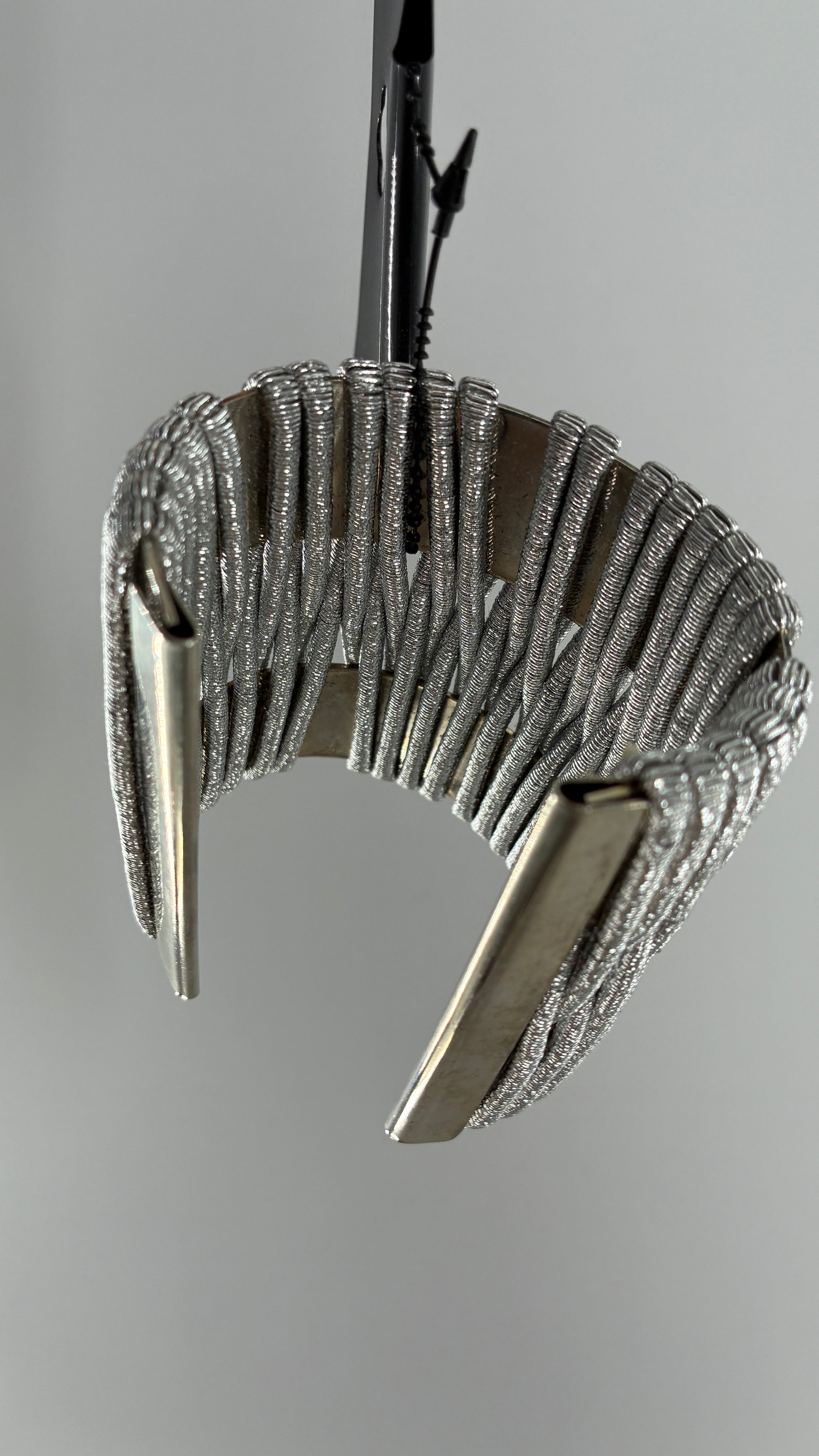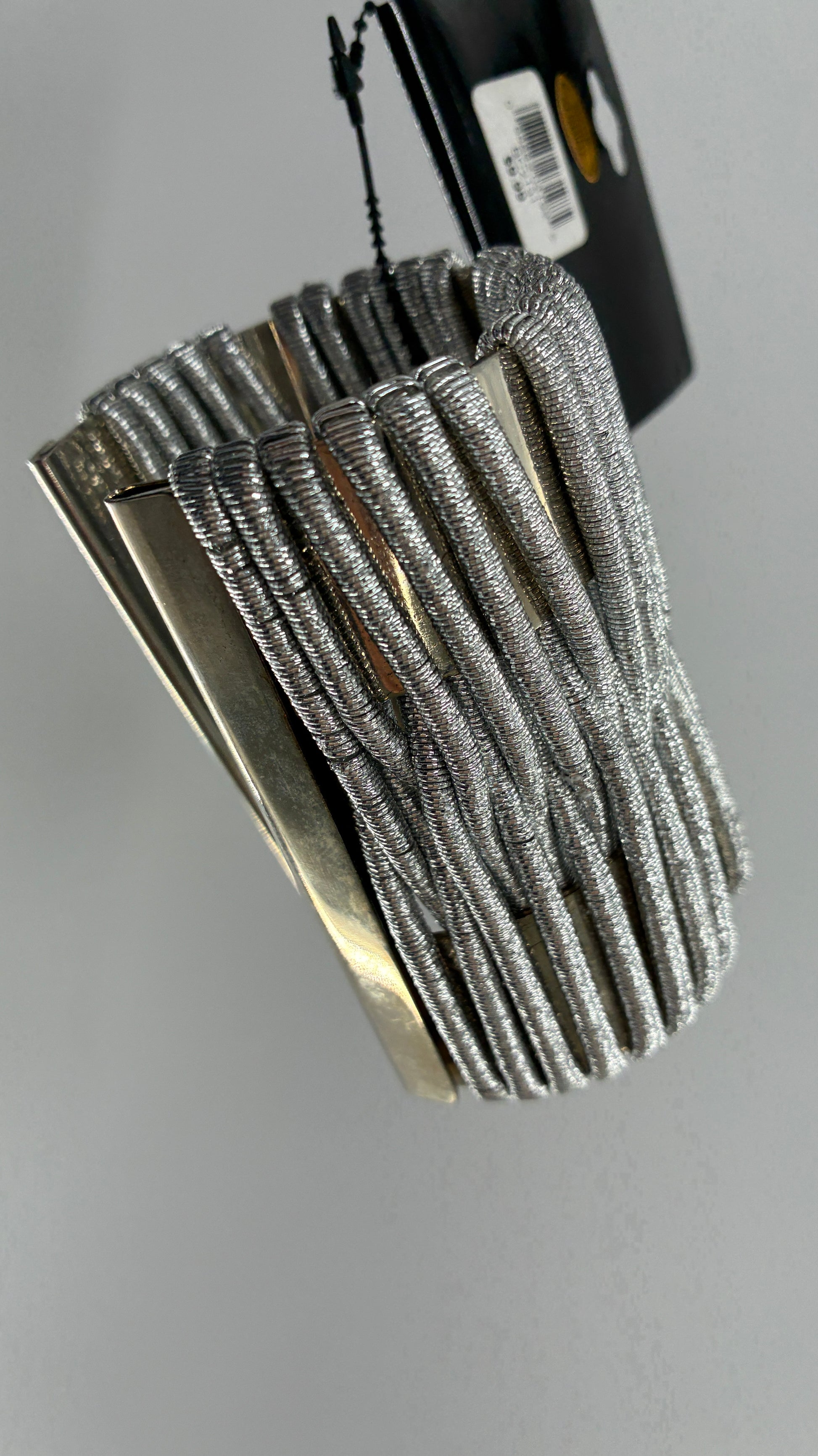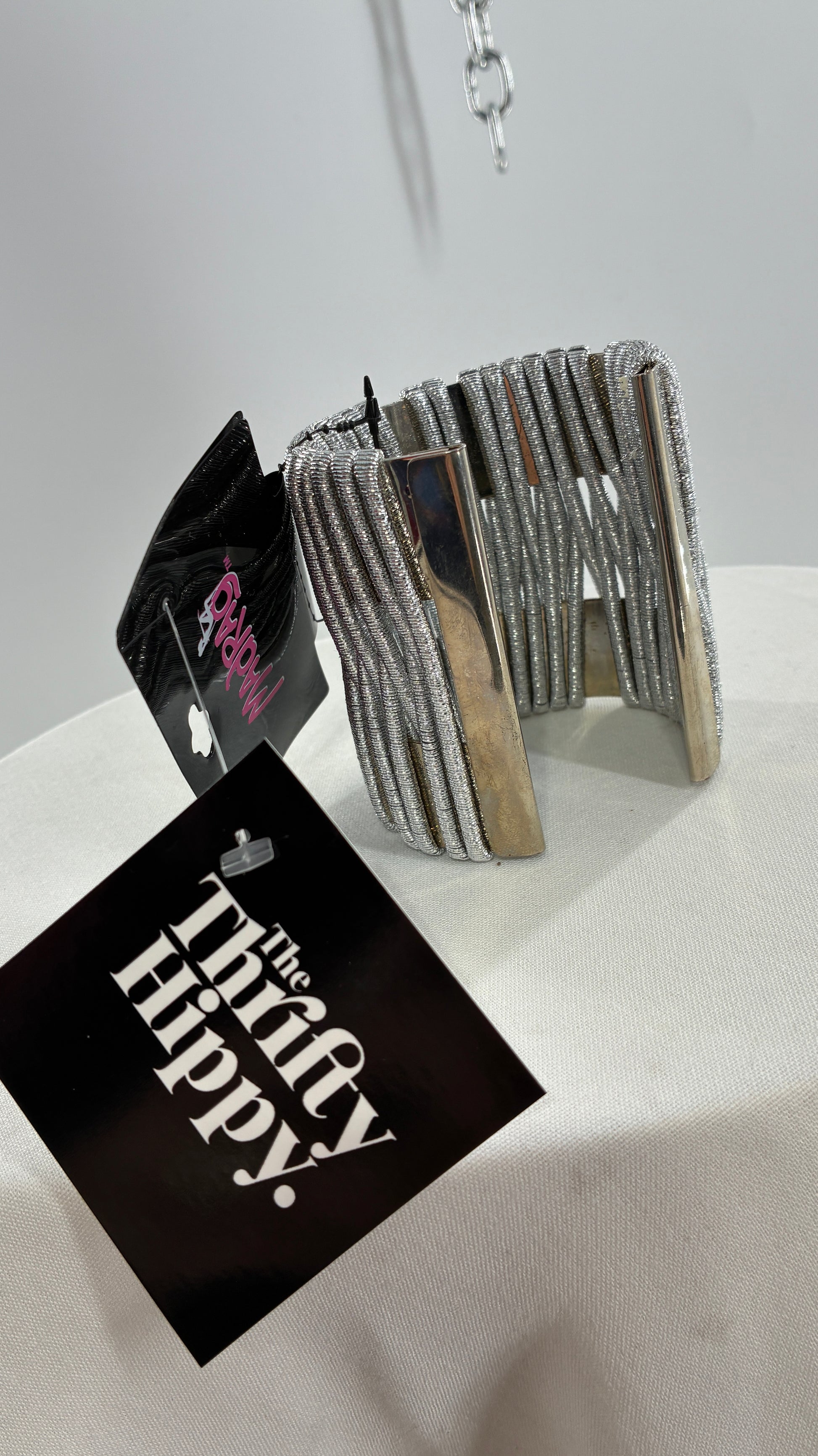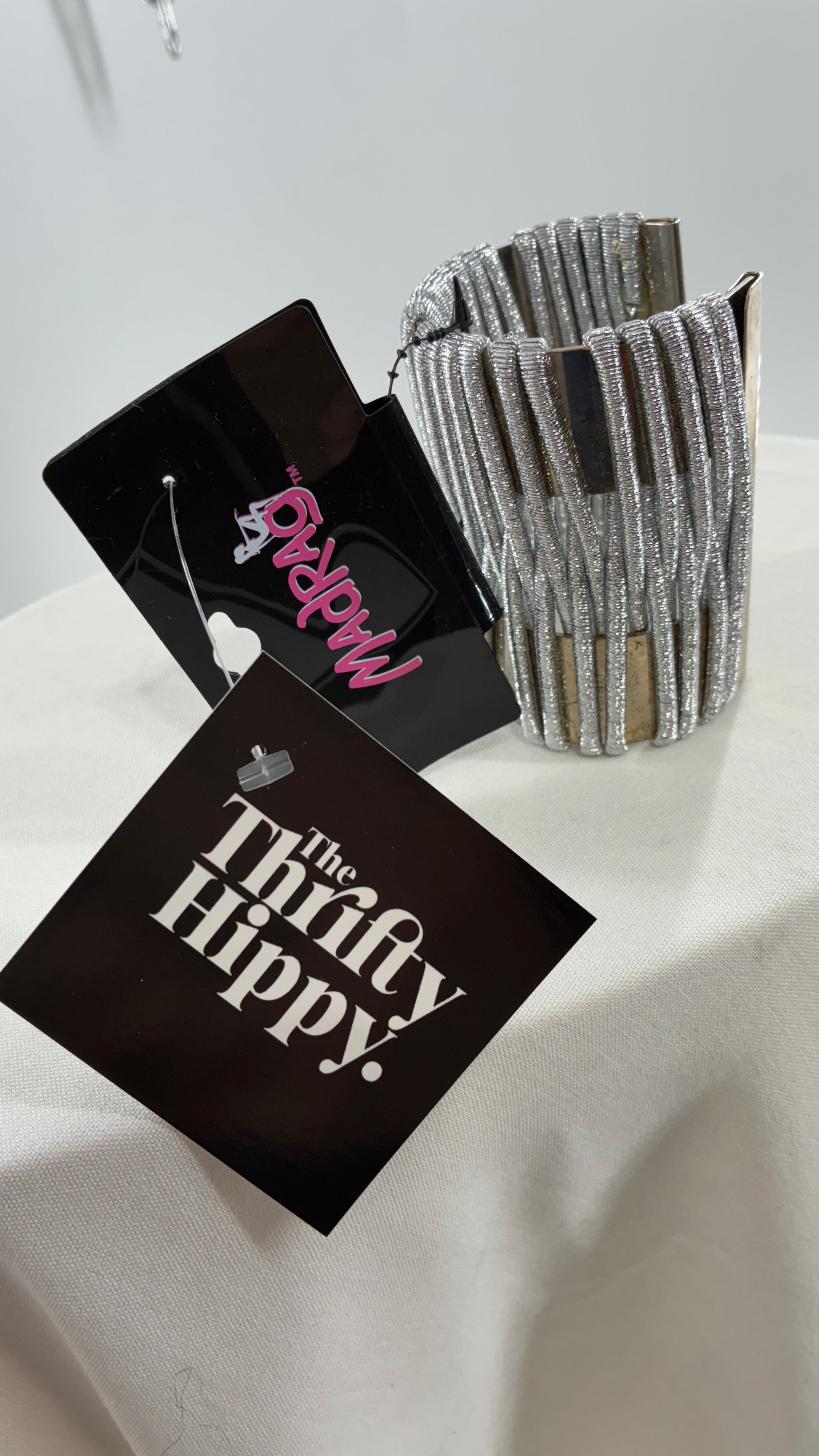 Deadstock Vintage MADRAG Silver Oversized Cuff with Metallic Bands