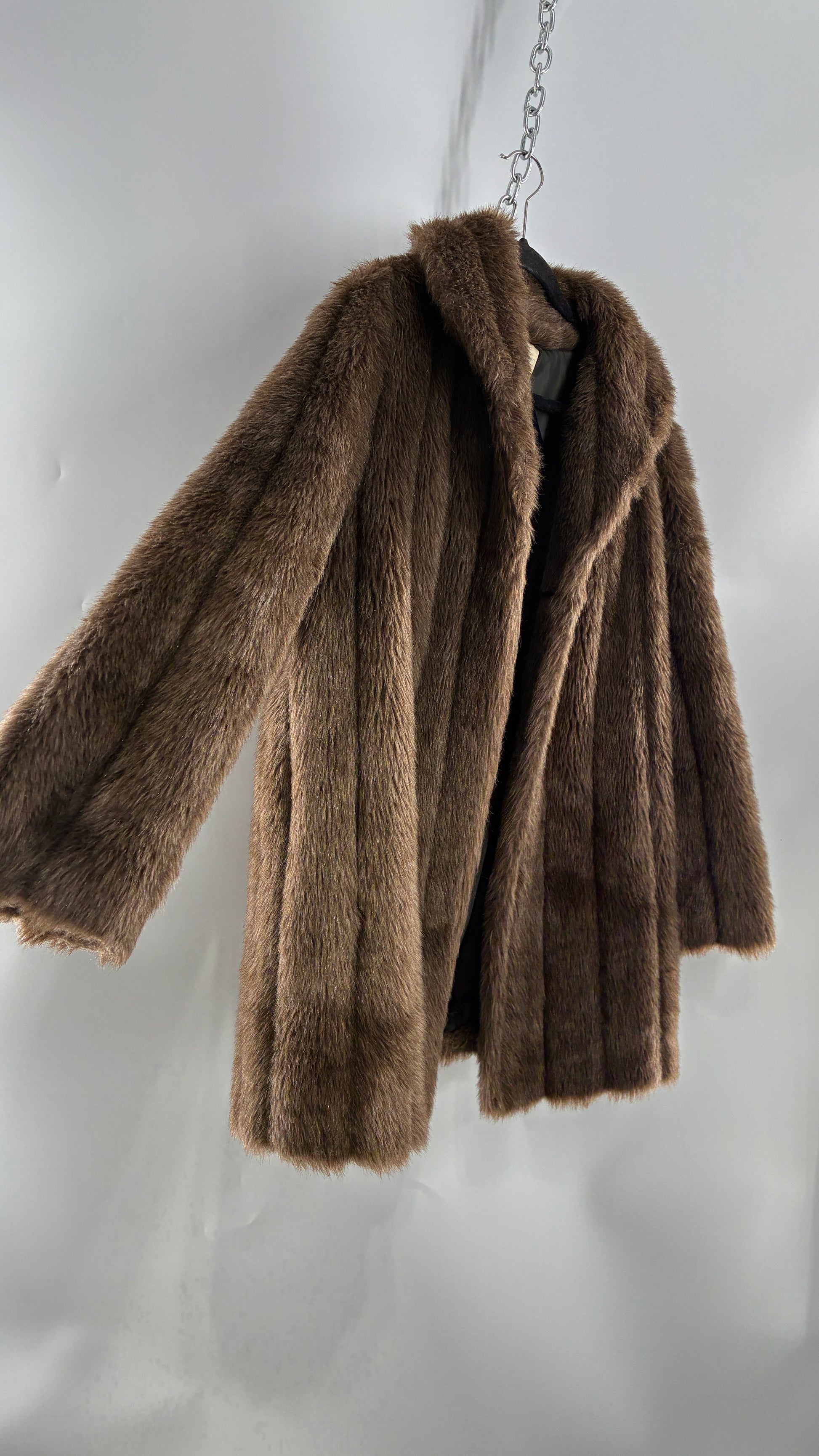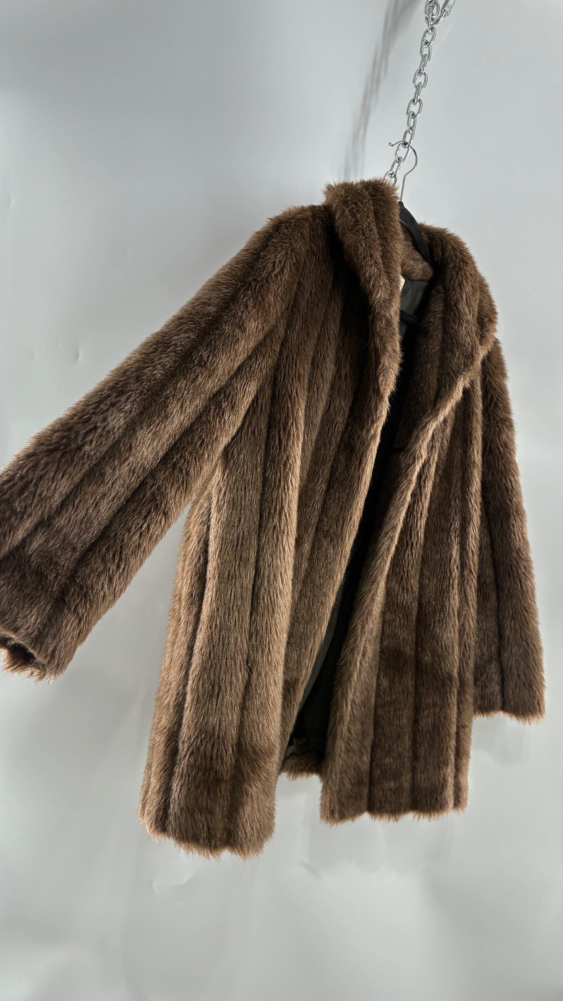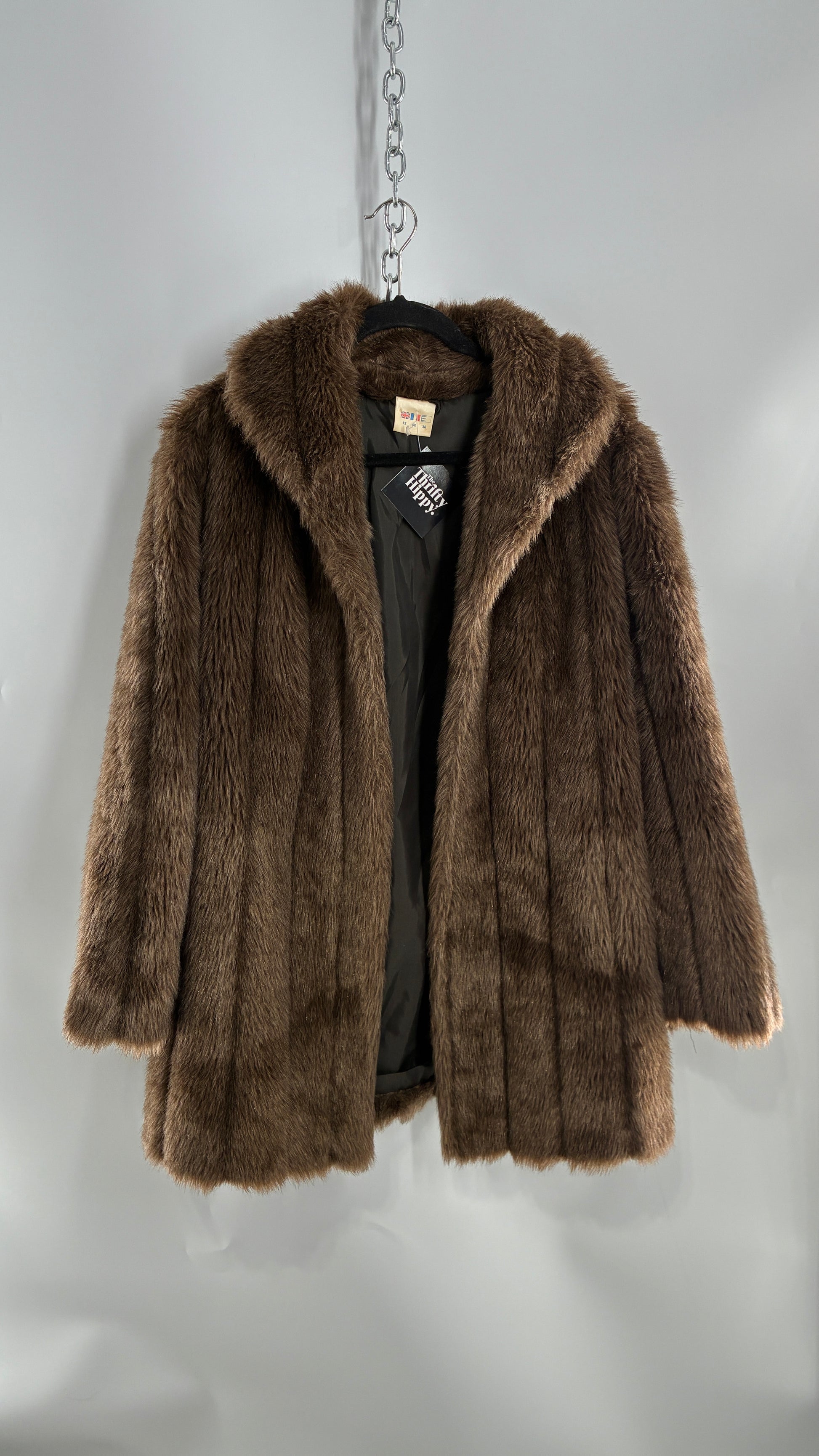 Vintage Vegan Mixed Brown Tones Paneled Fur Coat