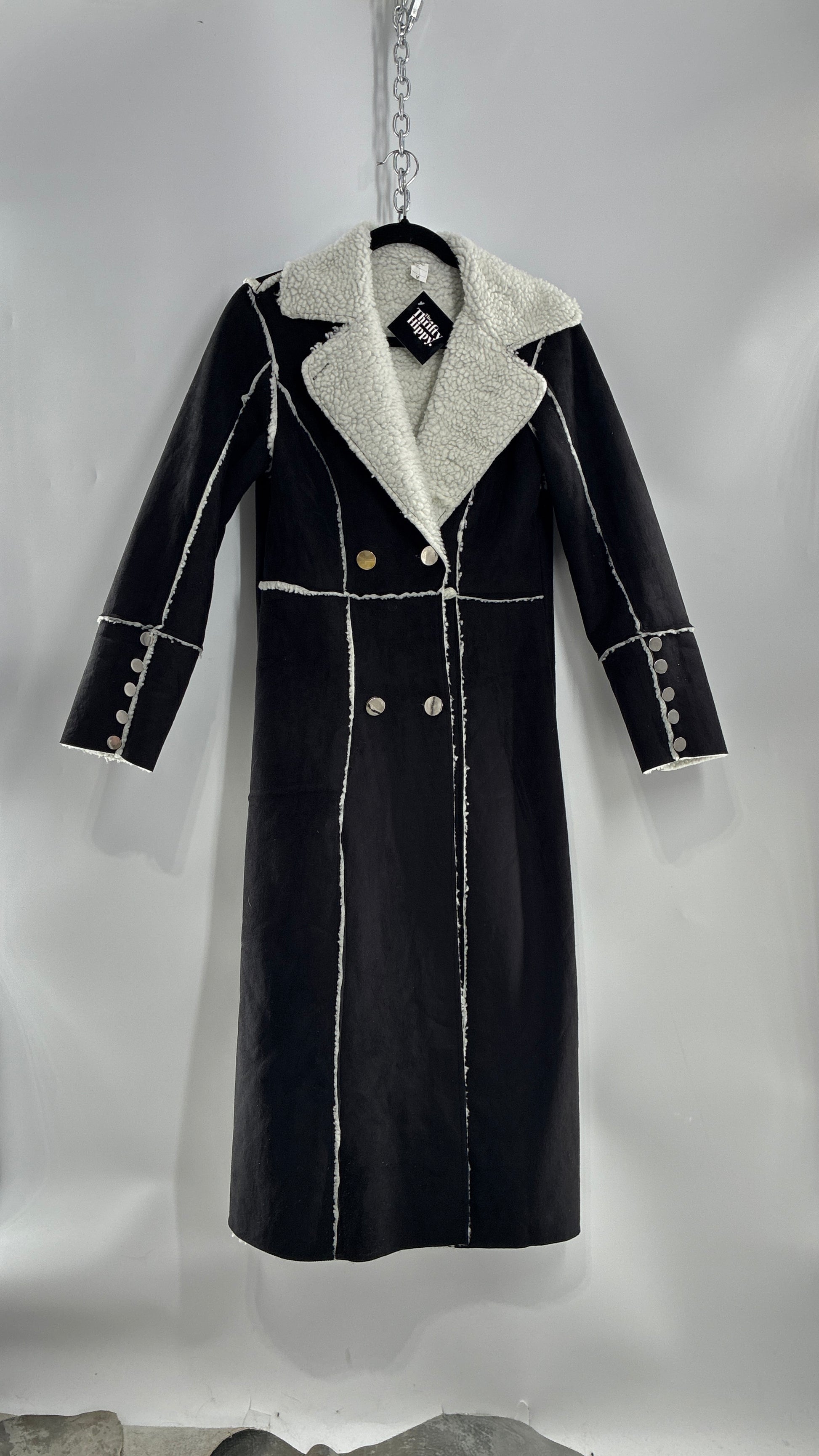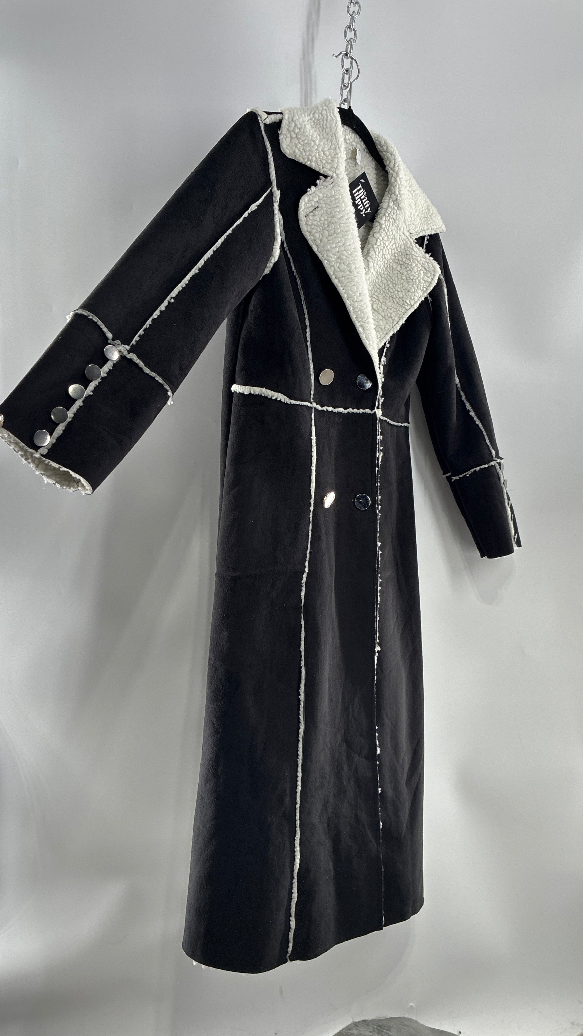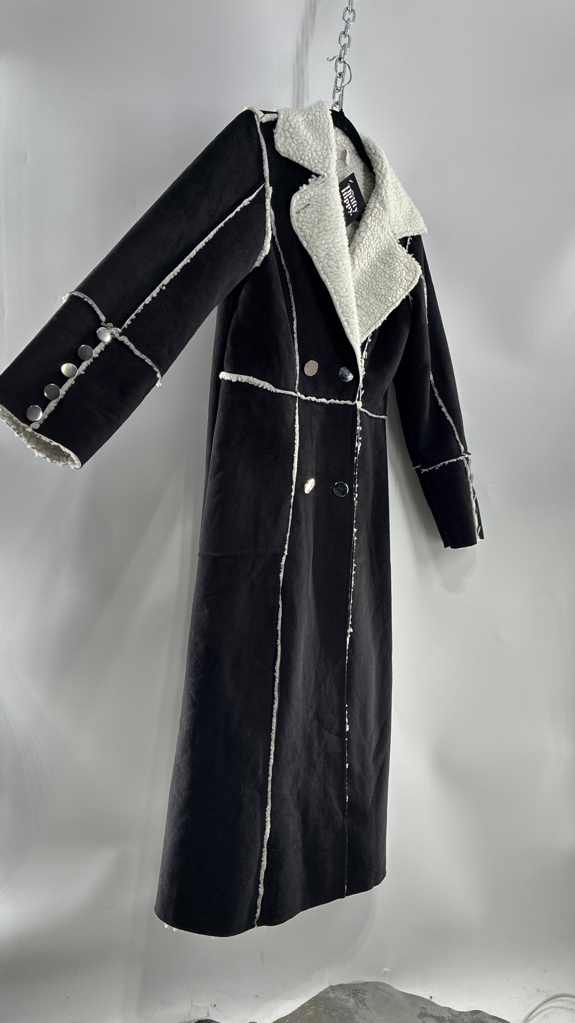 Vintage Black Vegan Suede Coat with Sherpa Lining