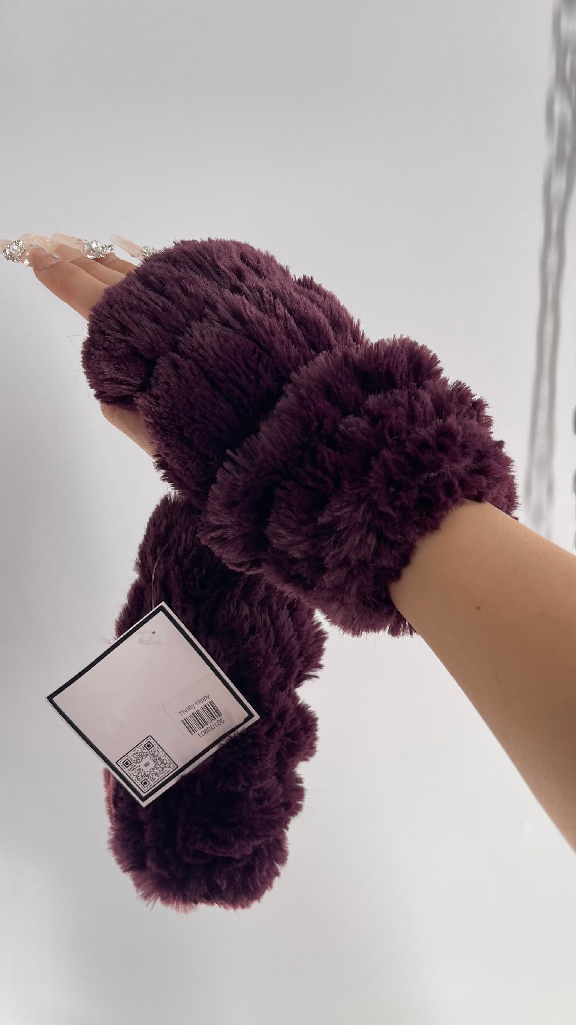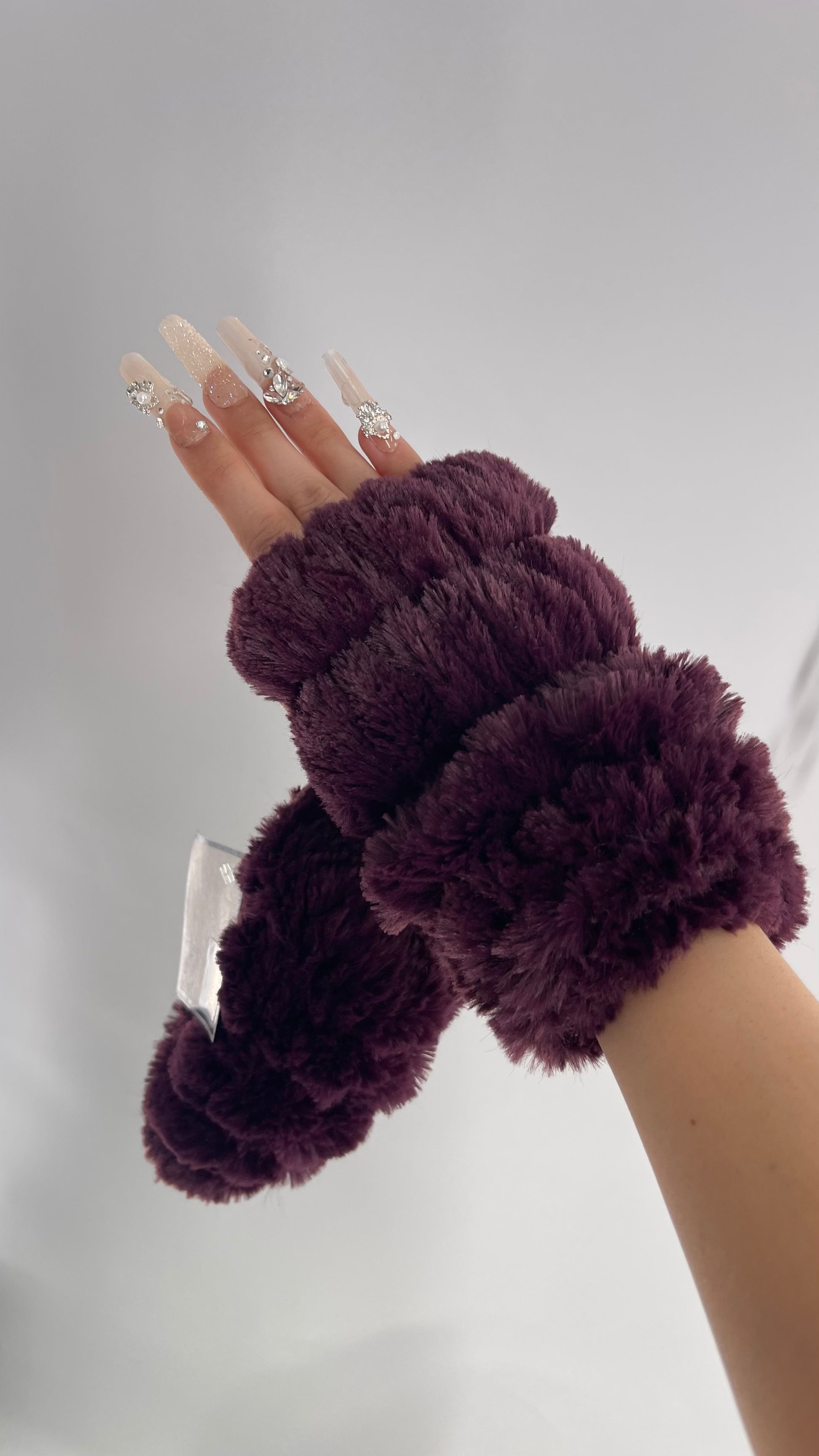 Free People Faux Fur Purple Bubble Fingerless Gloves