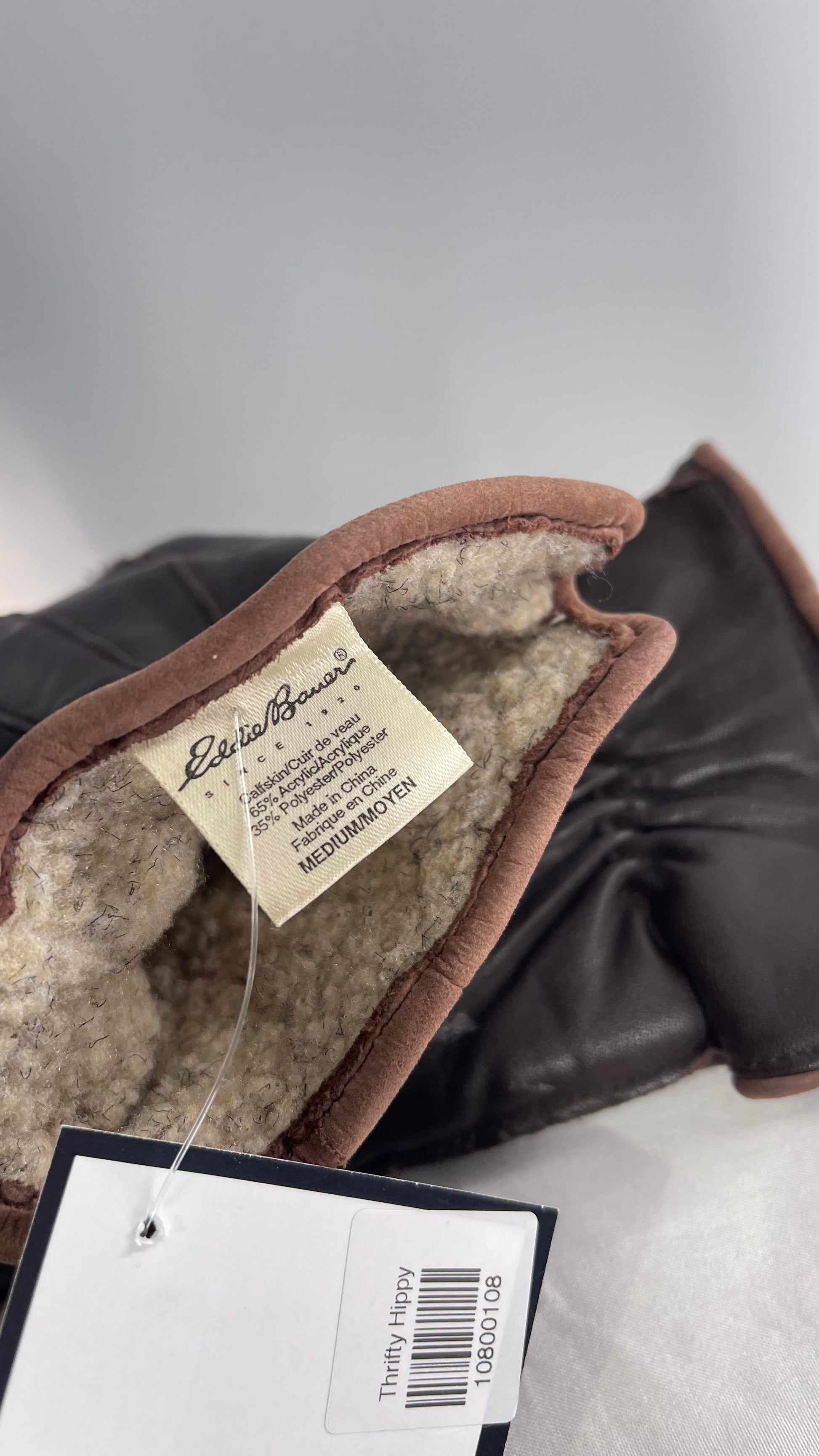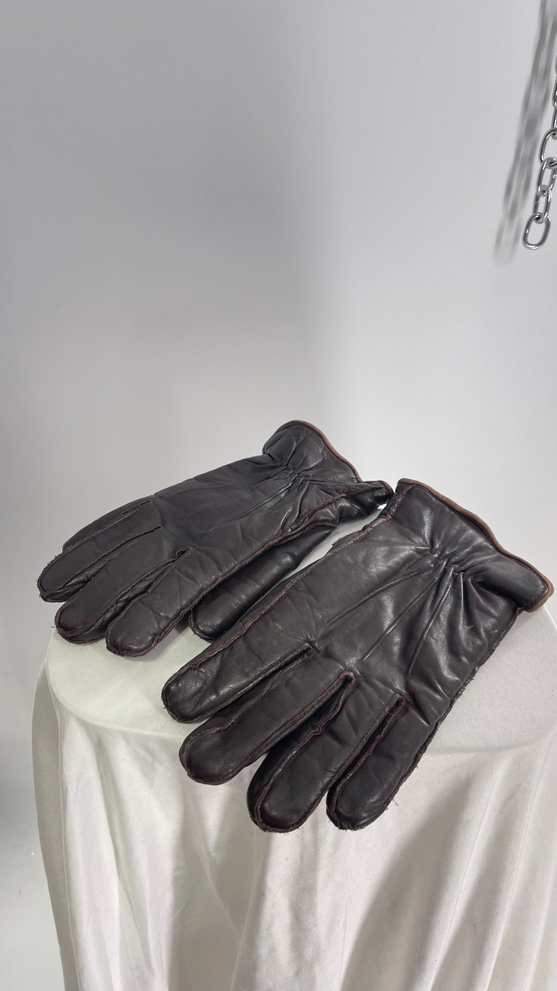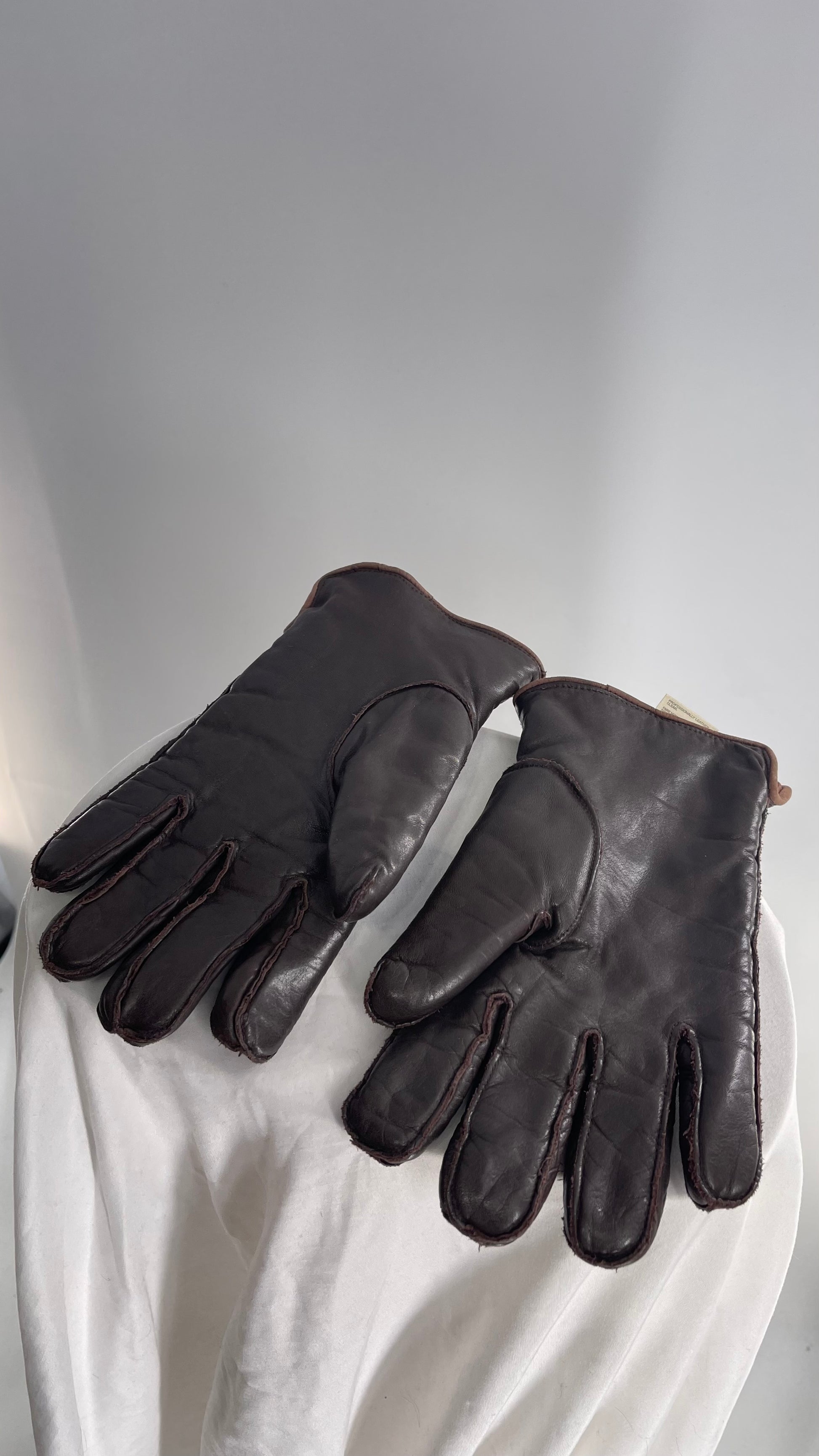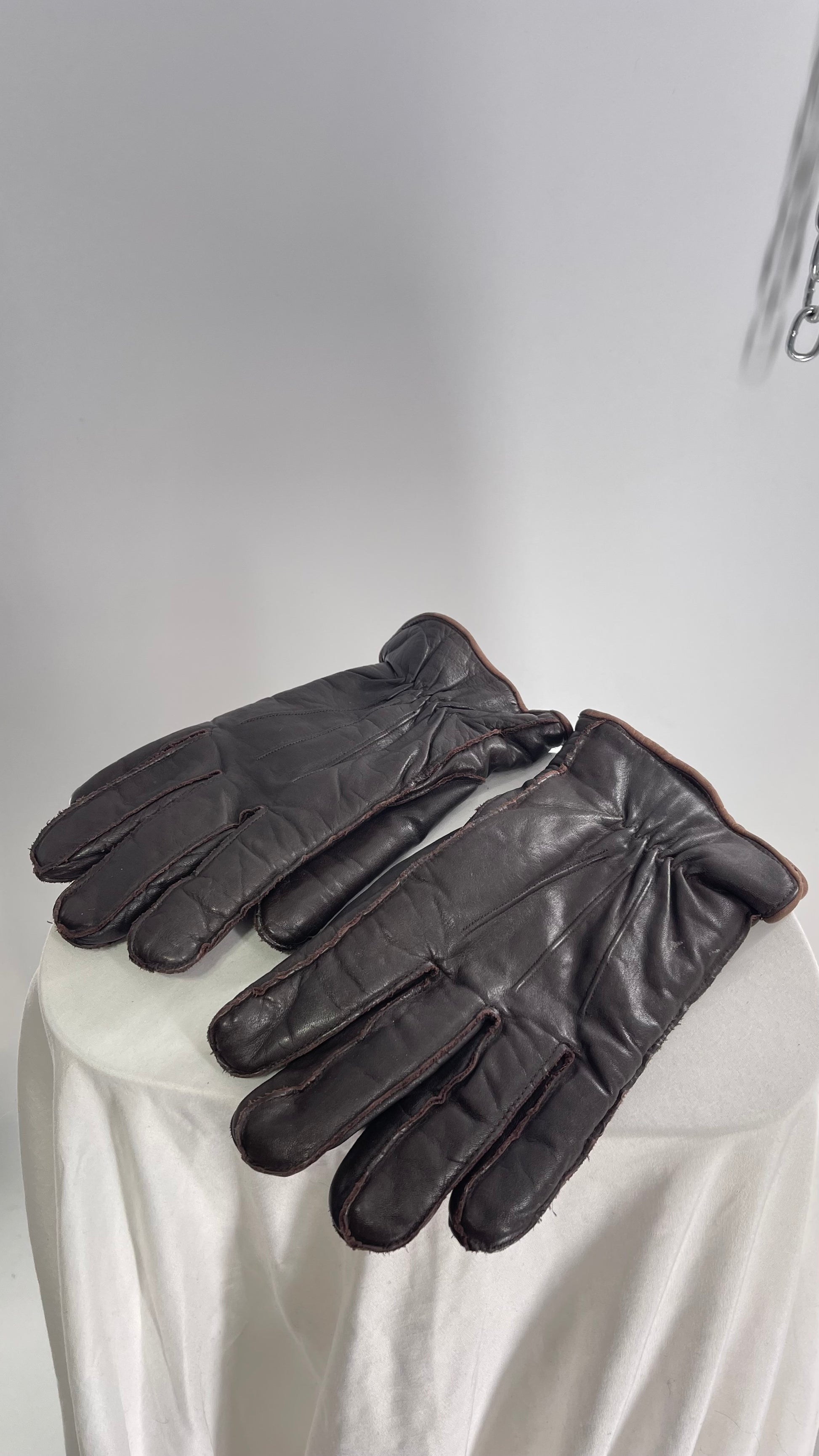 Vintage Eddie Bauer Brown Leather Lined Gloves (Medium)