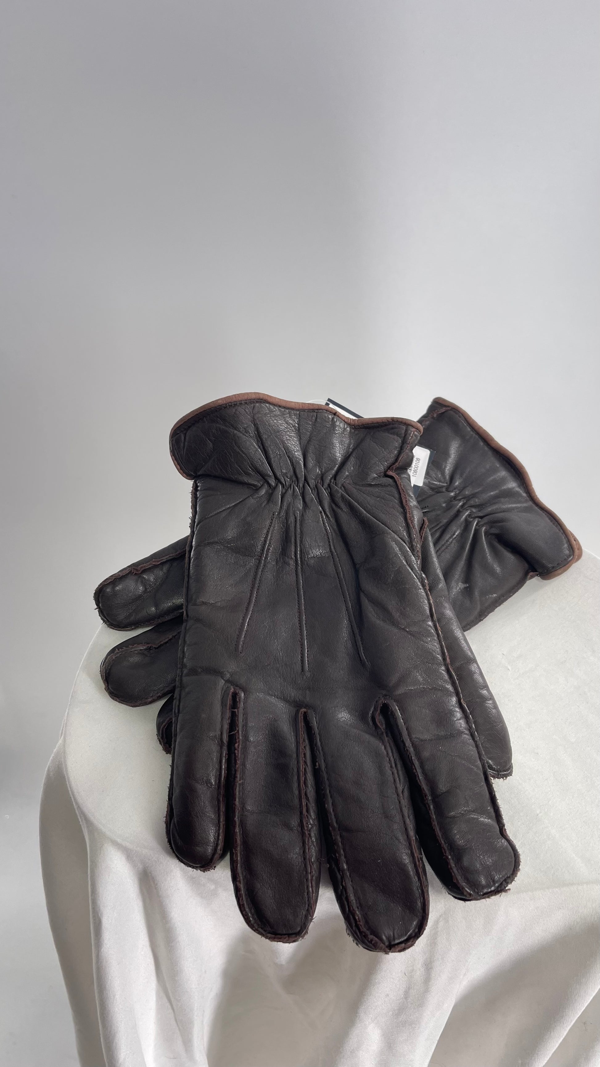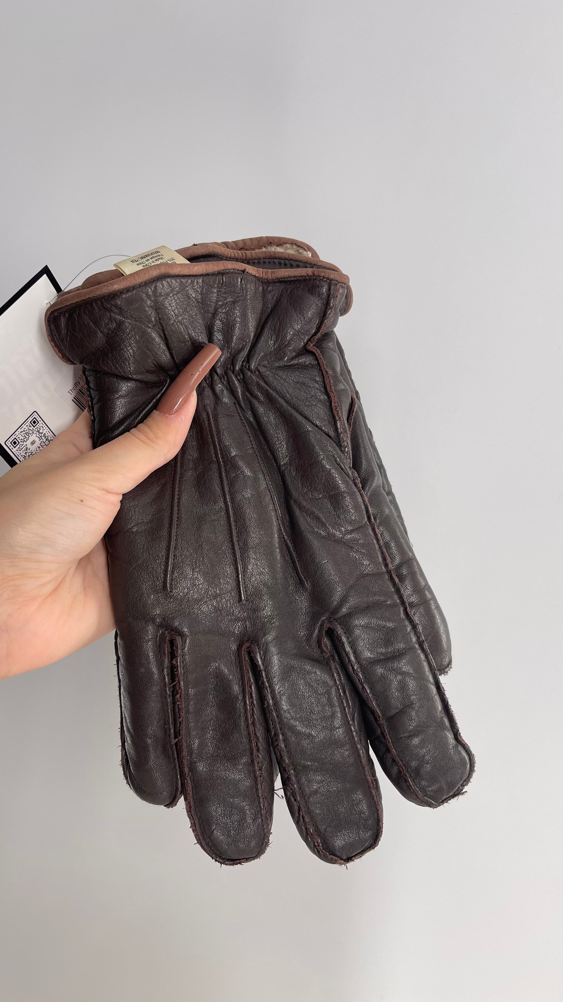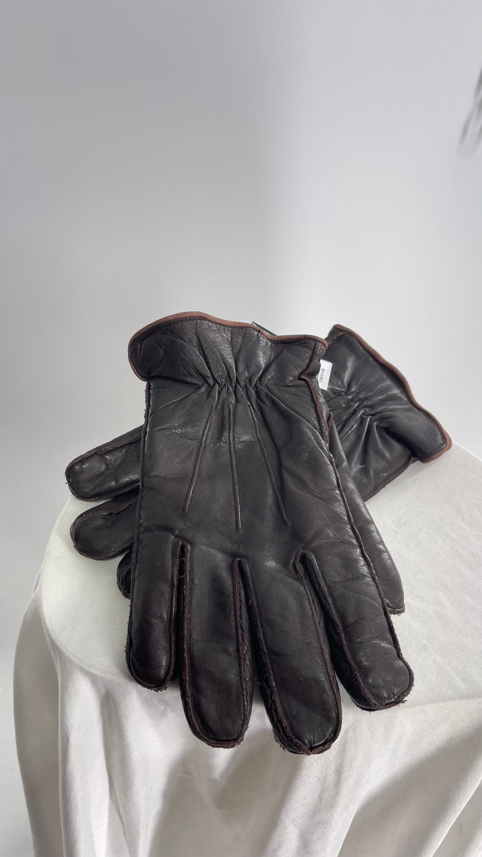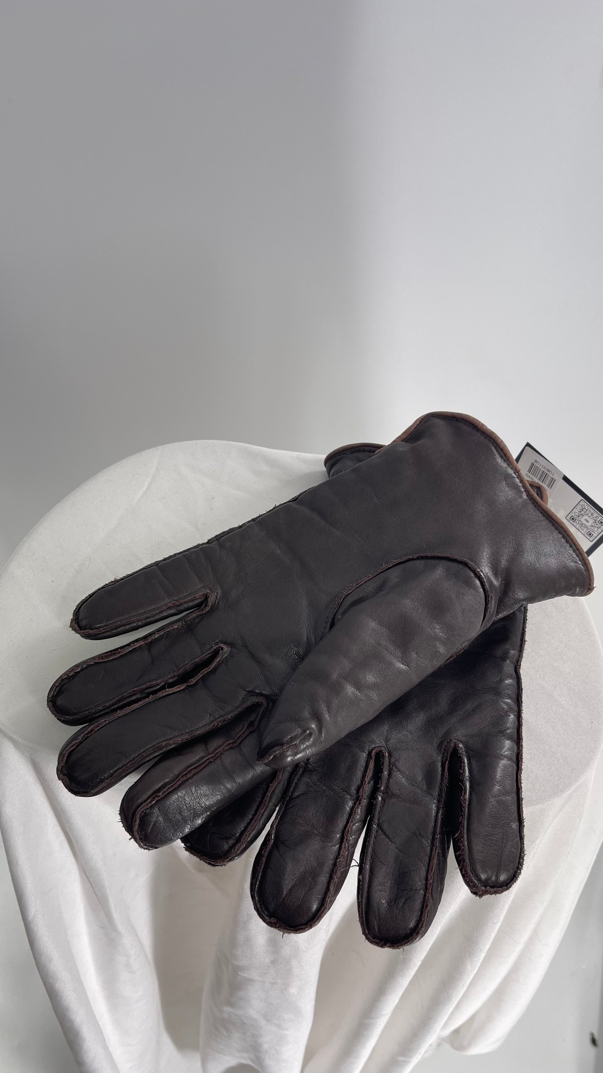 Vintage Eddie Bauer Brown Leather Lined Gloves (Medium)