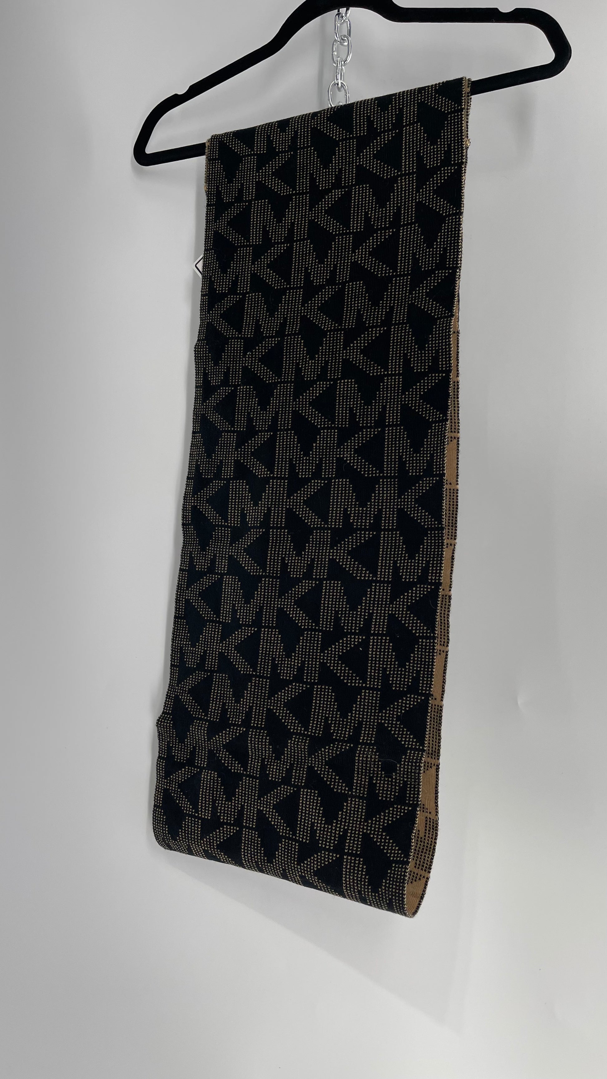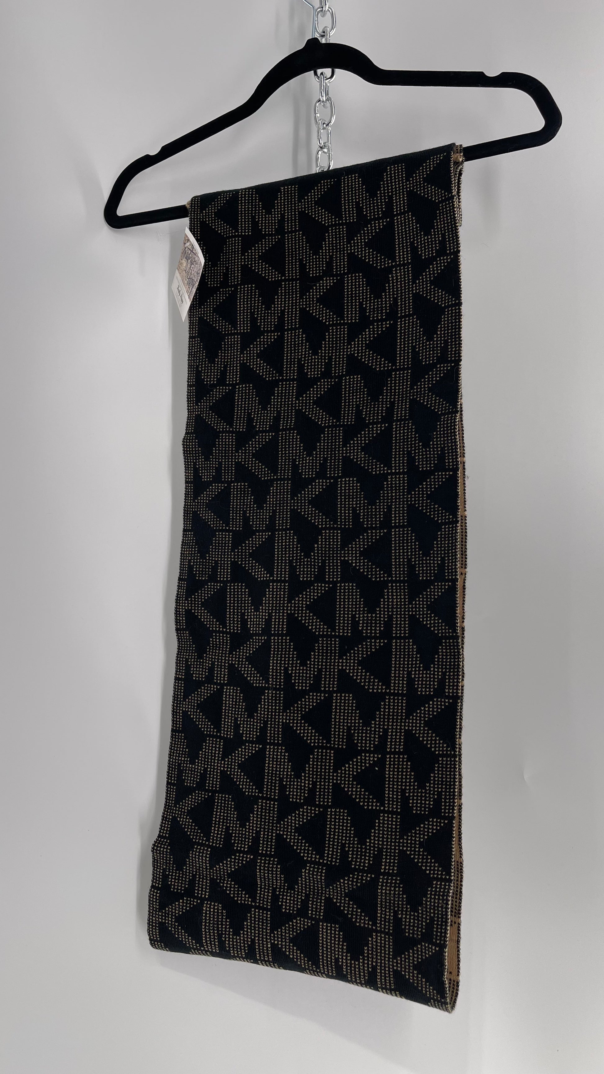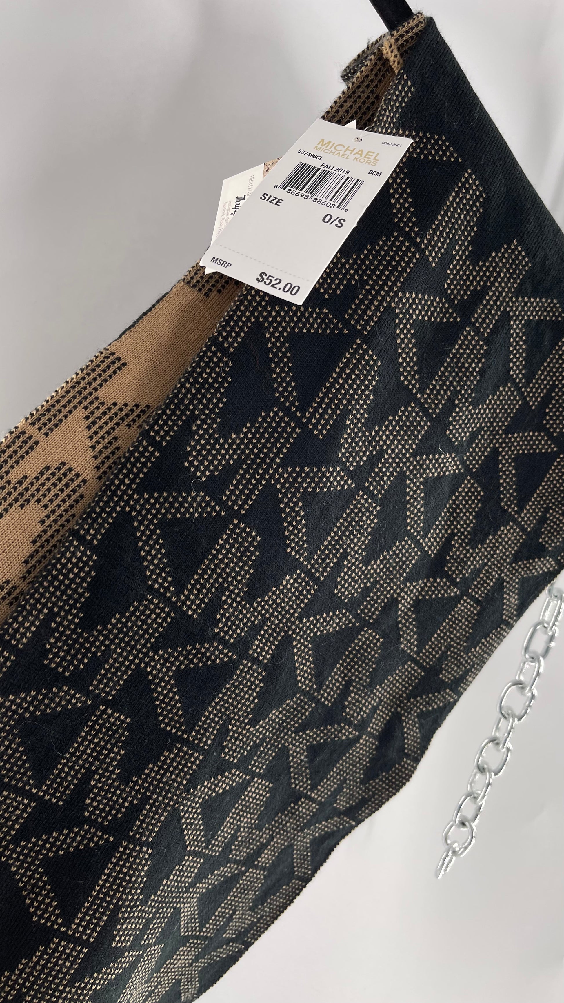 Michael Kors Black and Brown Monogram Logo Infinity Scarf with Tags Attached
