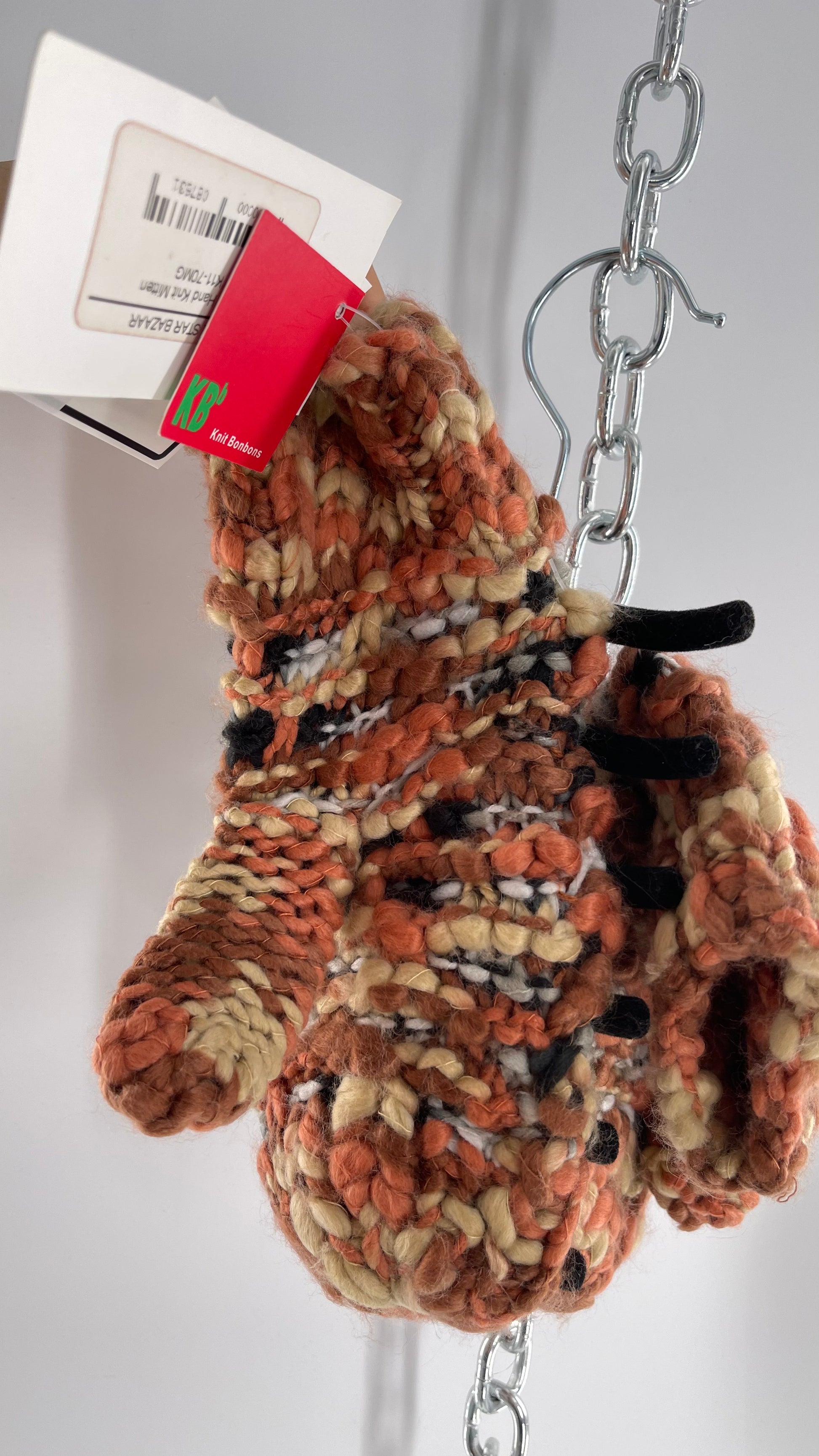Knit Bonbons Handmade Mixed Yarn Orange Knit Mittens with Tags Attached