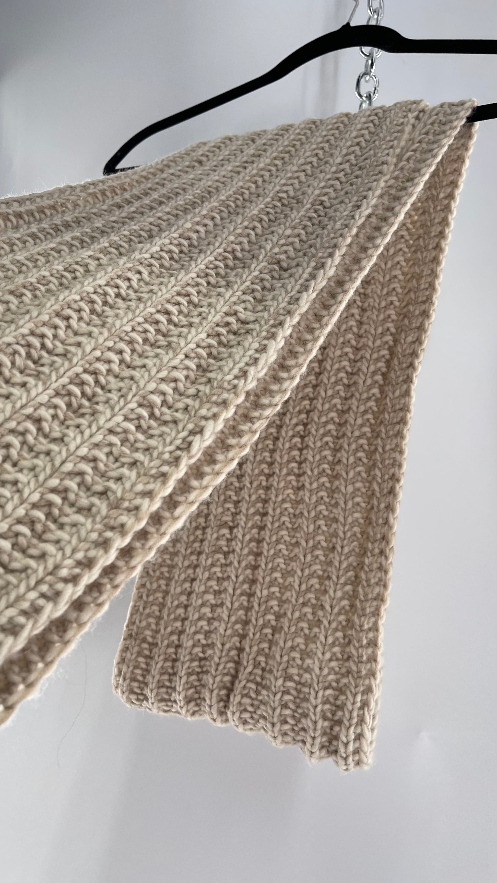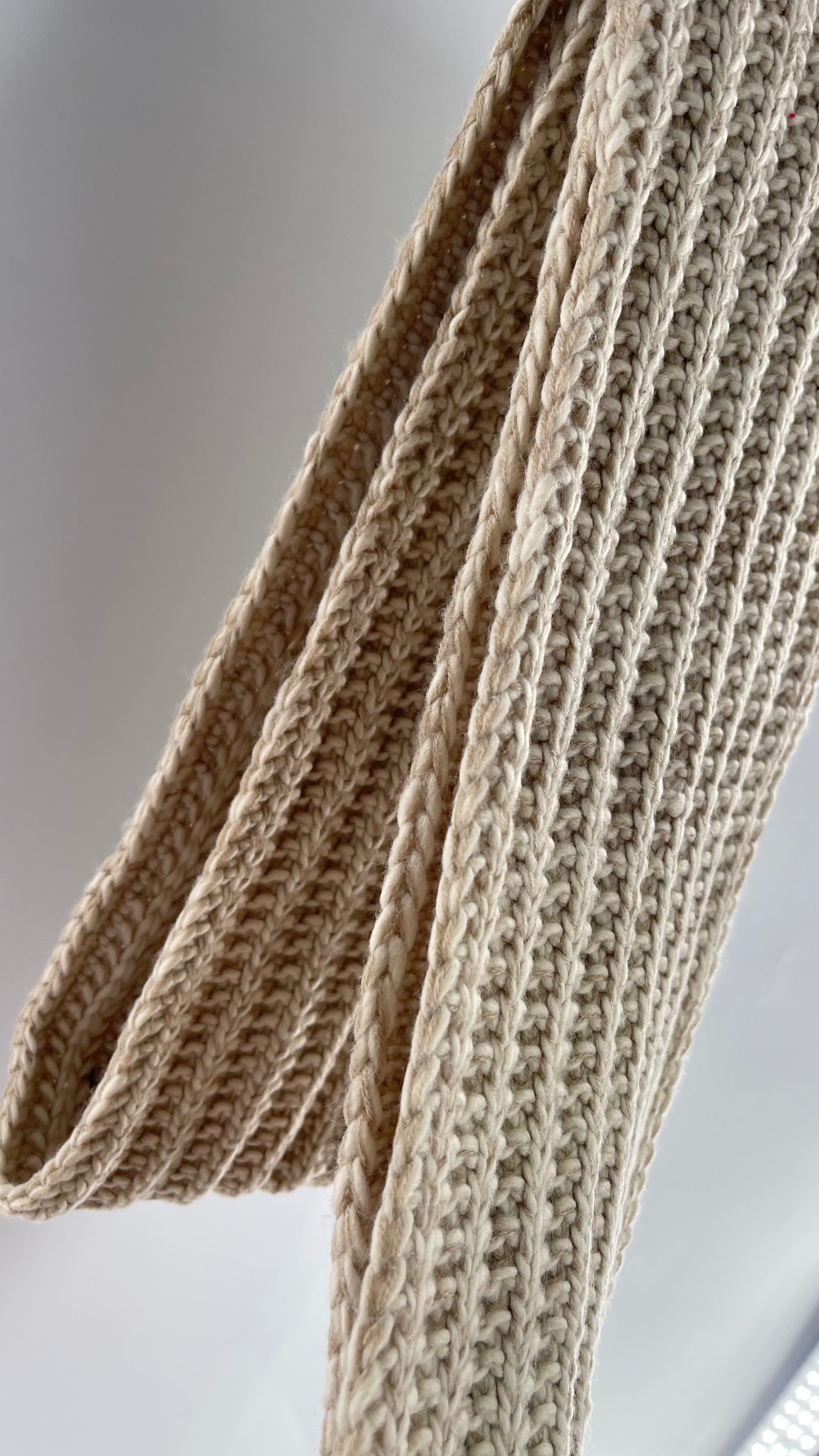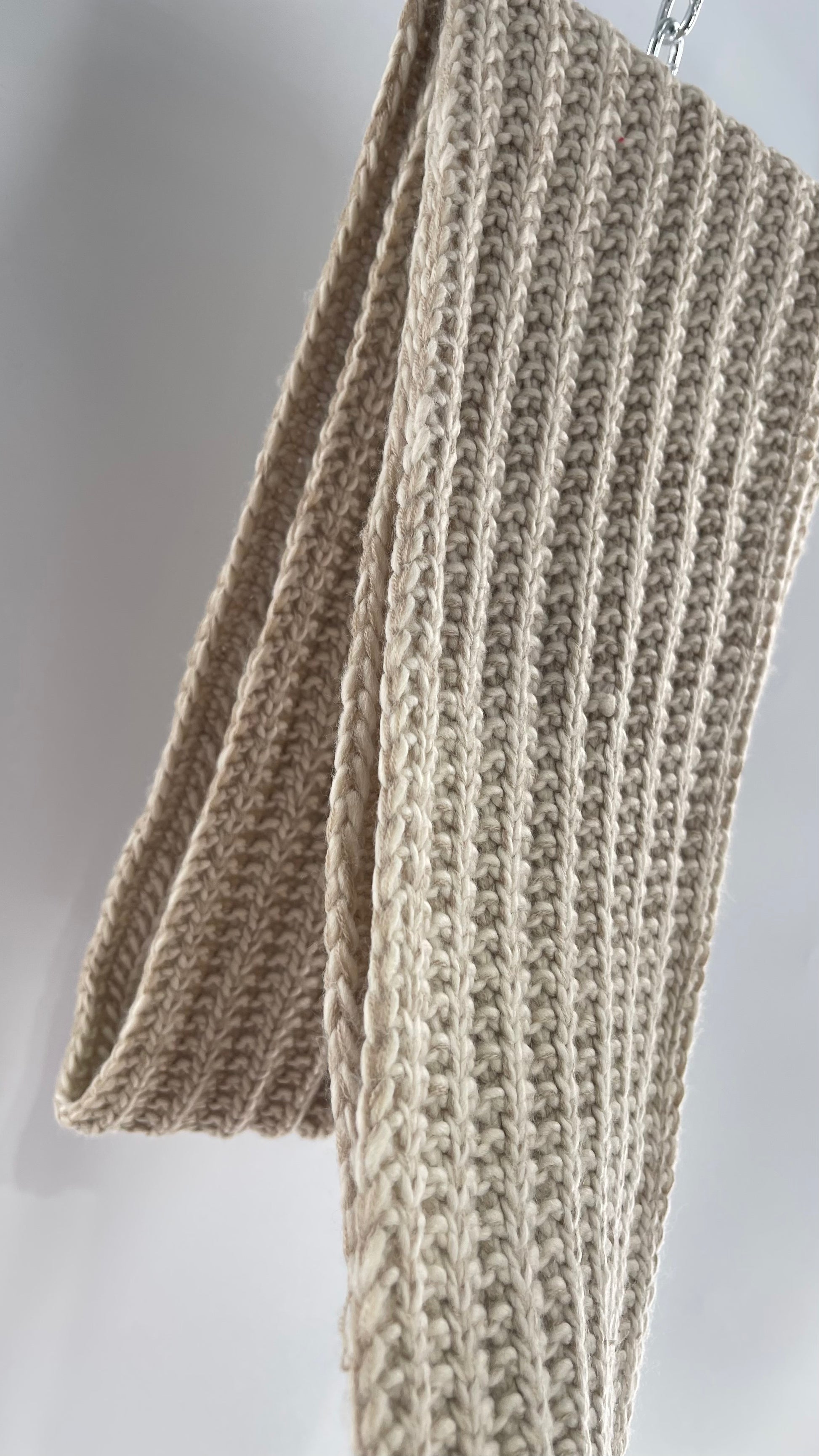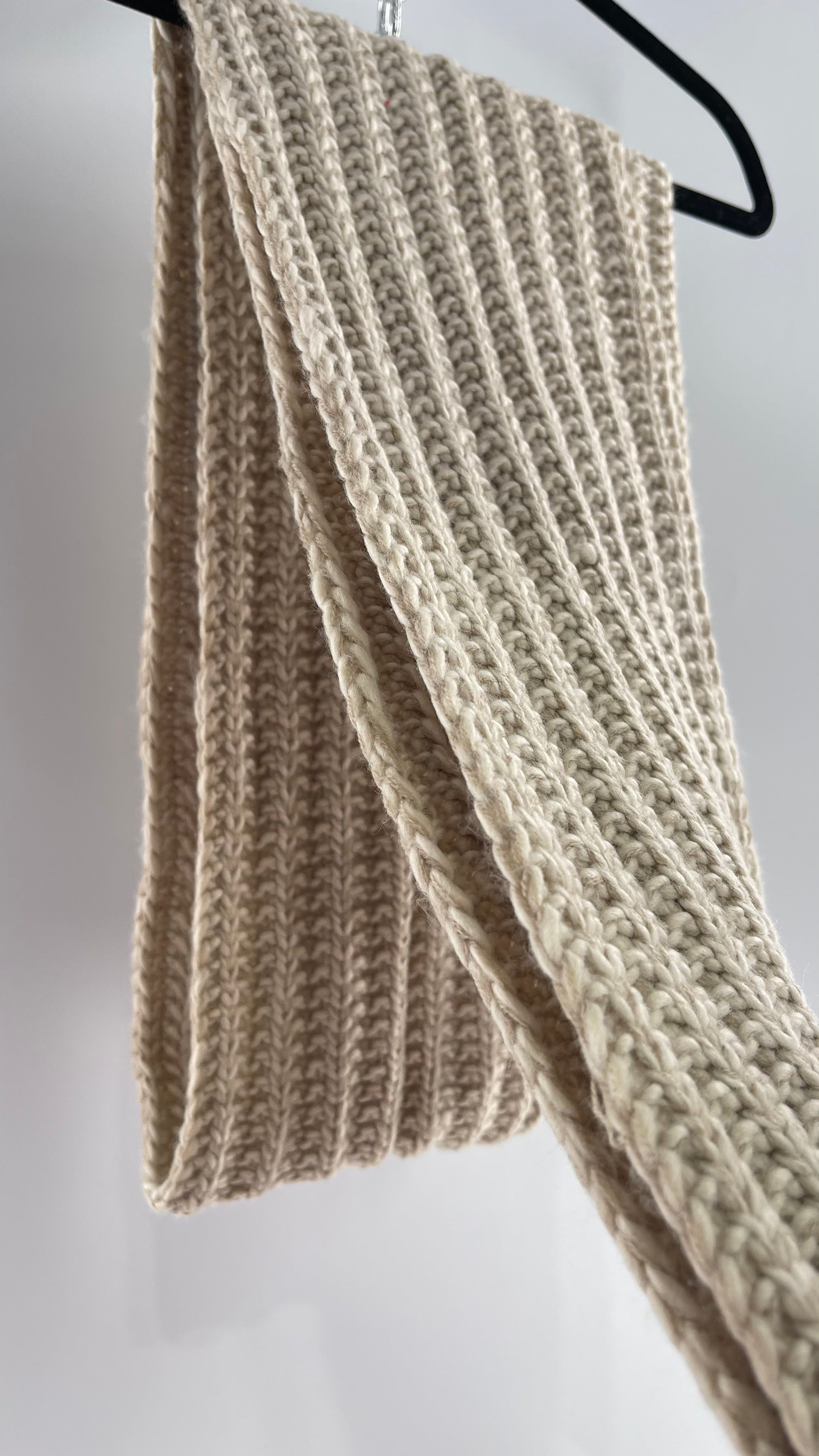 Beige Knit Skinny Scarf Ultra Long with Tassels