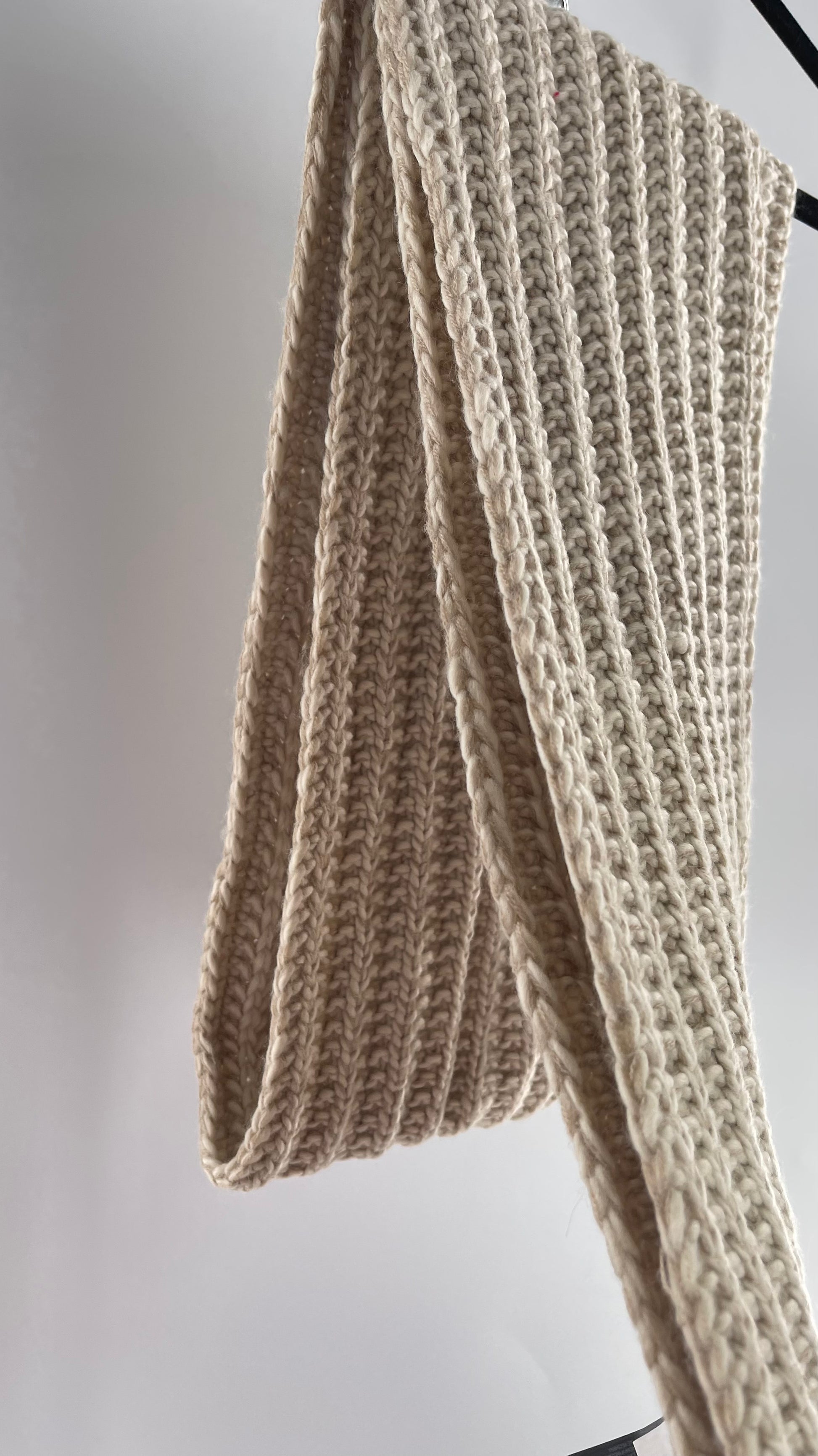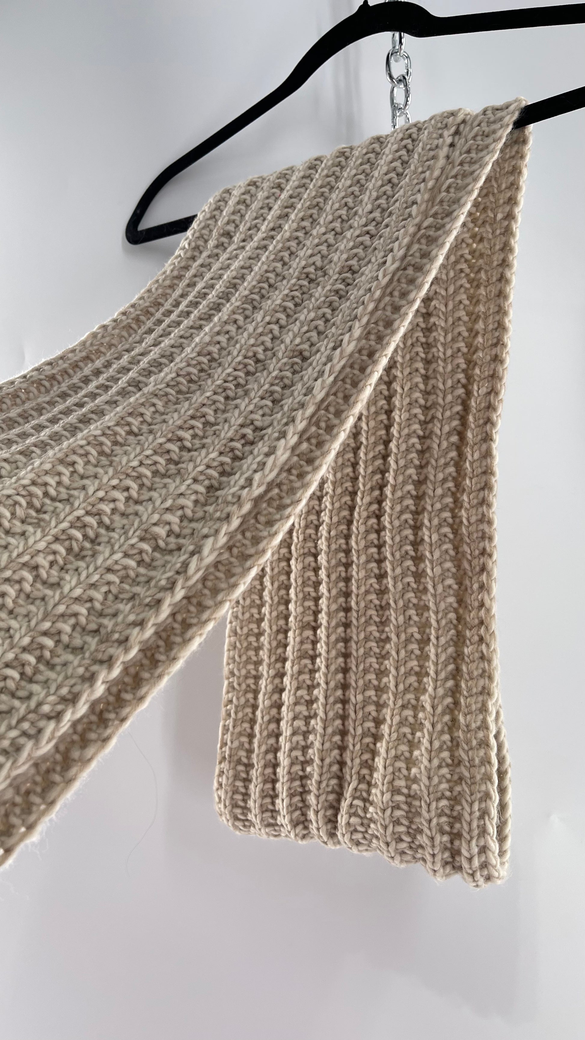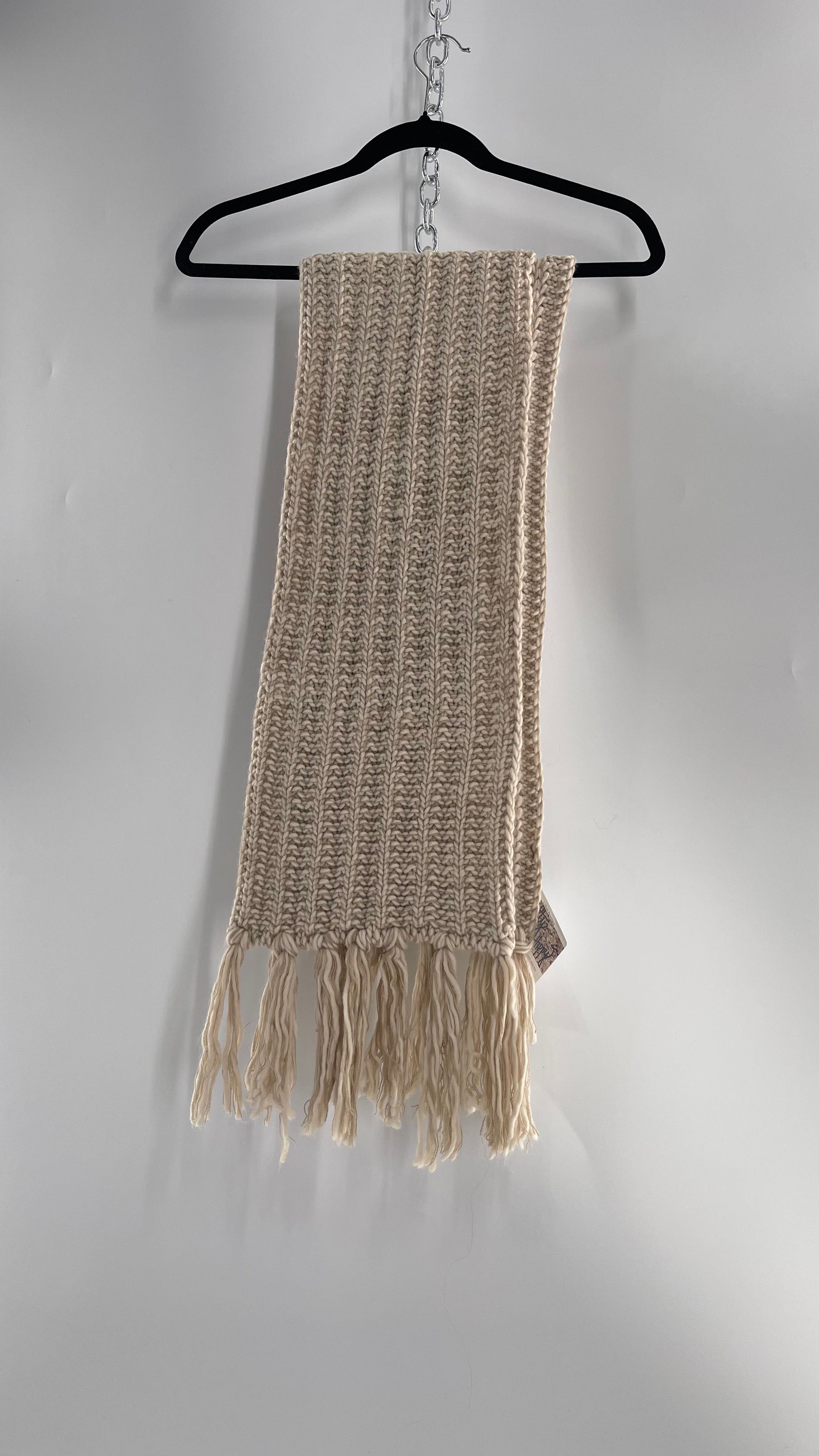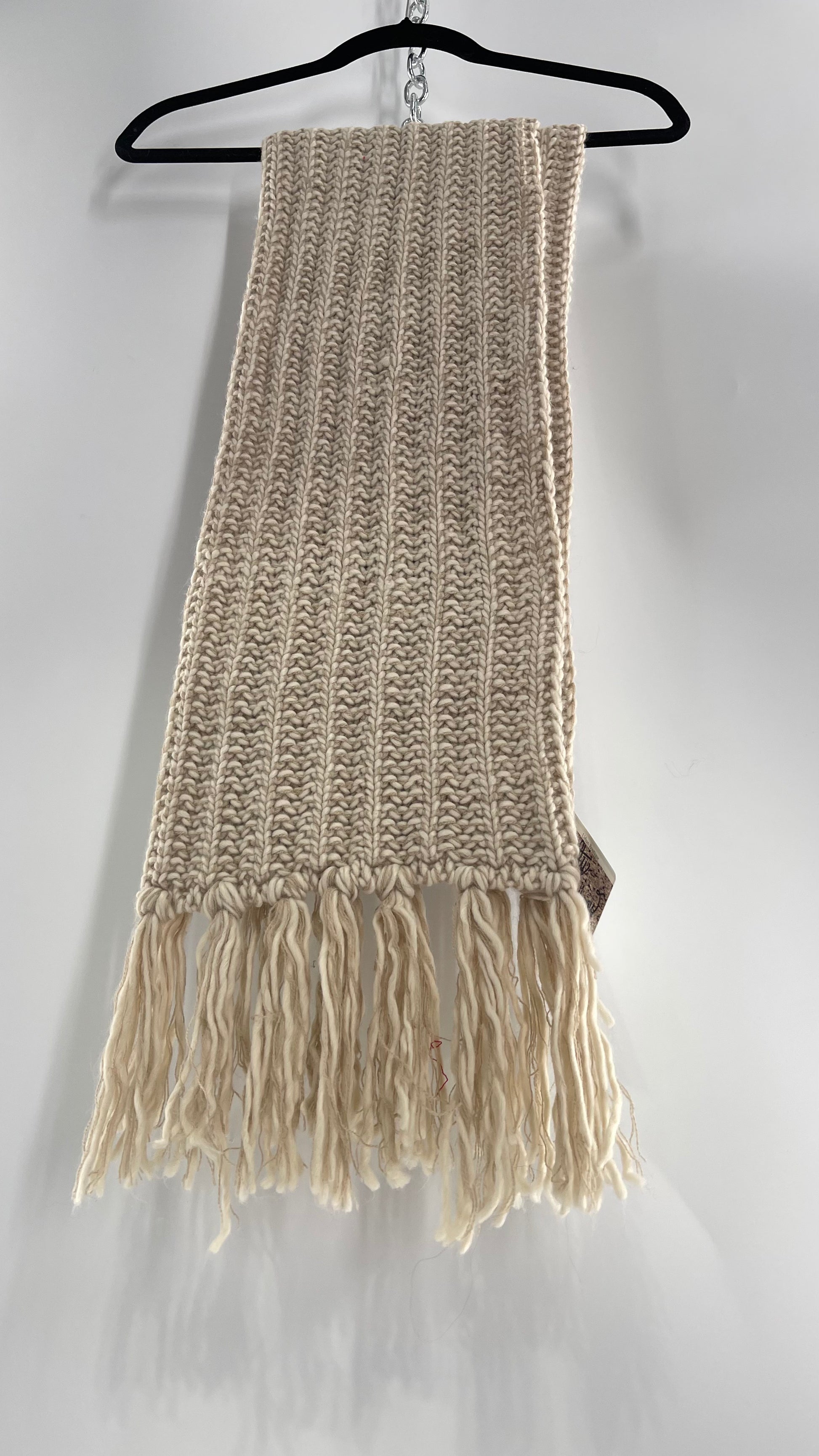 Beige Knit Skinny Scarf Ultra Long with Tassels