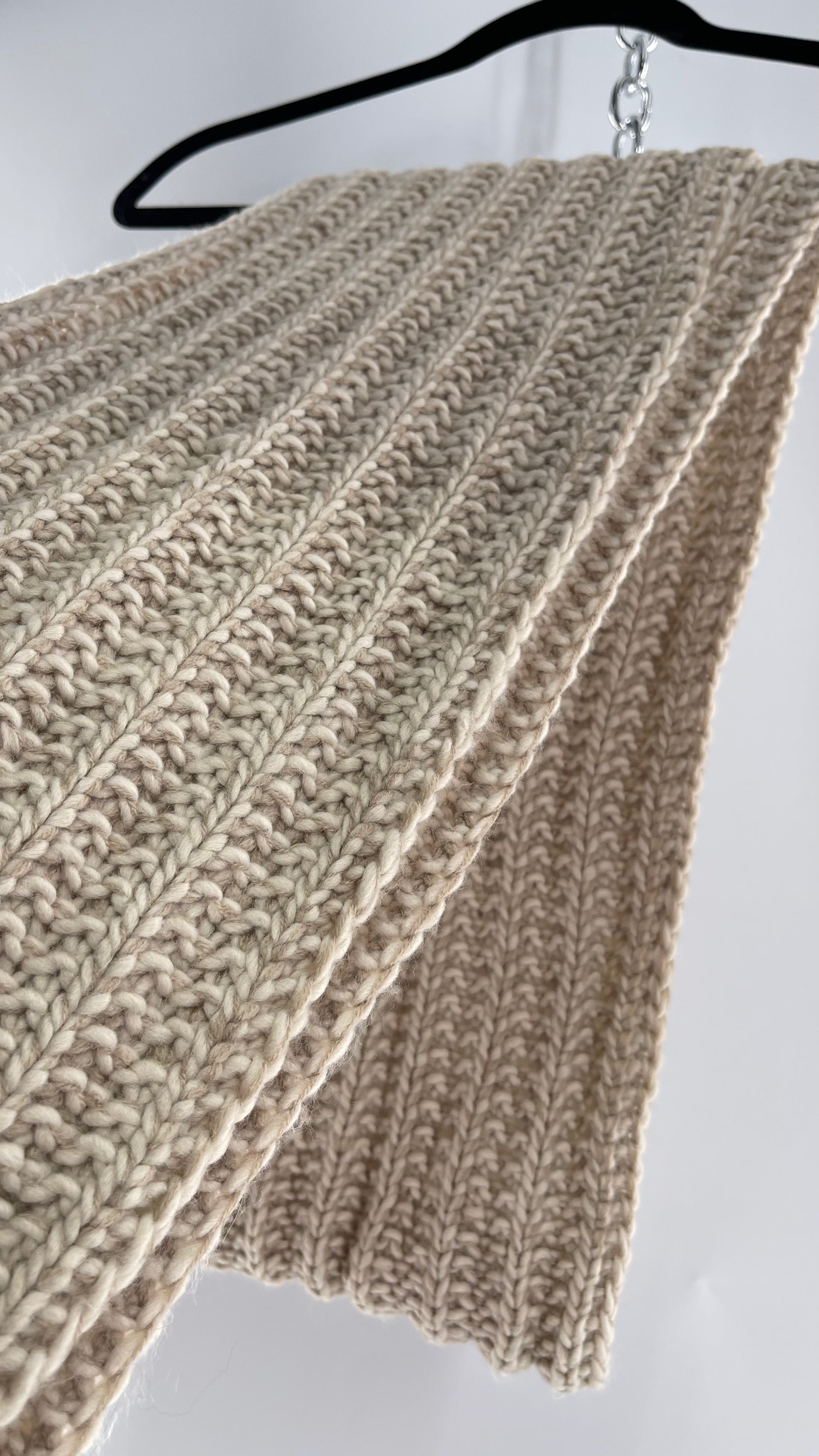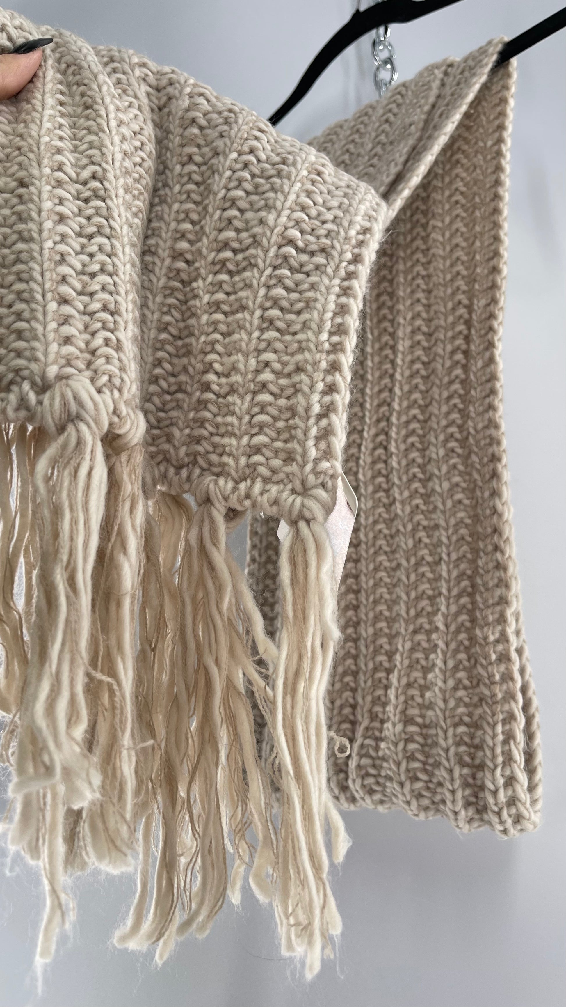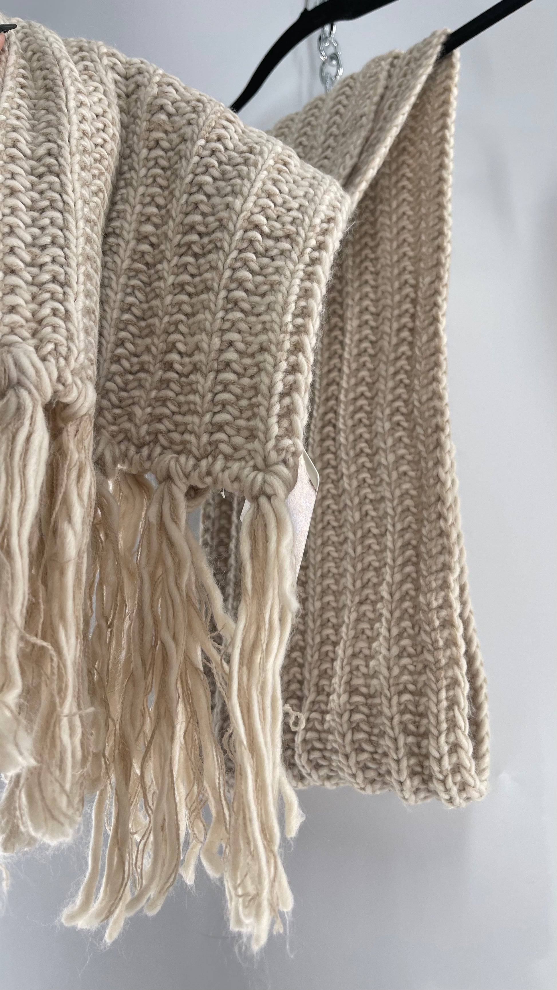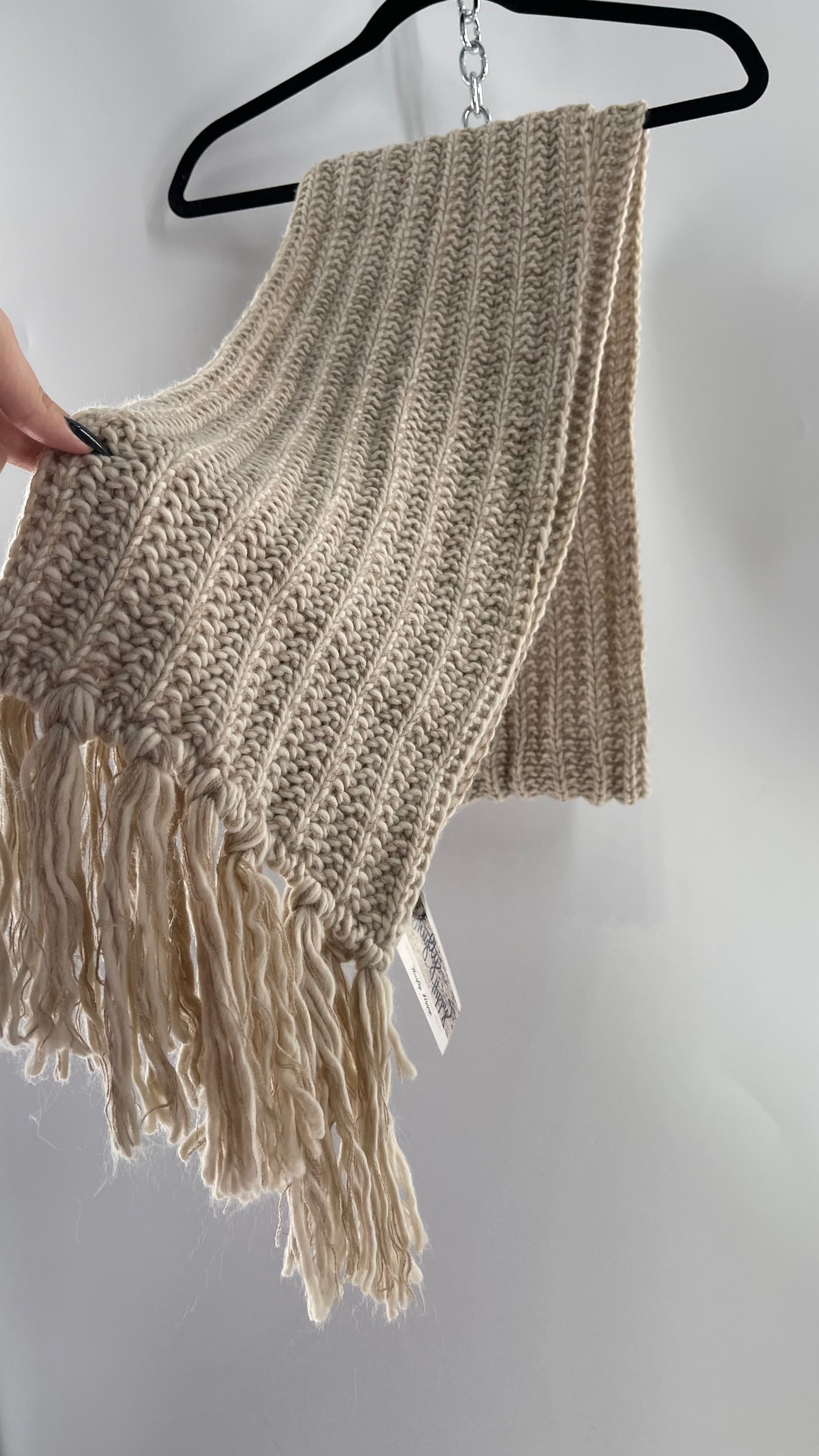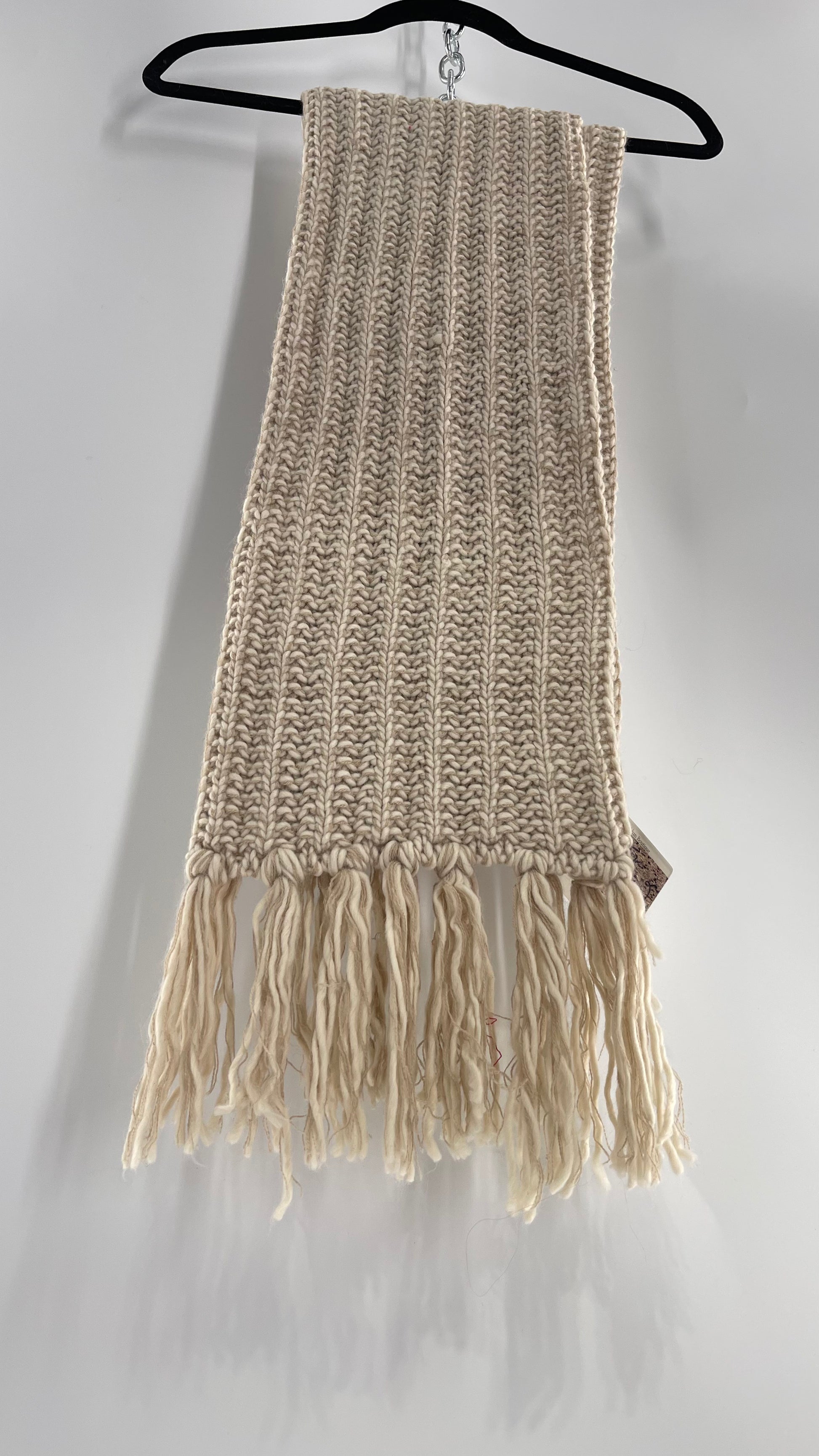 Beige Knit Skinny Scarf Ultra Long with Tassels |