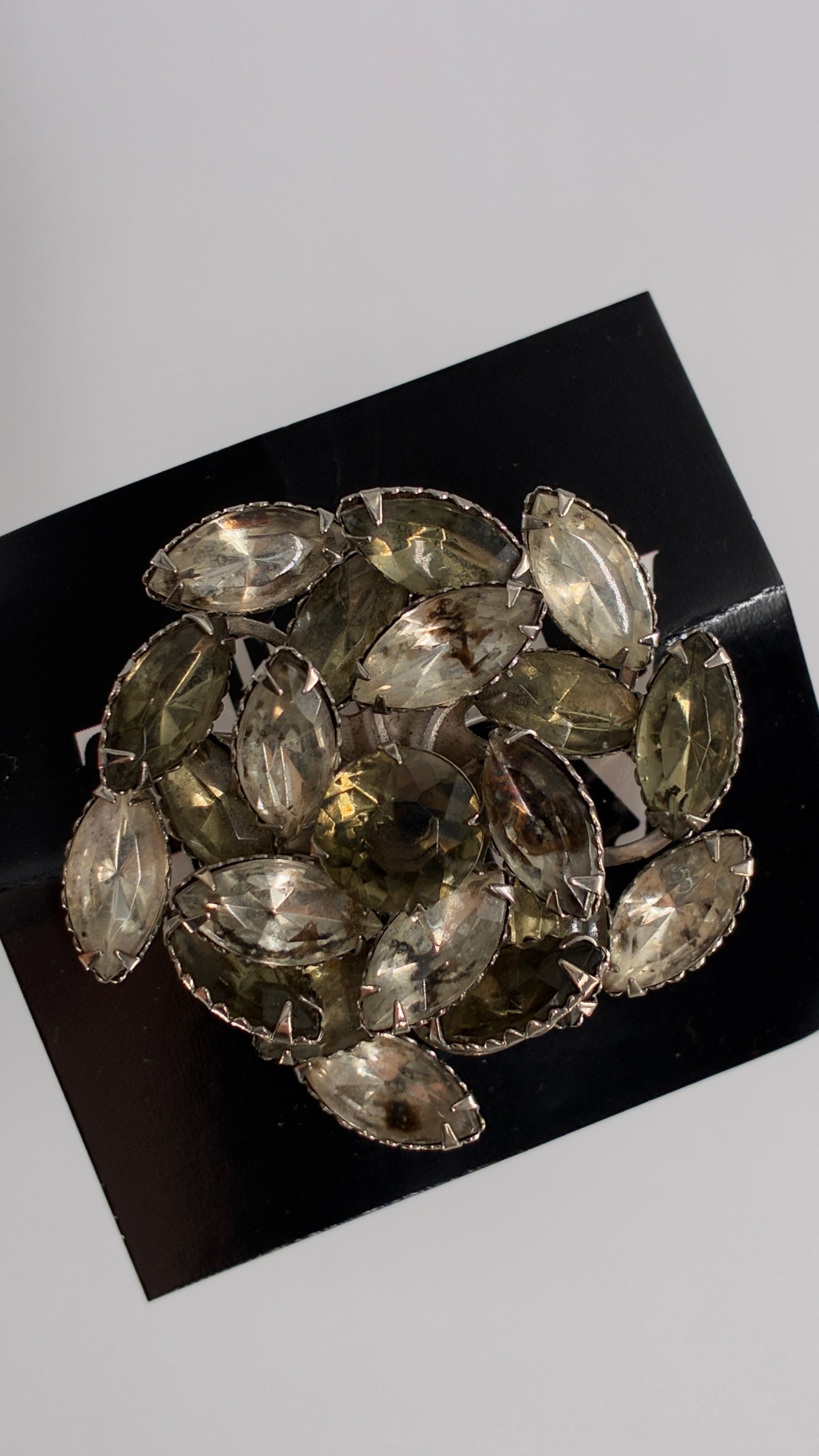 Vintage Smoky Grey Tones Gemstone Brooch Pin