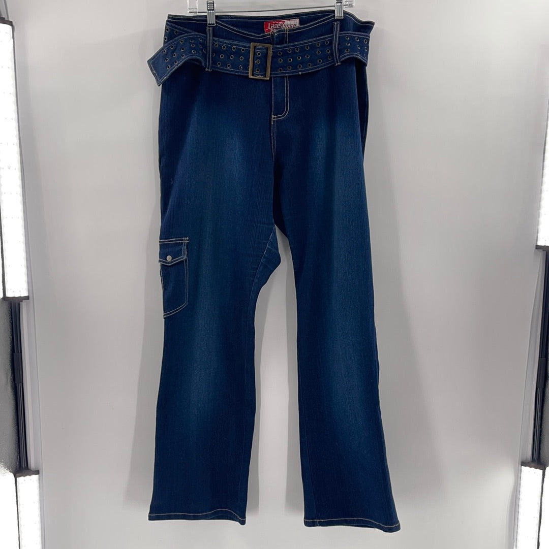 Vintage 90s Lazer Jeans> dark wash, flare leg, grommet belt
