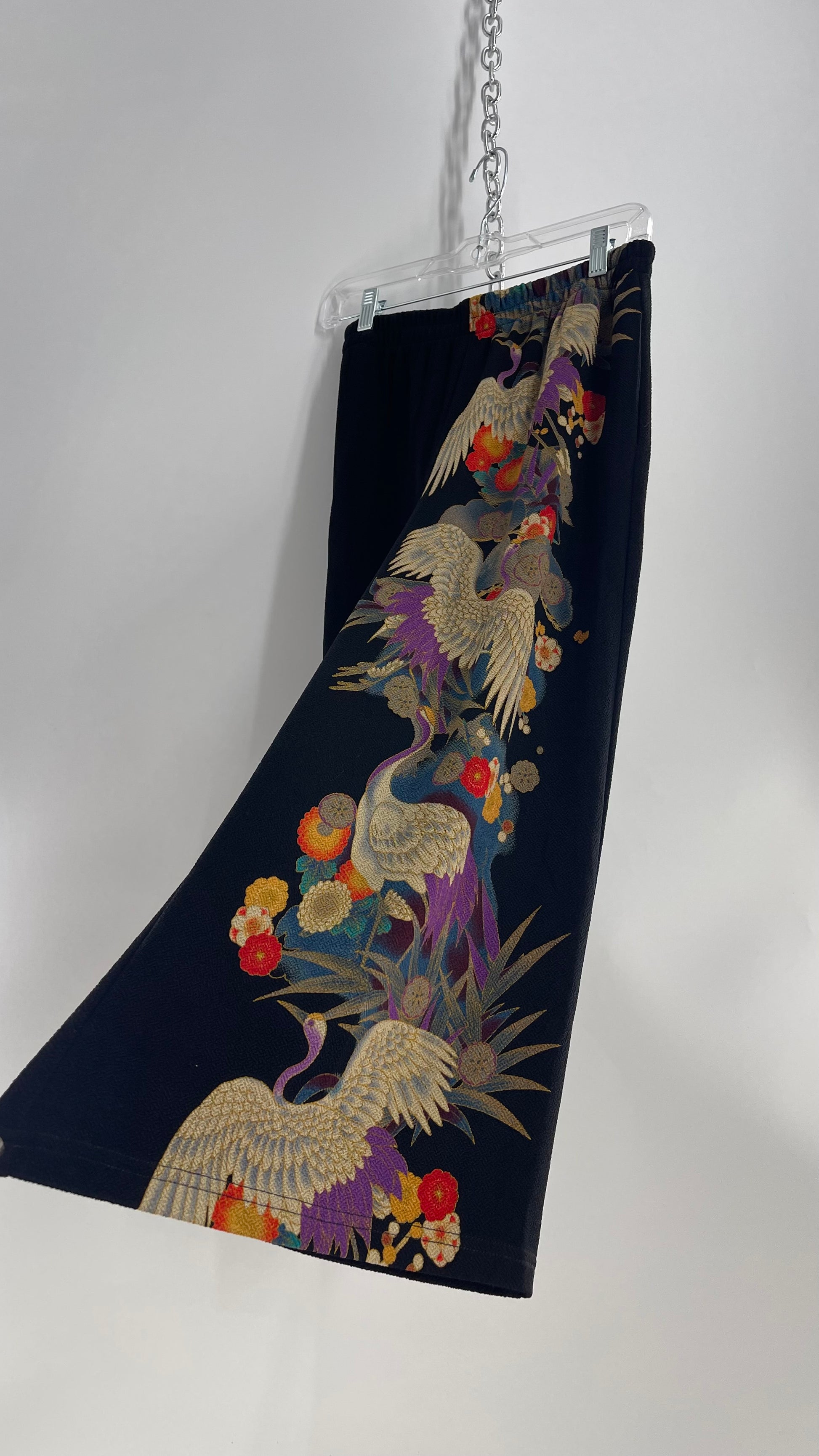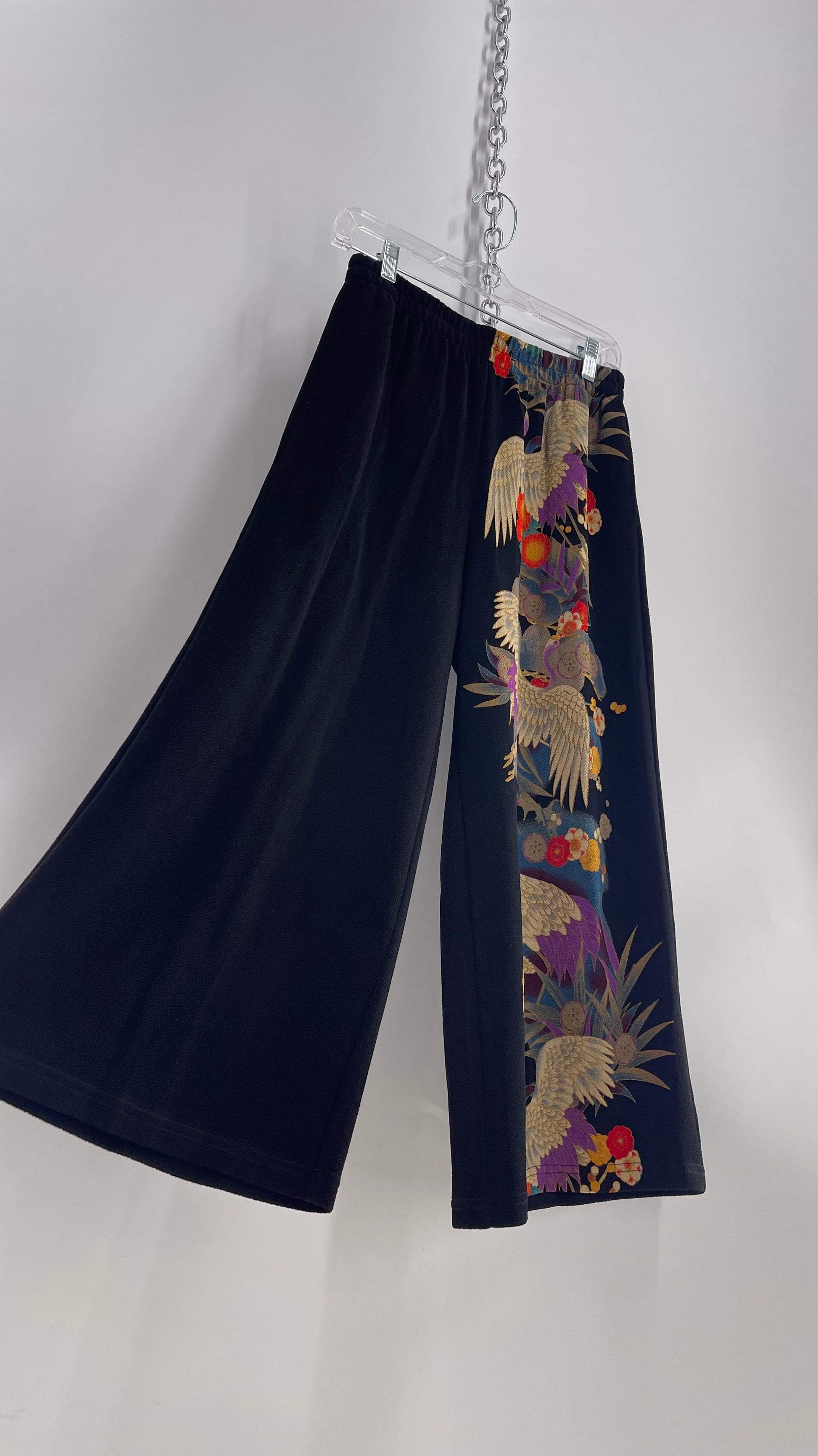 Vintage Moonlight Black Wide Legs with Asian Style Graphic (Small)