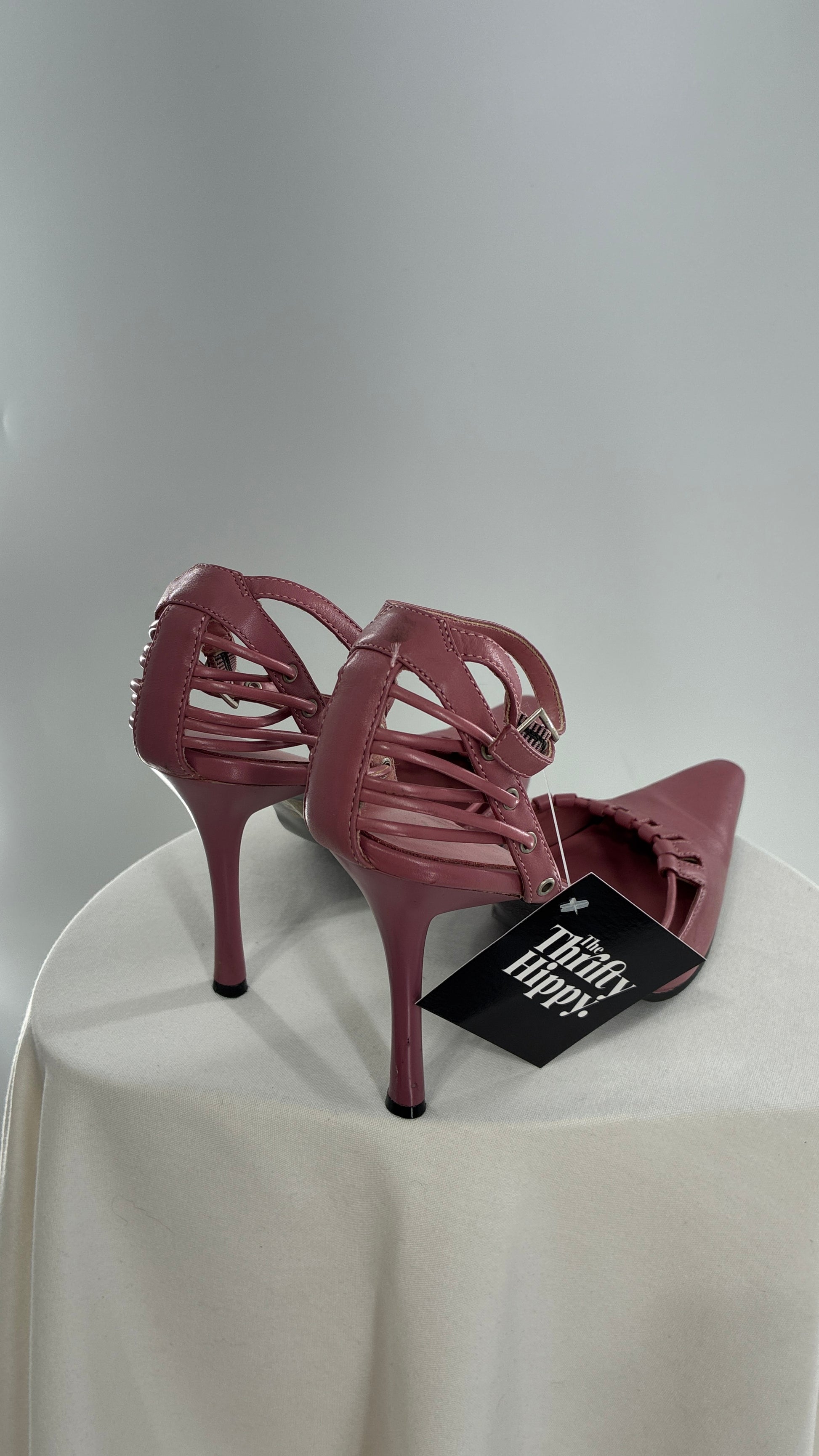 Vintage WILD PAIR Pink Pointed Toe Heels with Strappy Grommet Details (6.5)