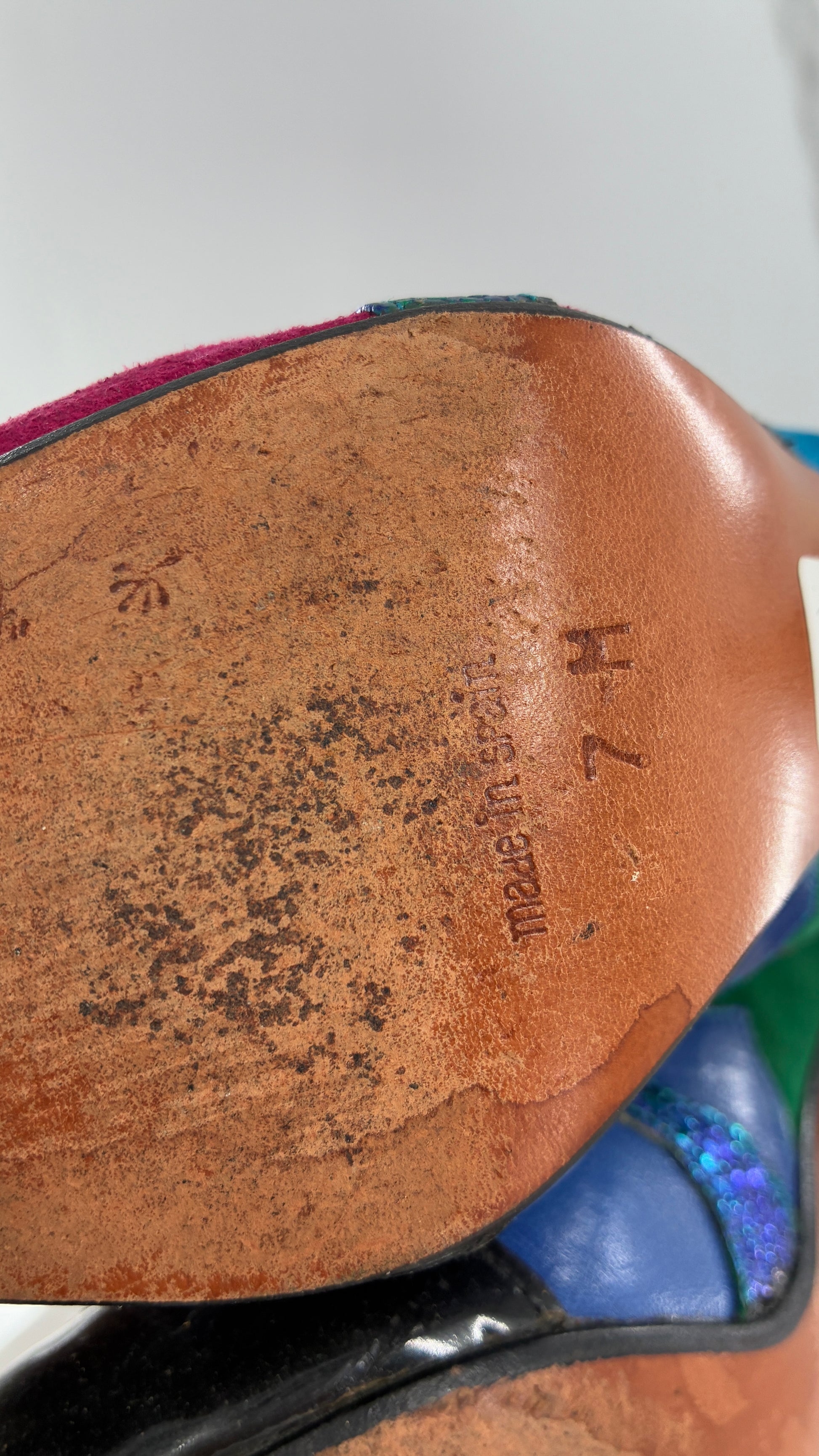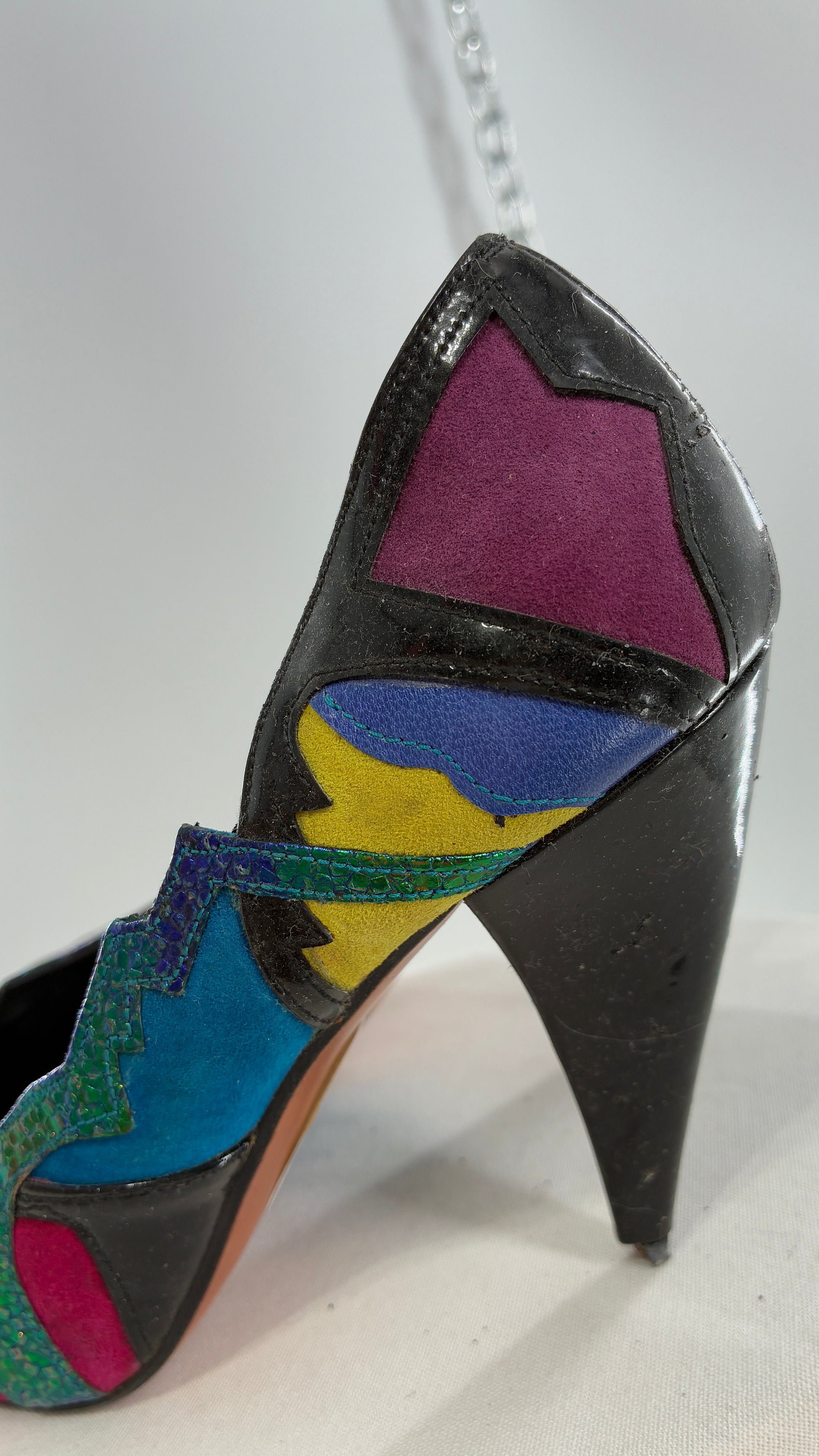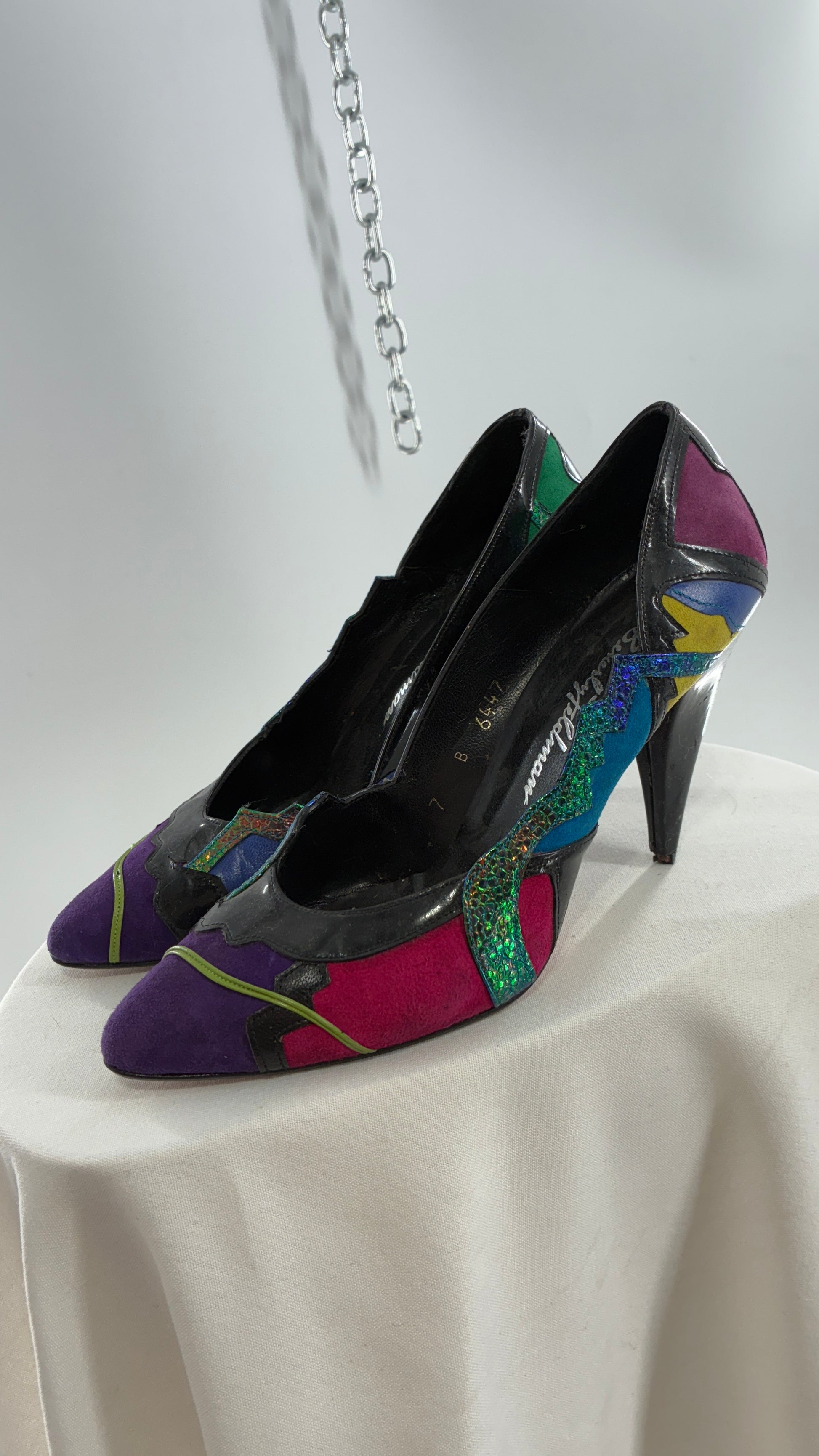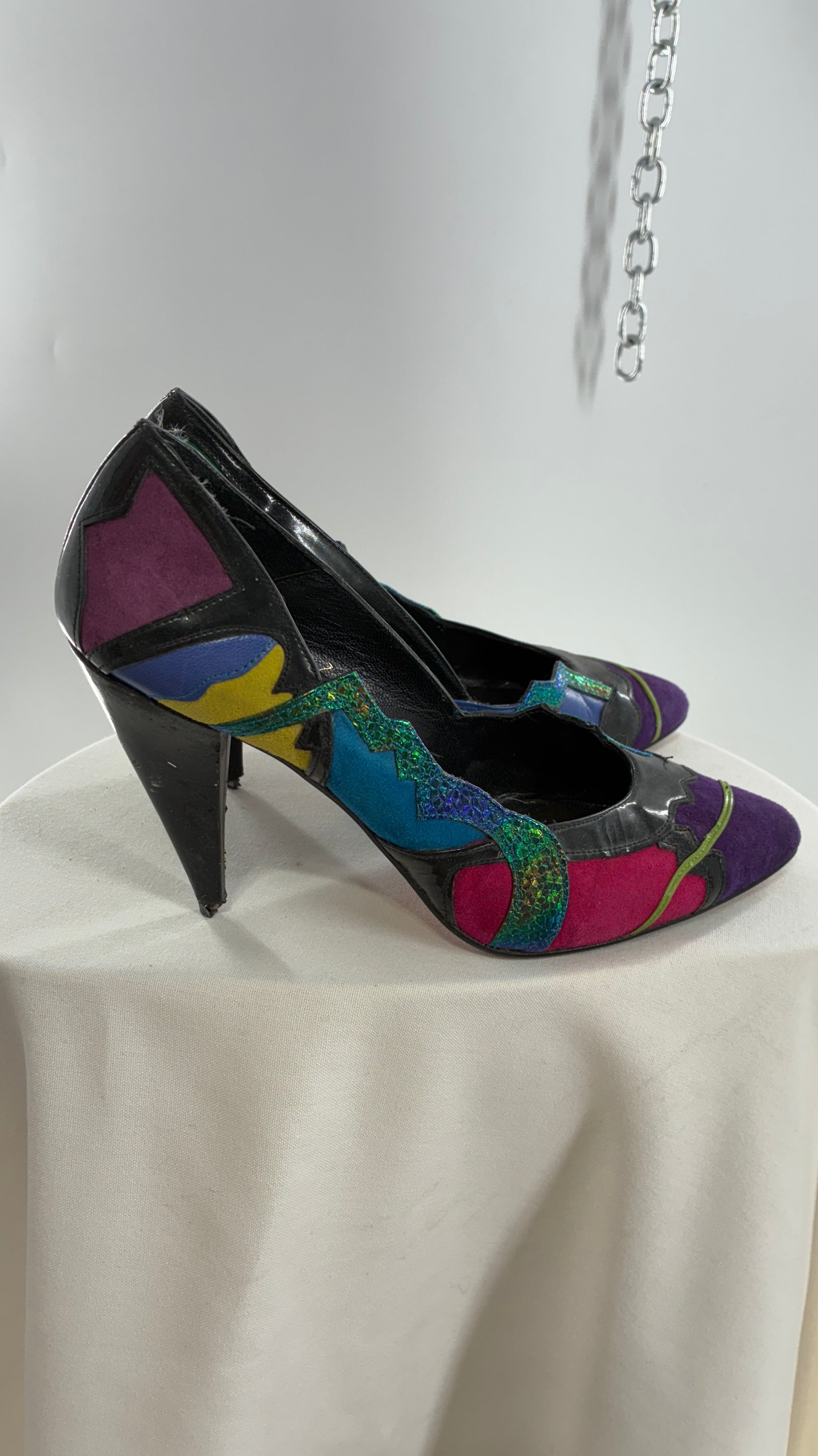 Vintage Beverly Feldman 1980s Retro, Abstract, Color Block and Iridescent Curved Heels (7)