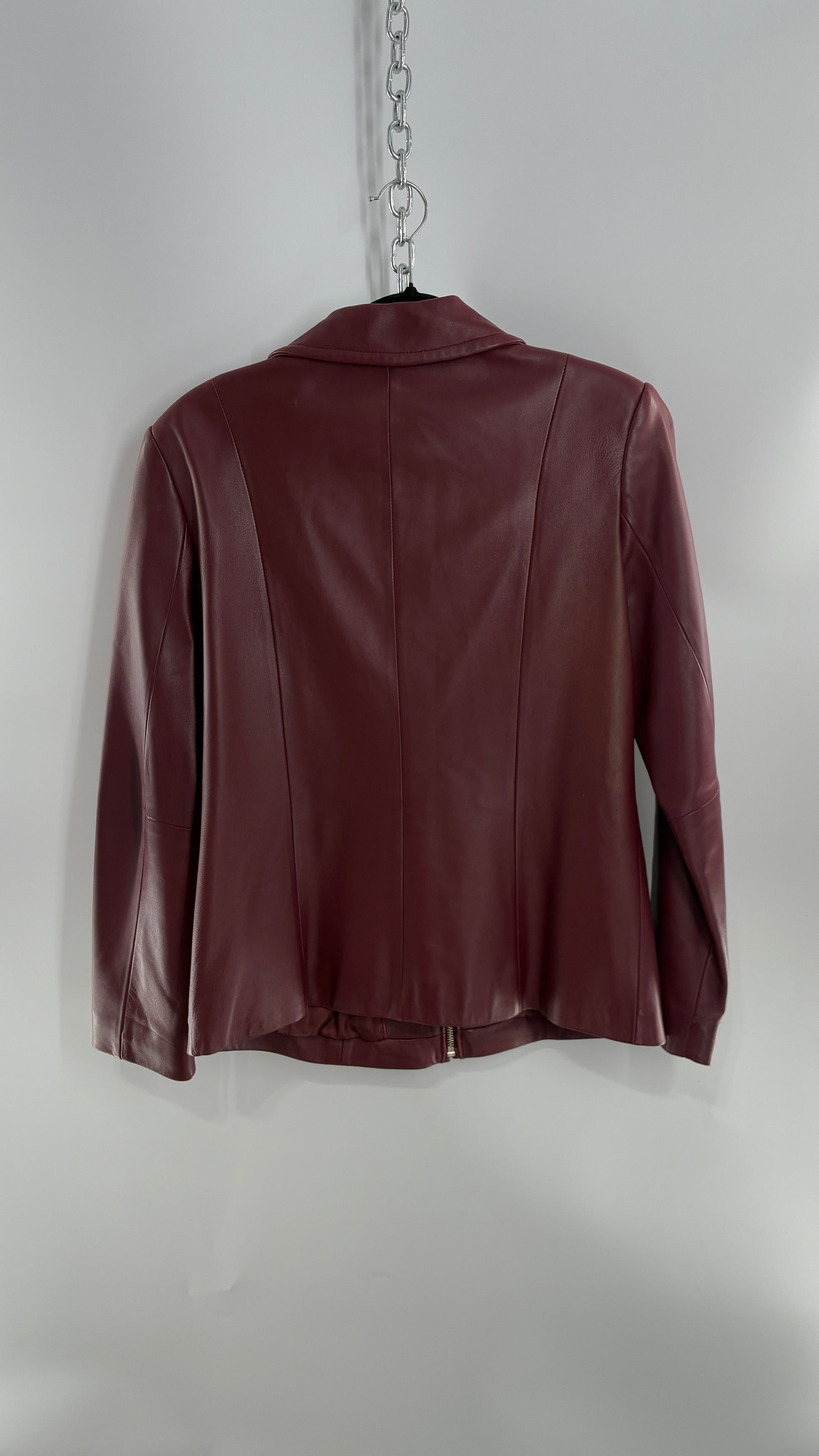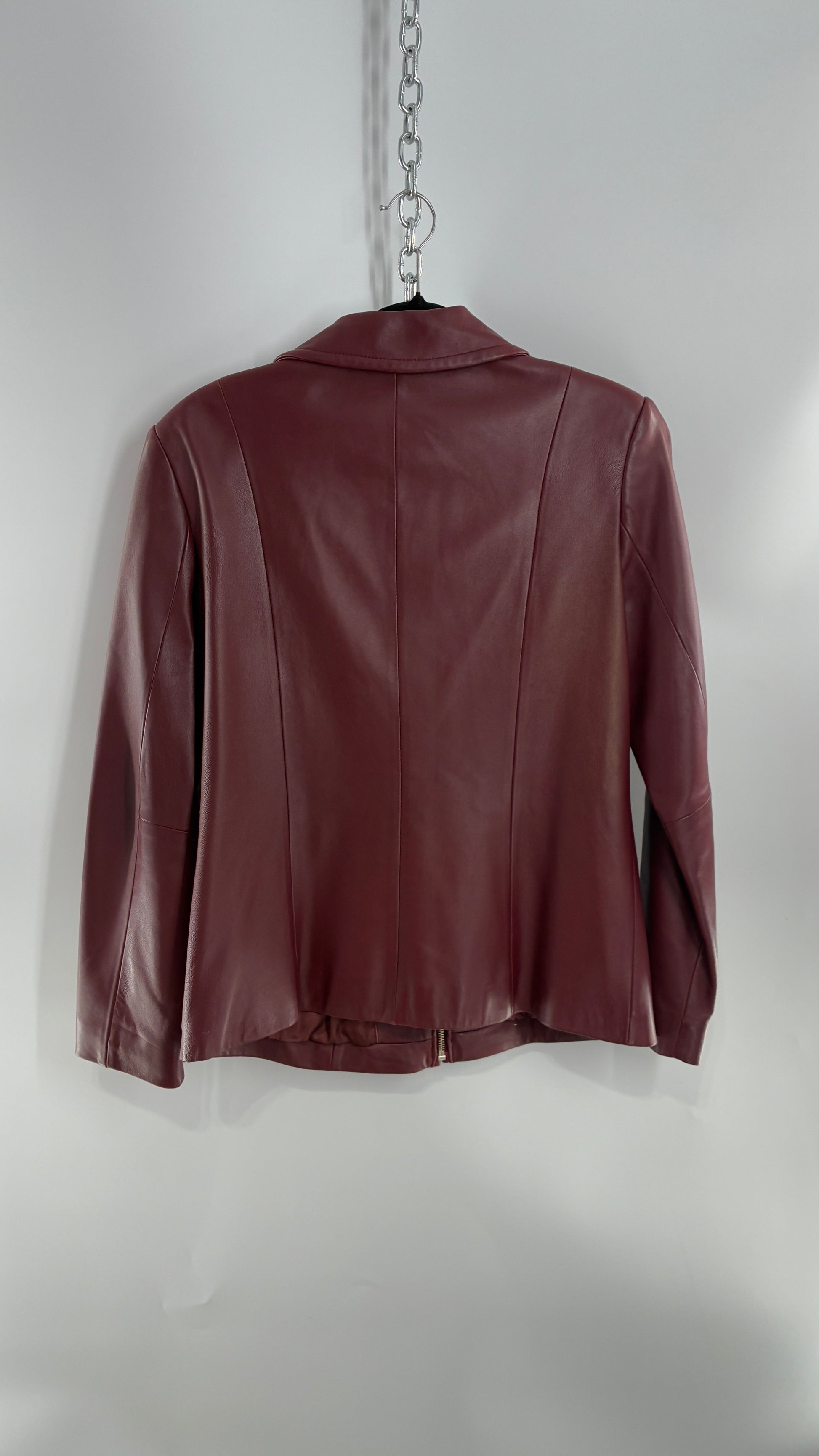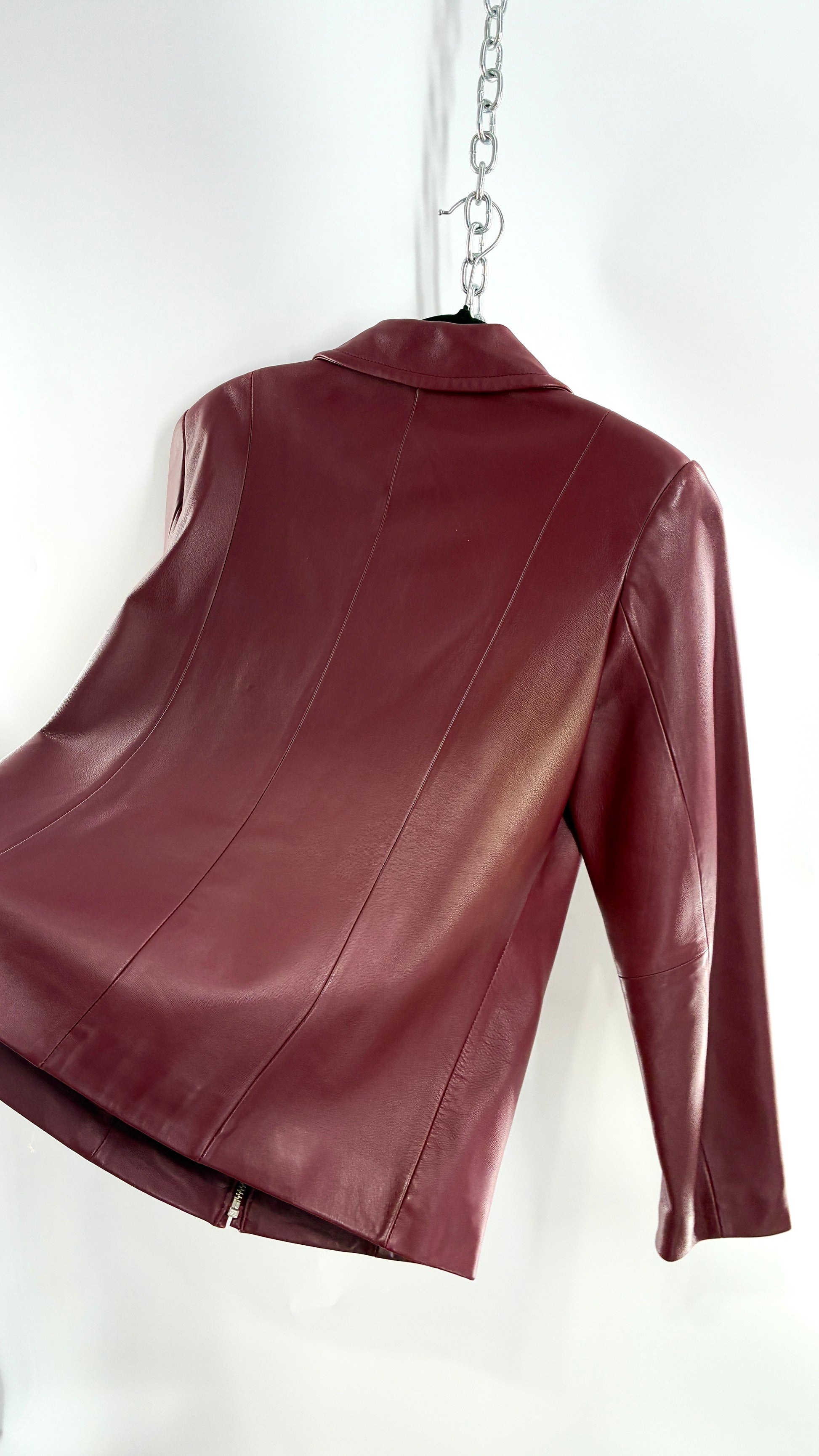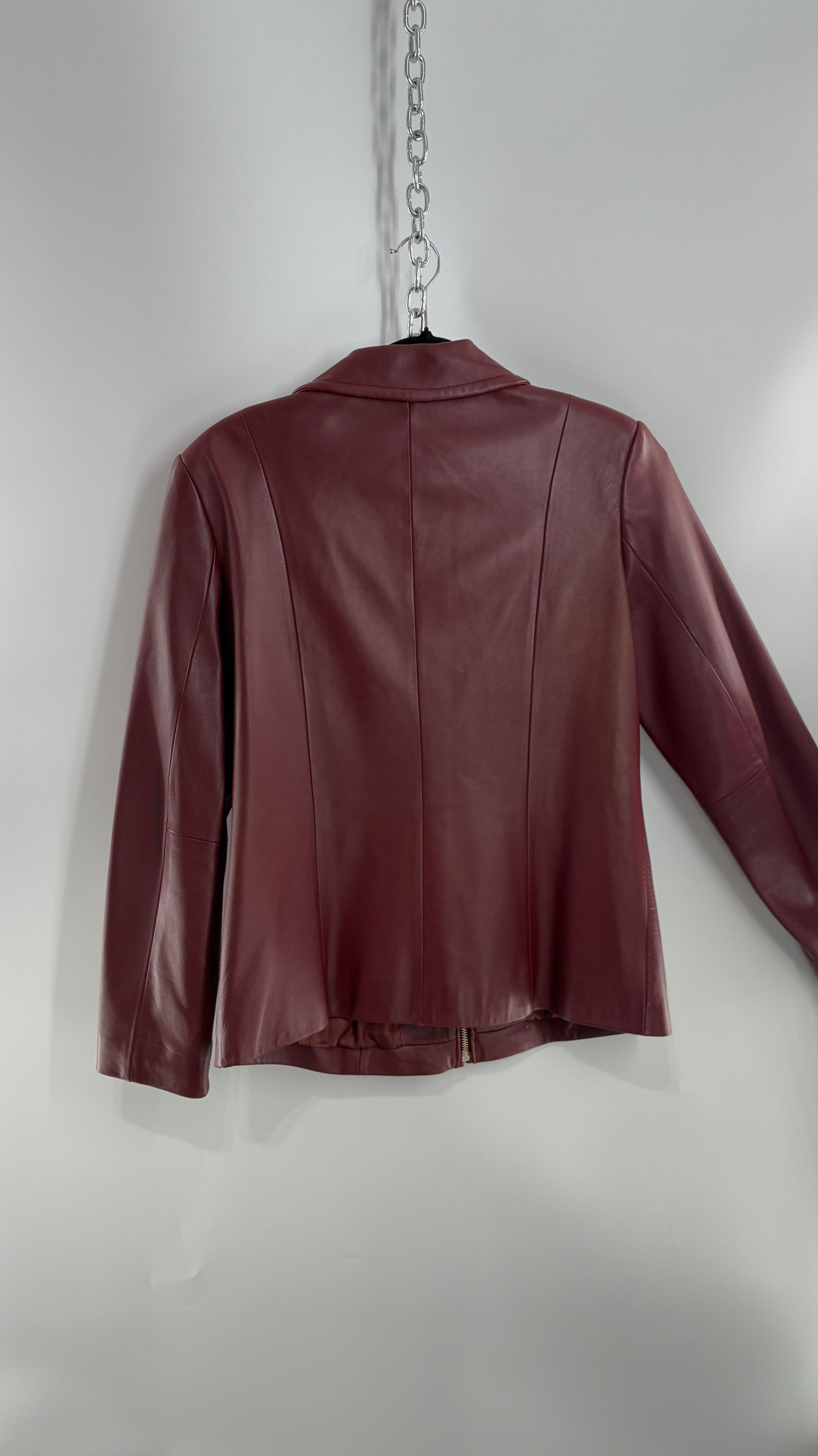 Vintage Lord & Taylor Burgundy Maroon Leather Zip Up Jacket (Small)