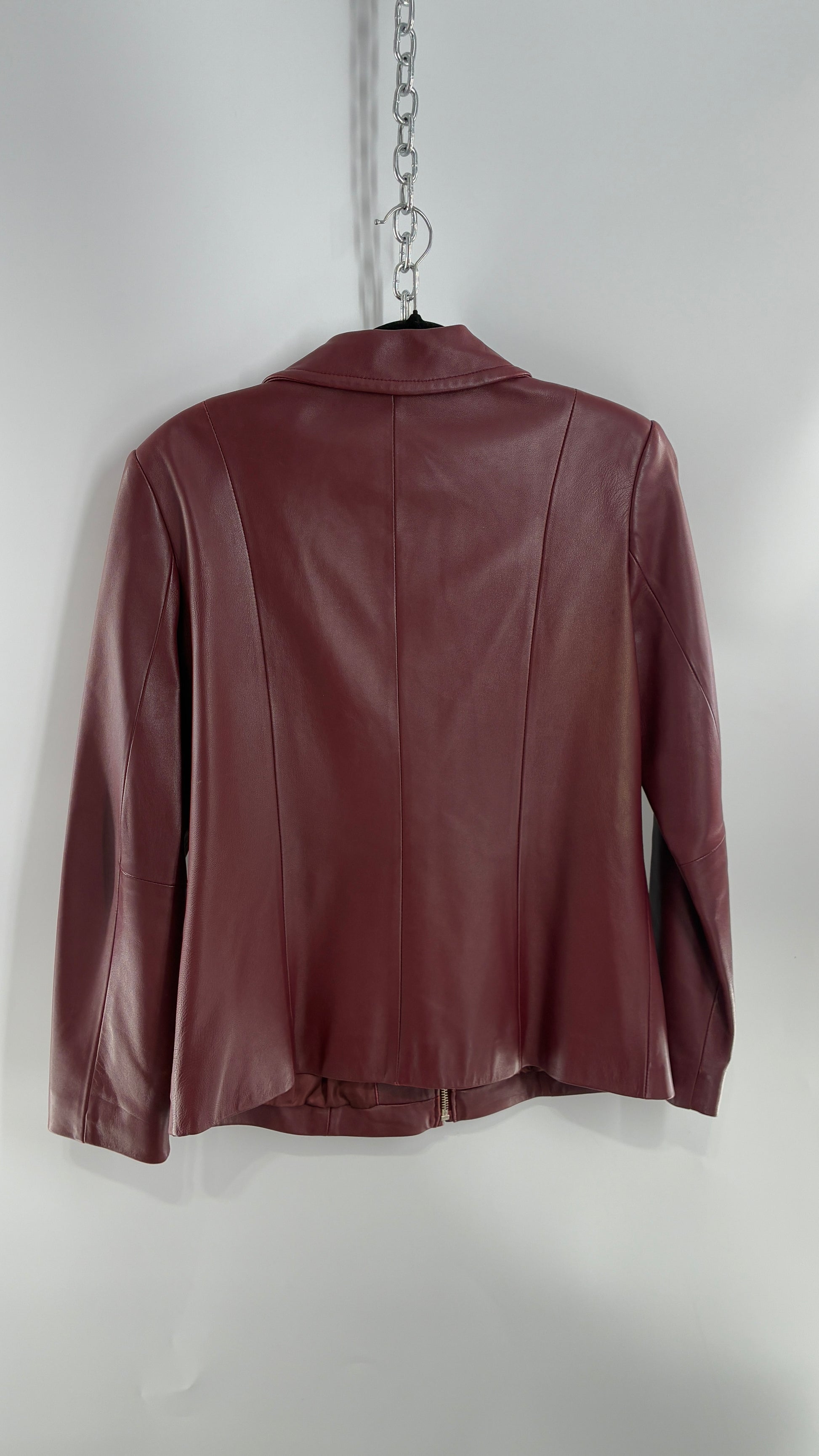 Vintage Lord & Taylor Burgundy Maroon Leather Zip Up Jacket