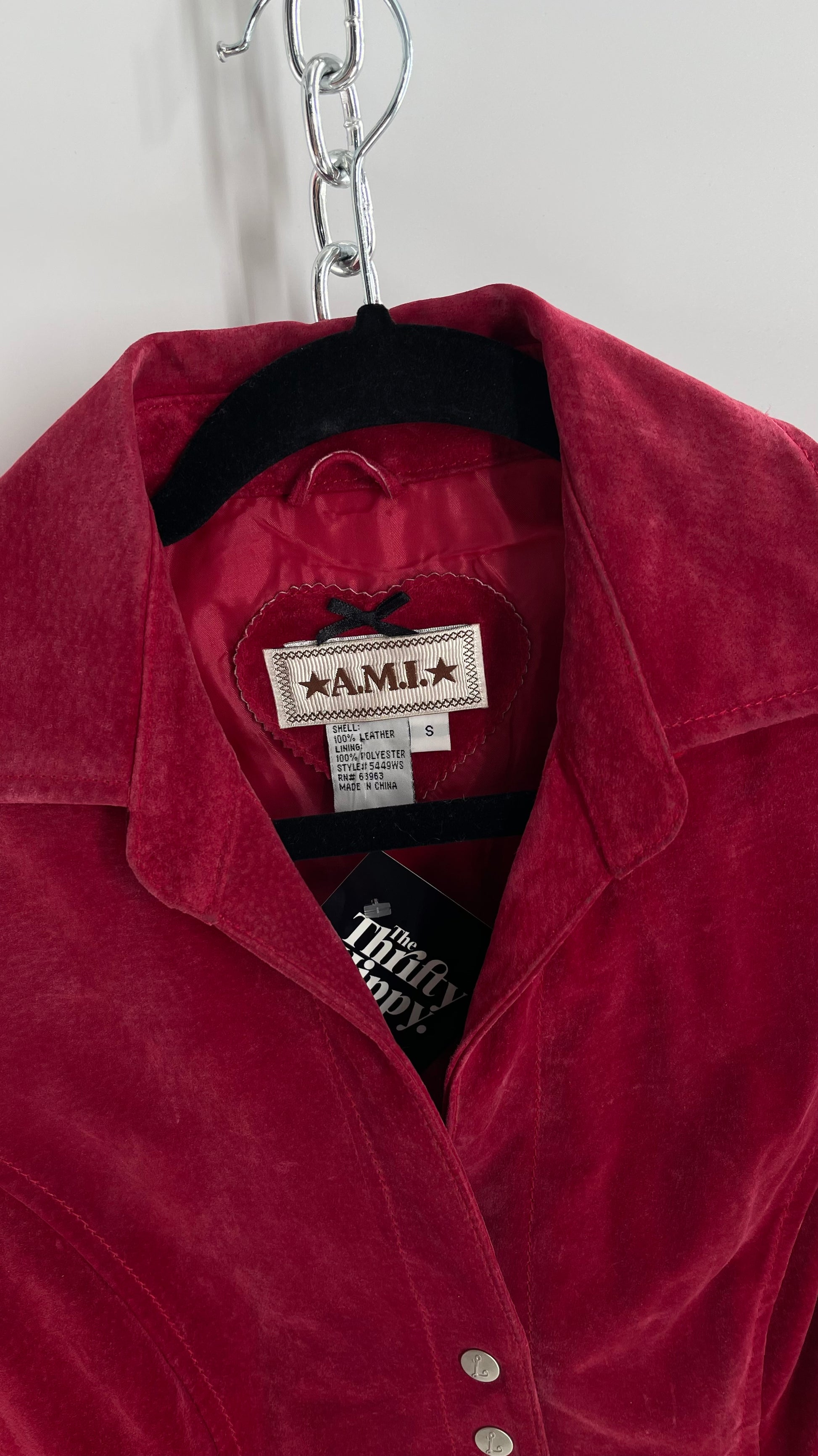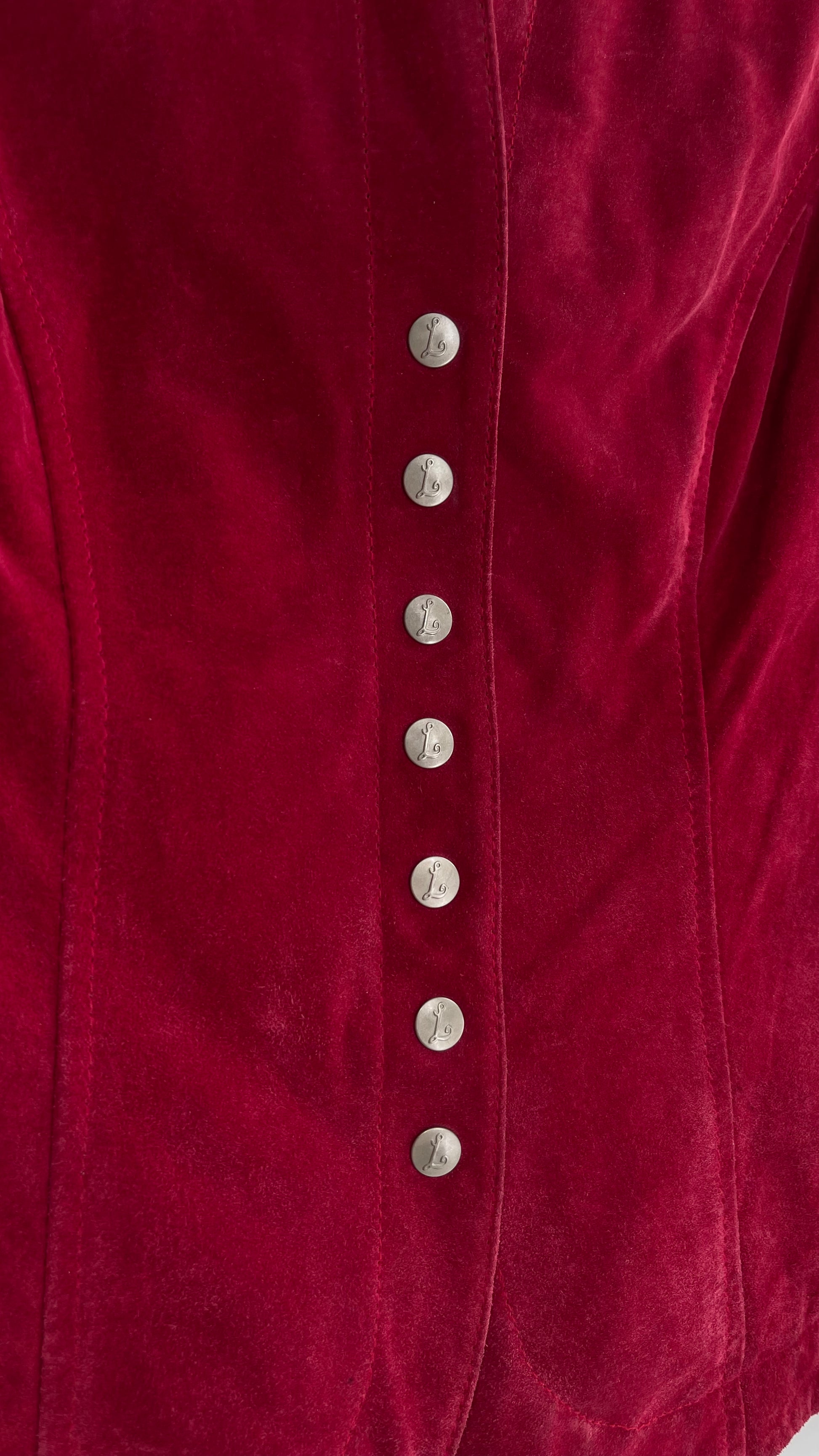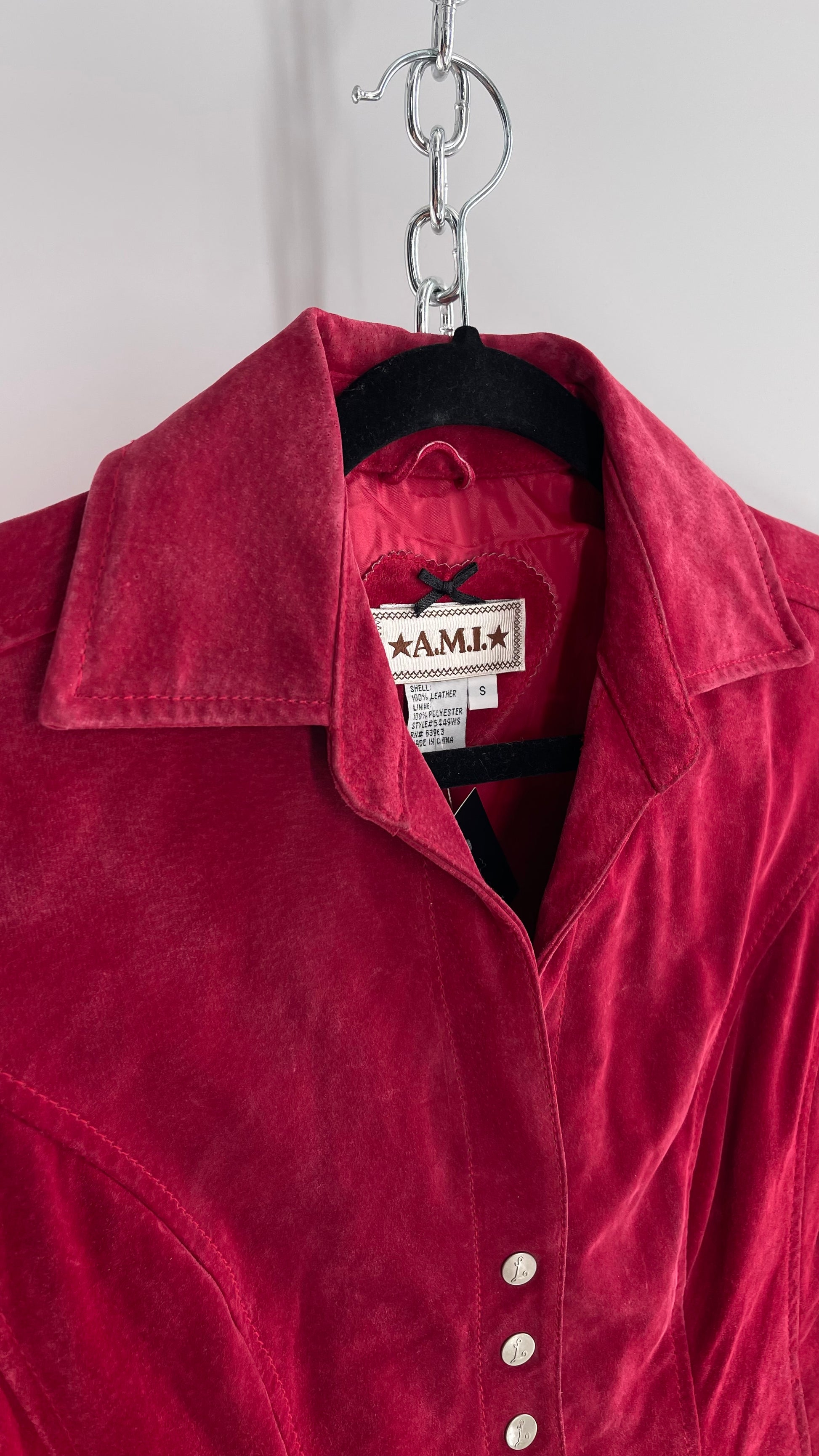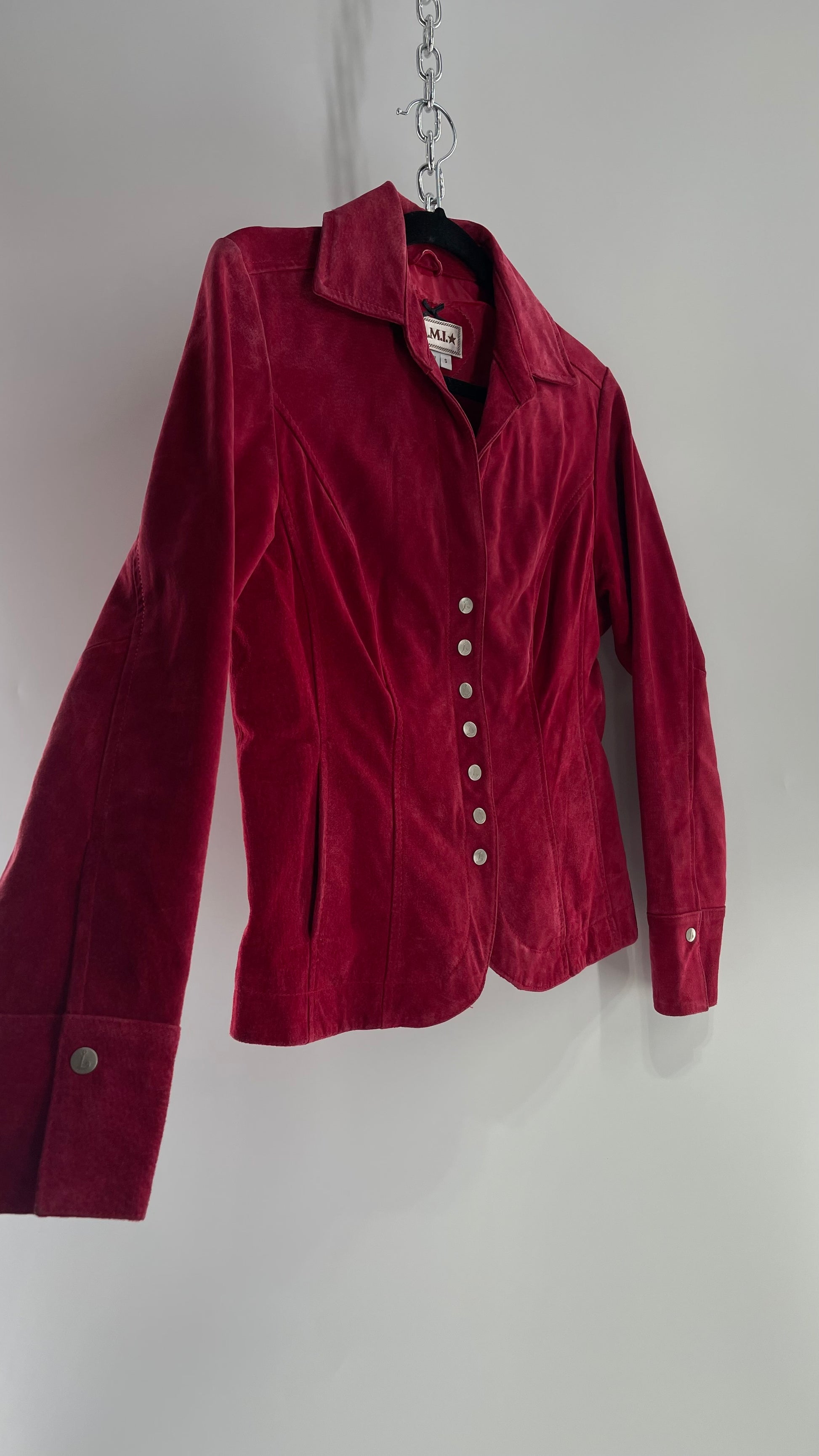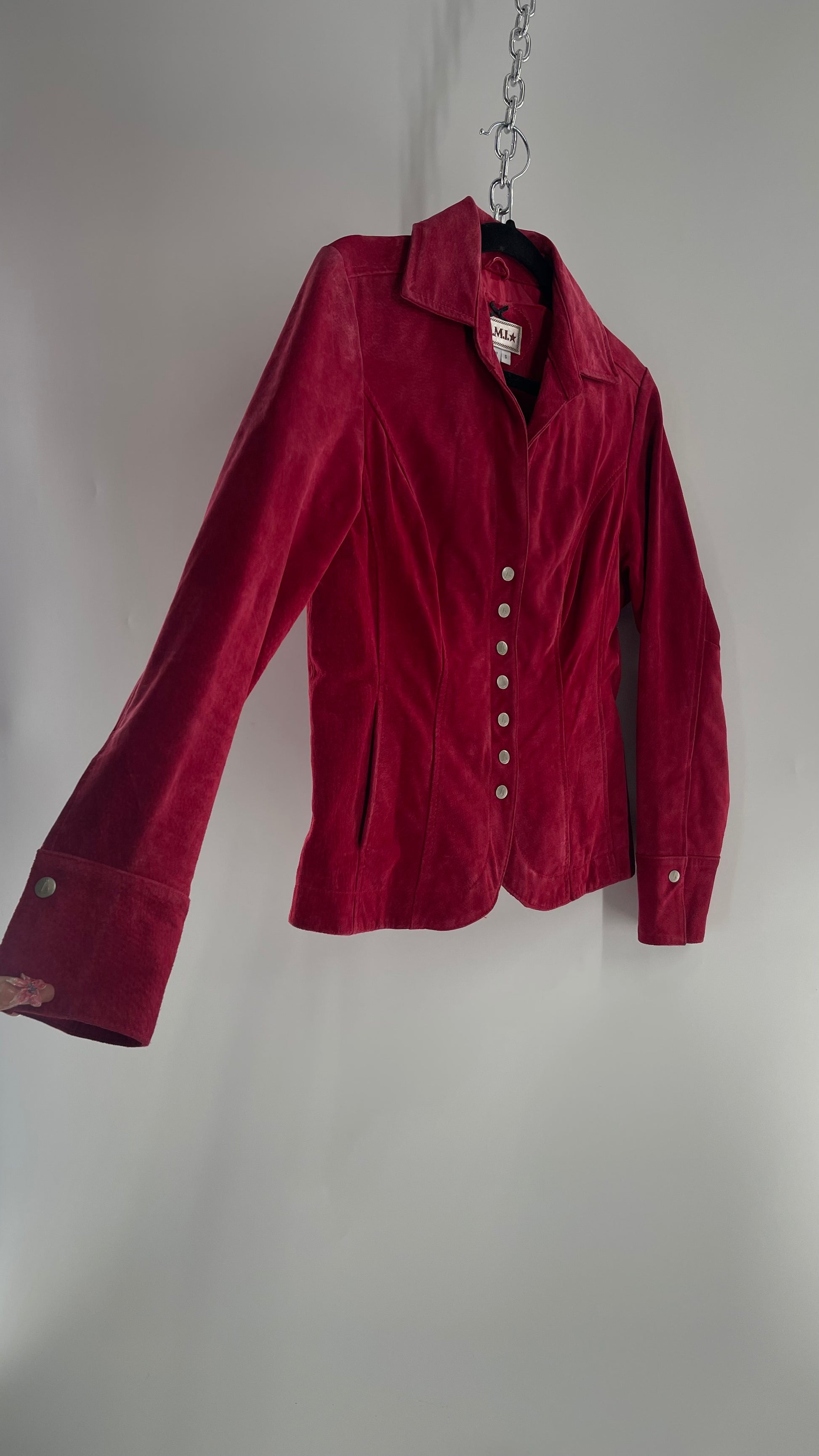 VINTAGE A.M.I Raspberry Red Suede Leather Slim Waist Metal Button Front Jacket